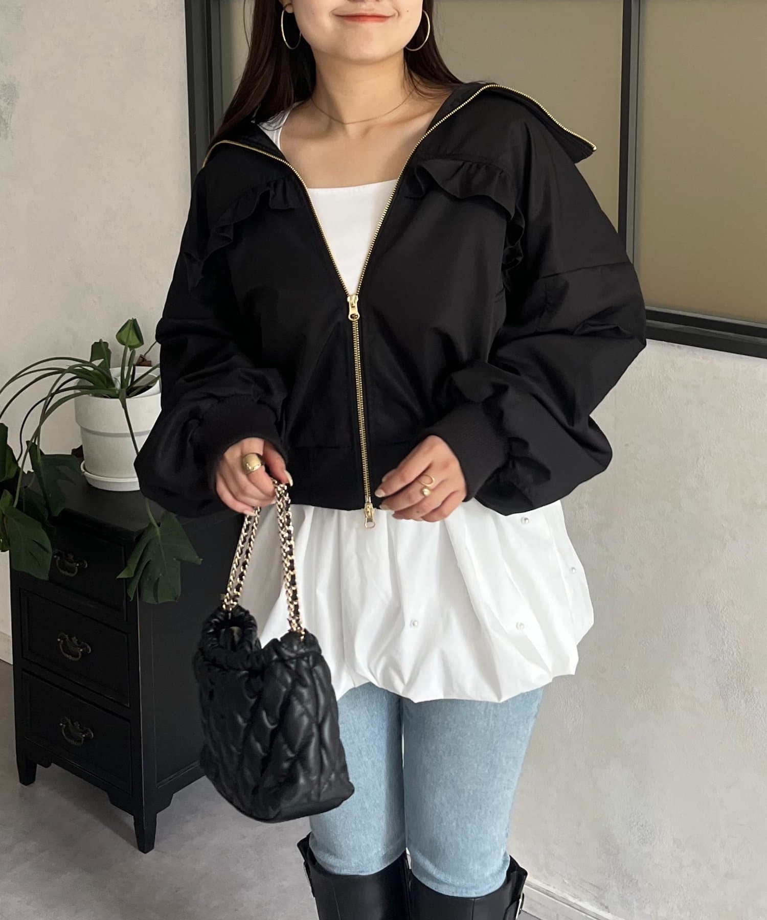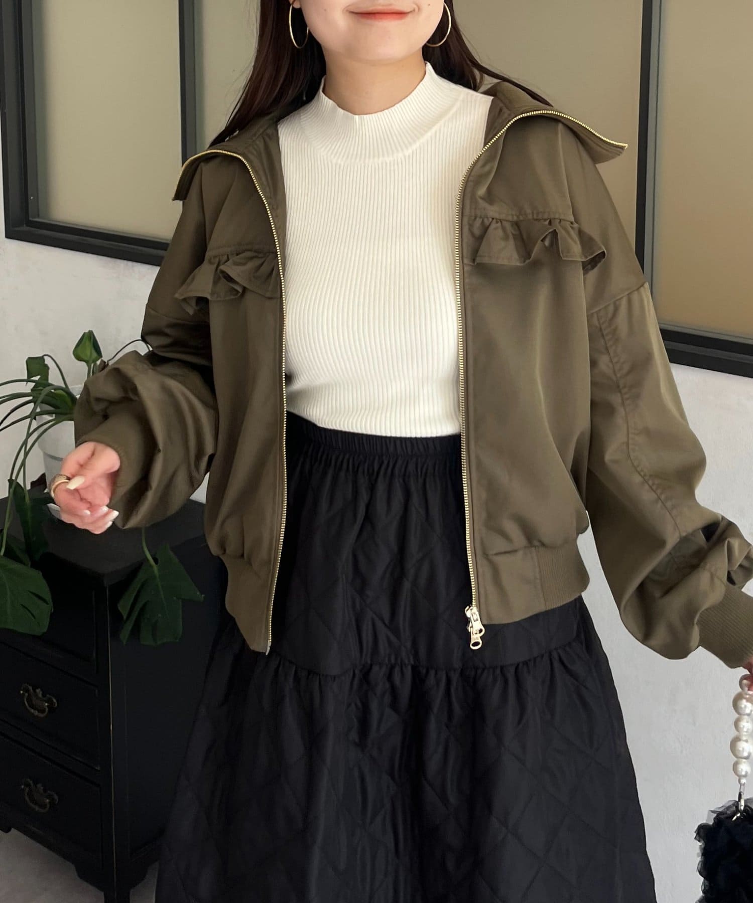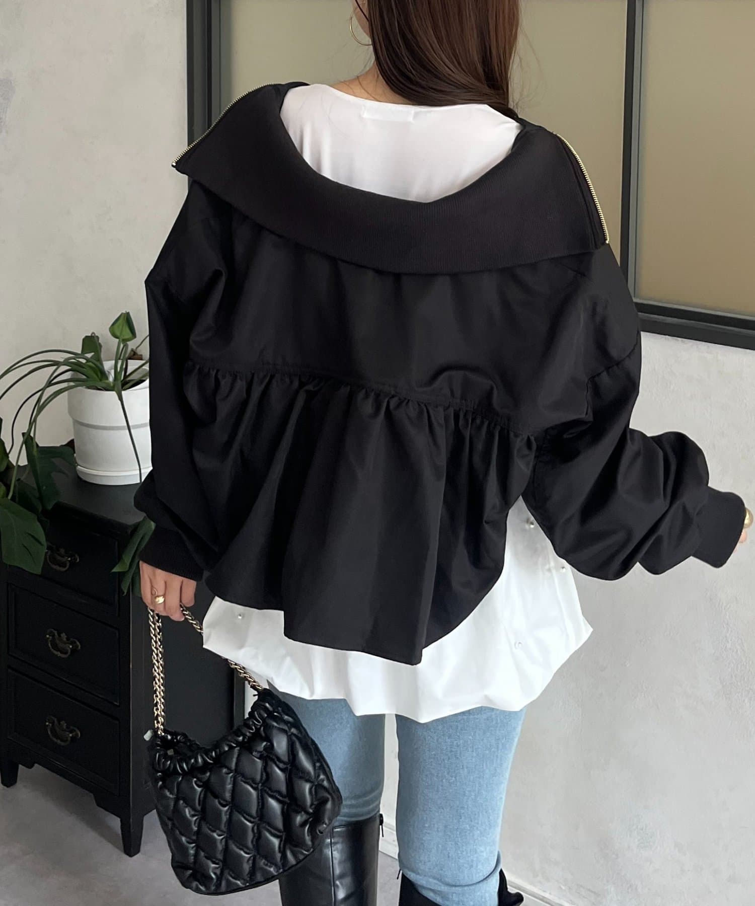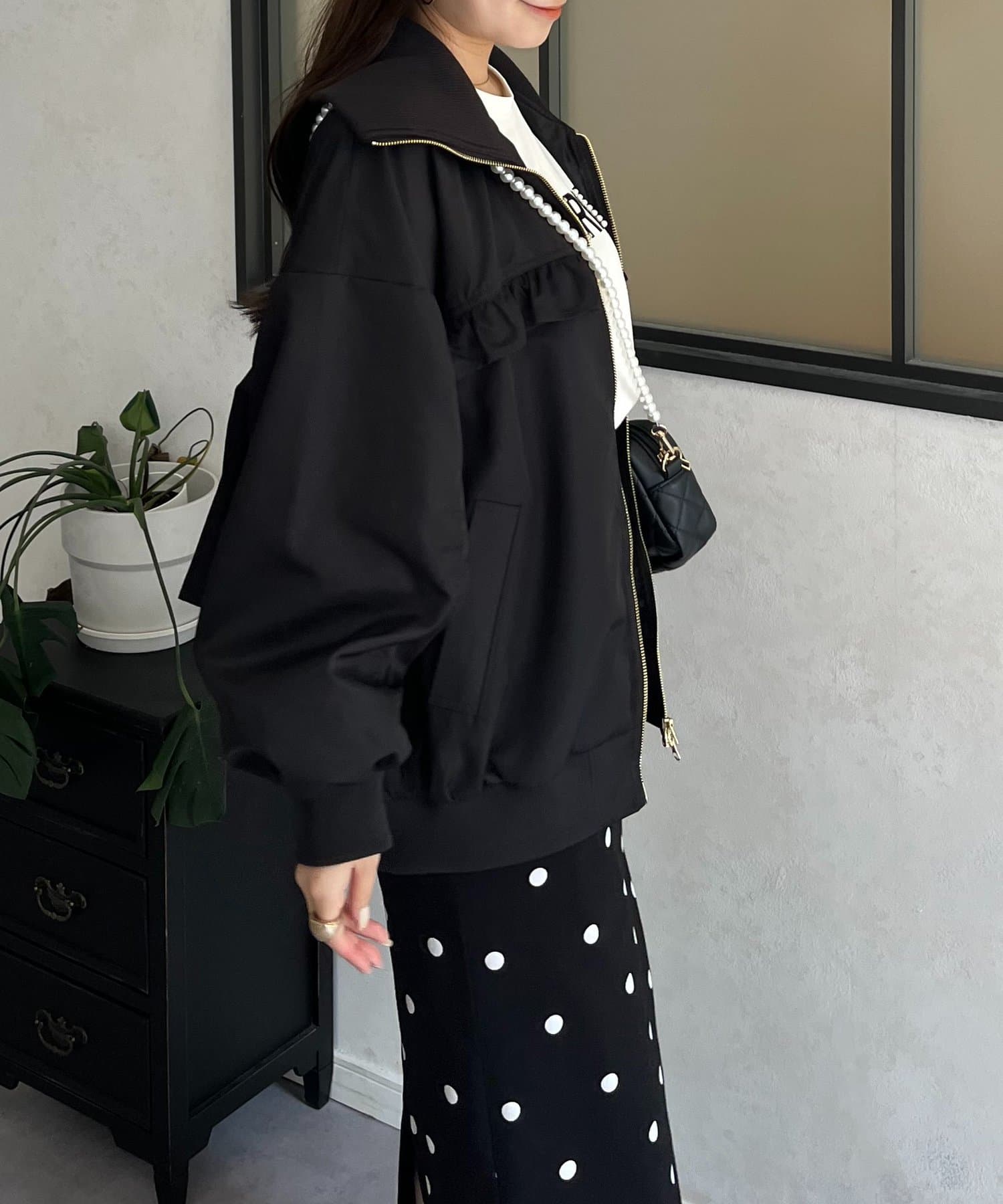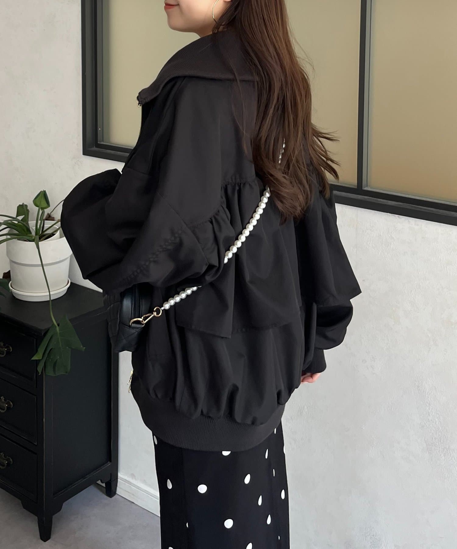 ●カジュアルなブルゾンにバックの大きいフリルが甘さをプラス