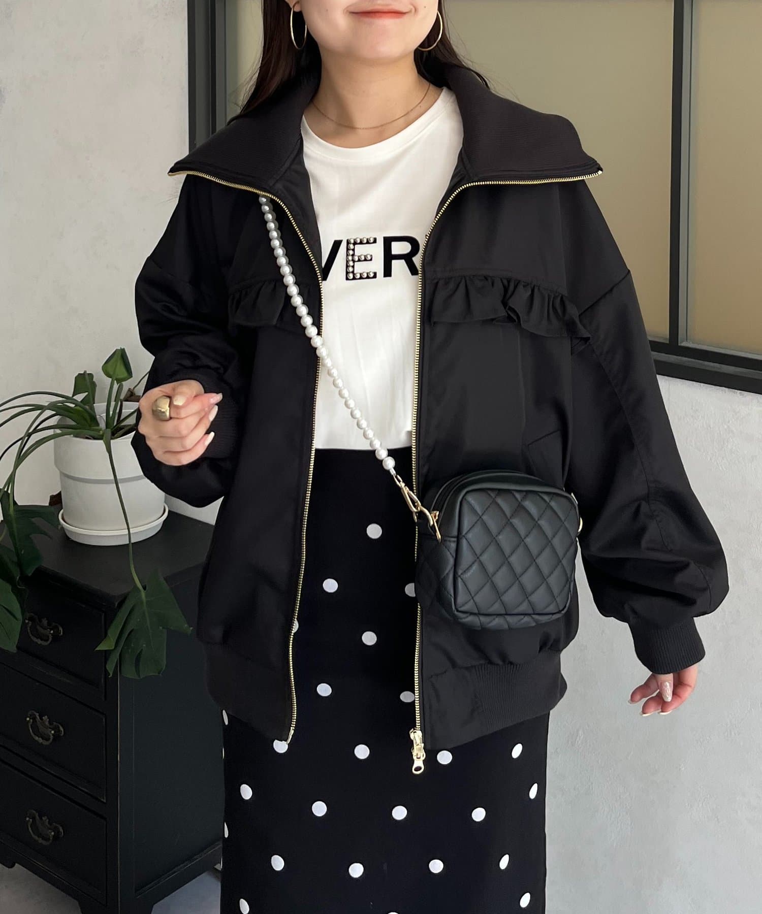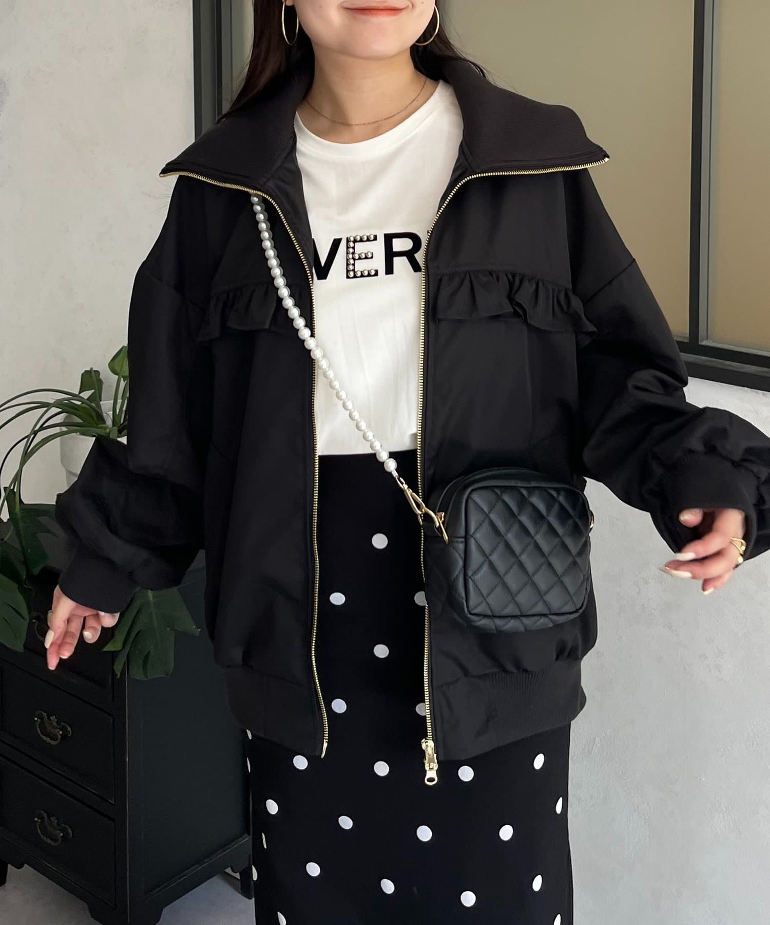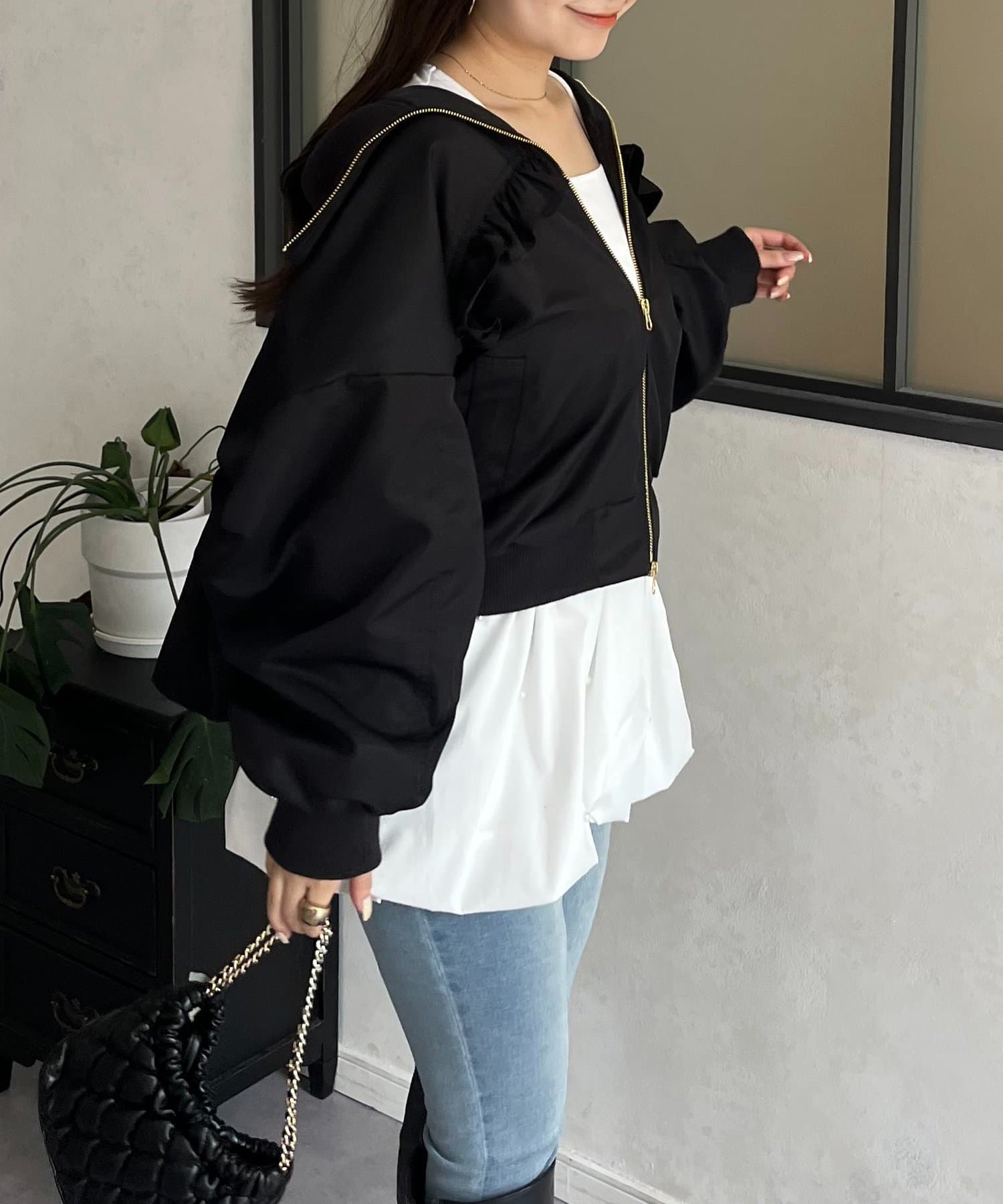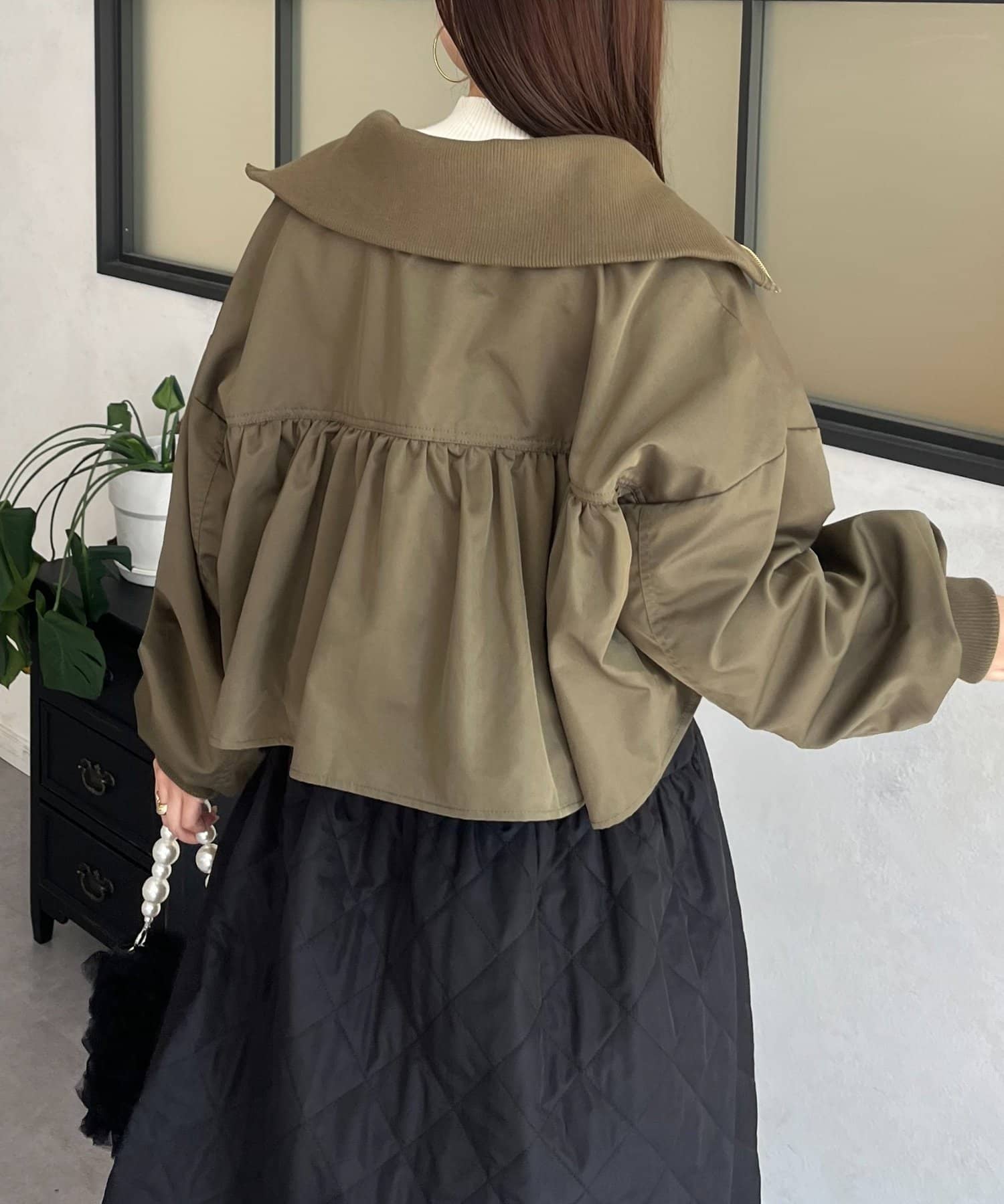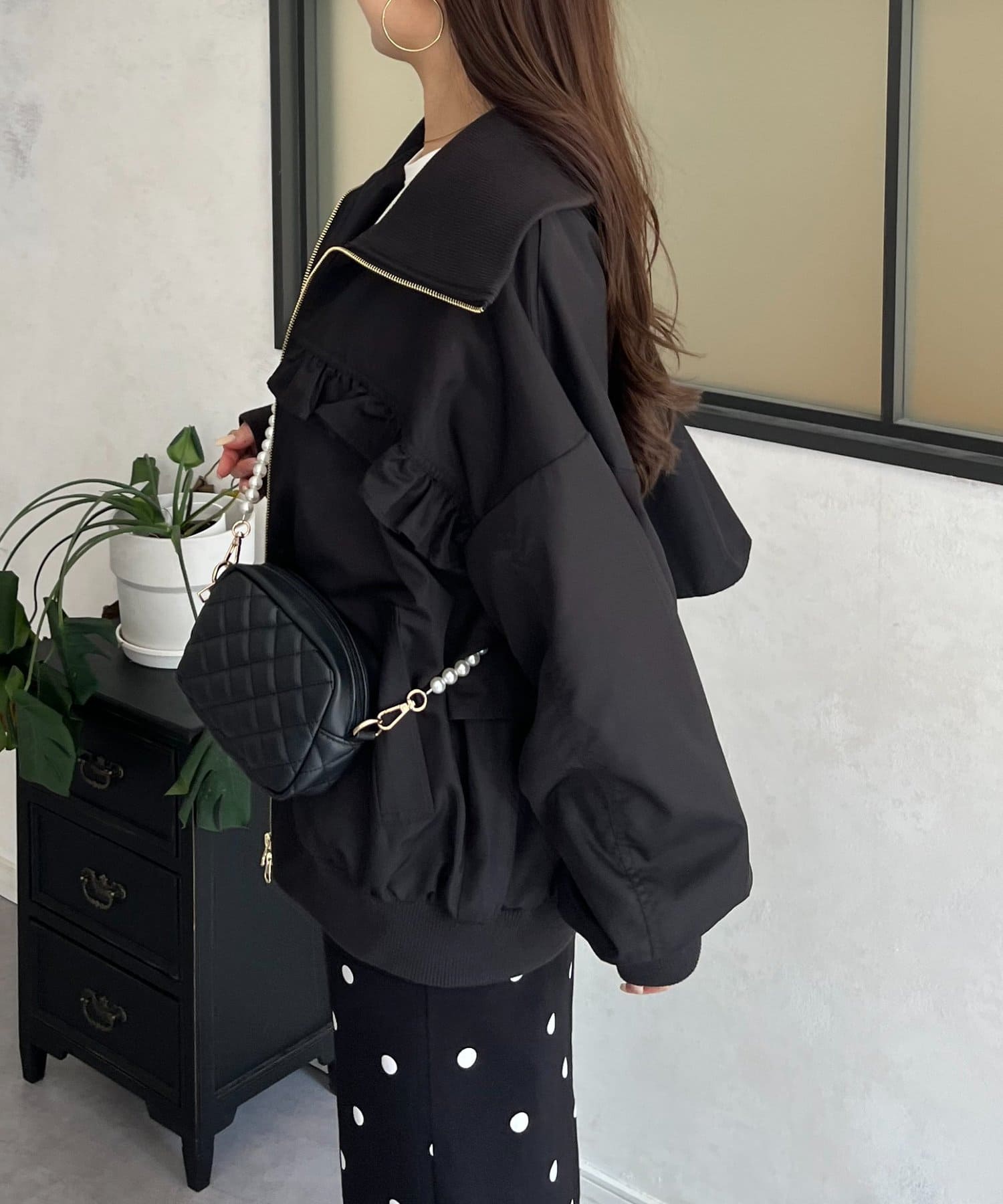 ●カジュアルなブルゾンにバックの大きいフリルが甘さをプラス