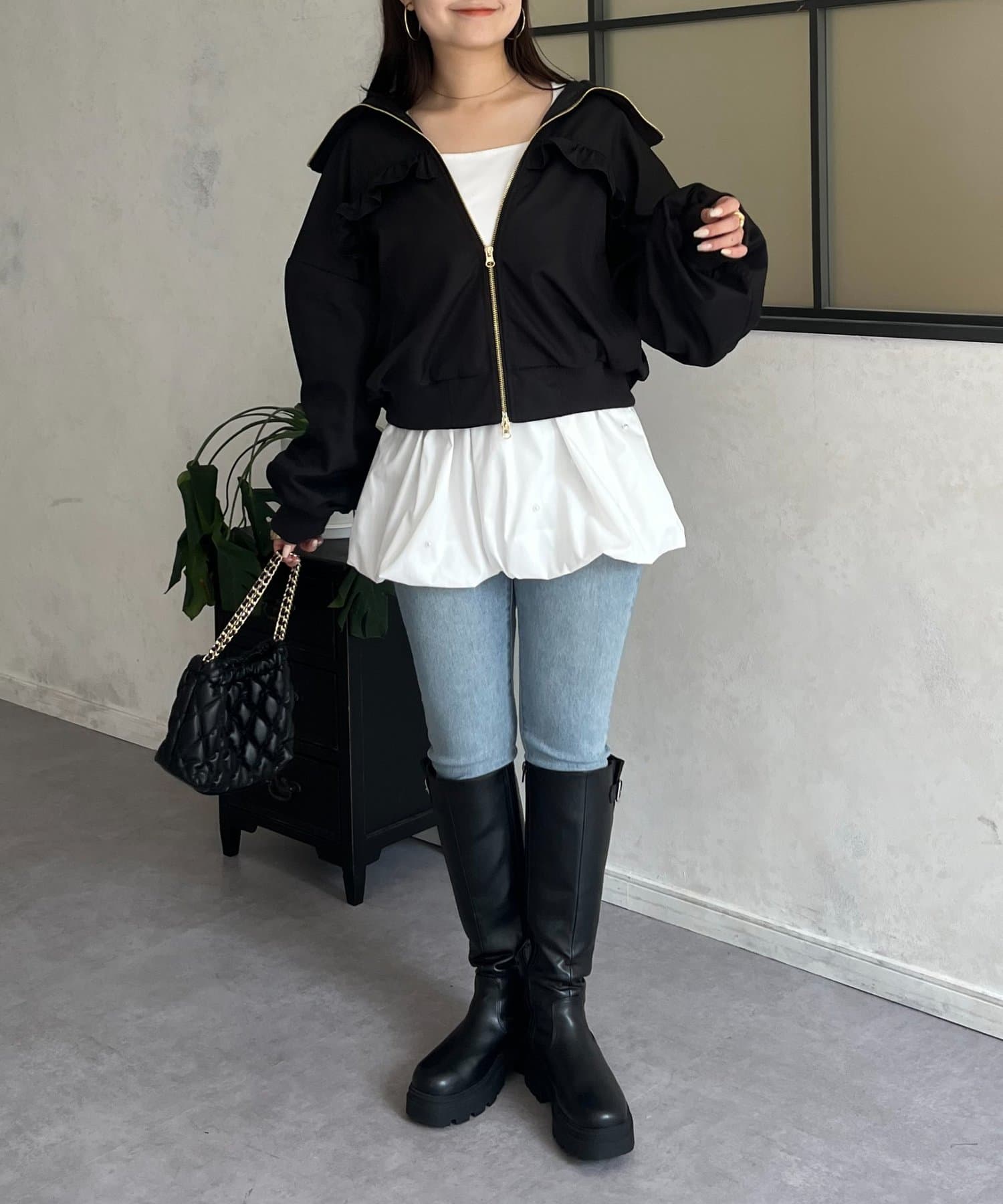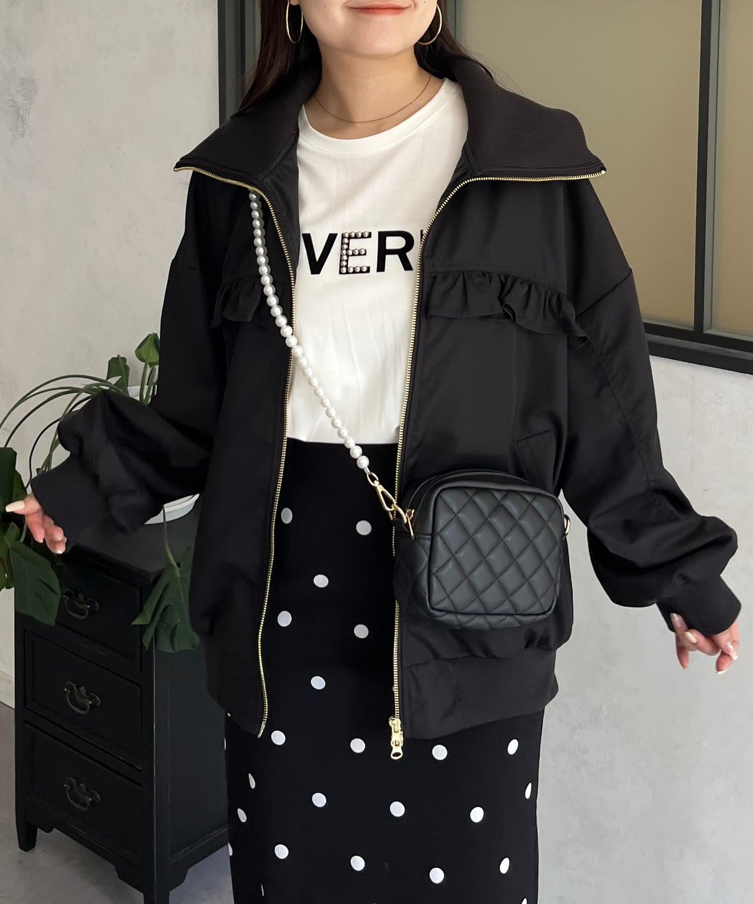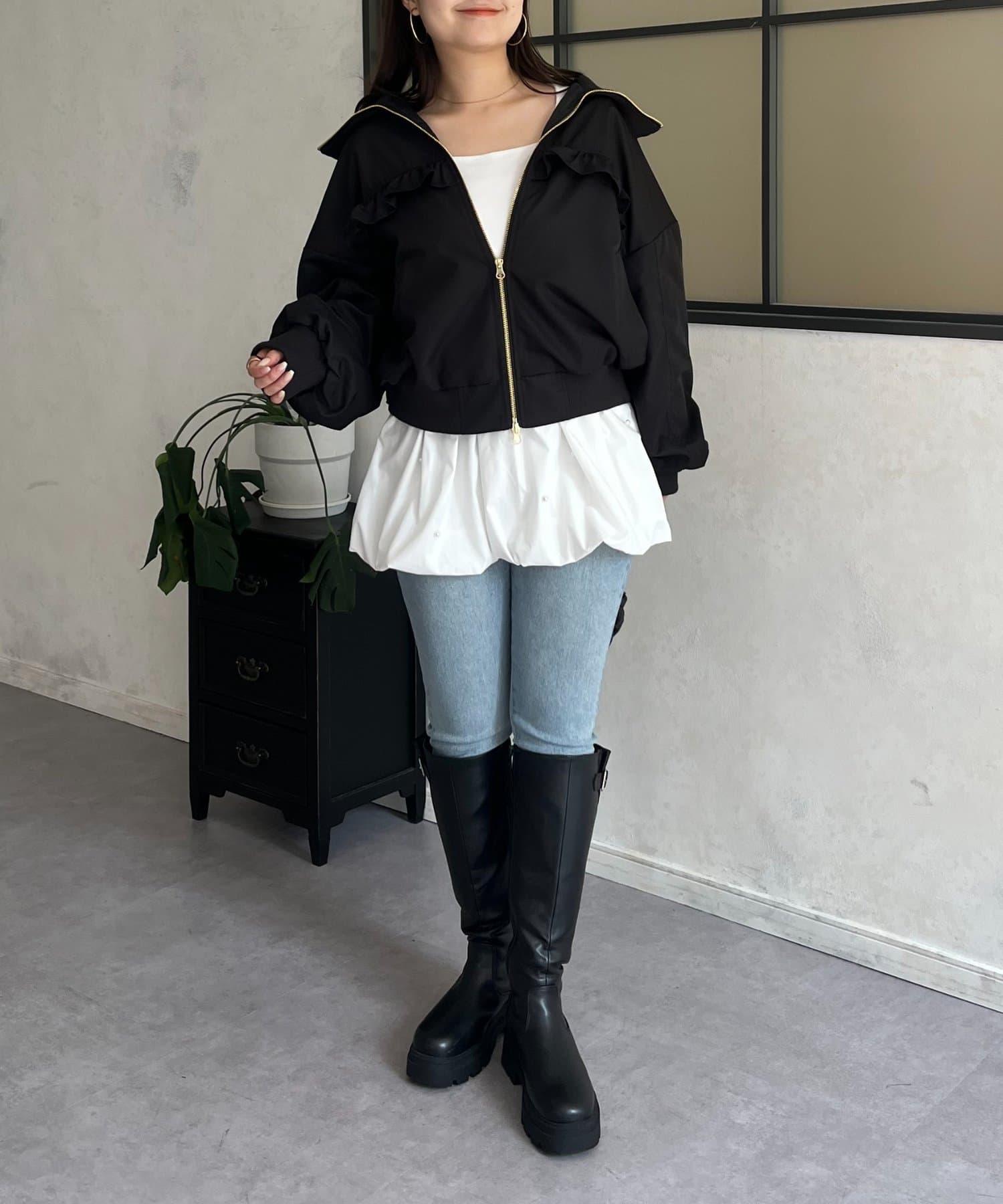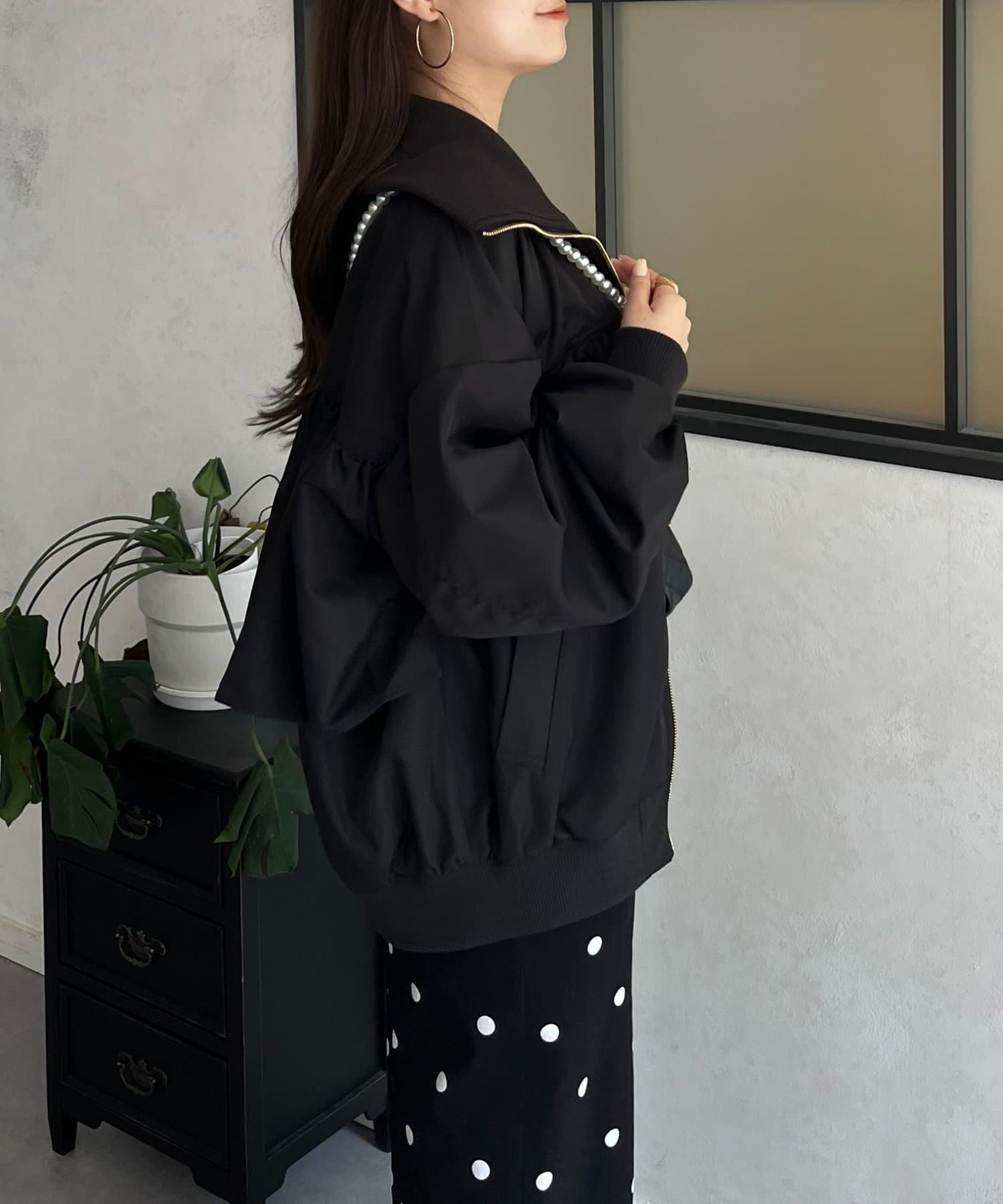 ●カジュアルなブルゾンにバックの大きいフリルが甘さをプラス
