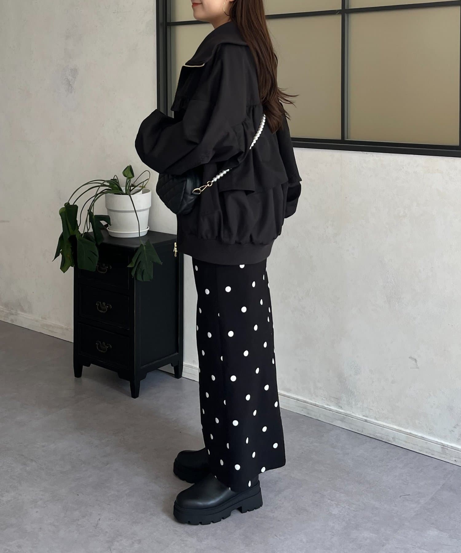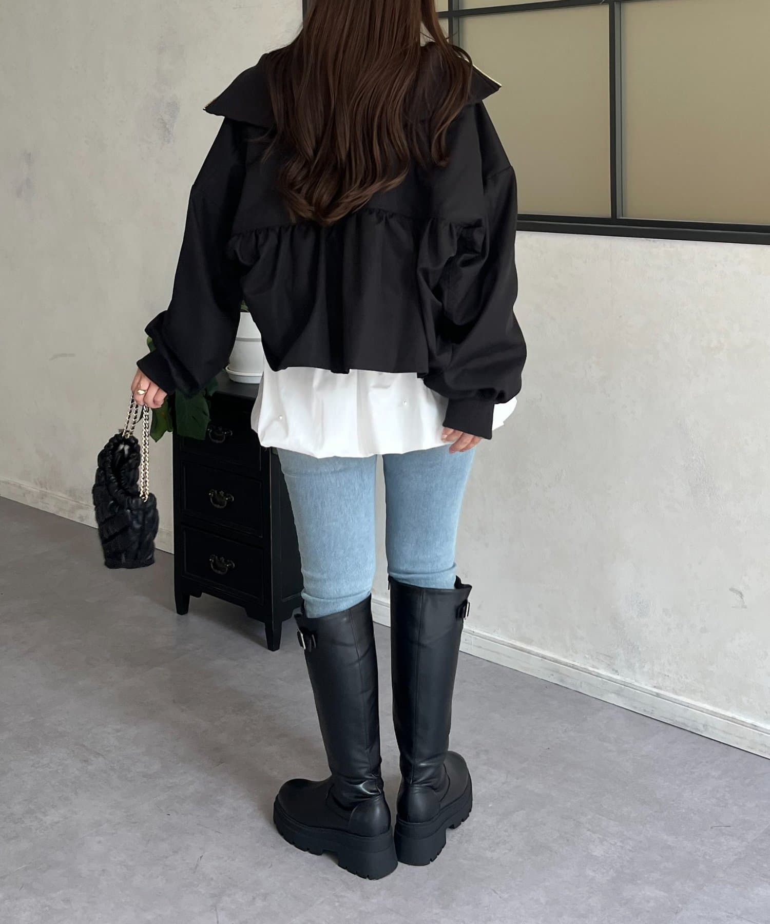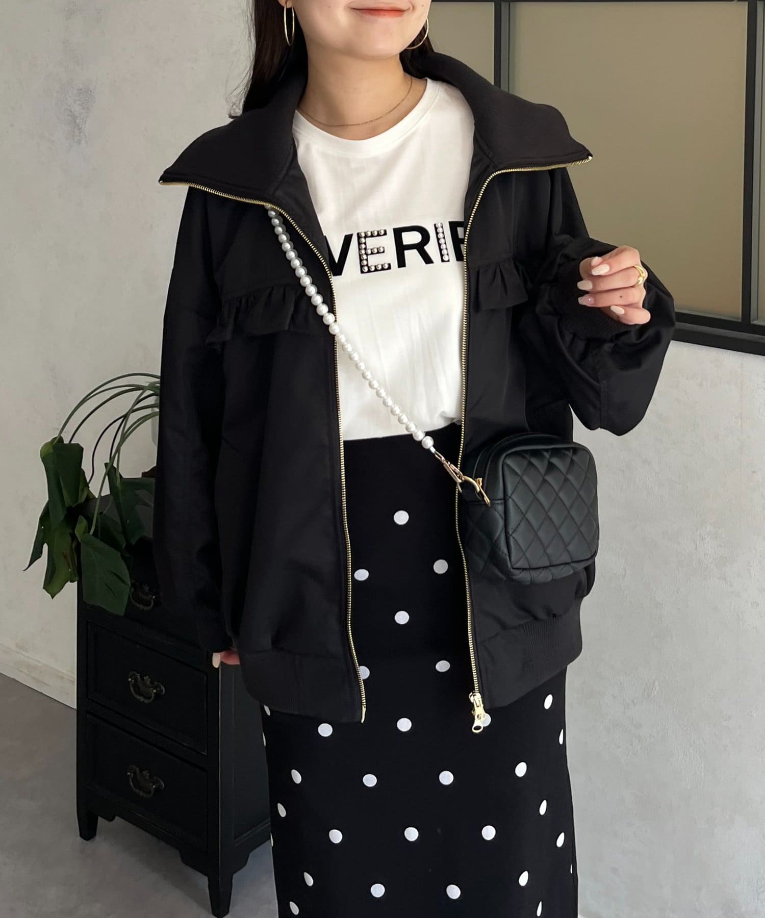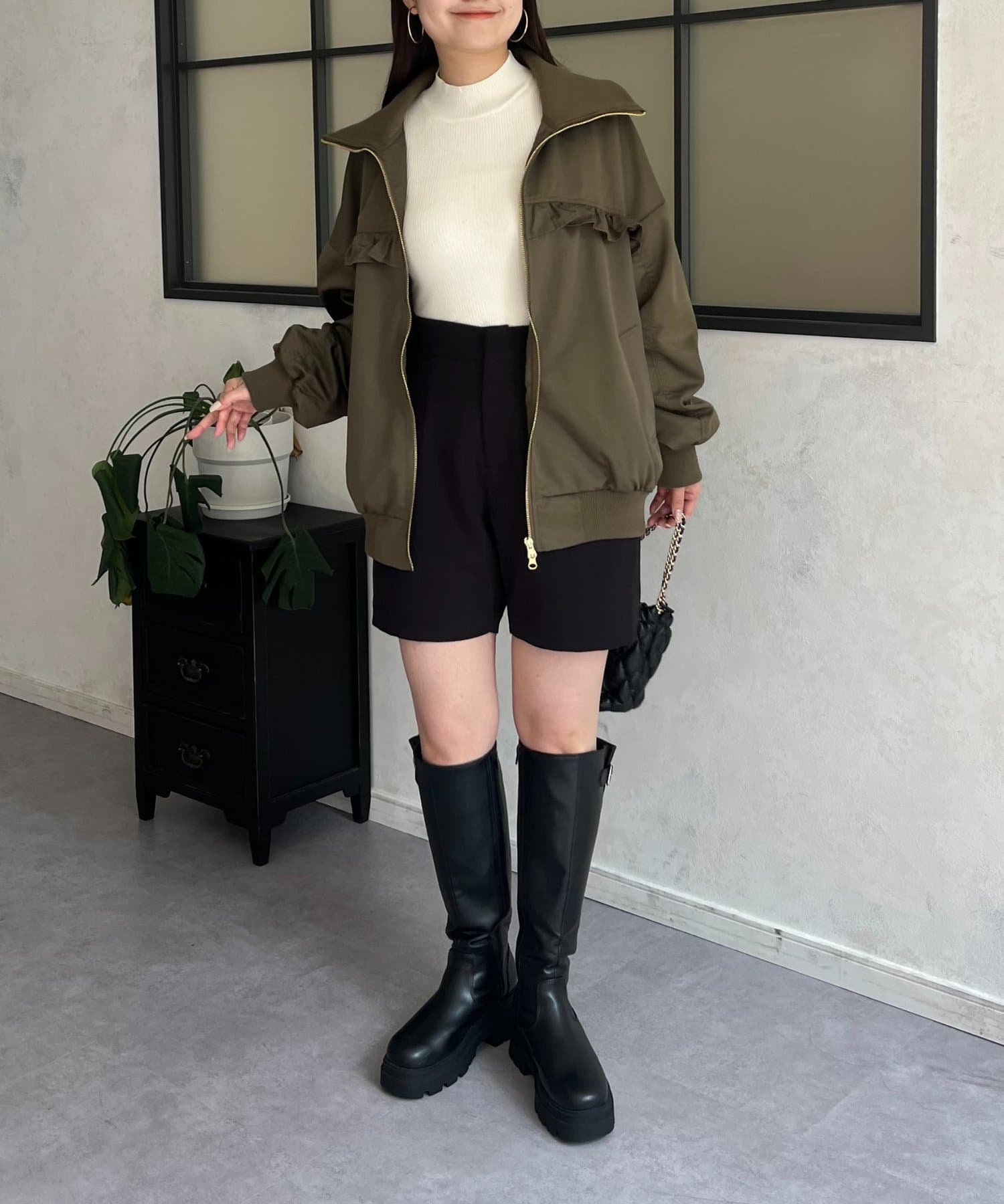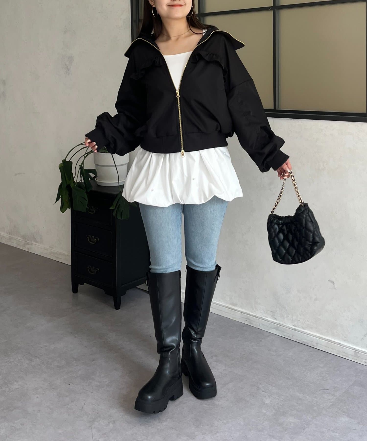 ●カジュアルなブルゾンにバックの大きいフリルが甘さをプラス
