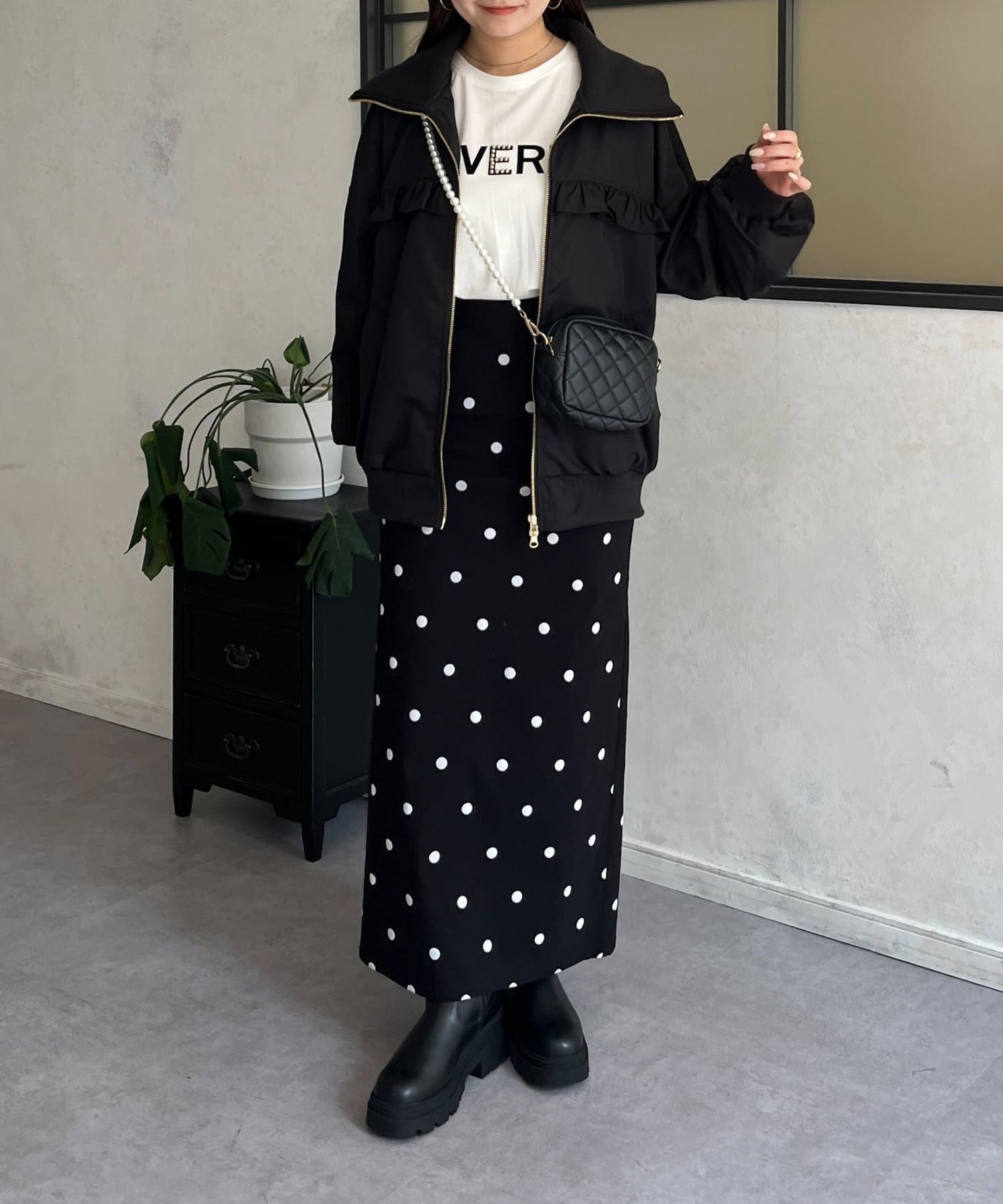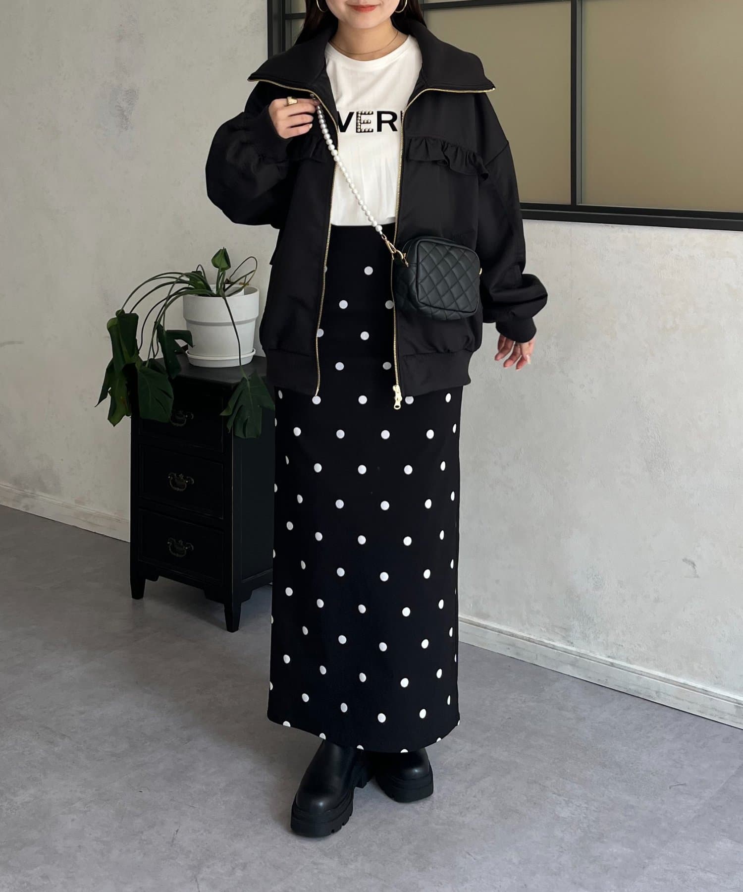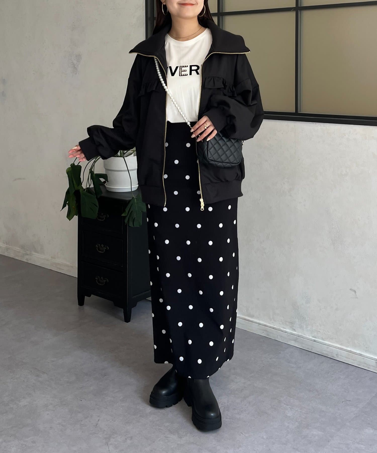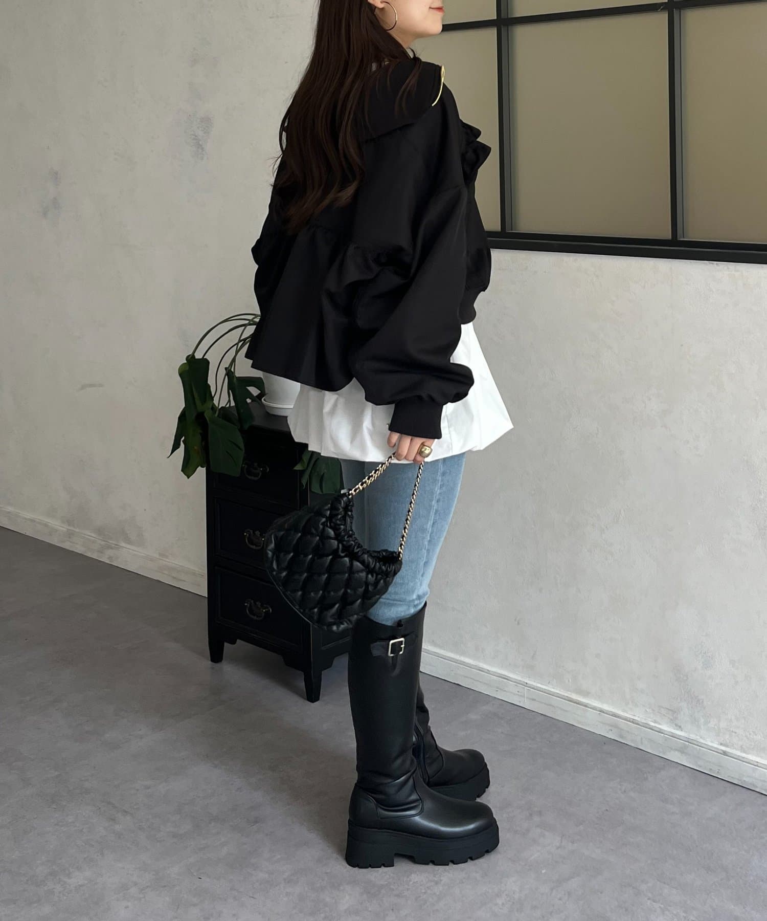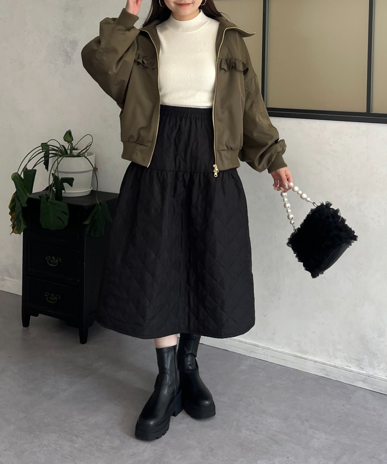 ●カジュアルなブルゾンにバックの大きいフリルが甘さをプラス
