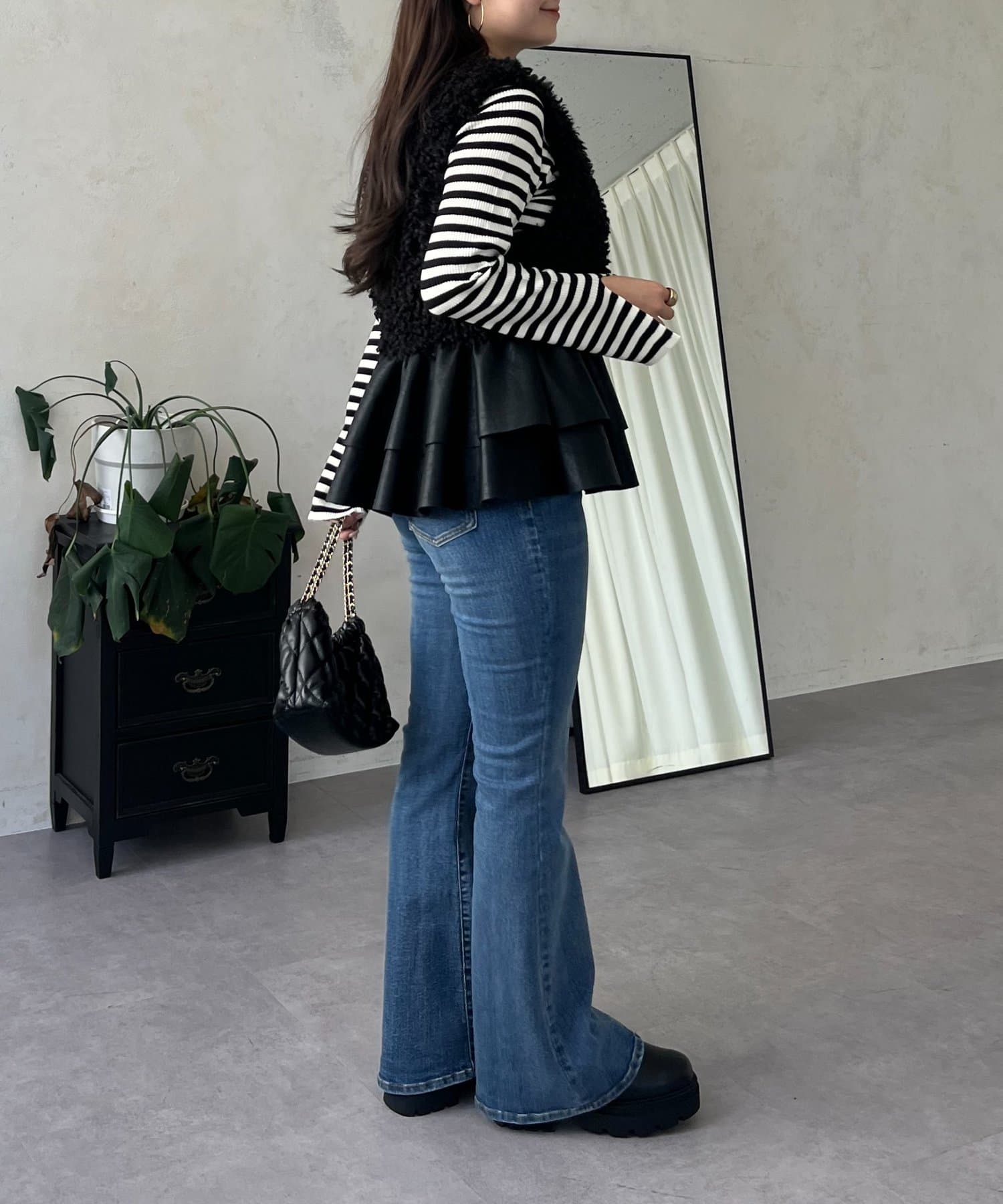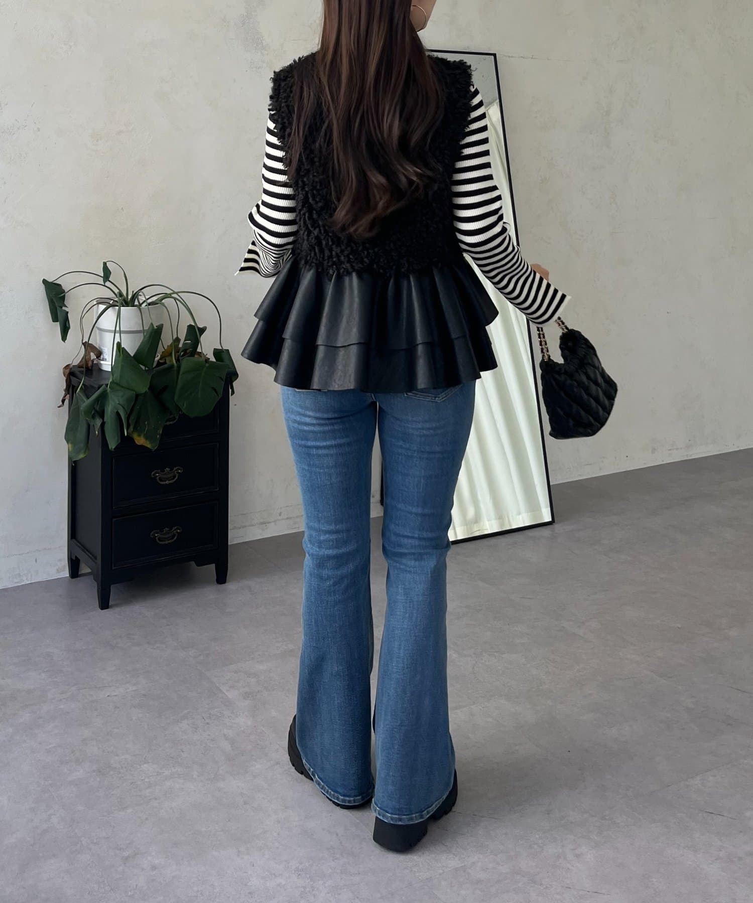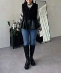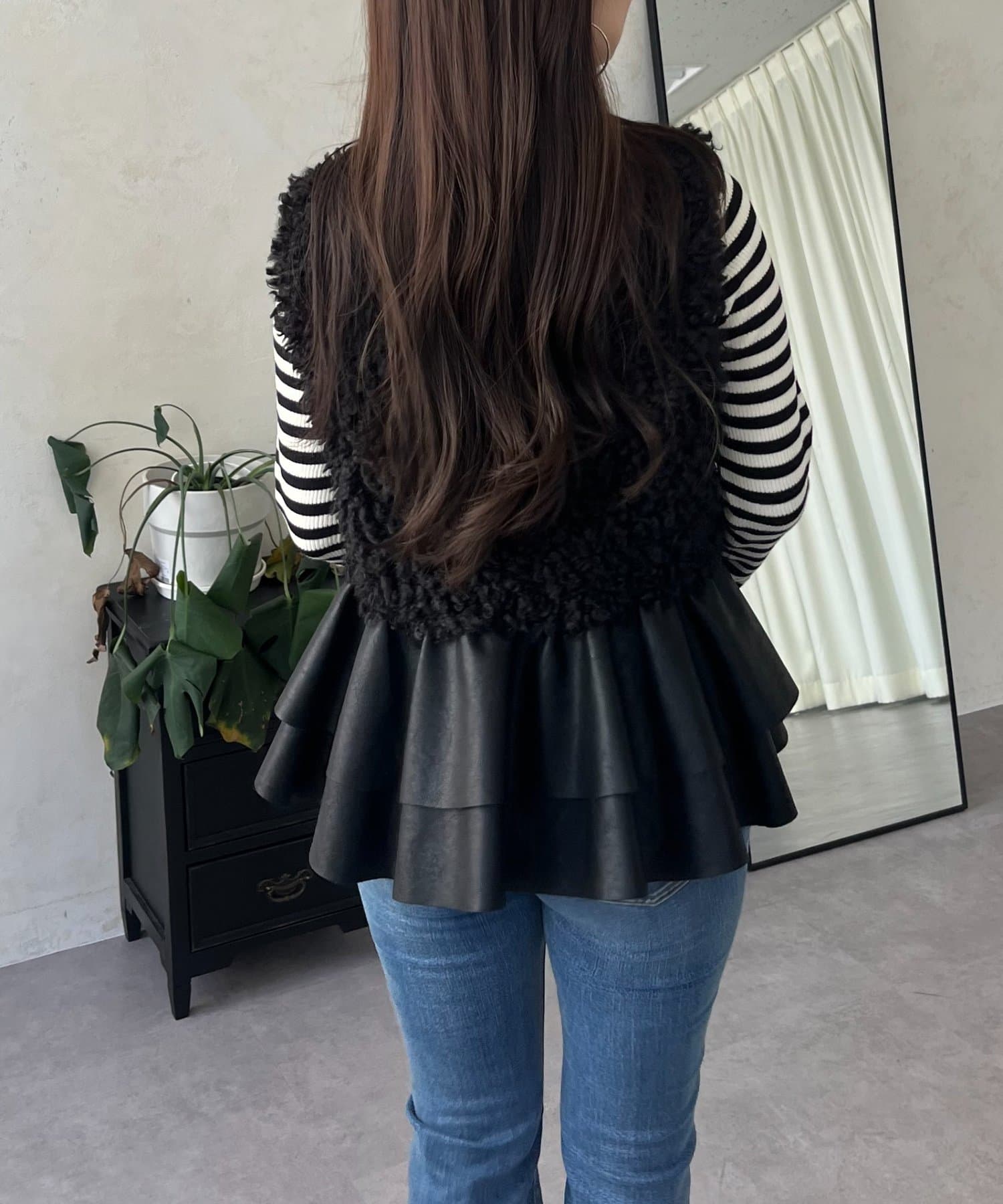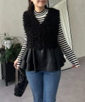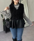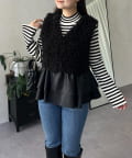 レザーペプラムファーベスト