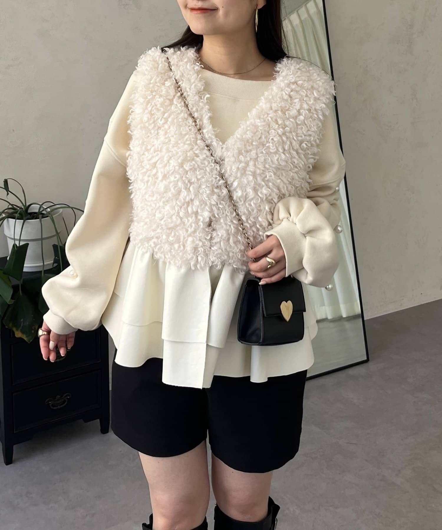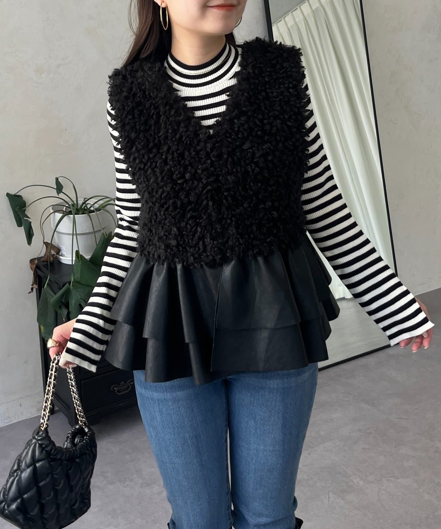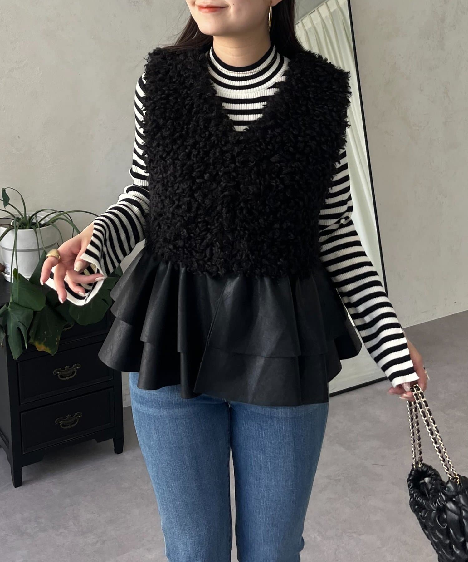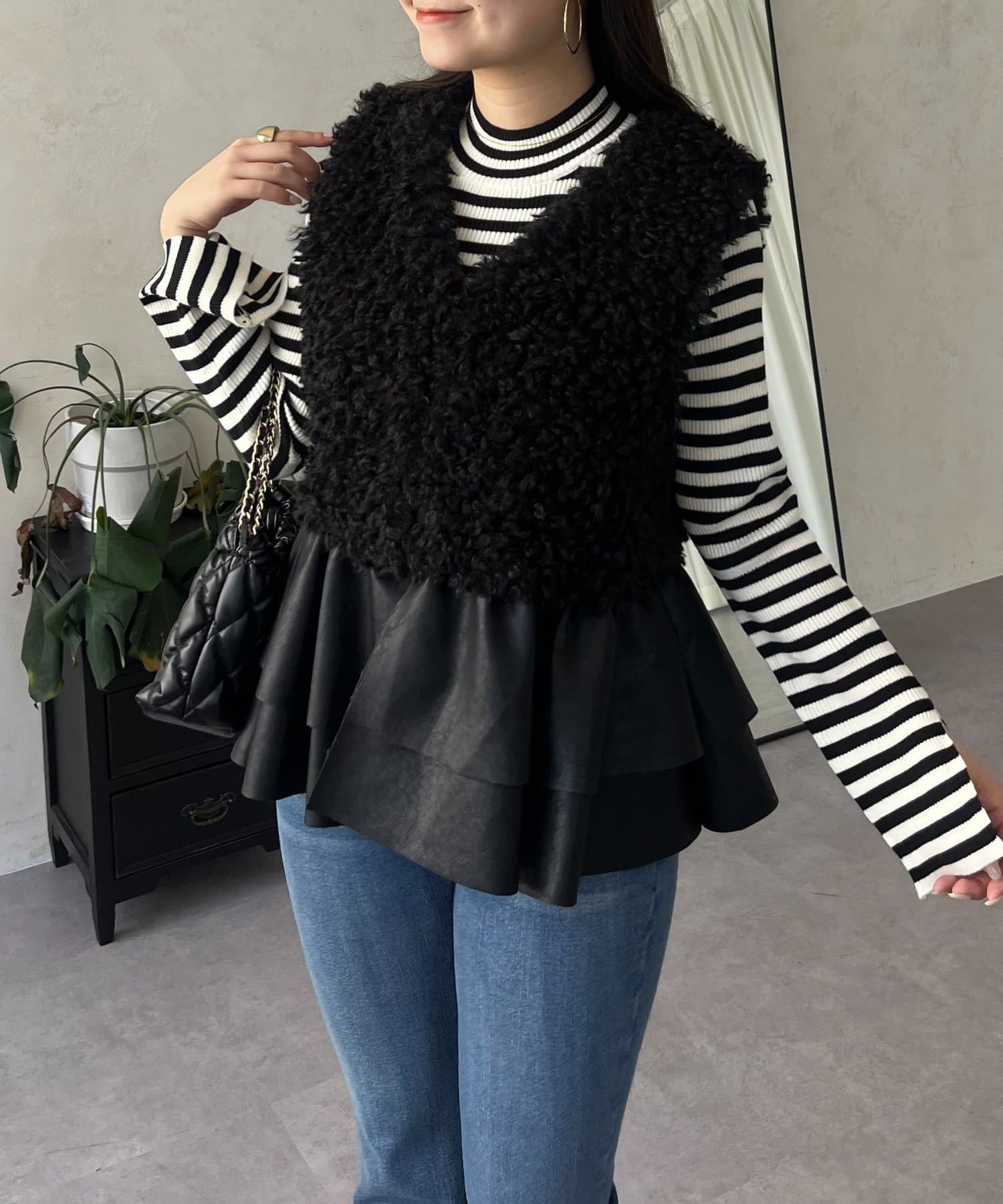 ファー/ベスト/体型カバー/大人カジュアル