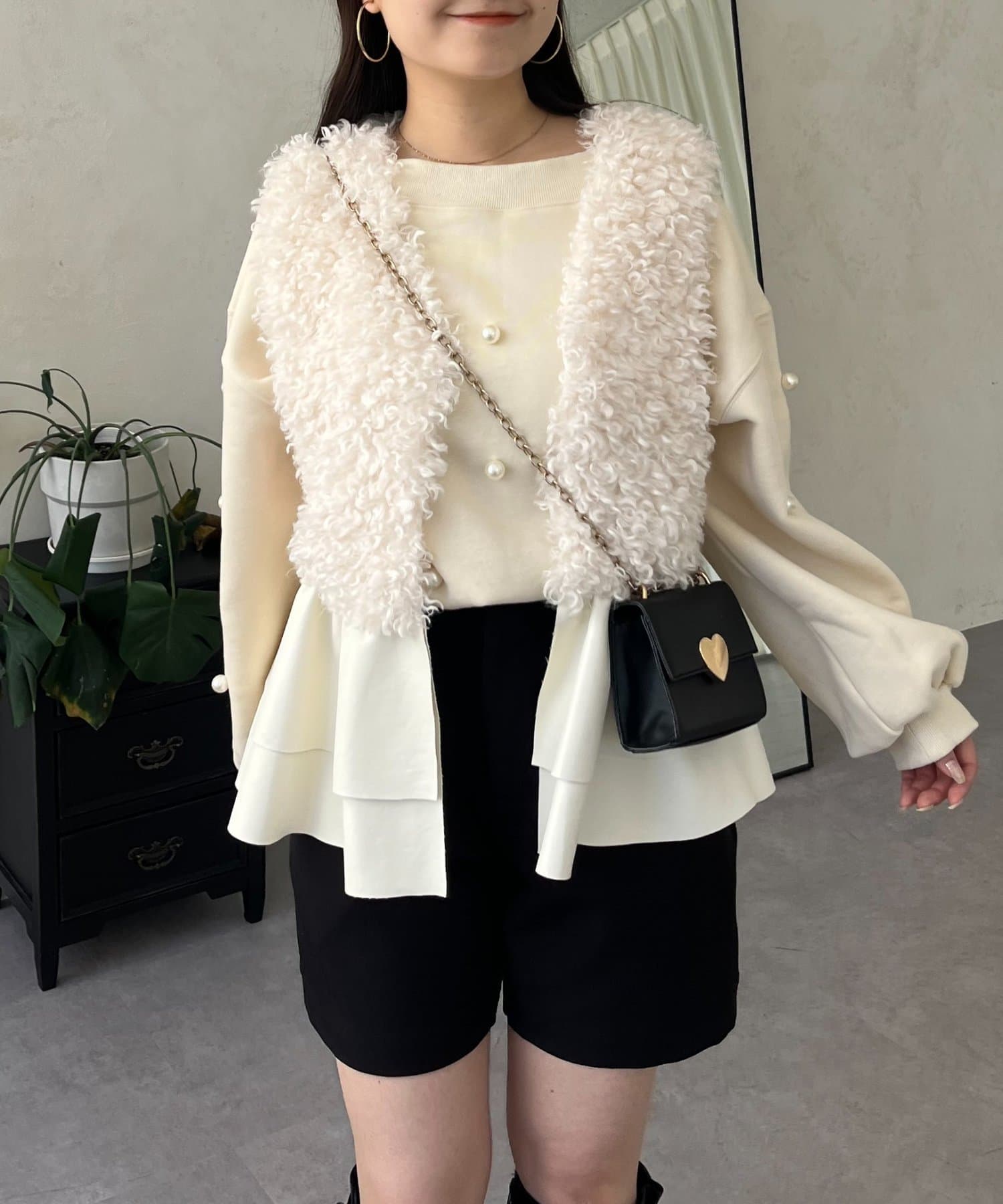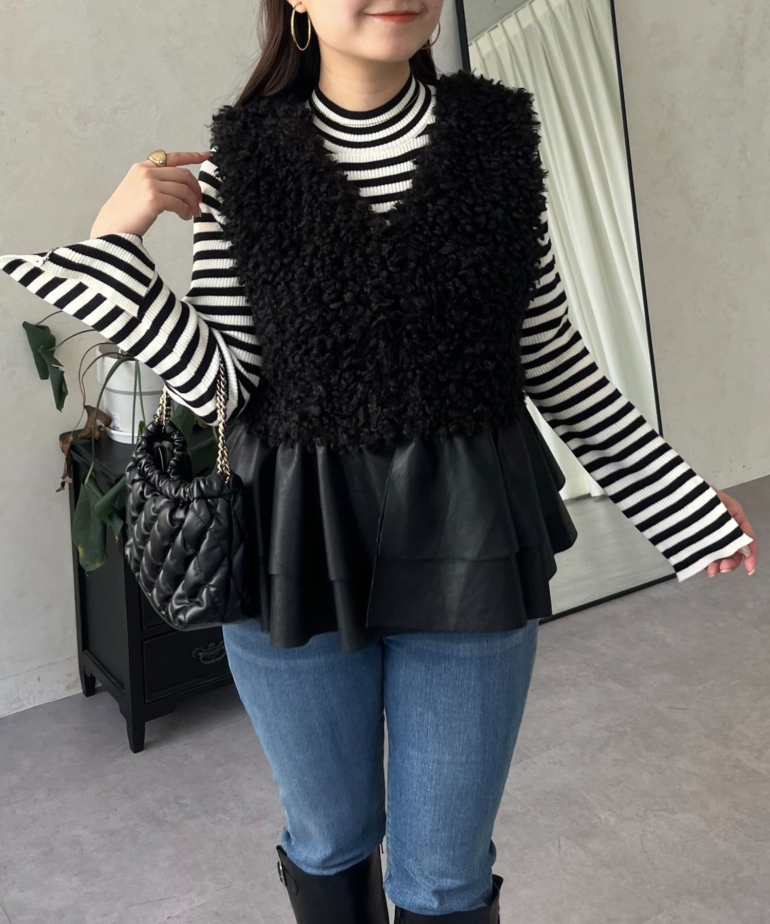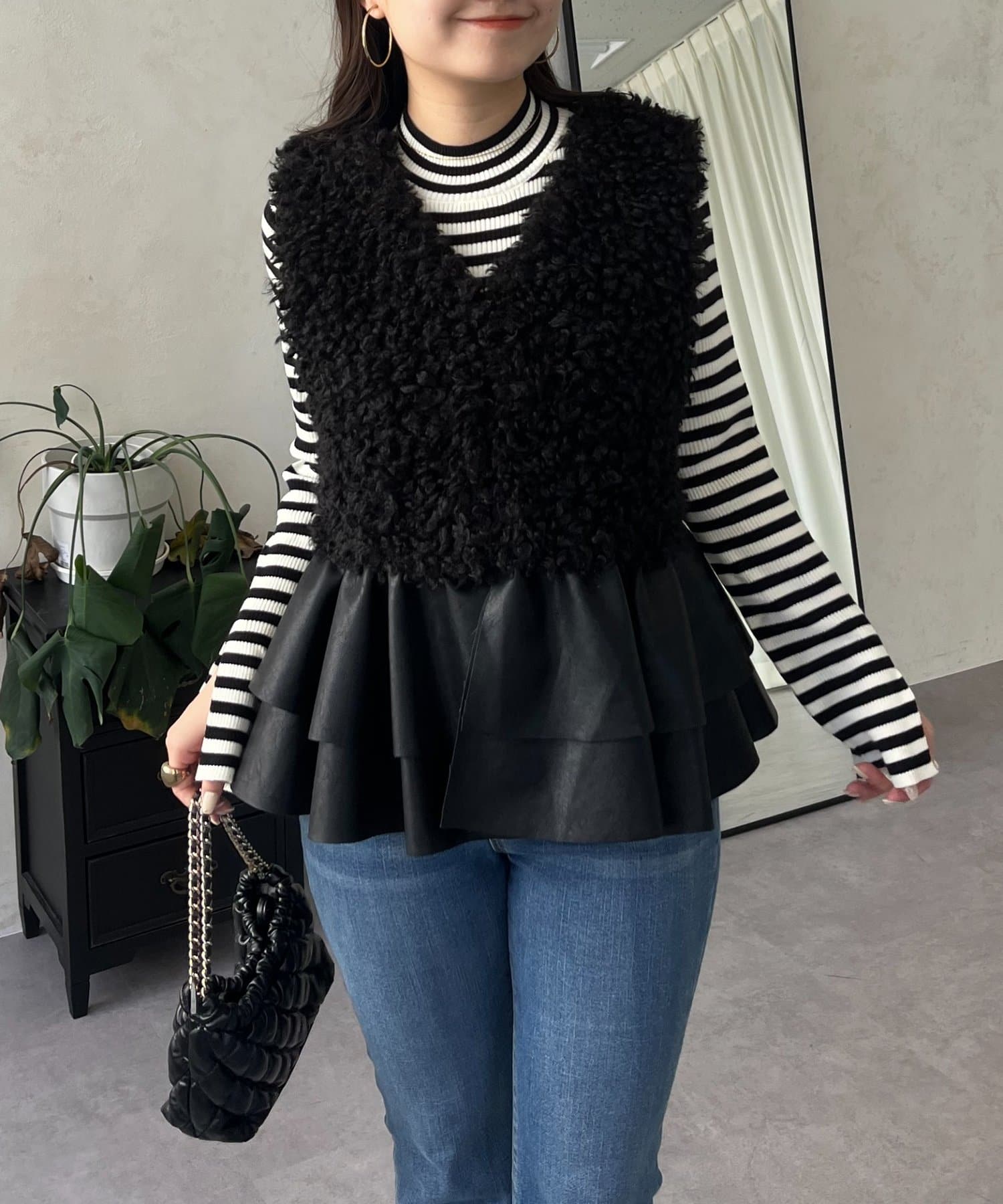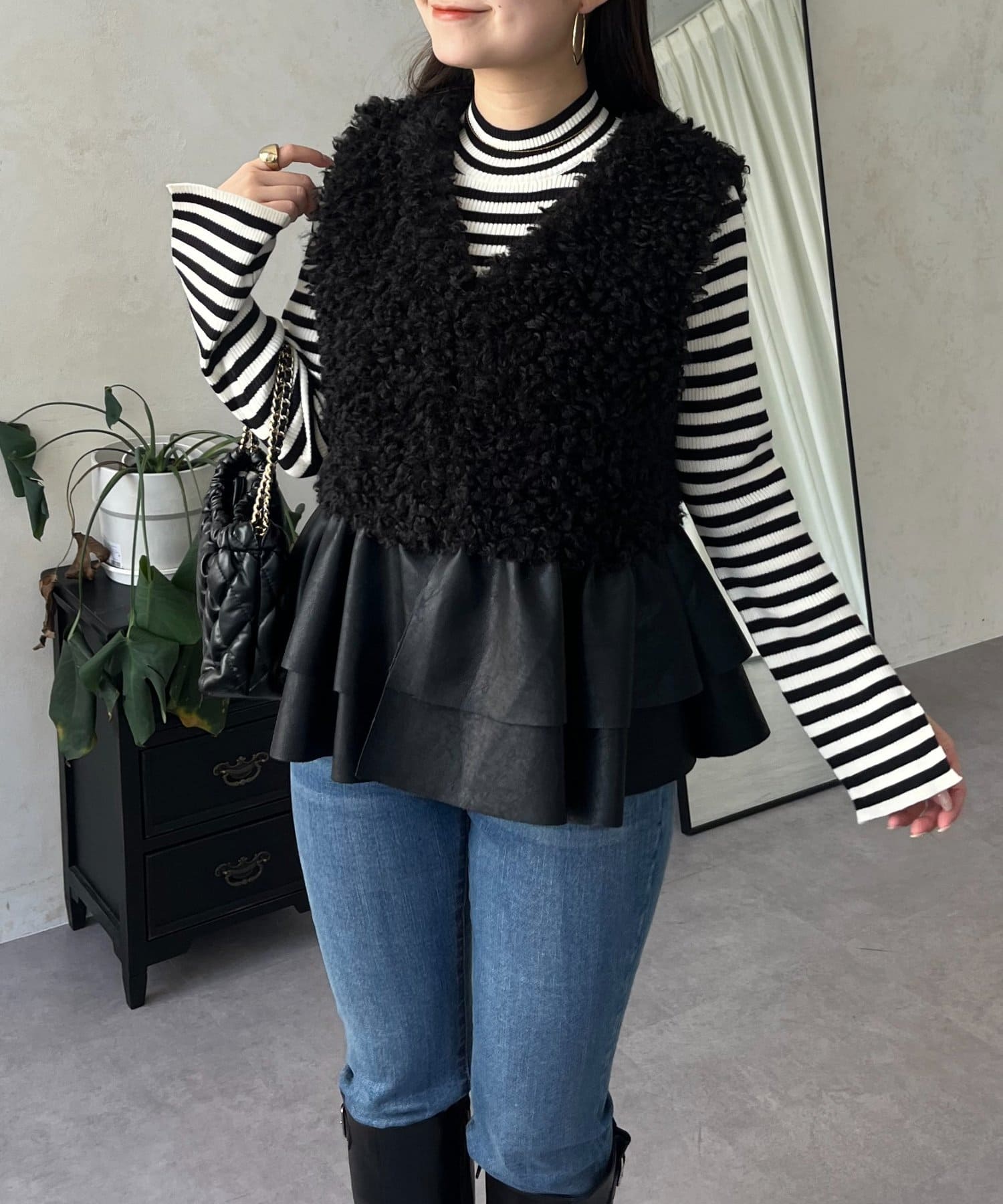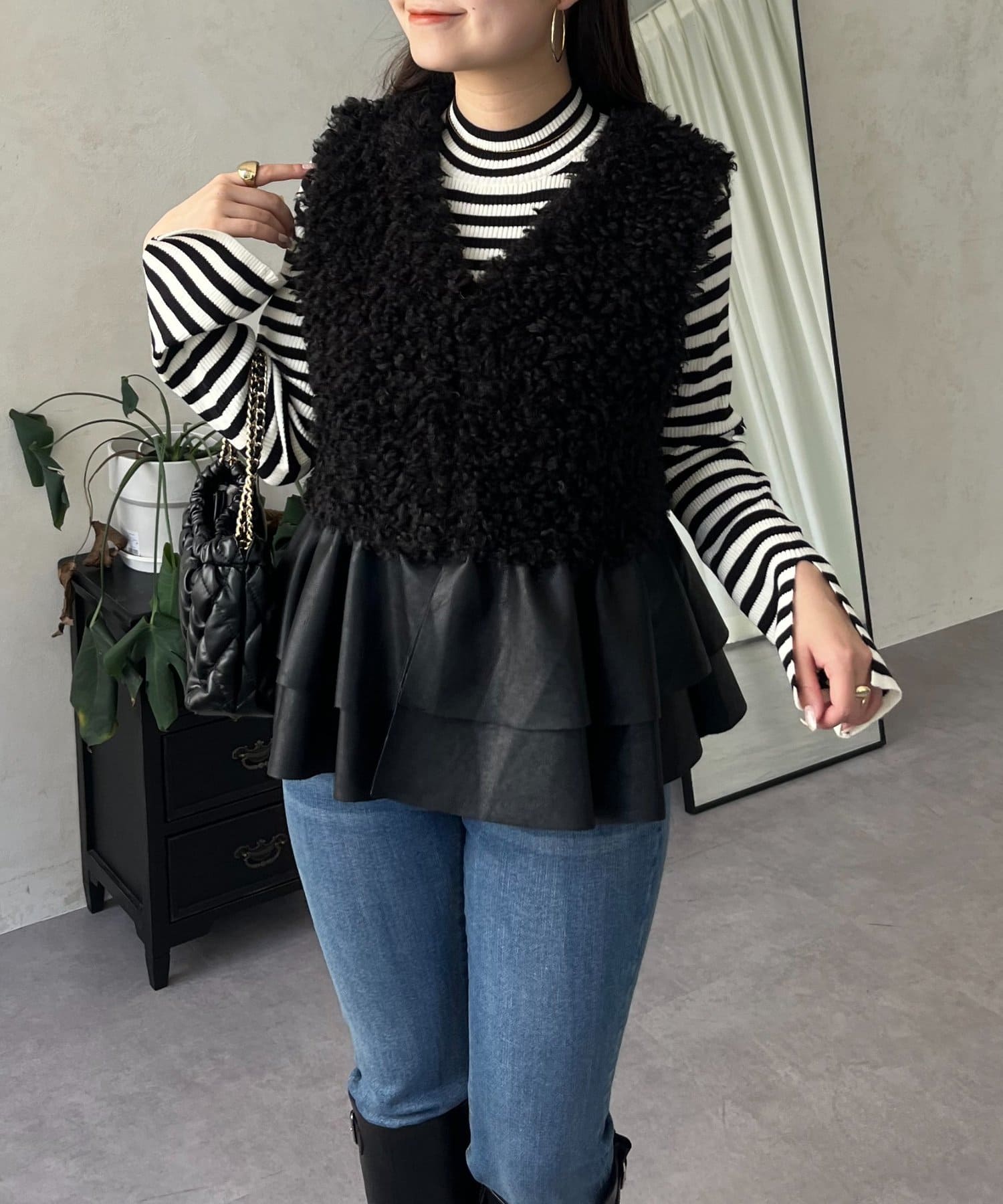 ファー/ベスト/体型カバー/大人カジュアル