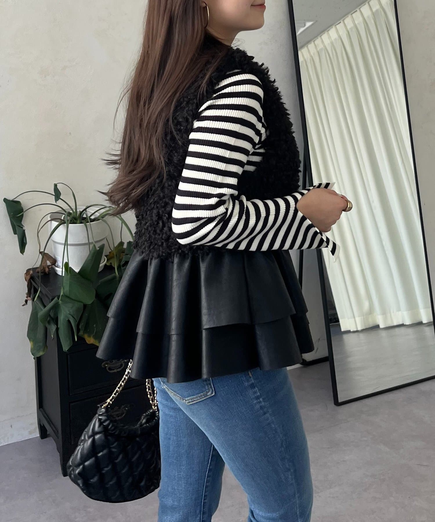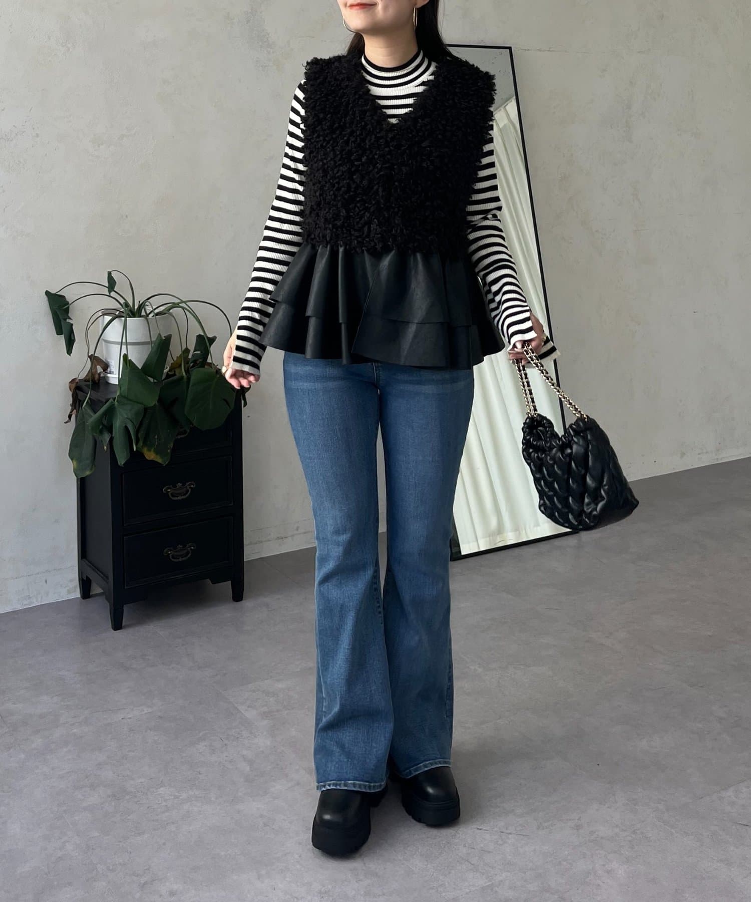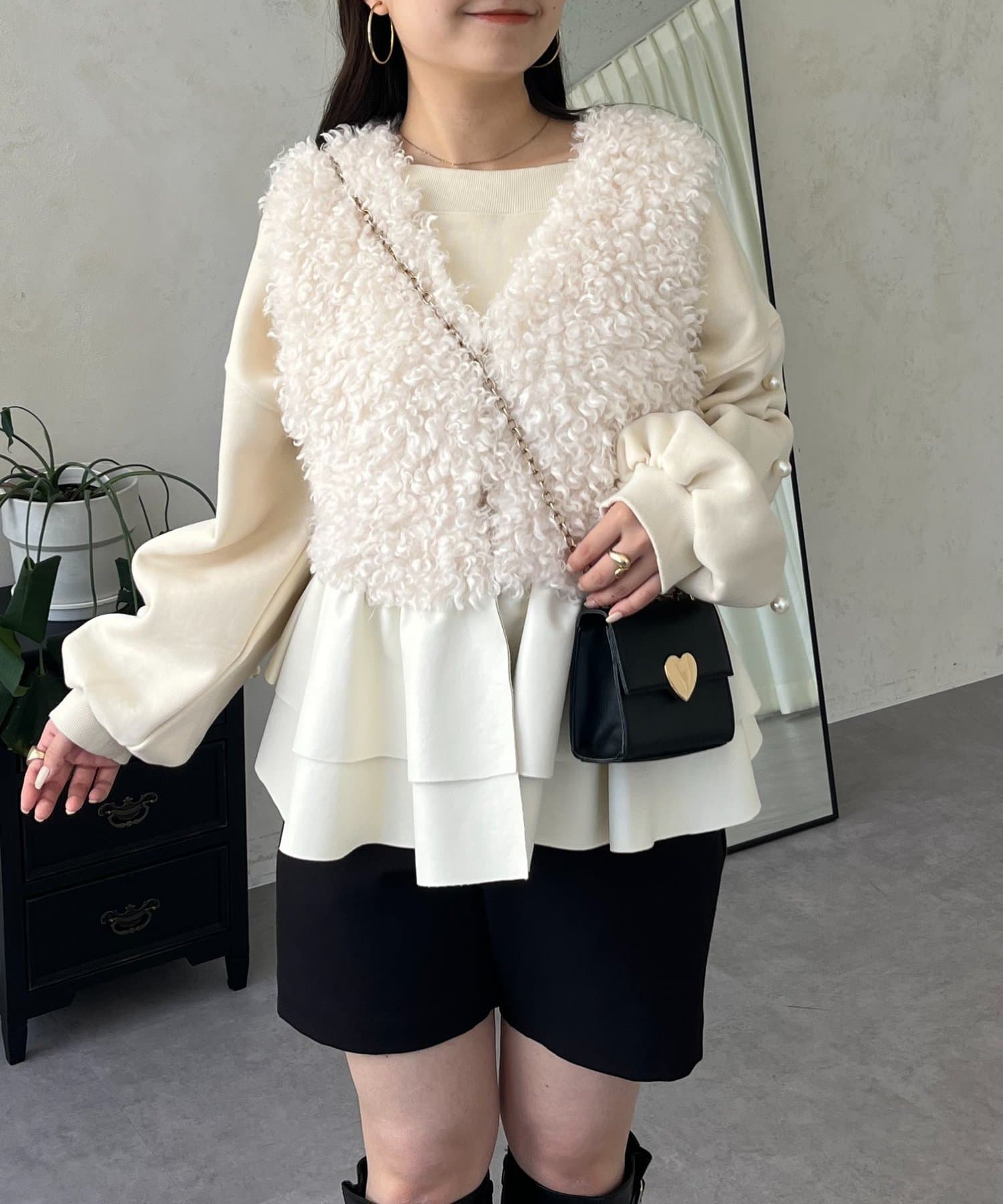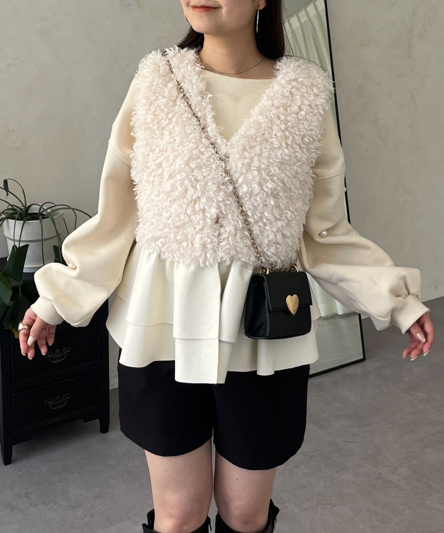 ファー/ベスト/体型カバー/大人カジュアル