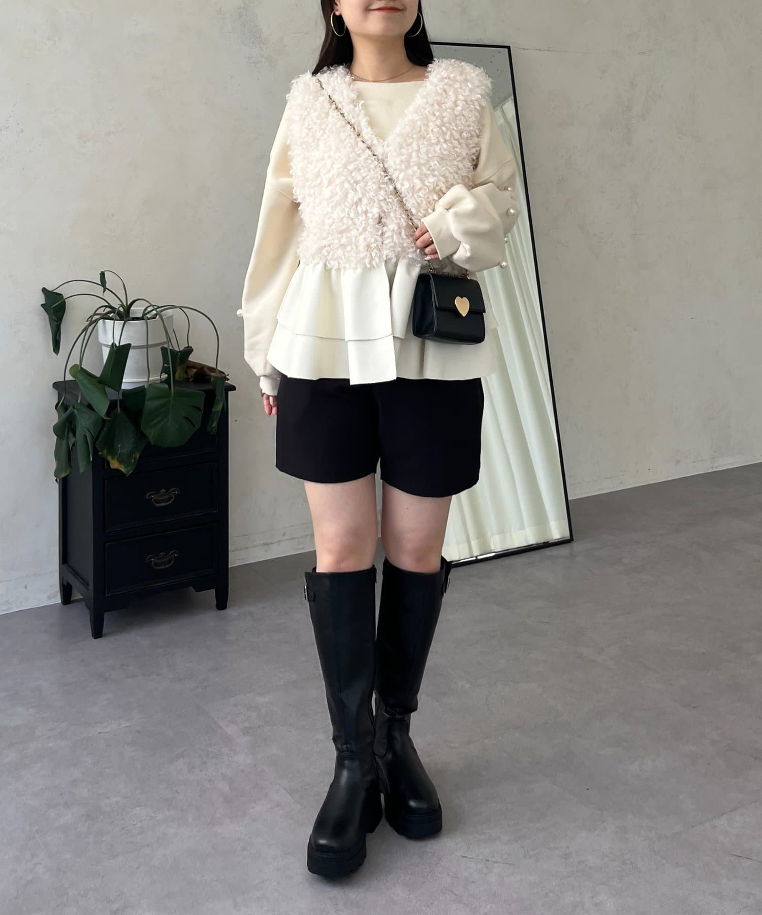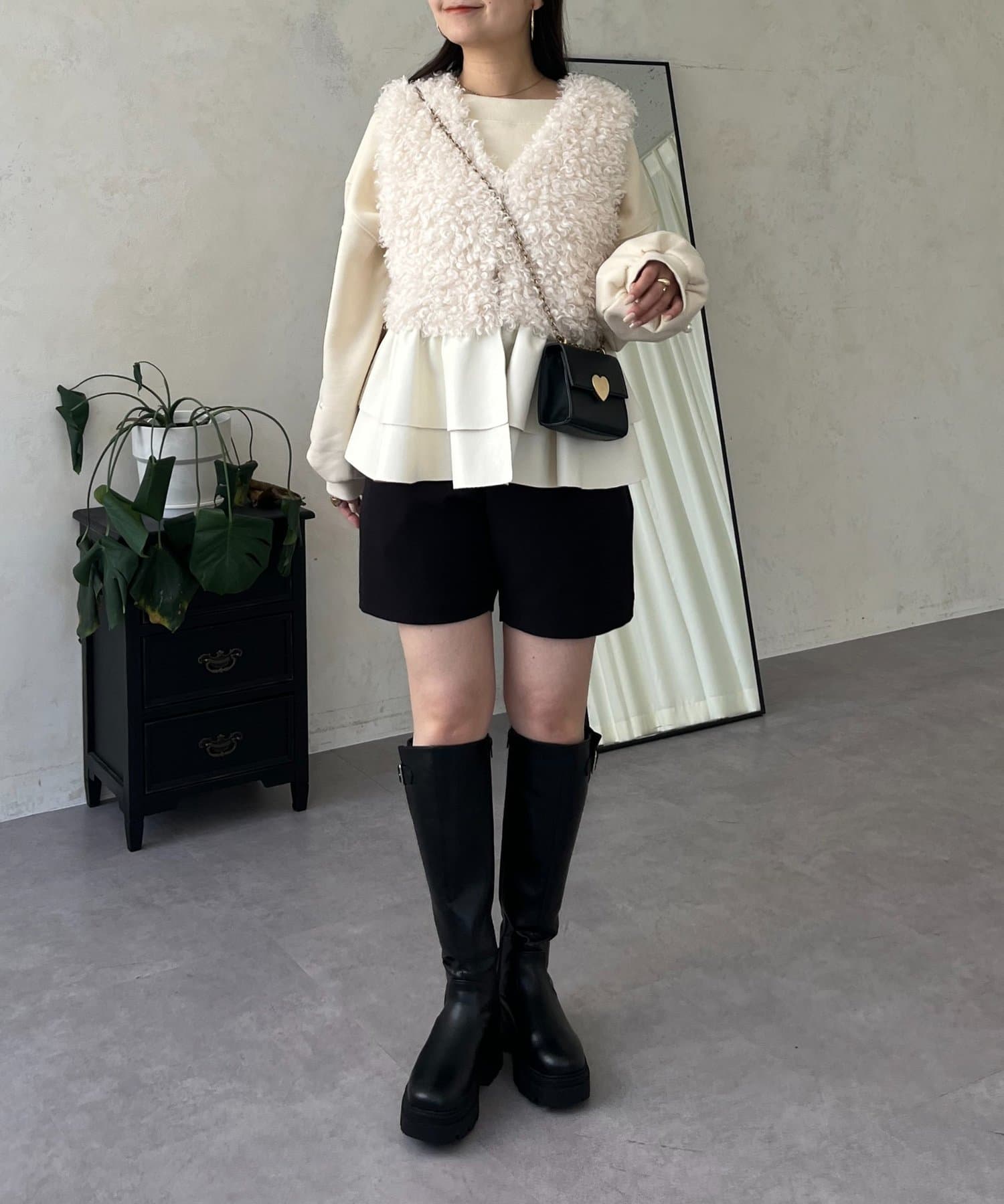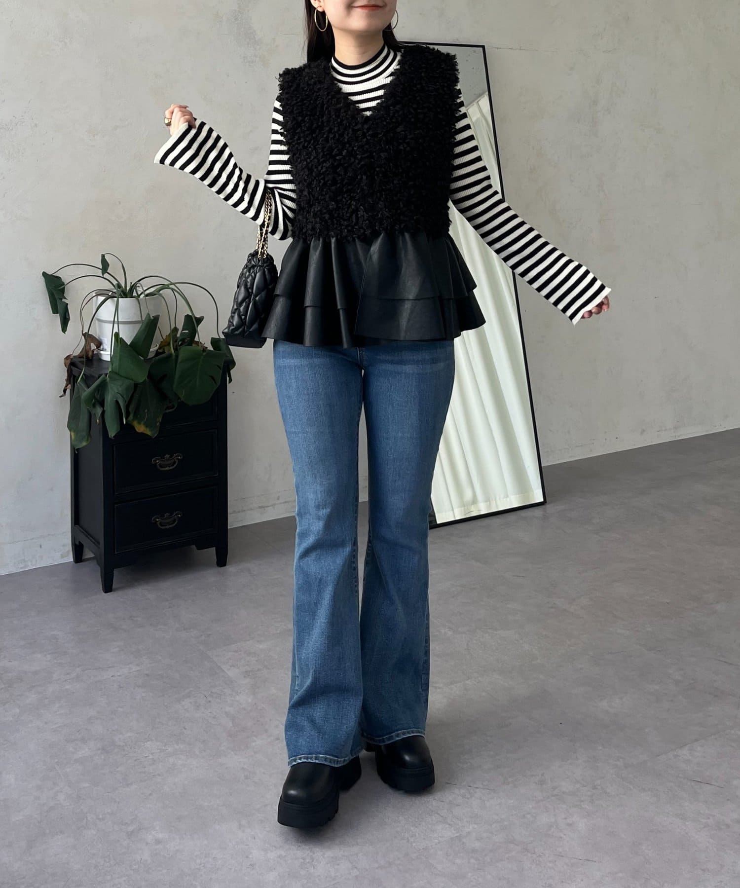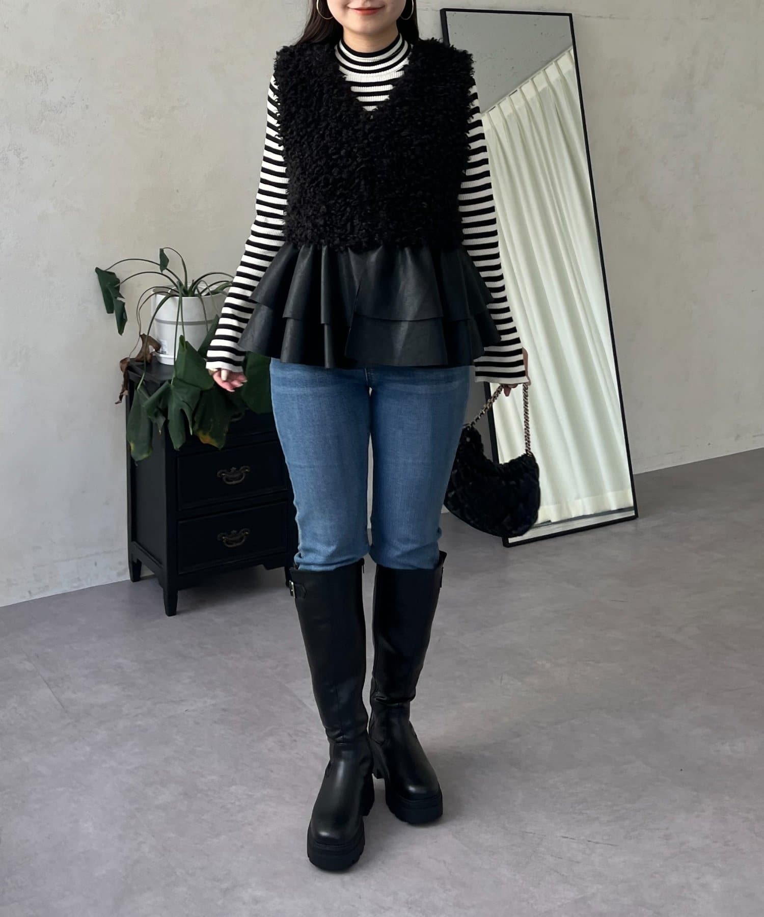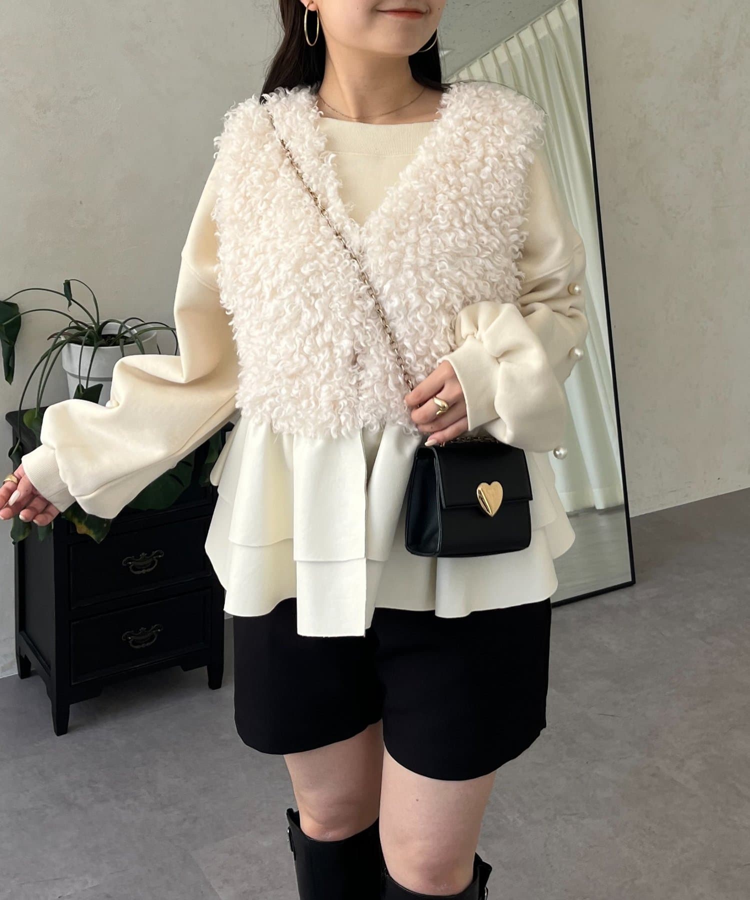 ファー/ベスト/体型カバー/大人カジュアル