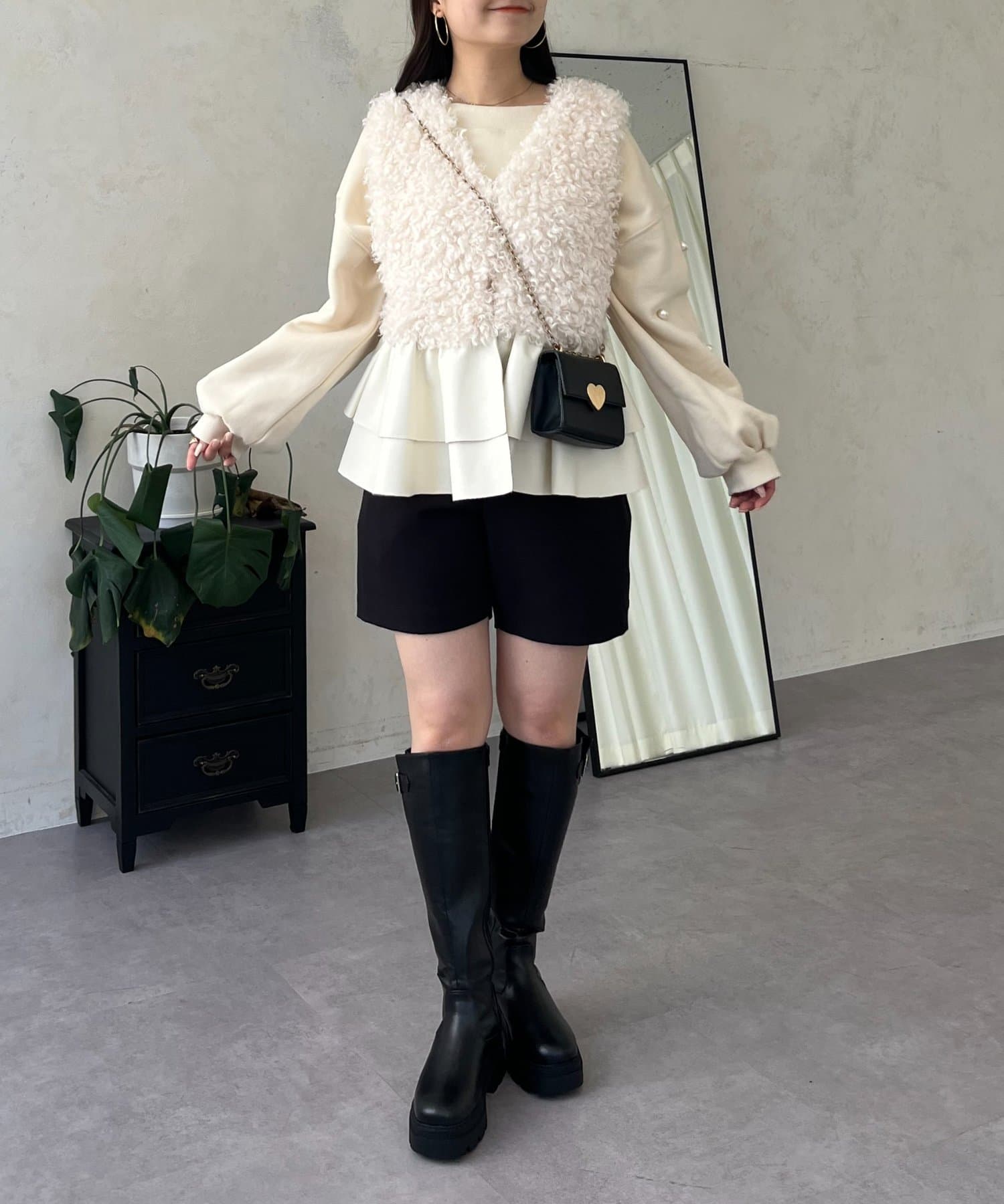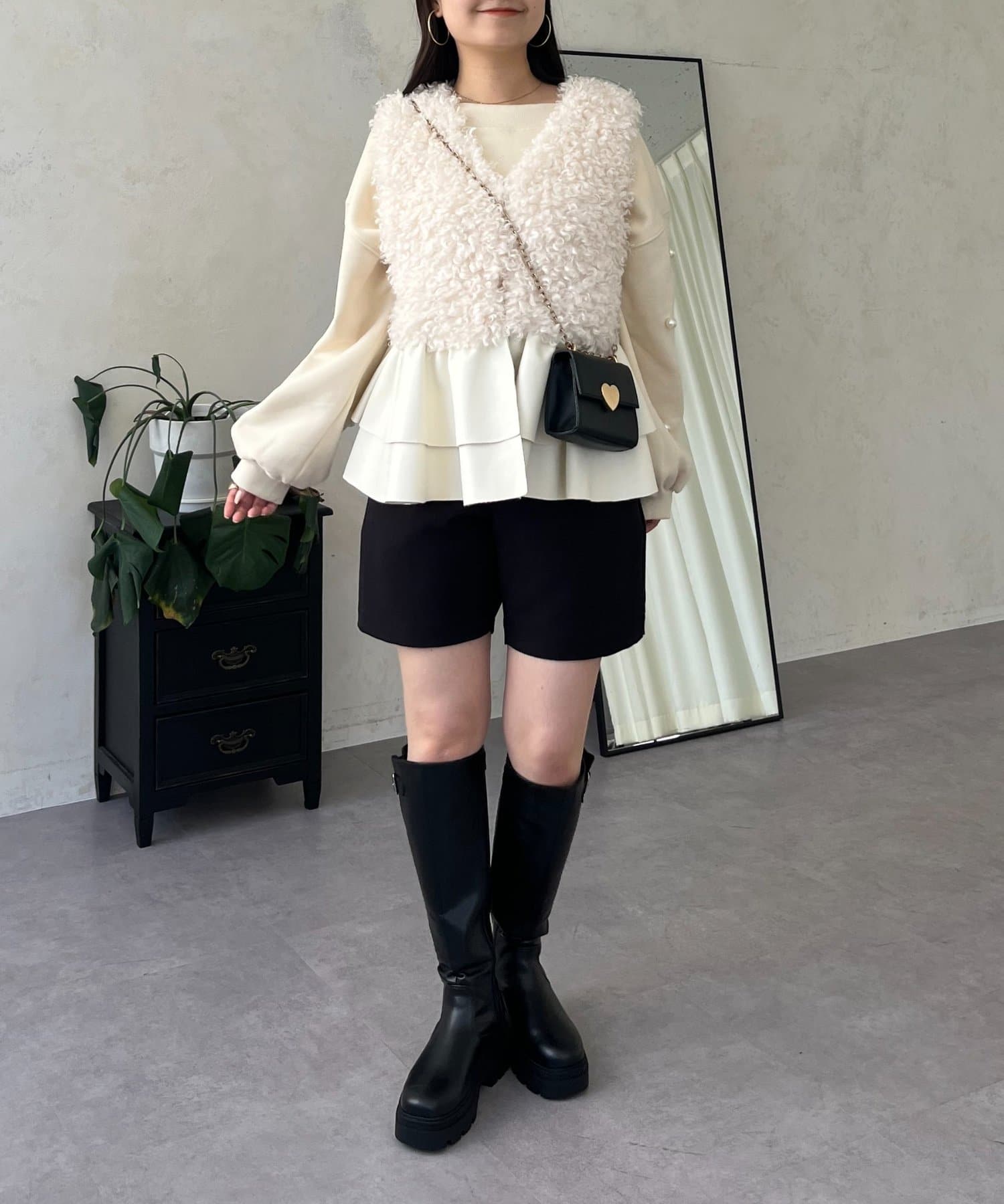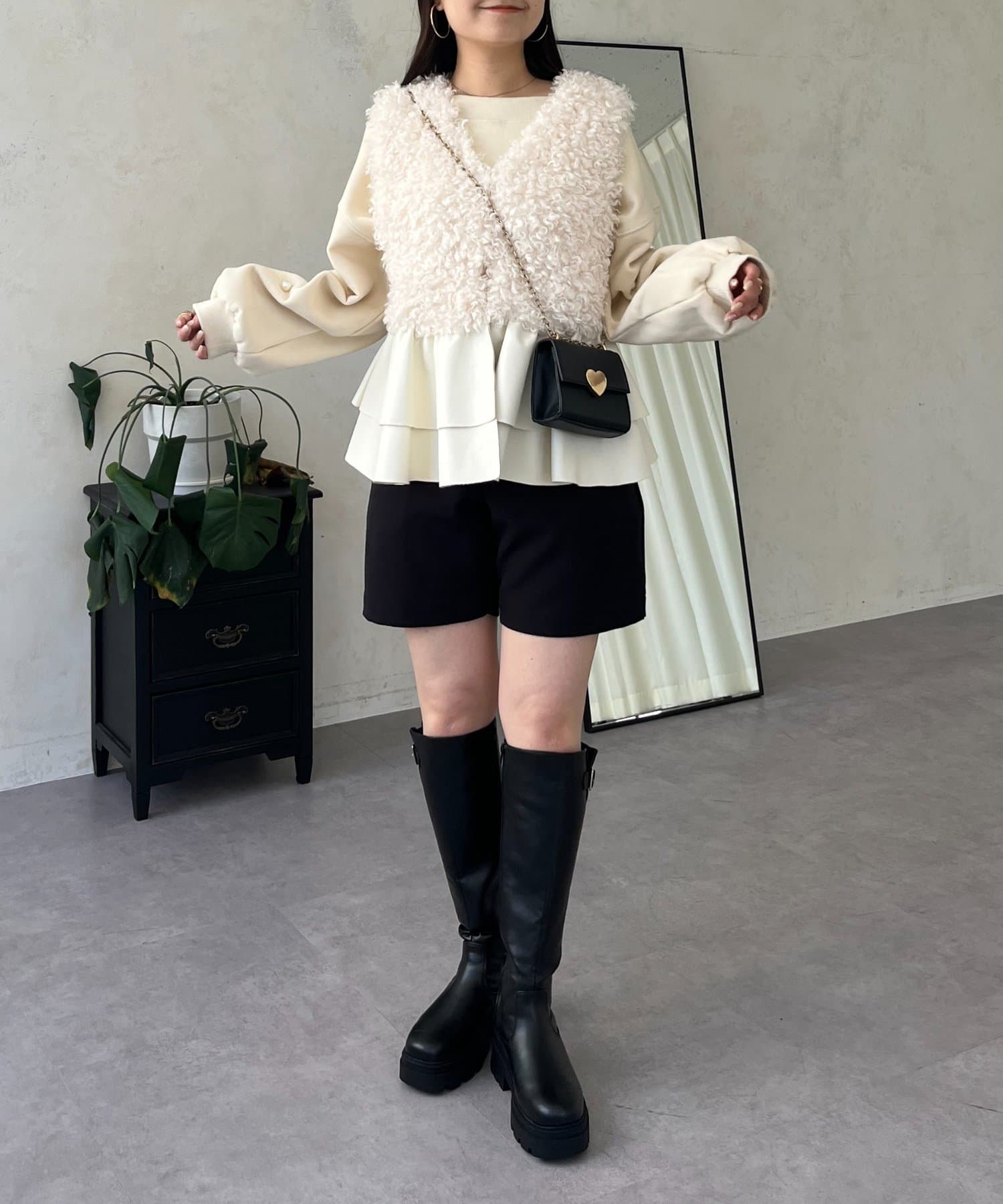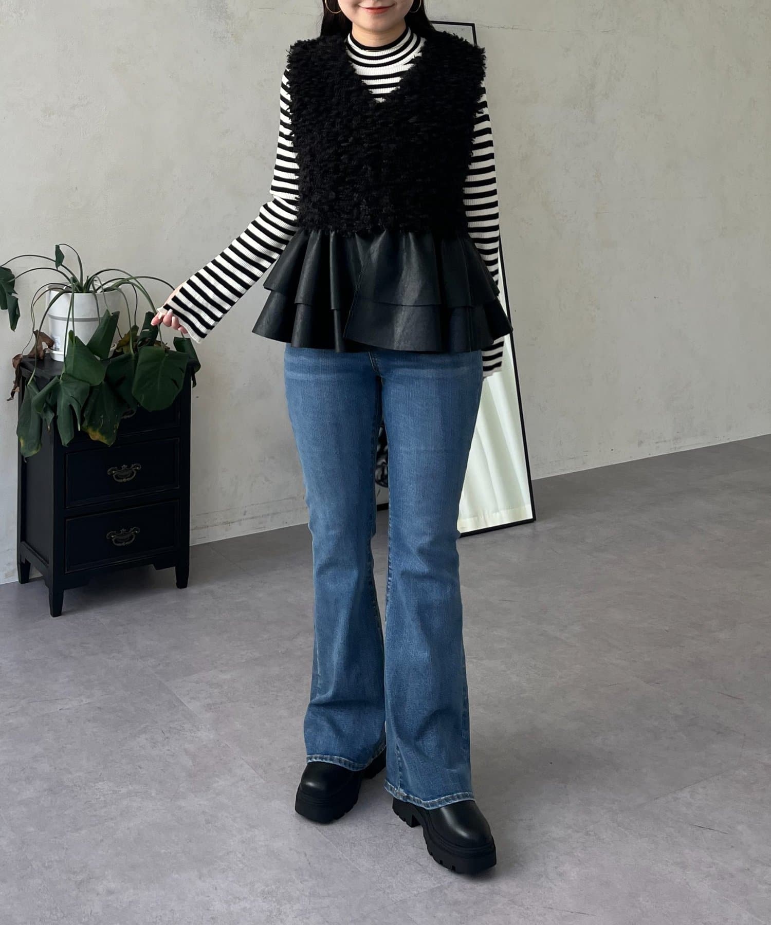ファー/ベスト/体型カバー/大人カジュアル