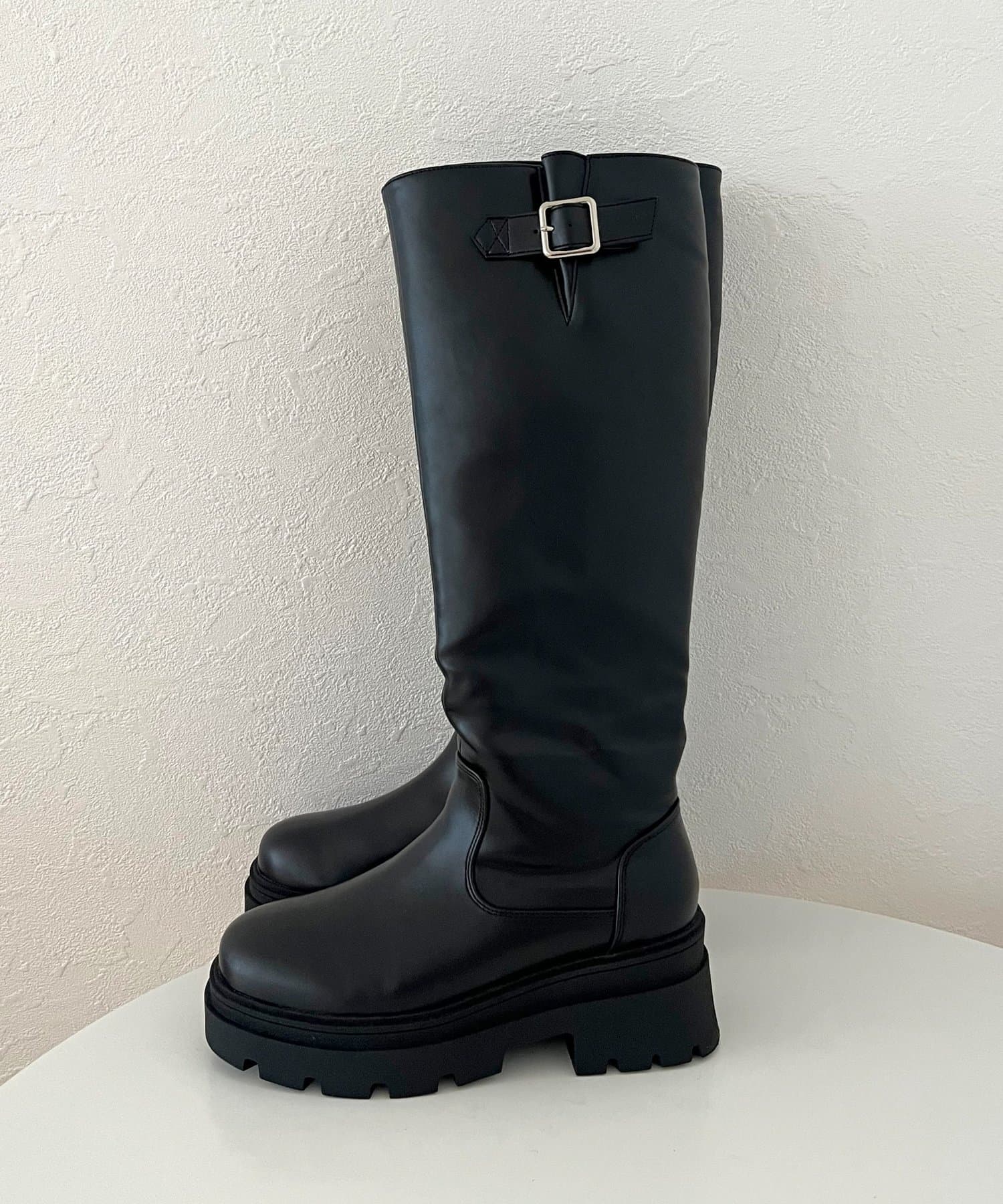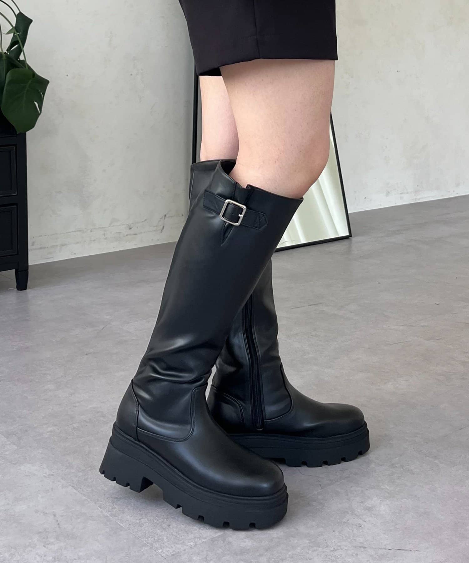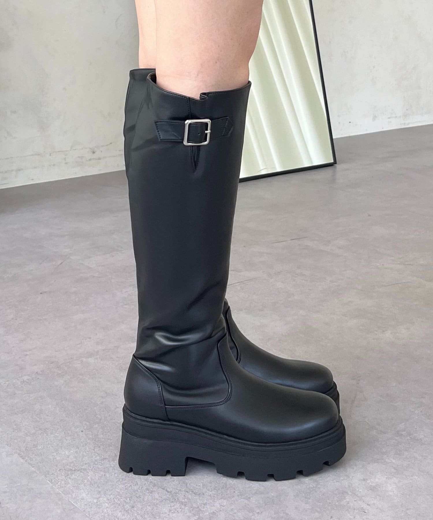厚底/ロングブーツ/フェイクレザー/大人カジュアル
