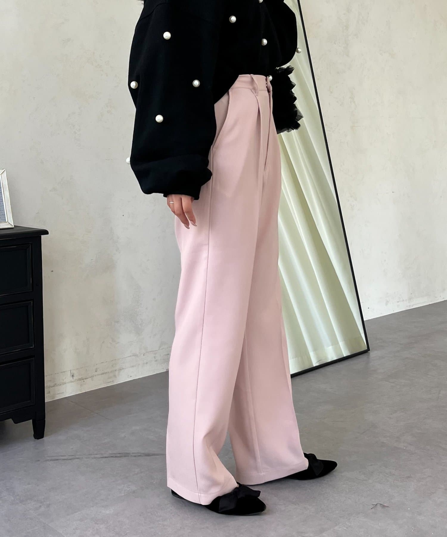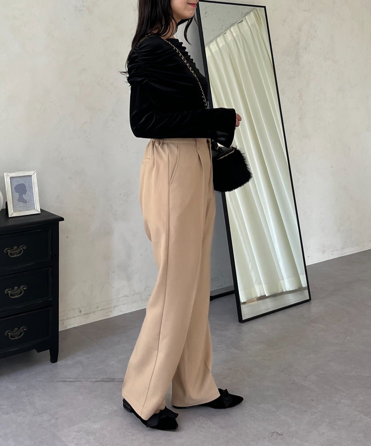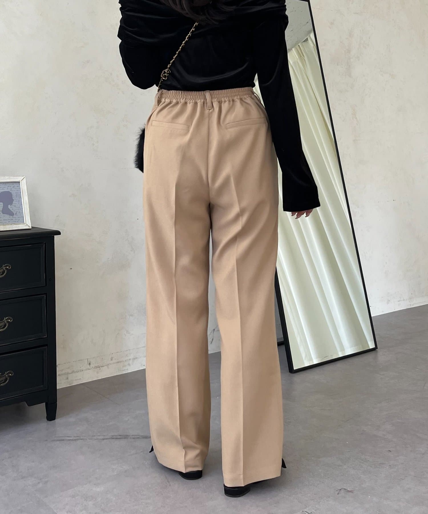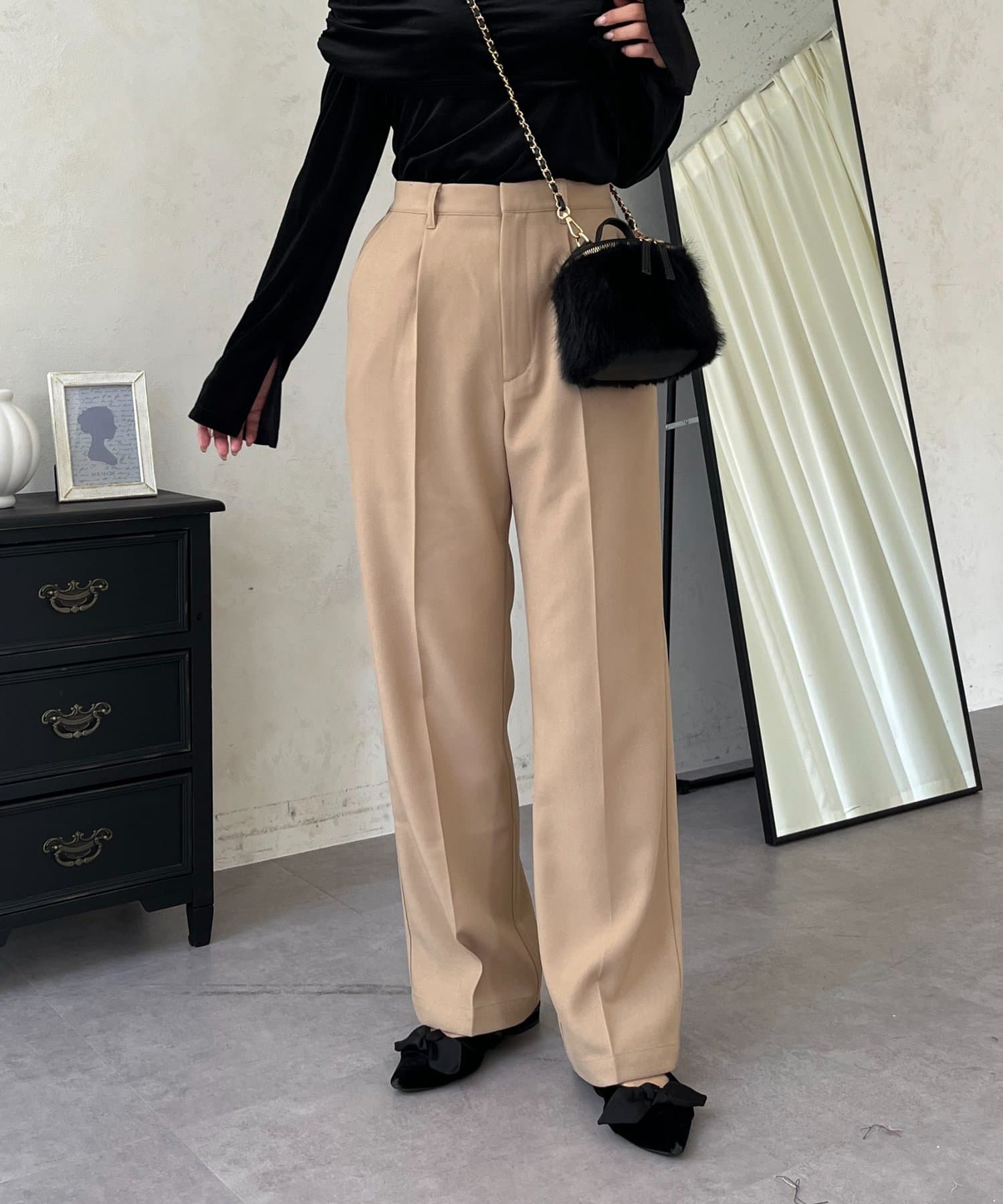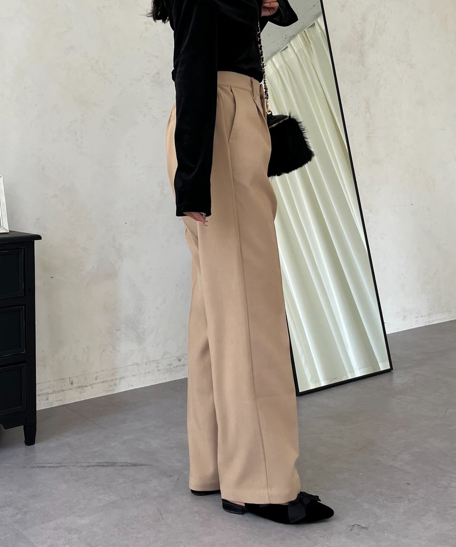 ●定番のタックパンツよりもスッキリめのシルエットで