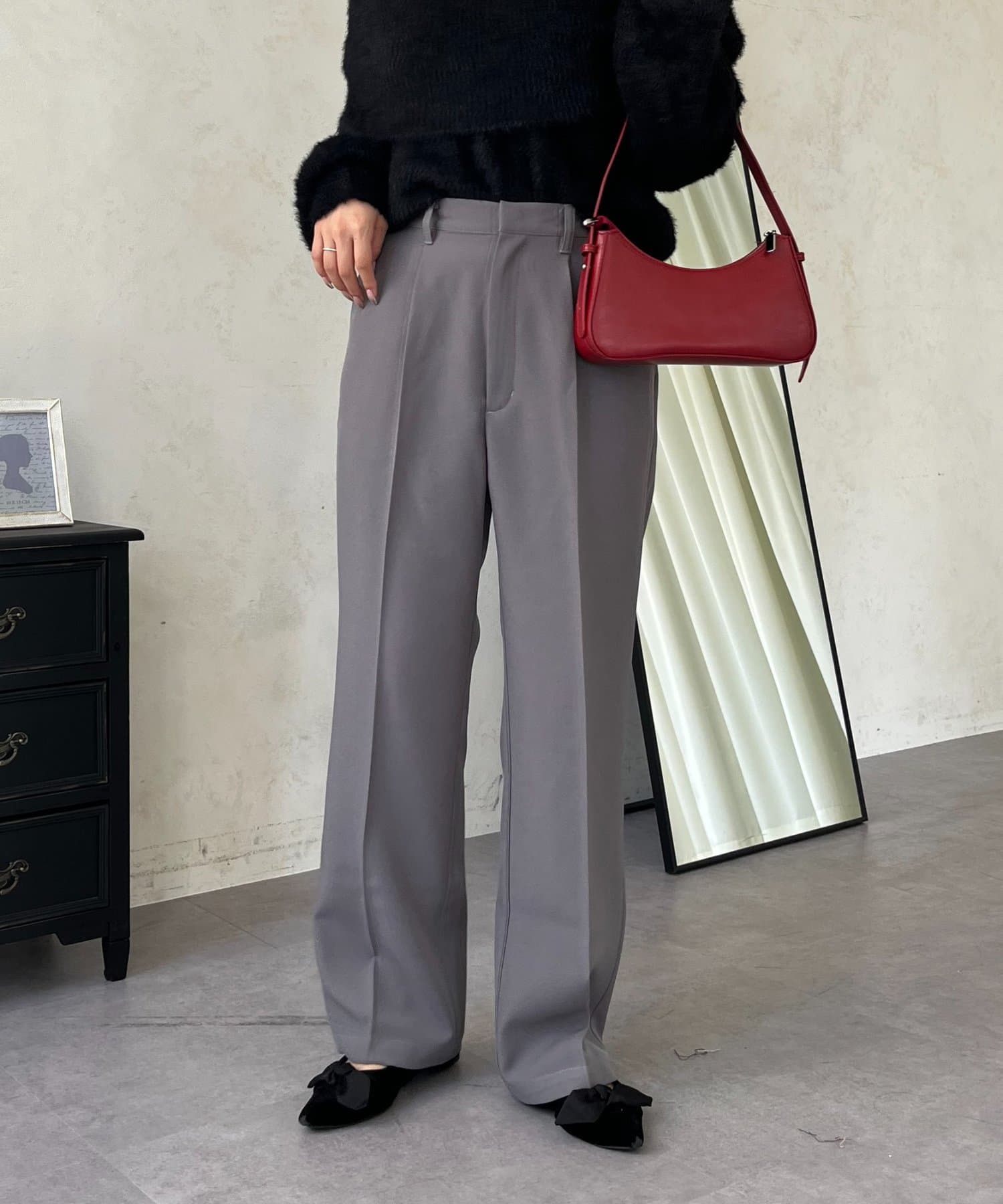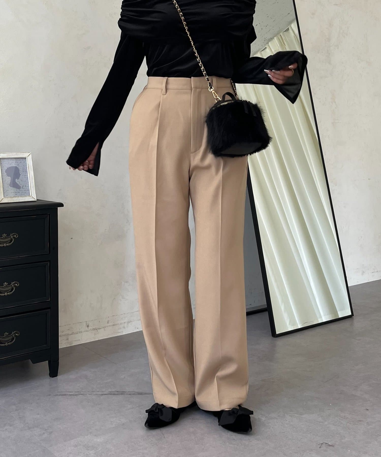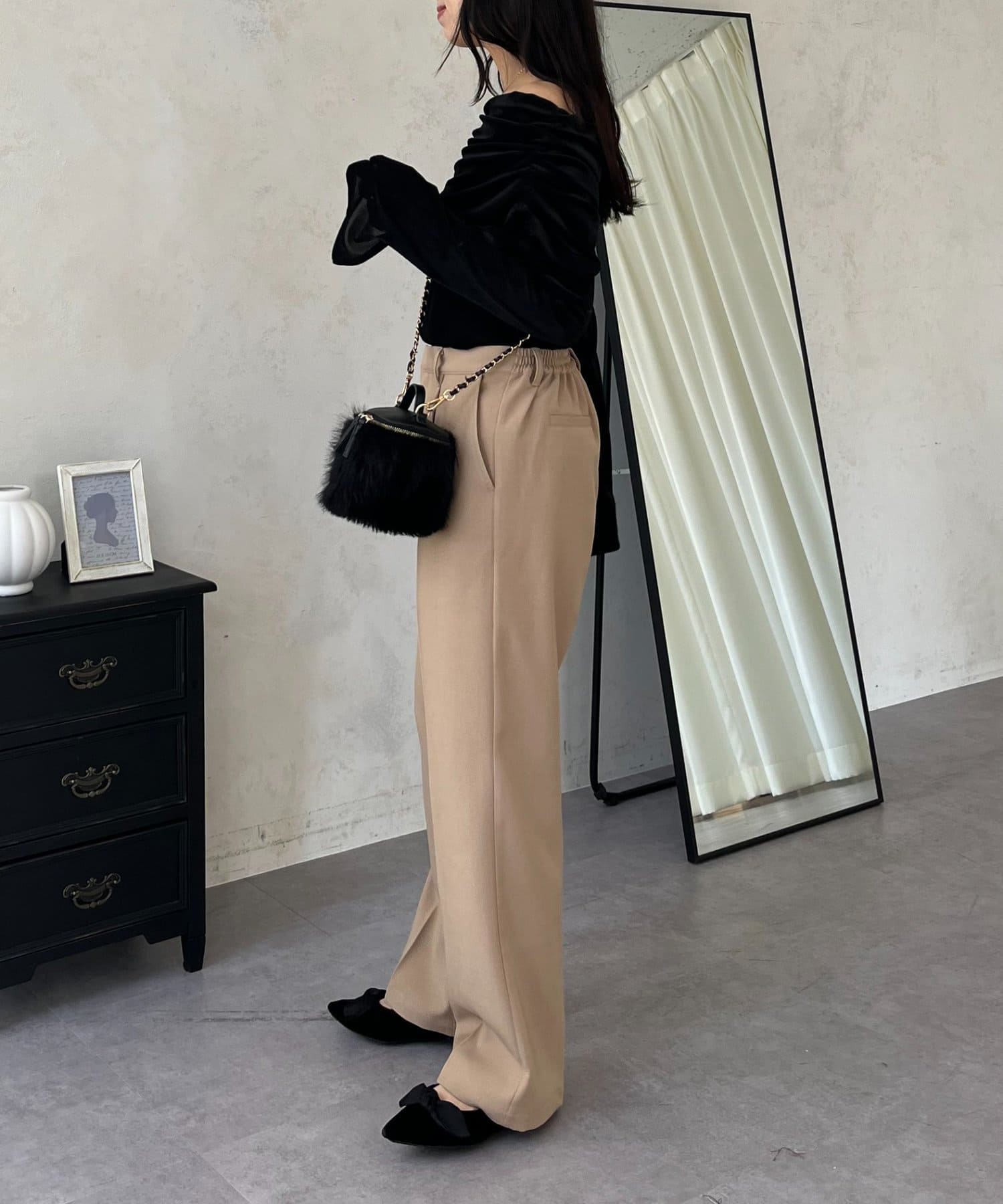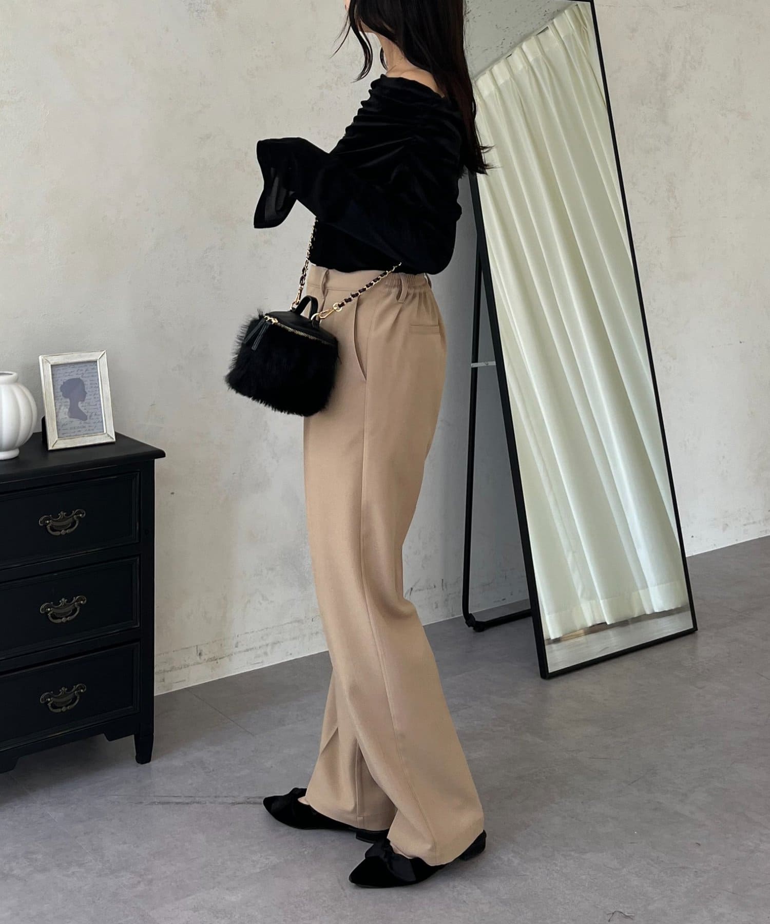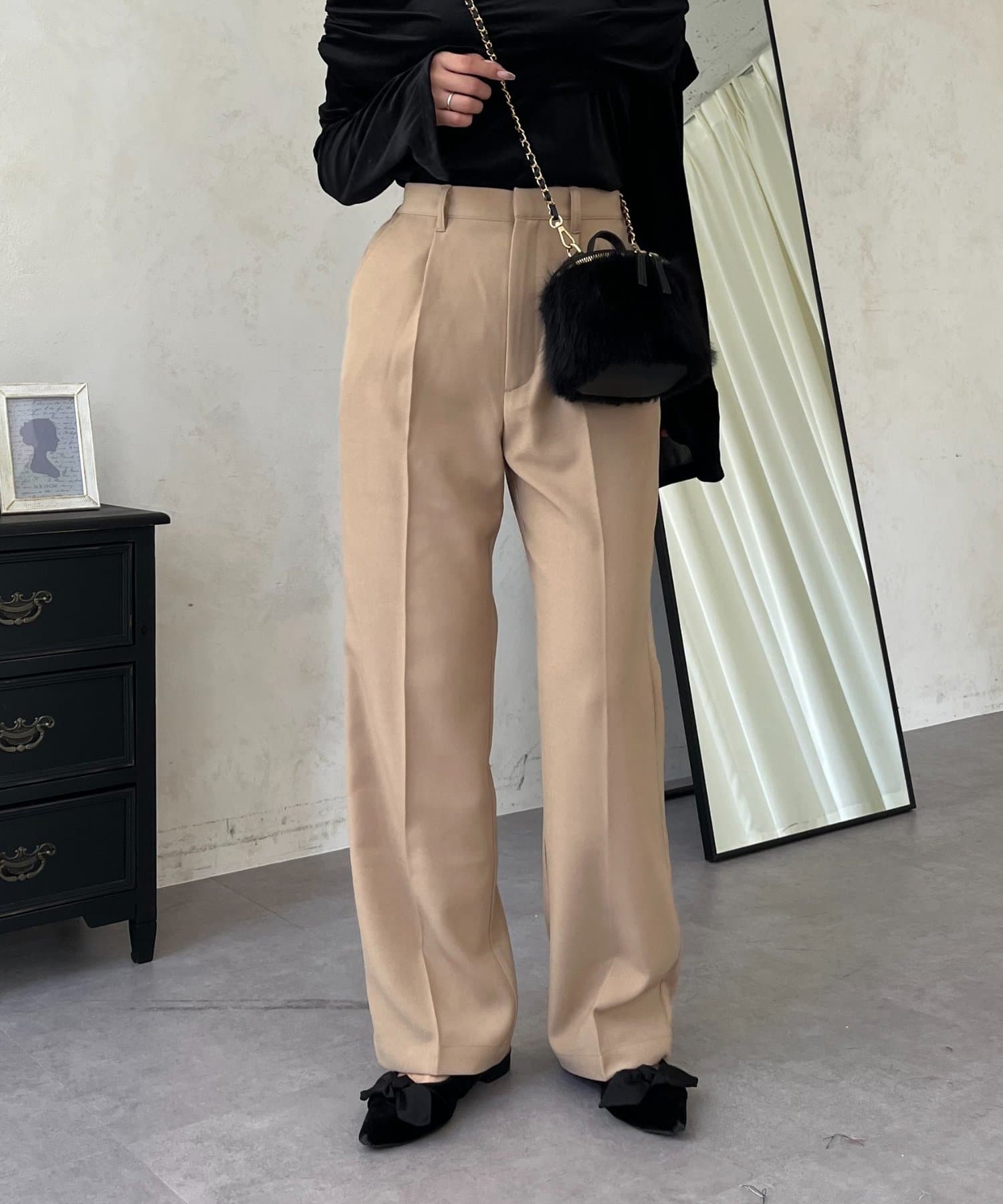 ●定番のタックパンツよりもスッキリめのシルエットで