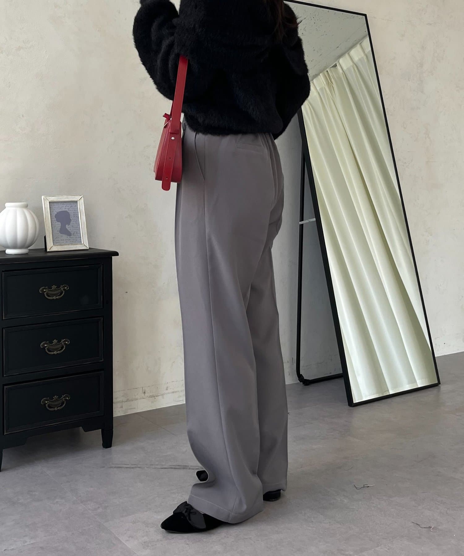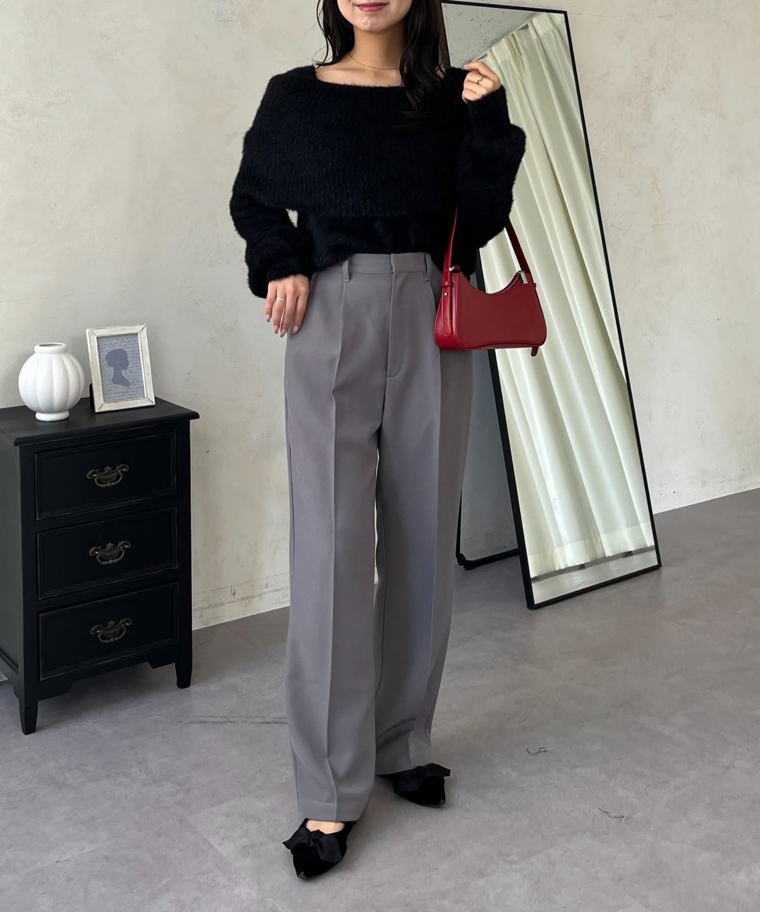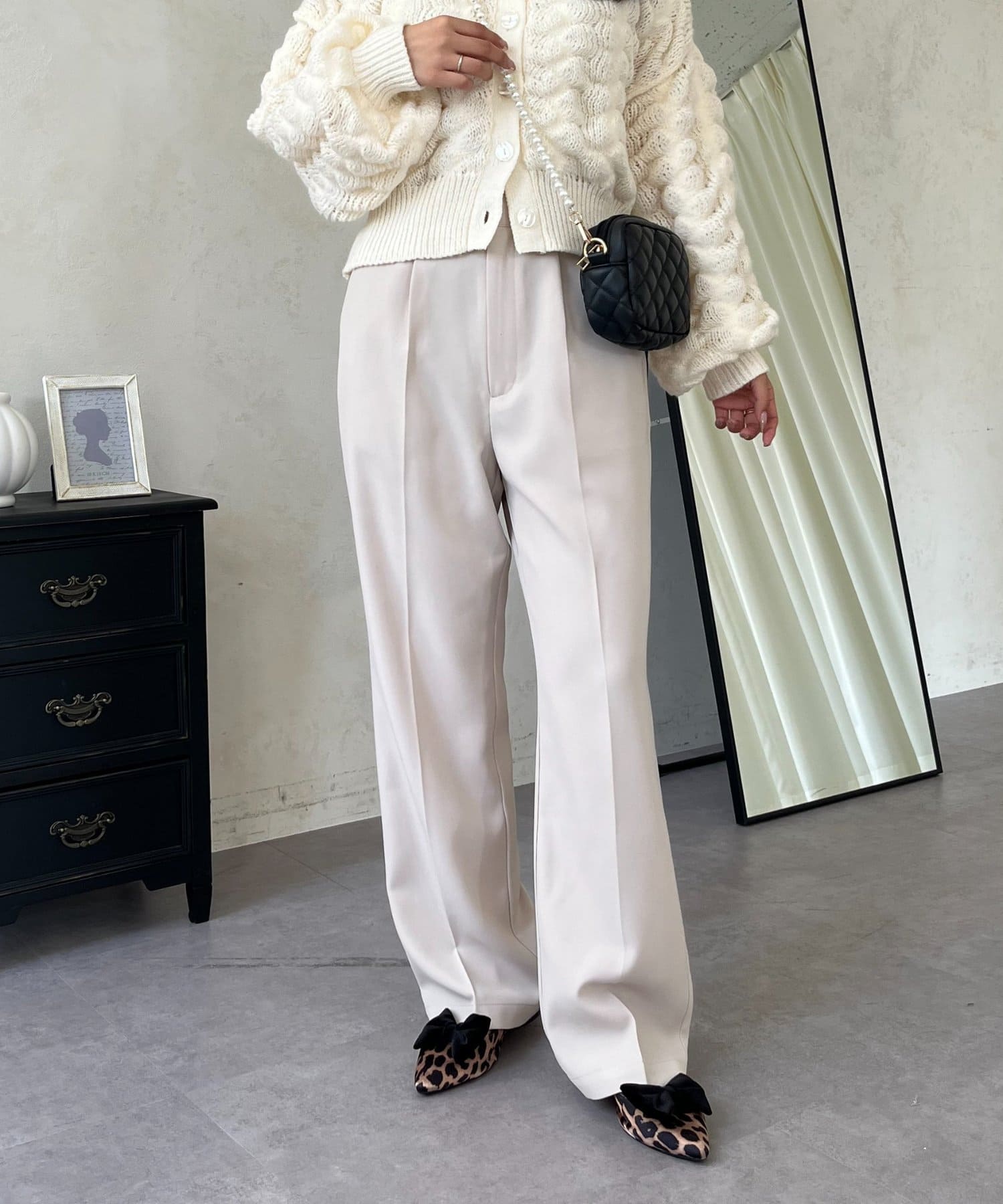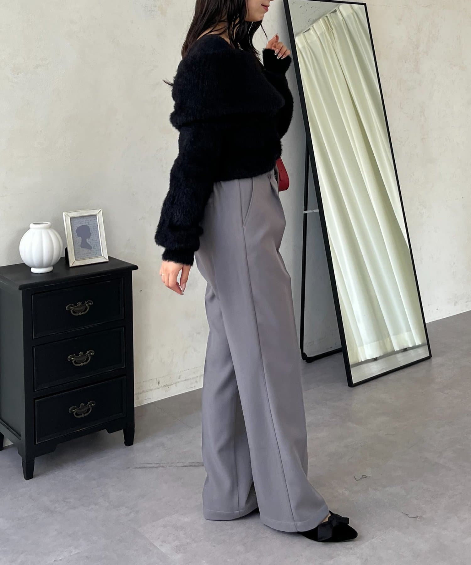 ●定番のタックパンツよりもスッキリめのシルエットで
