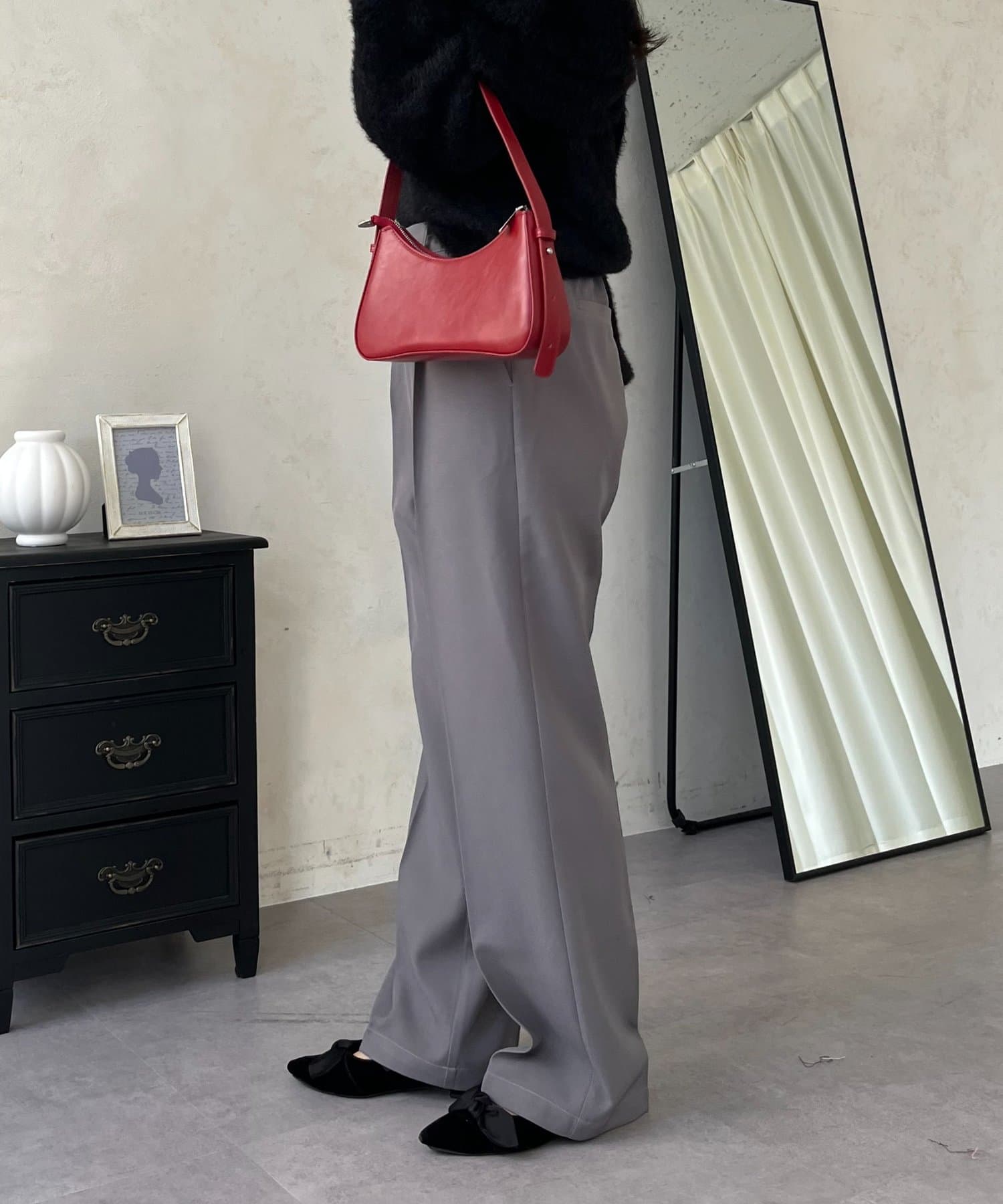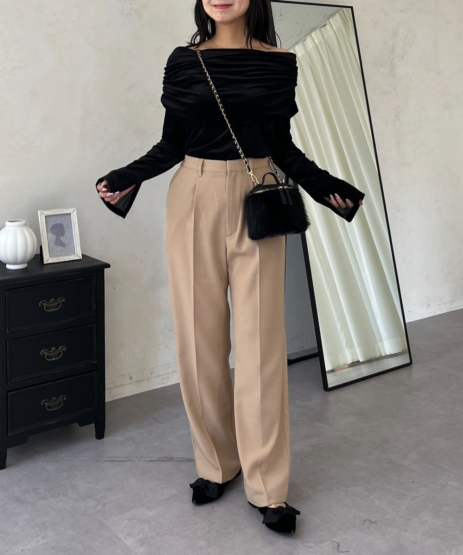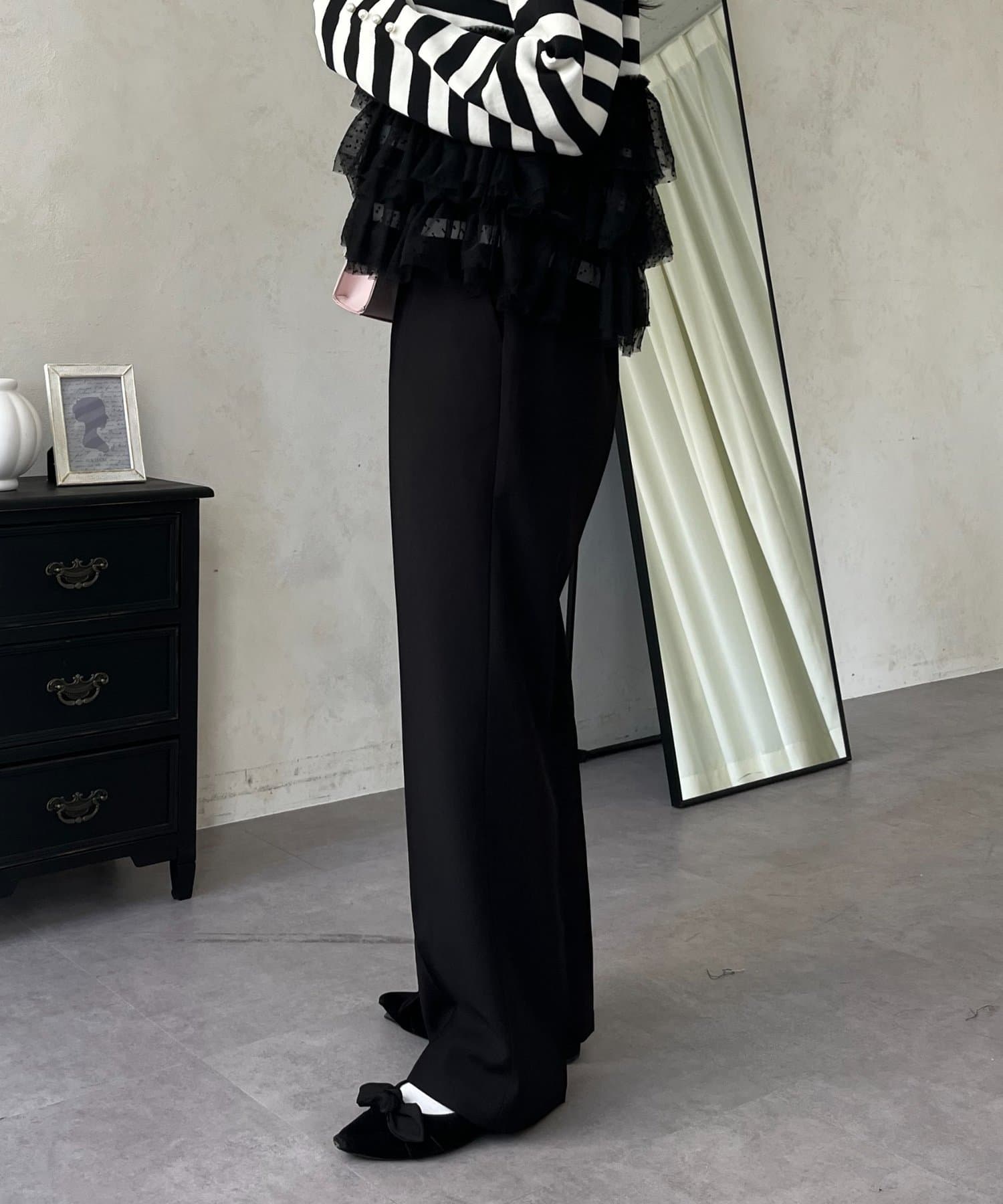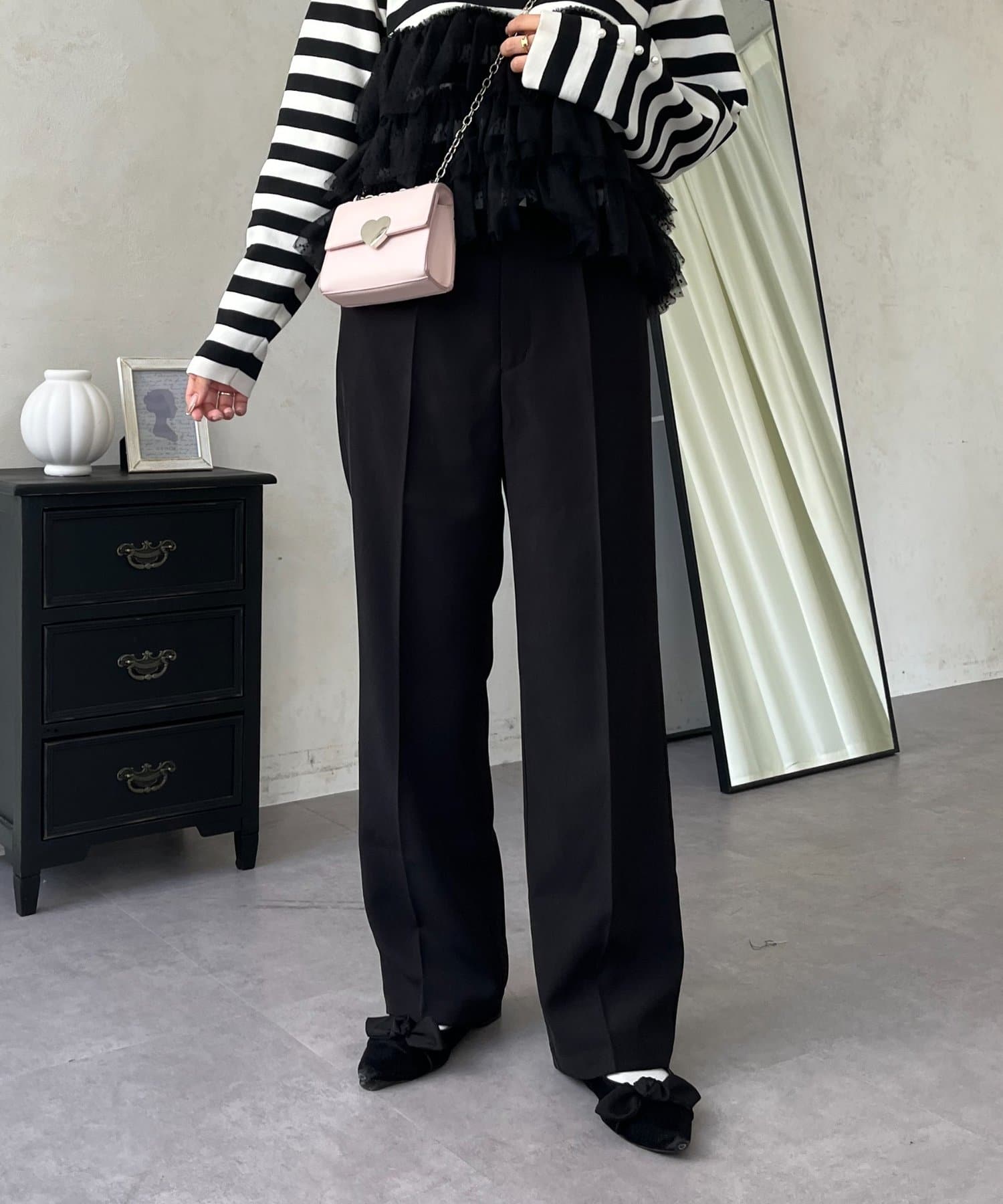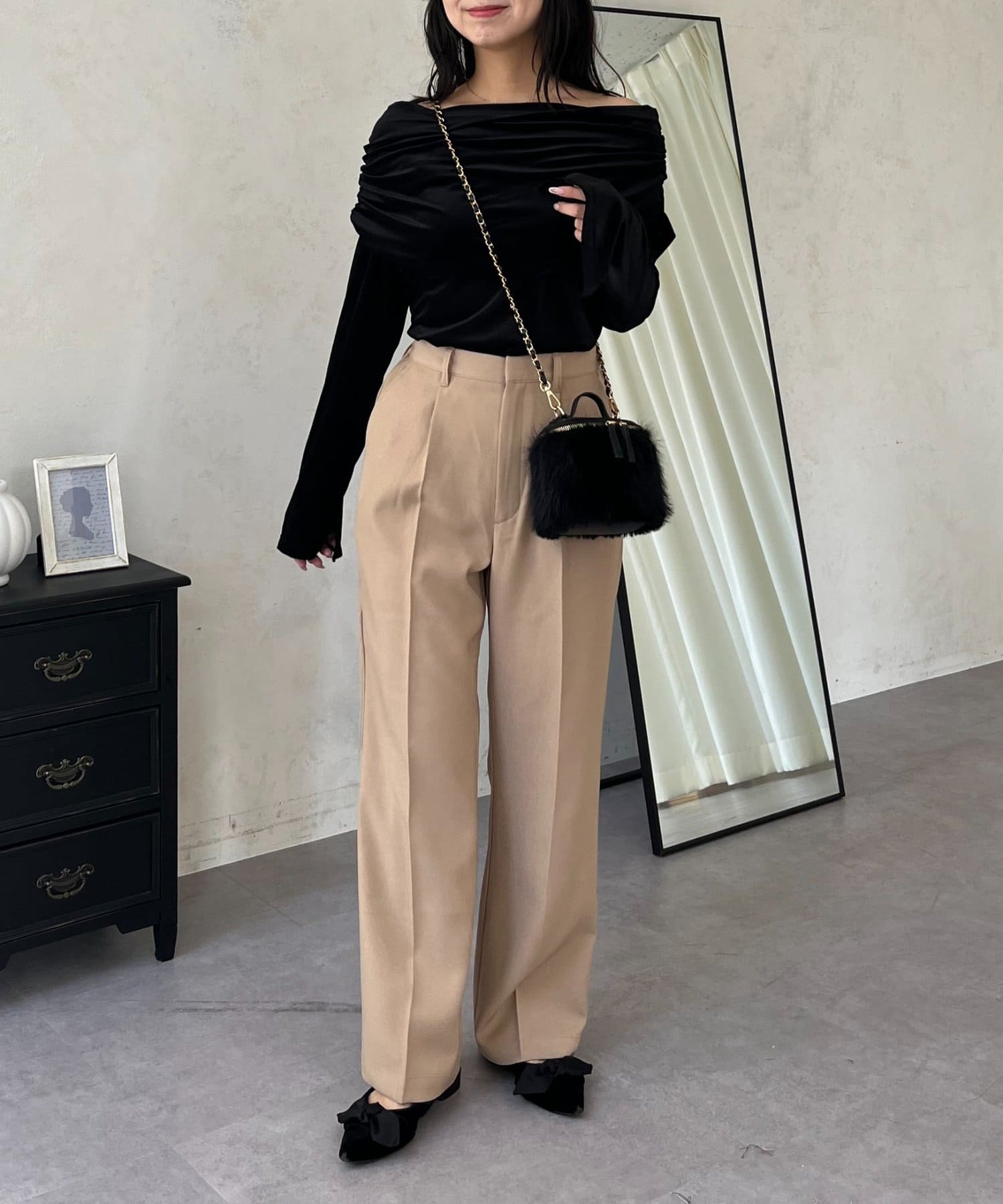 ●定番のタックパンツよりもスッキリめのシルエットで