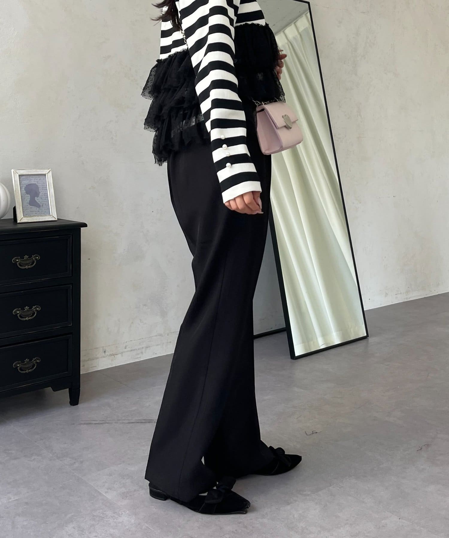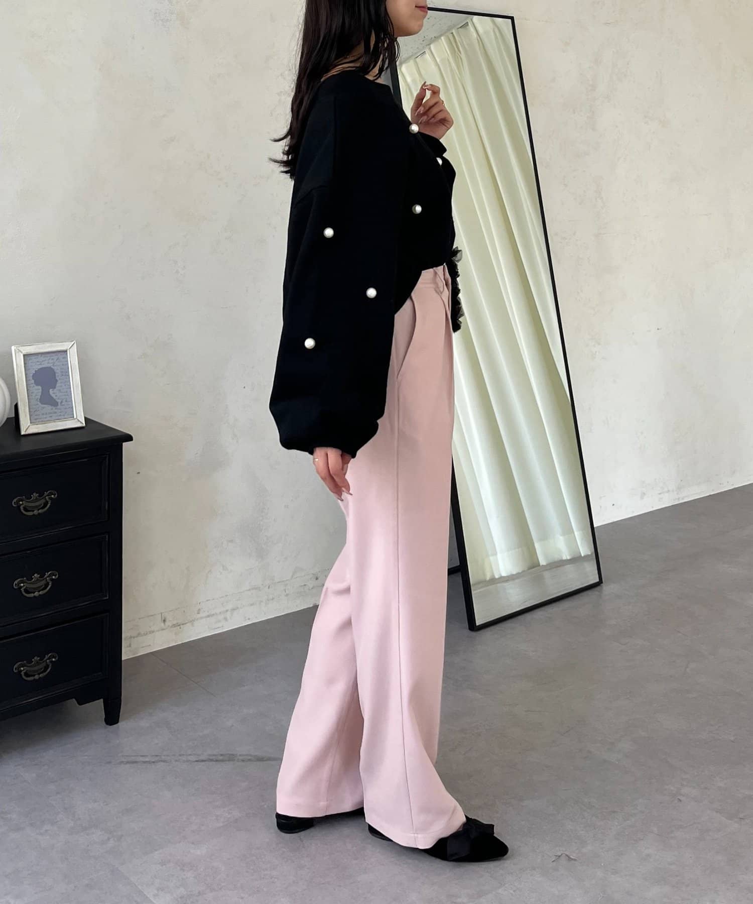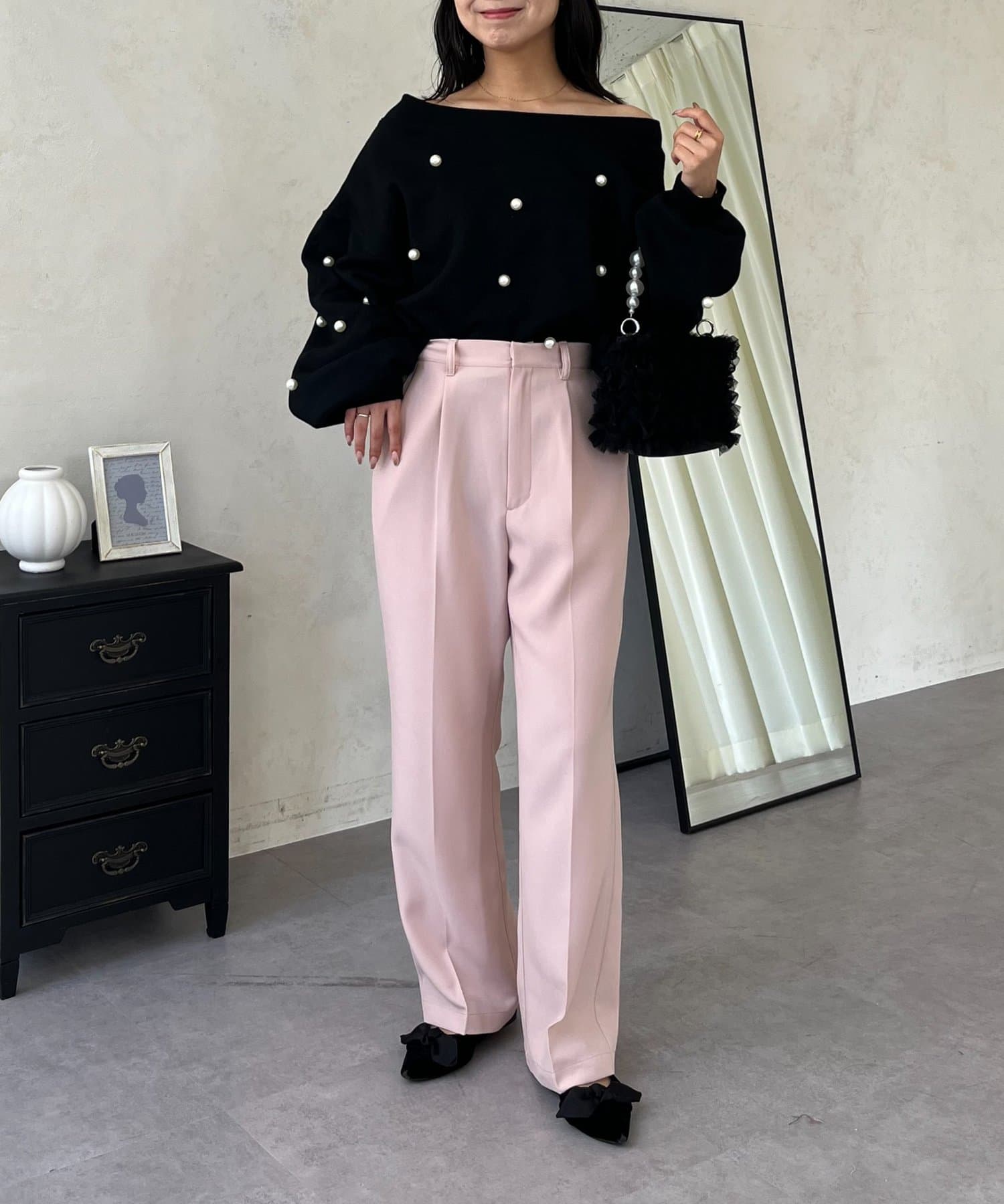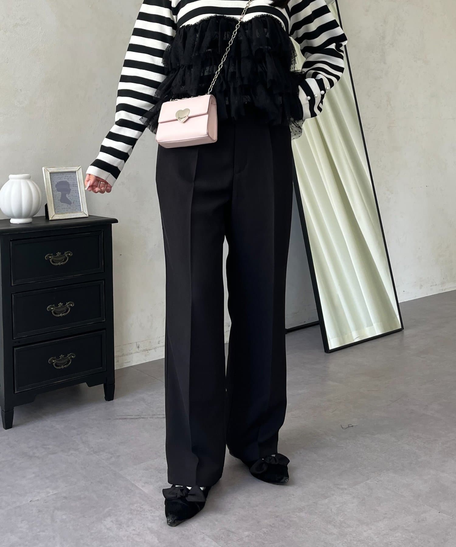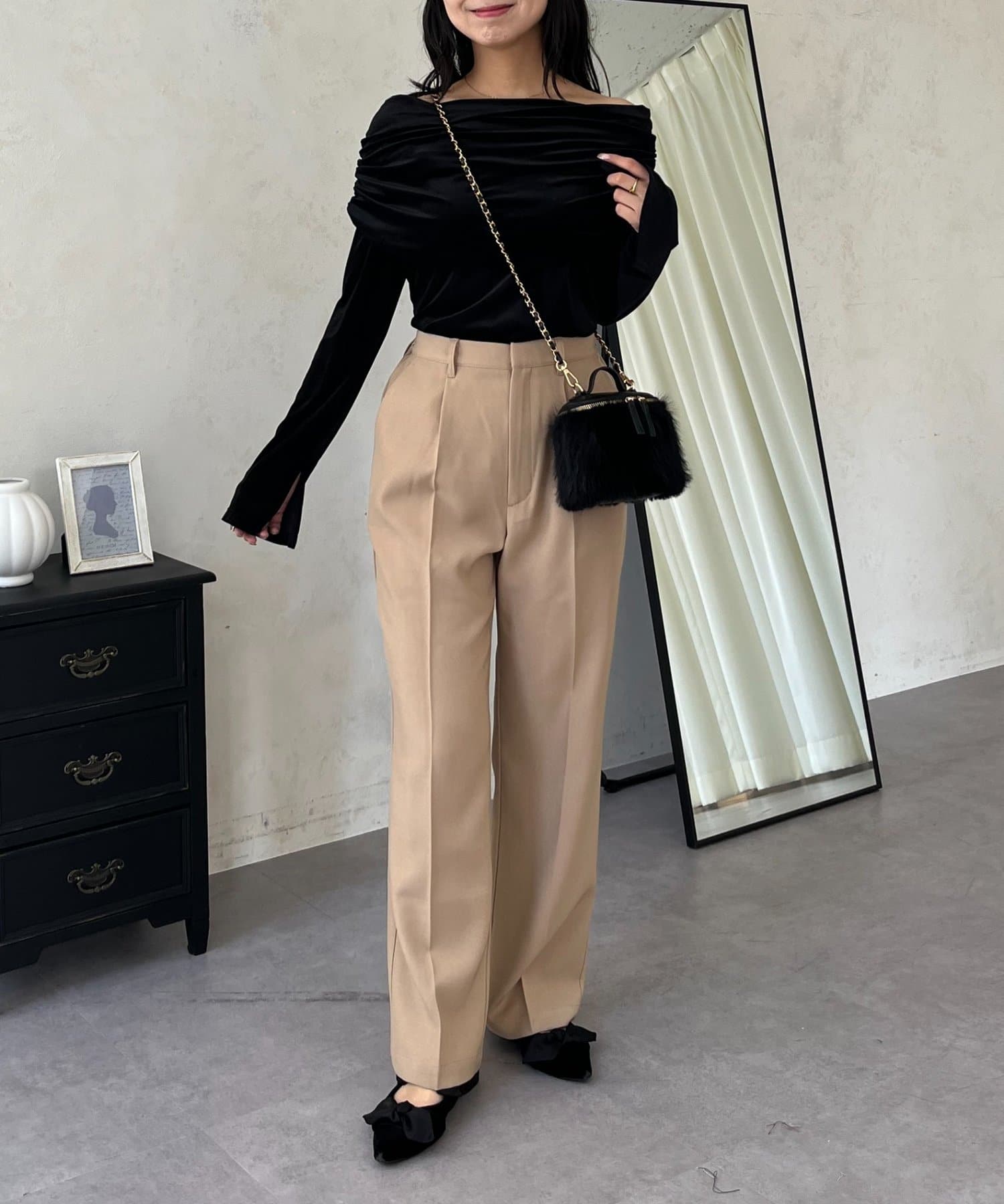 ●定番のタックパンツよりもスッキリめのシルエットで