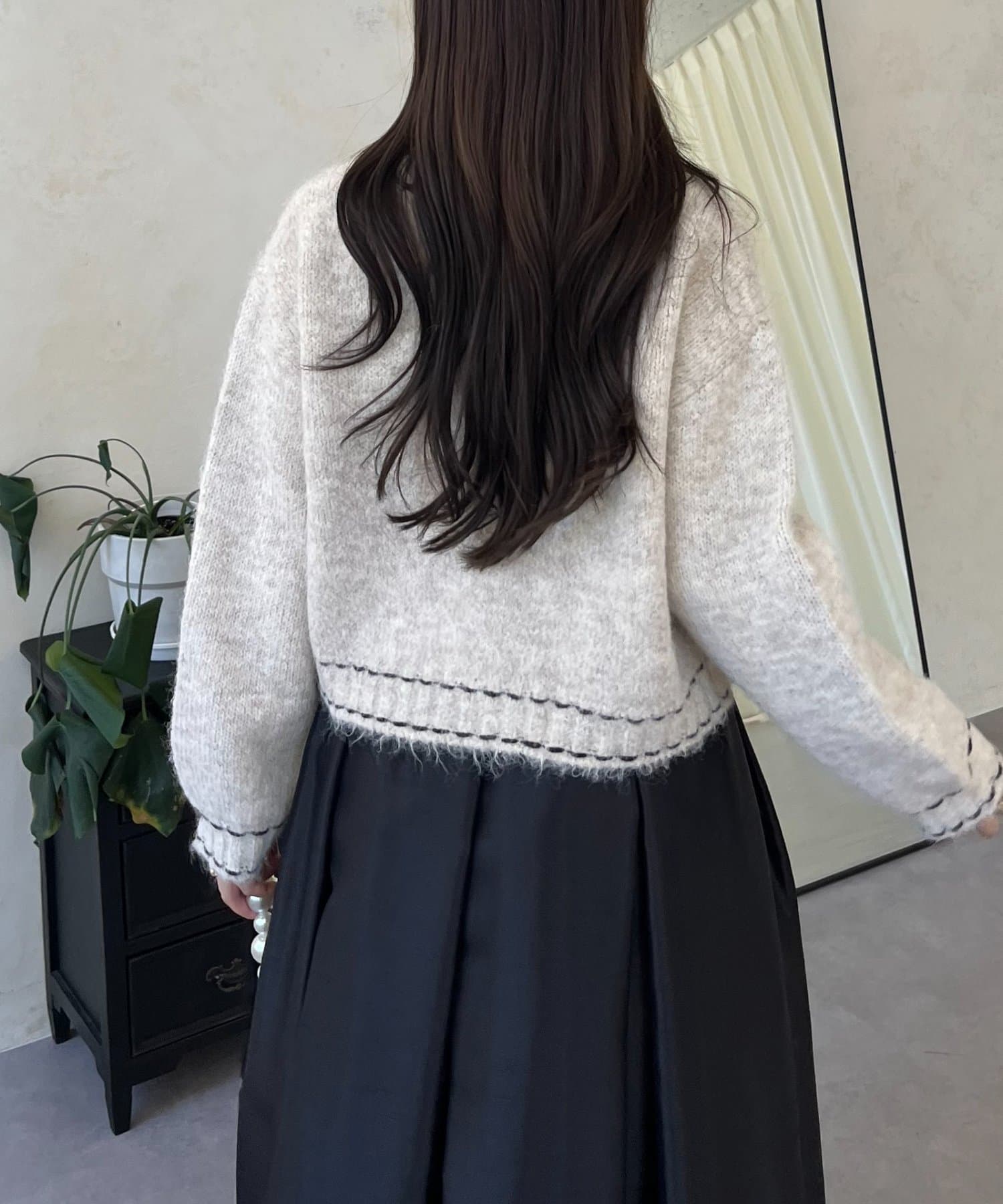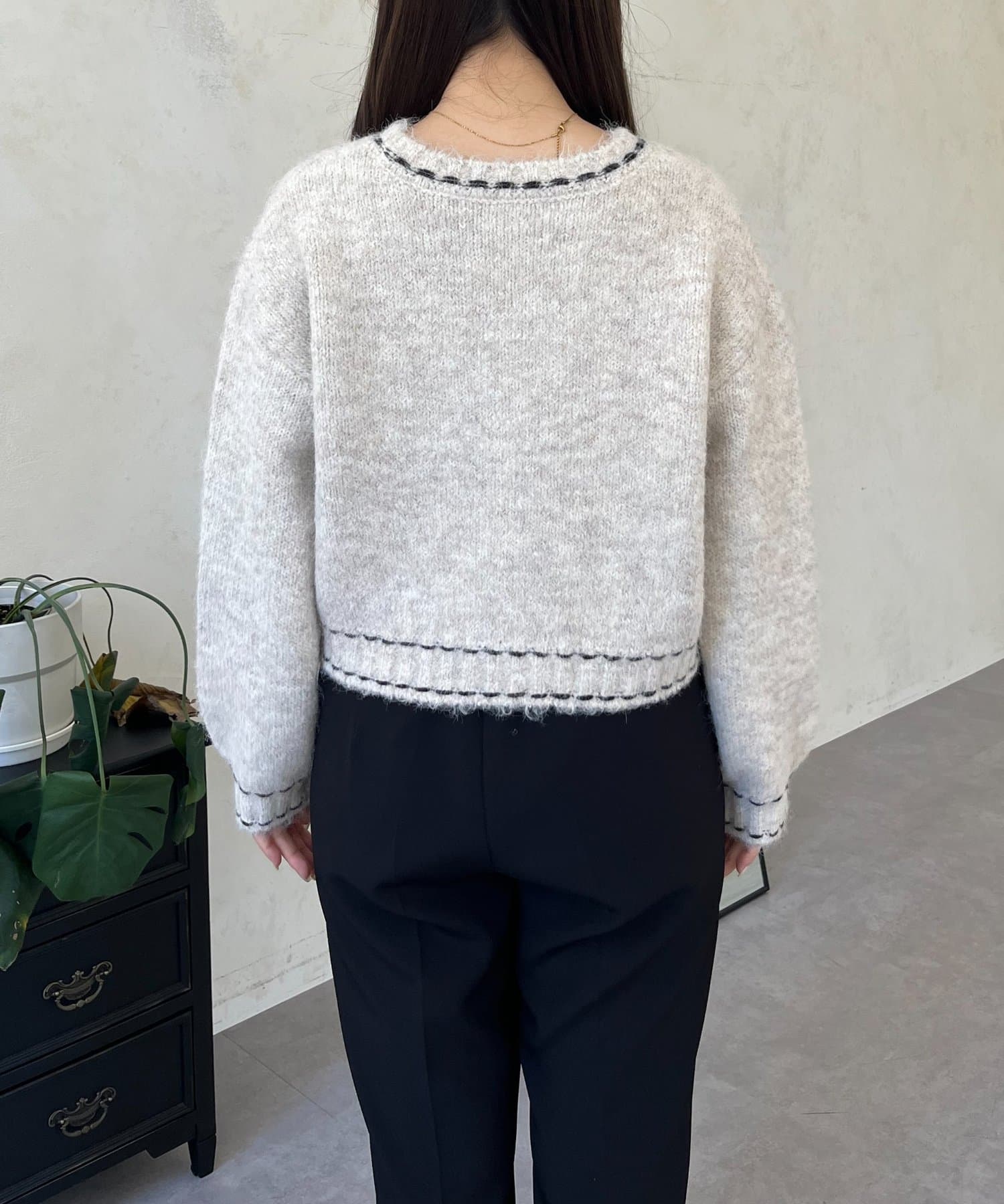 ステッチデザインニットカーディガン