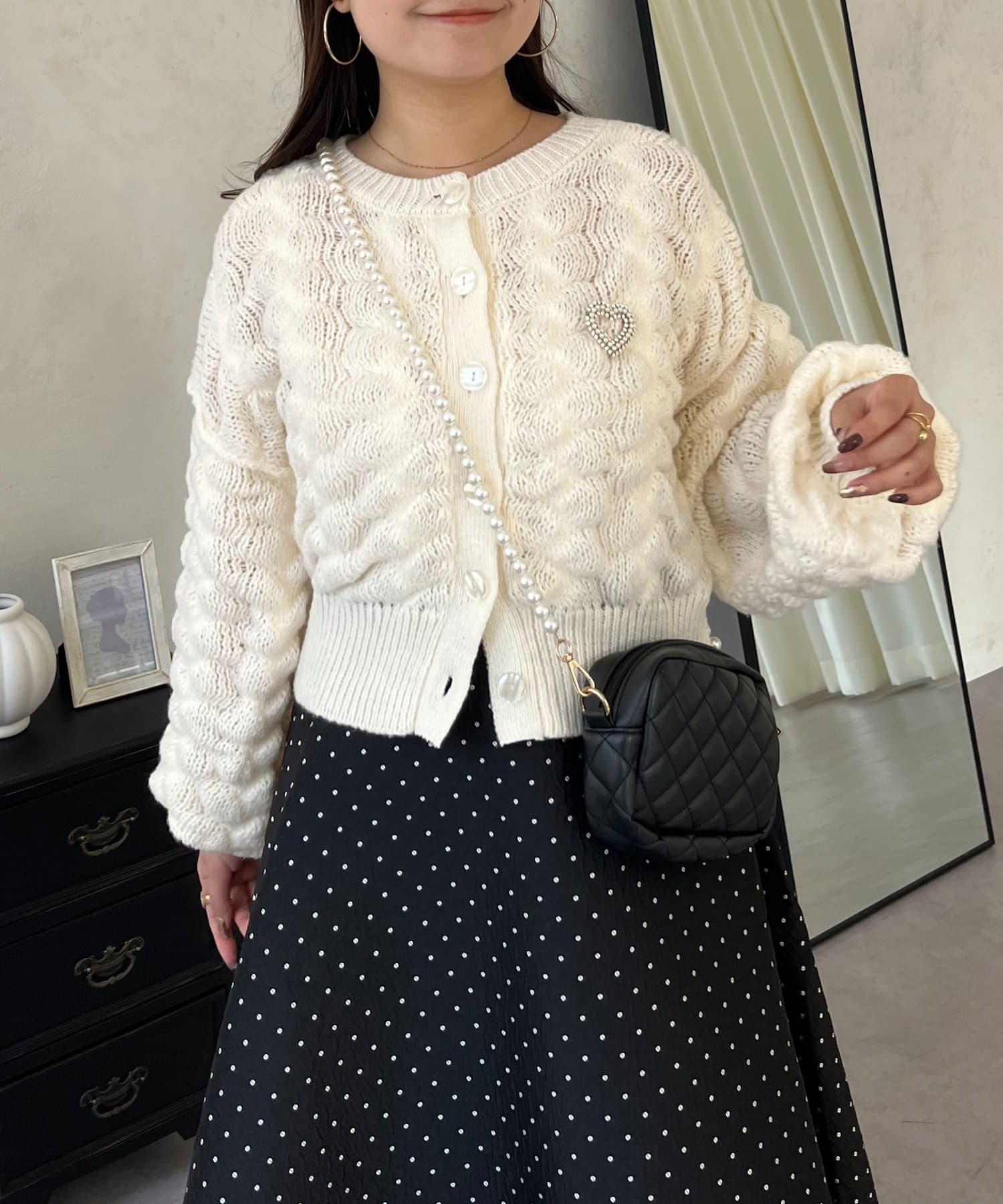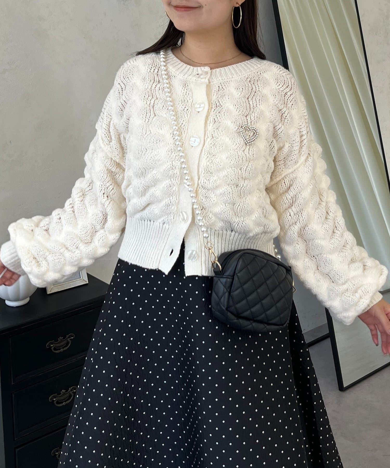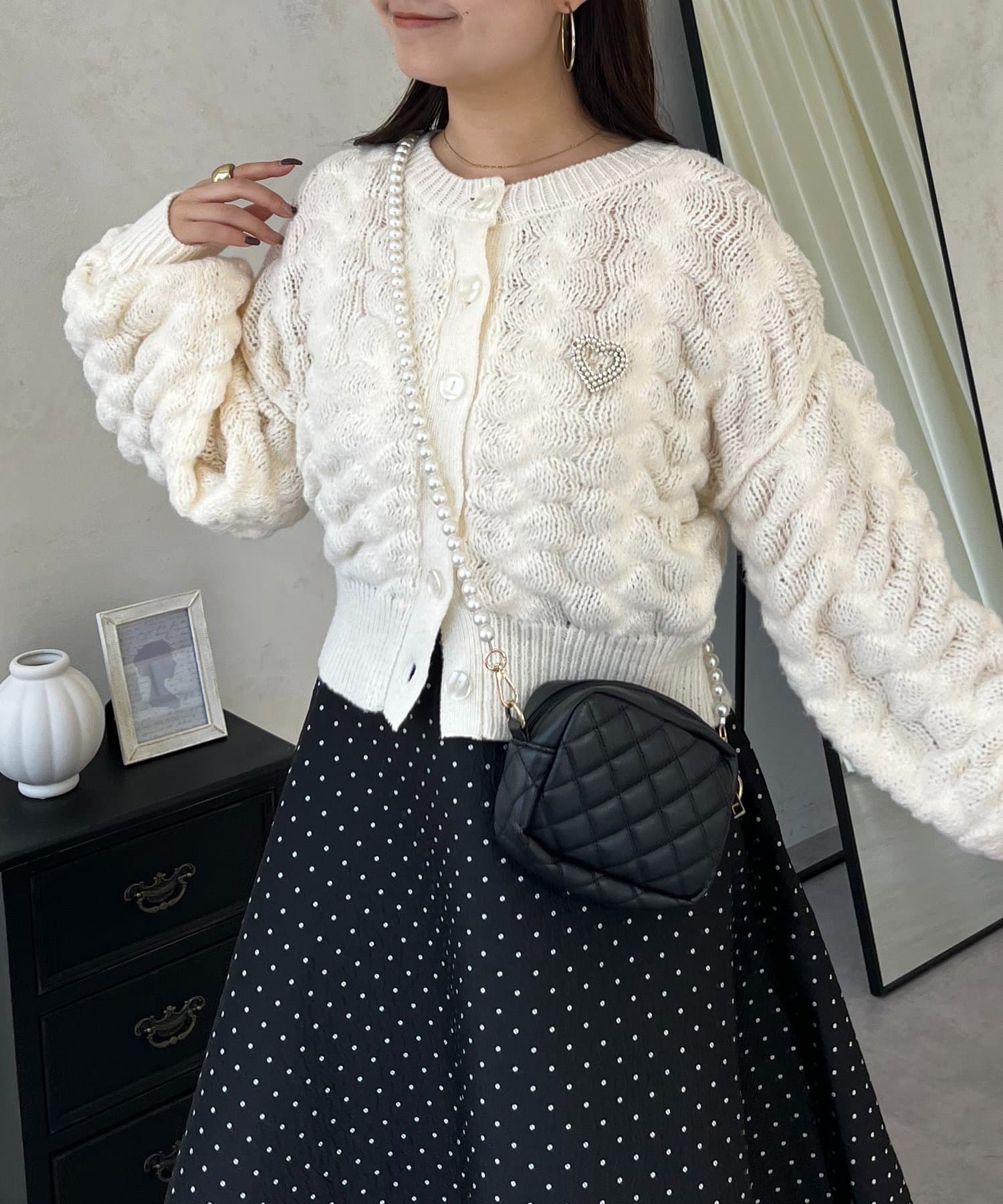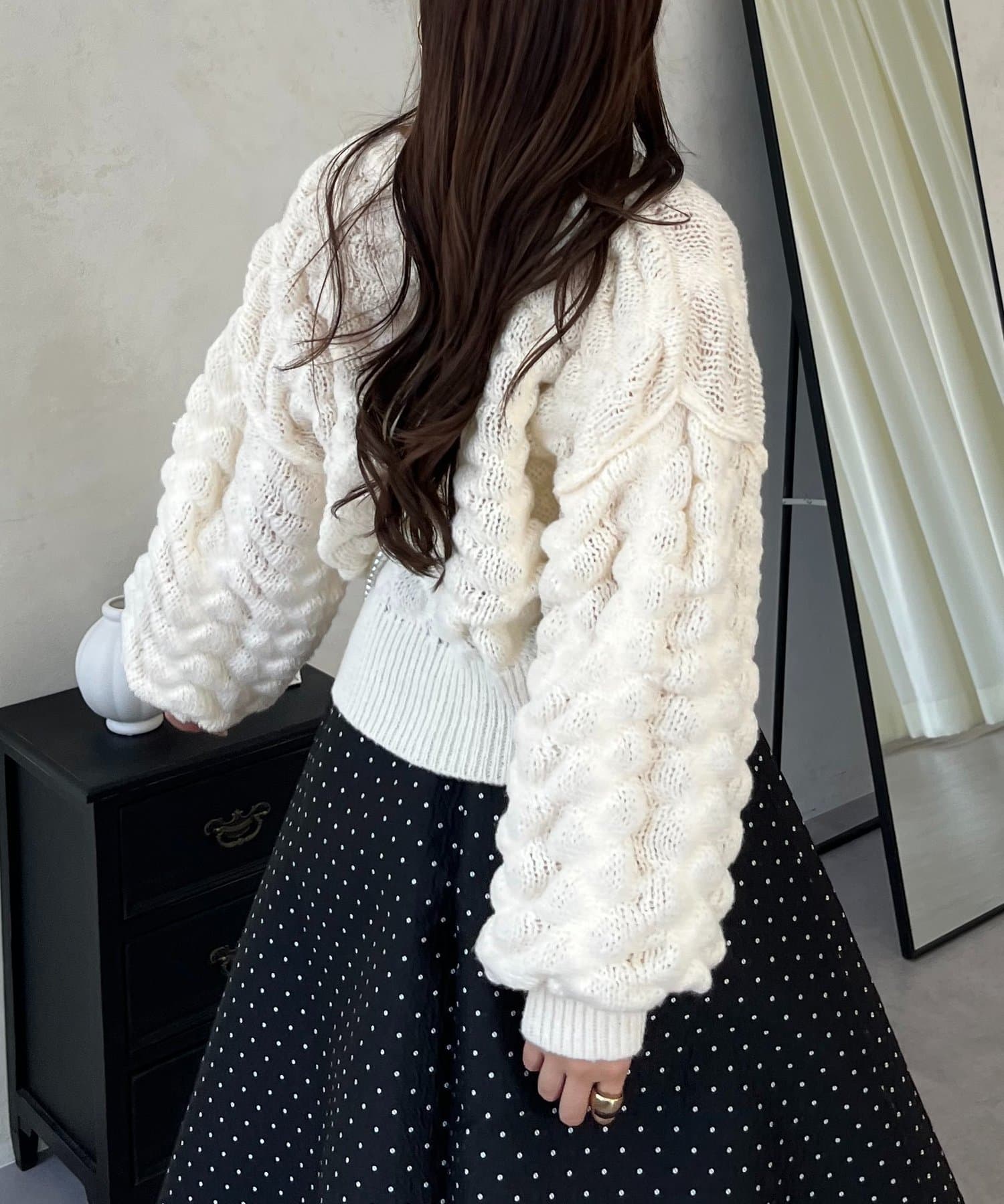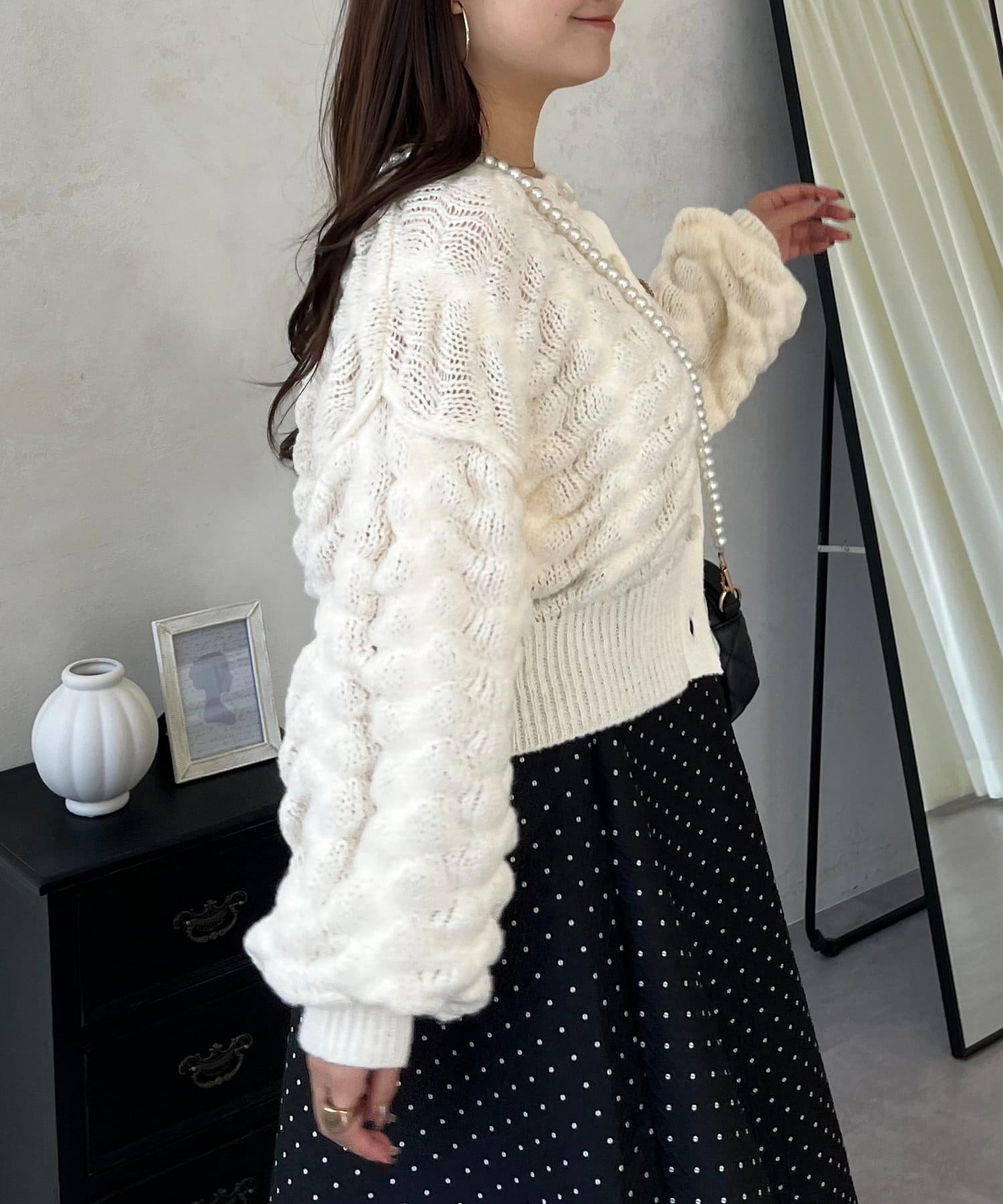 ぽこぽこが女性らしさを演出してくれるショートカーデ