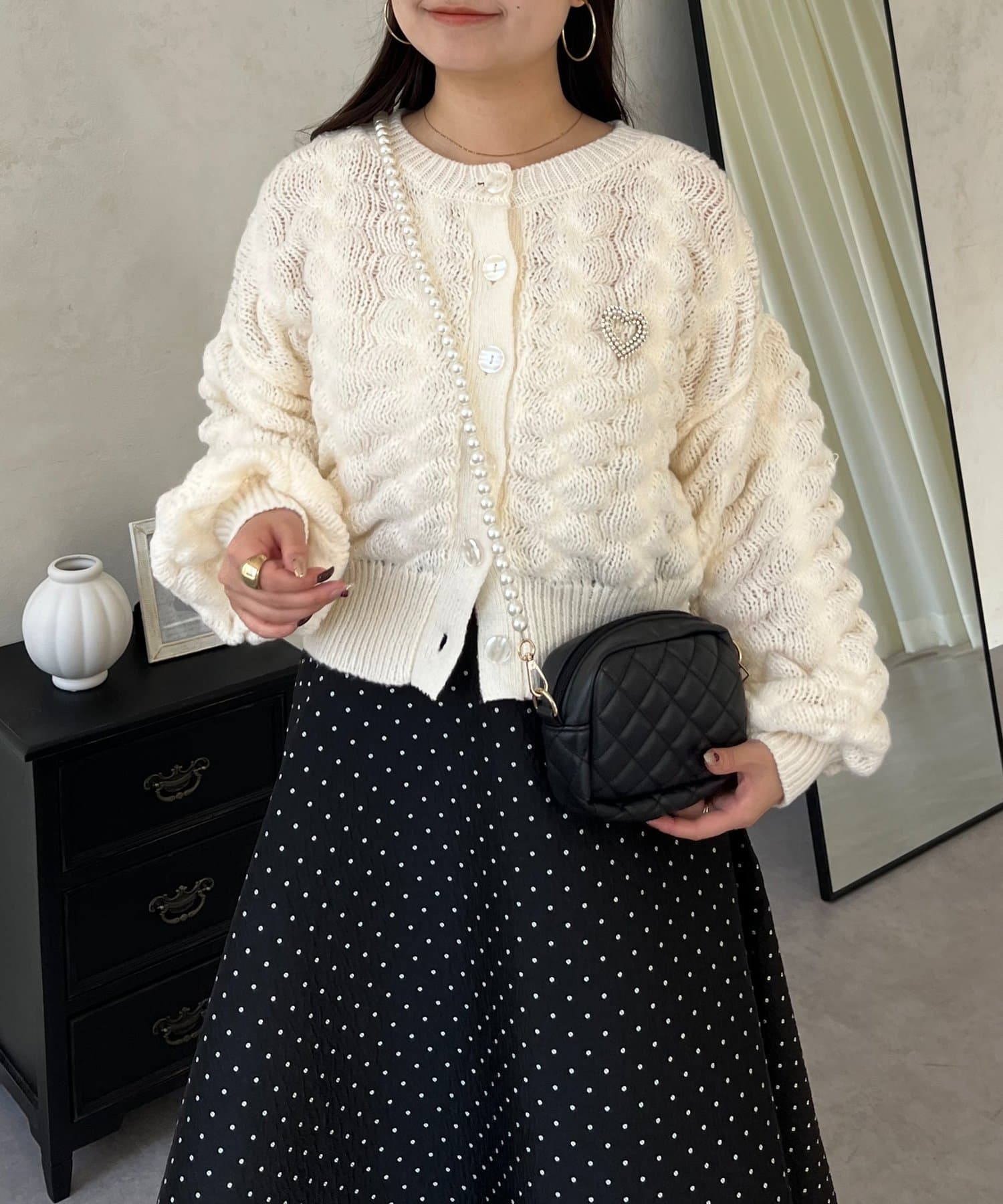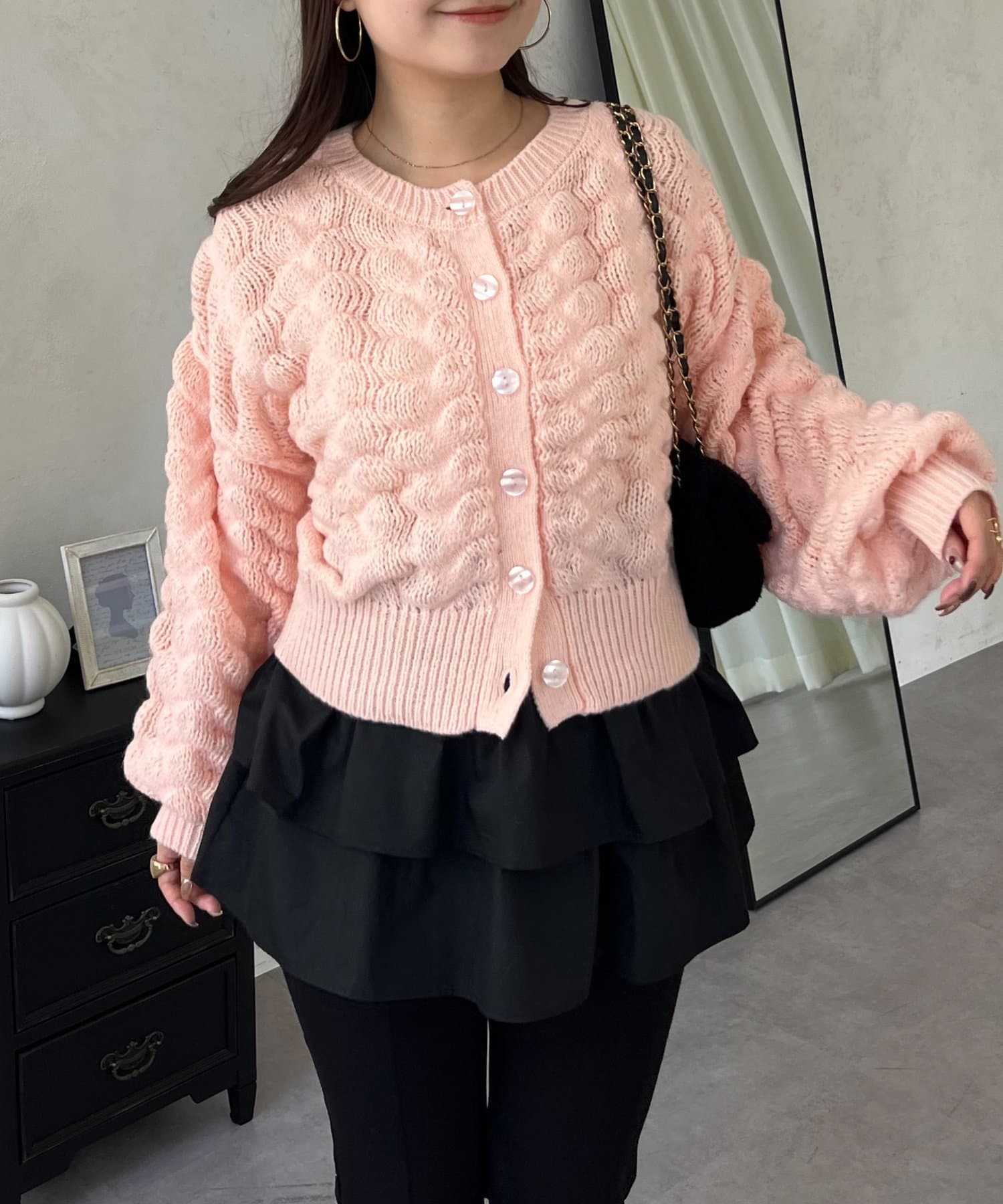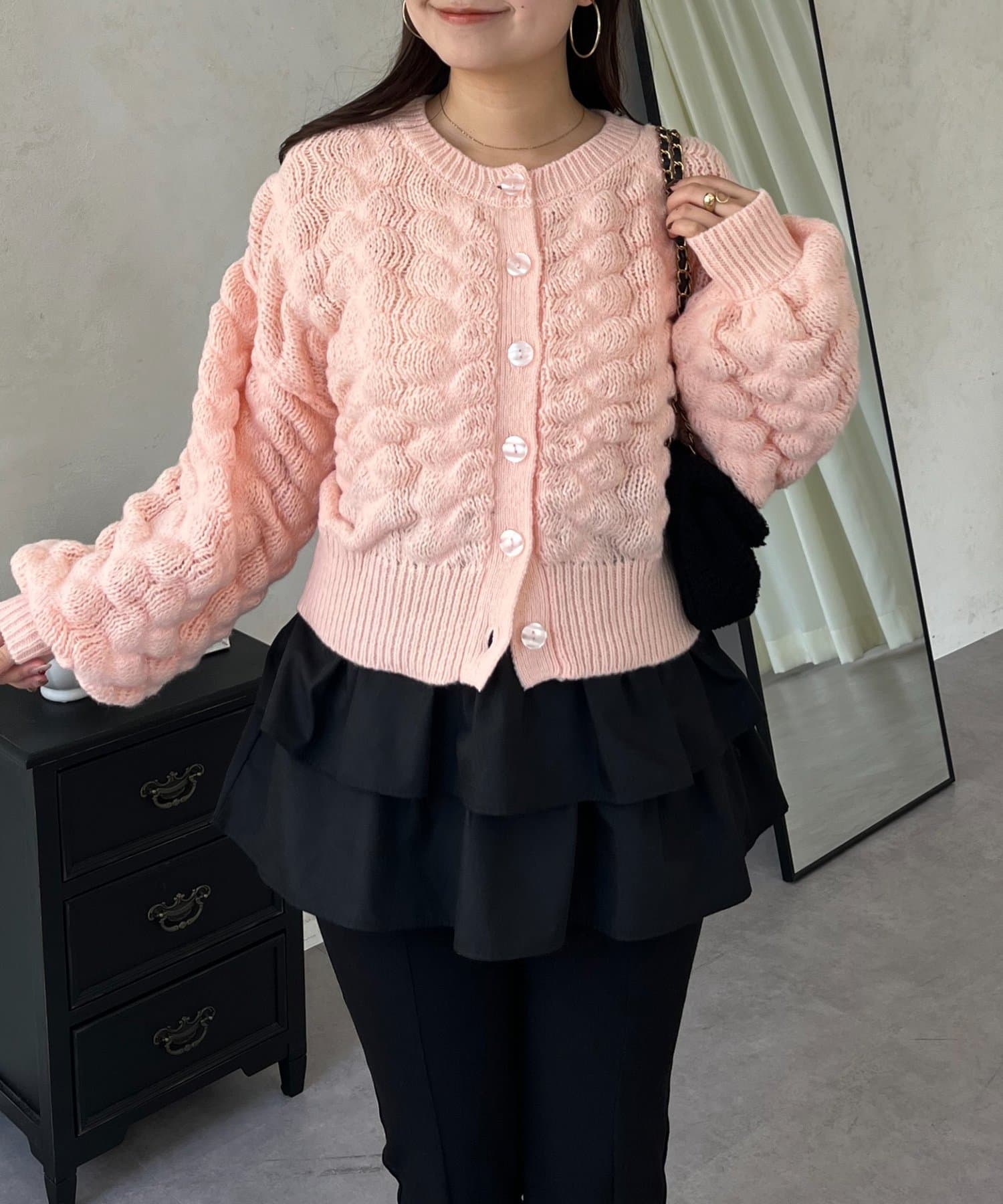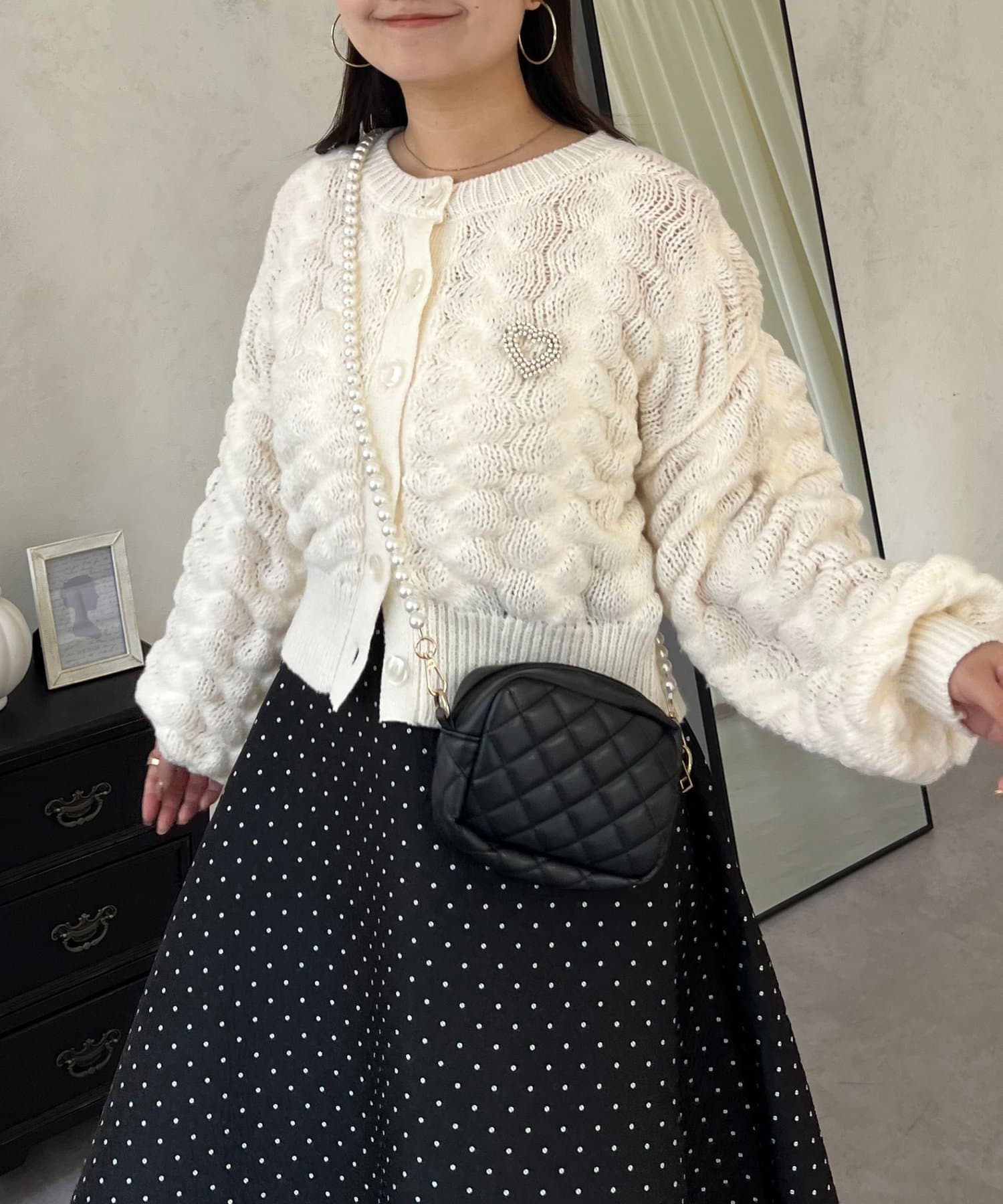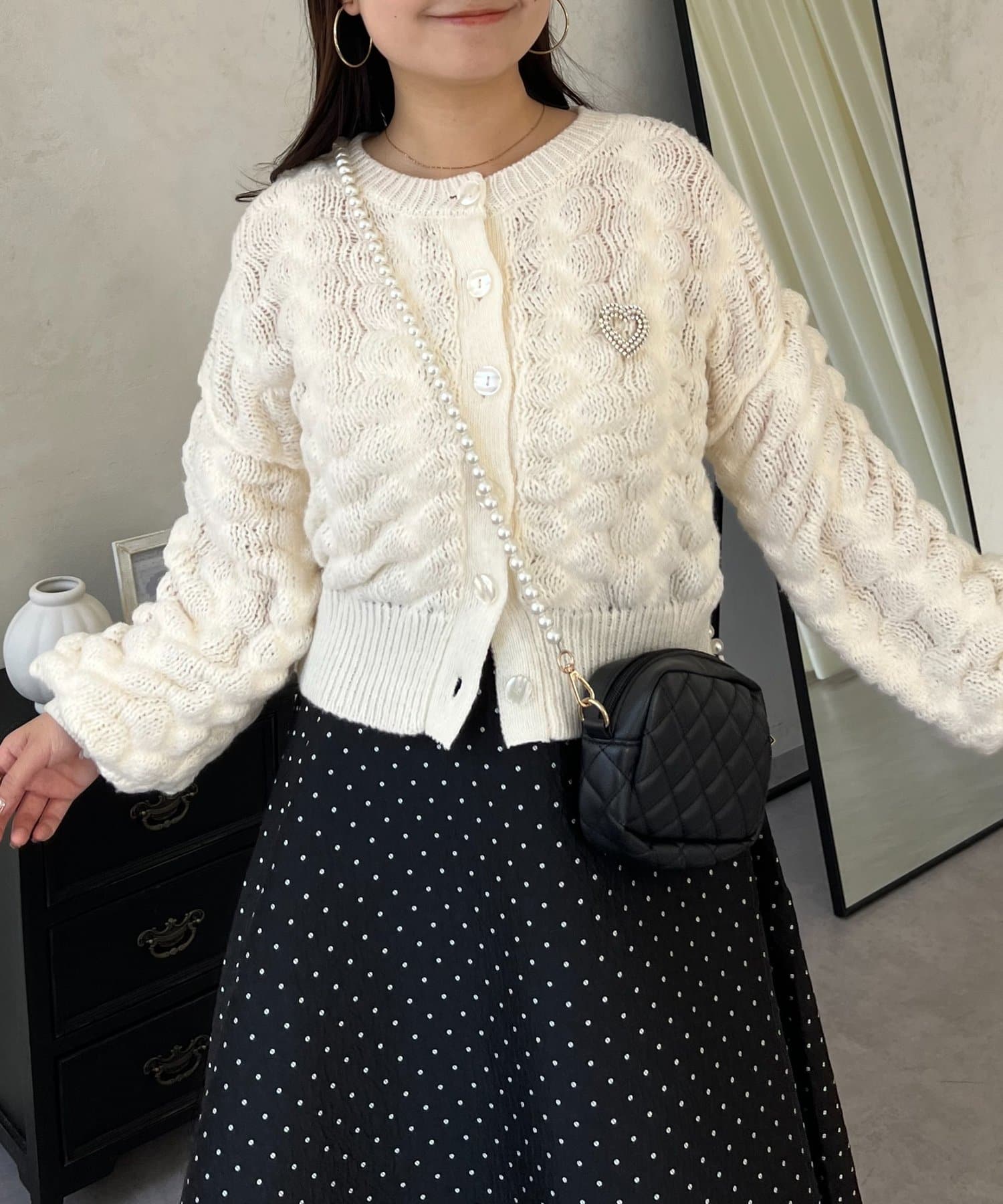 ぽこぽこが女性らしさを演出してくれるショートカーデ