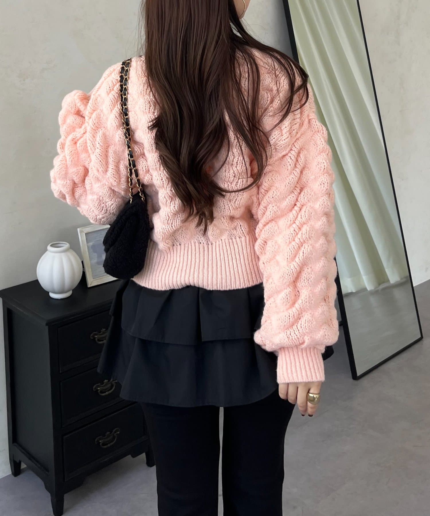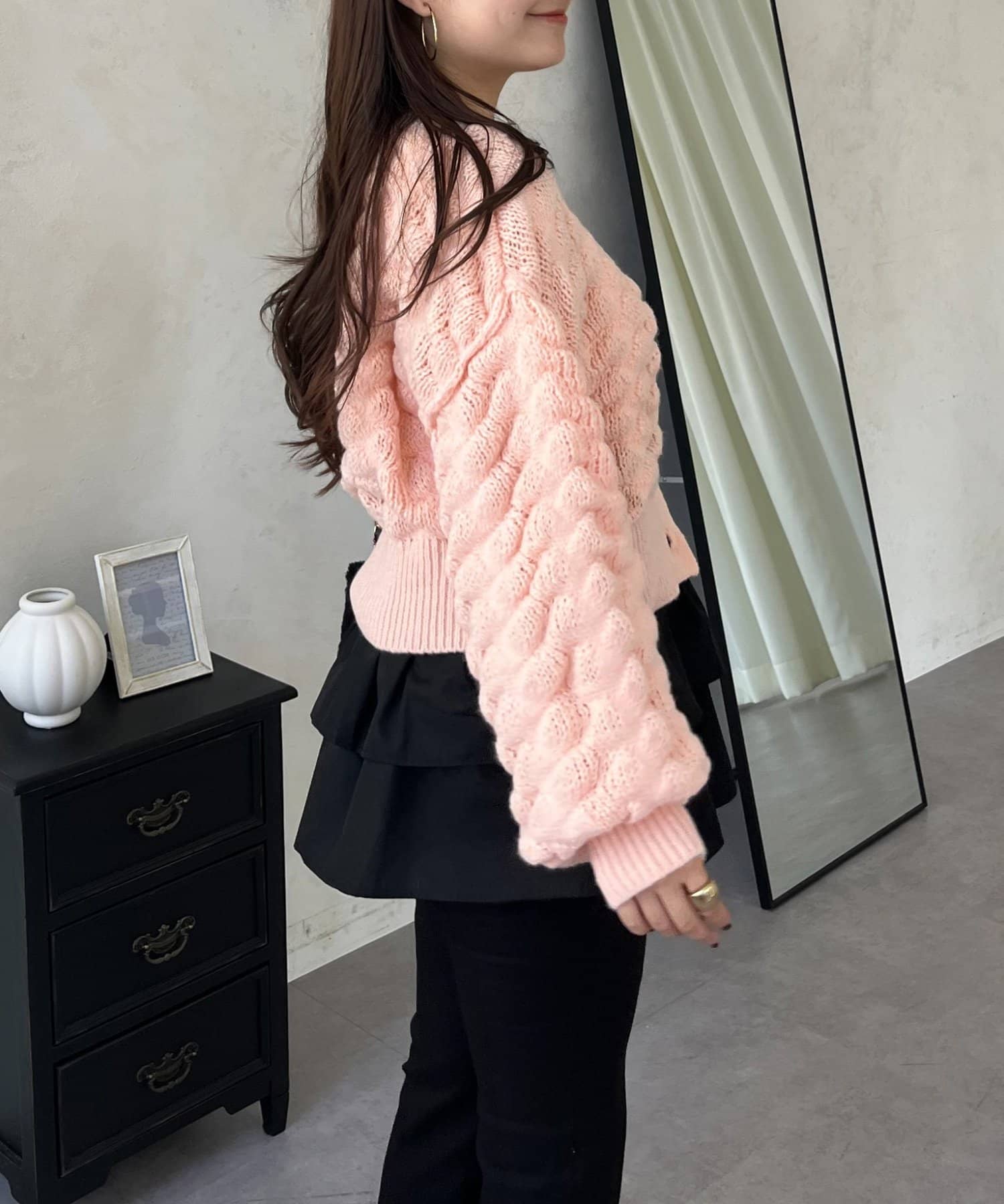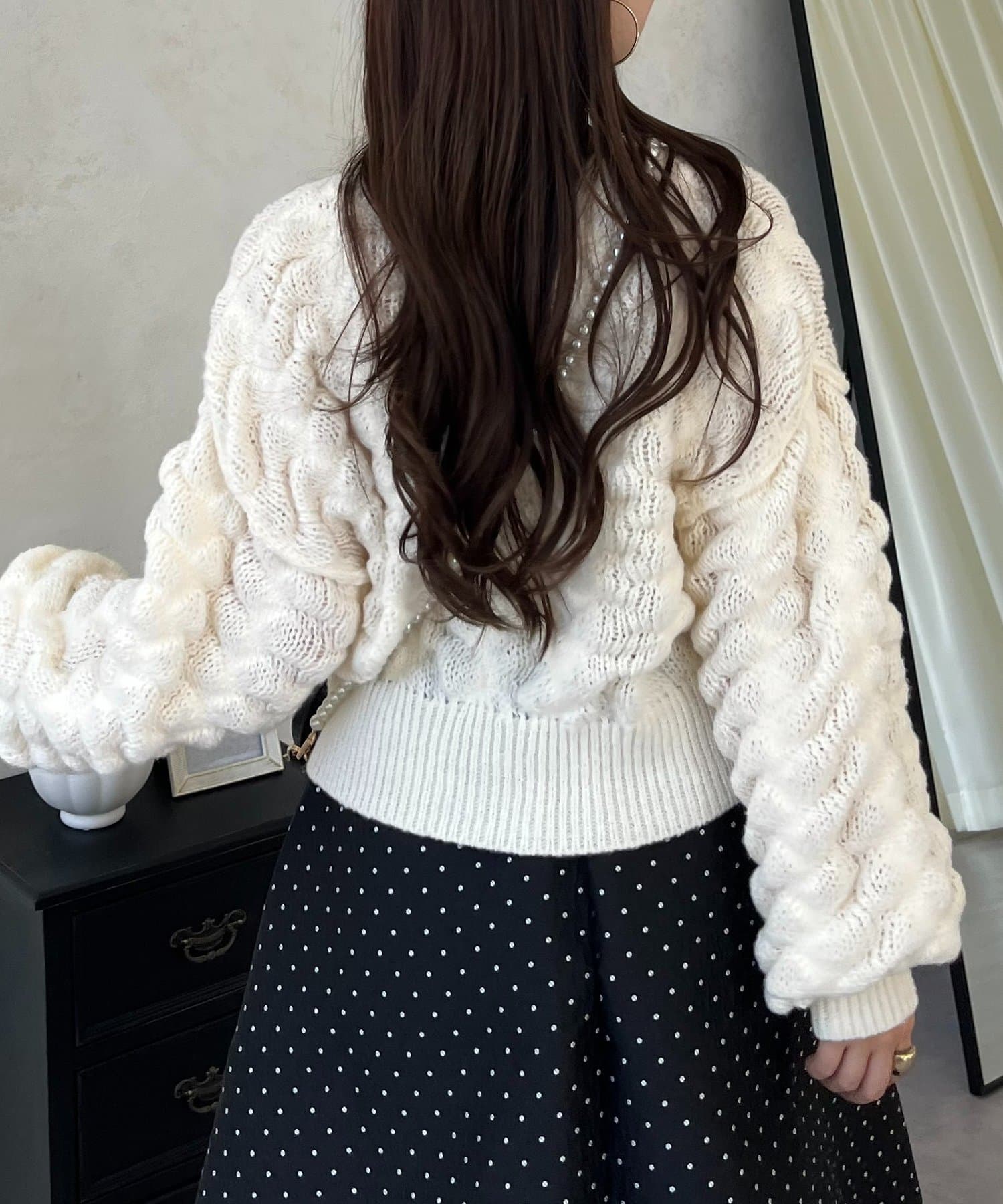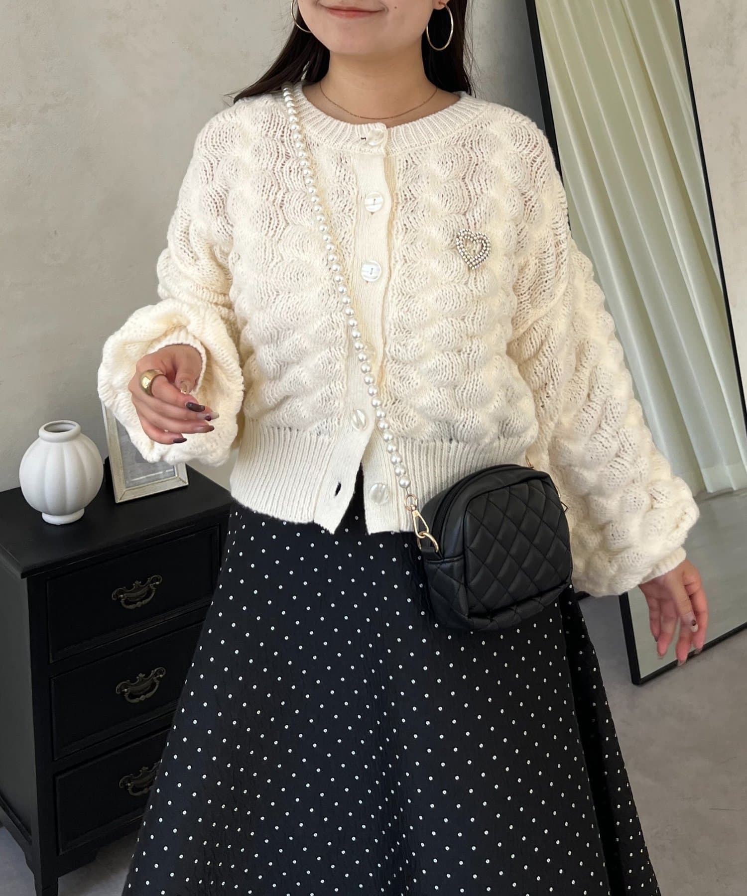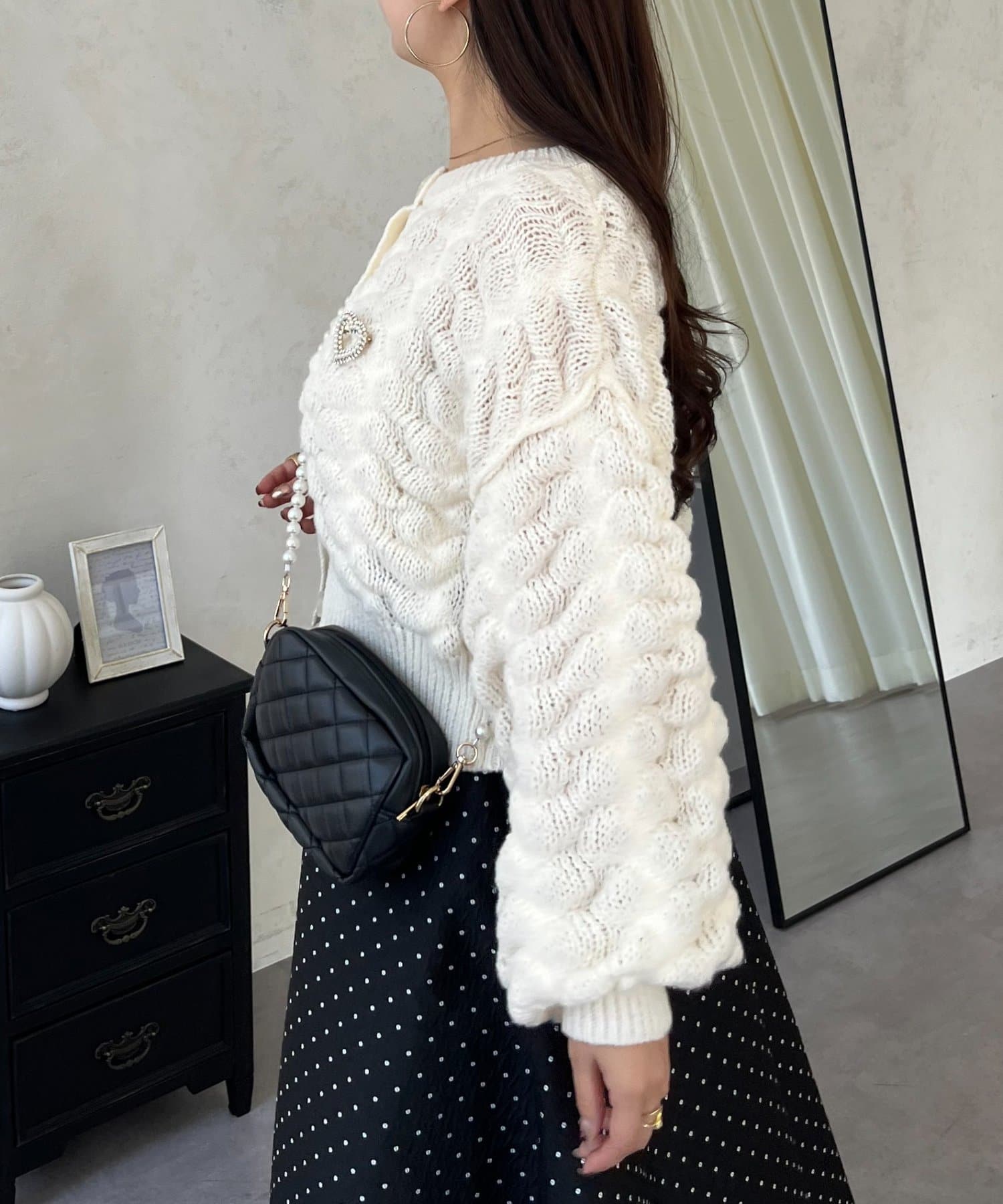 ぽこぽこが女性らしさを演出してくれるショートカーデ