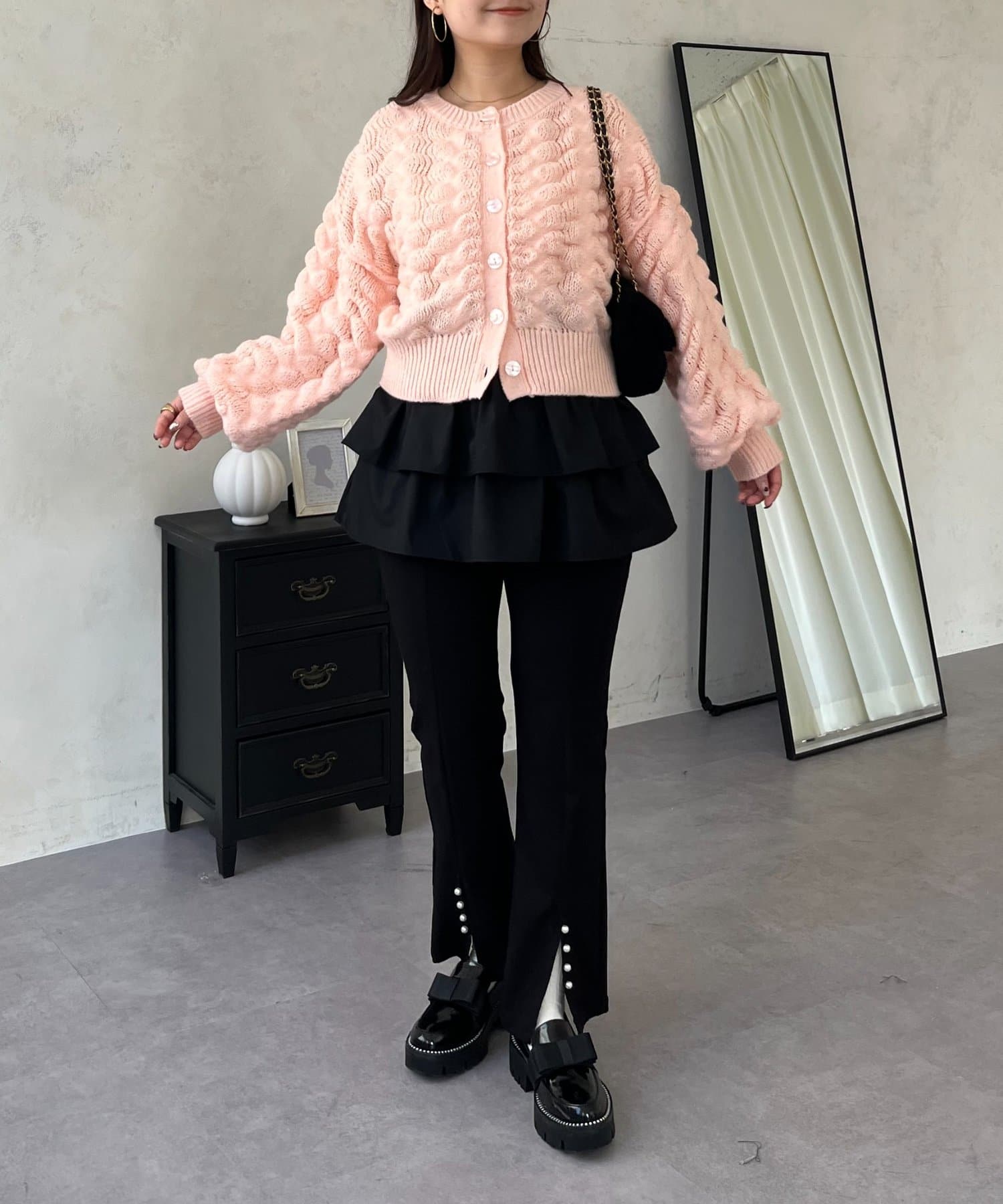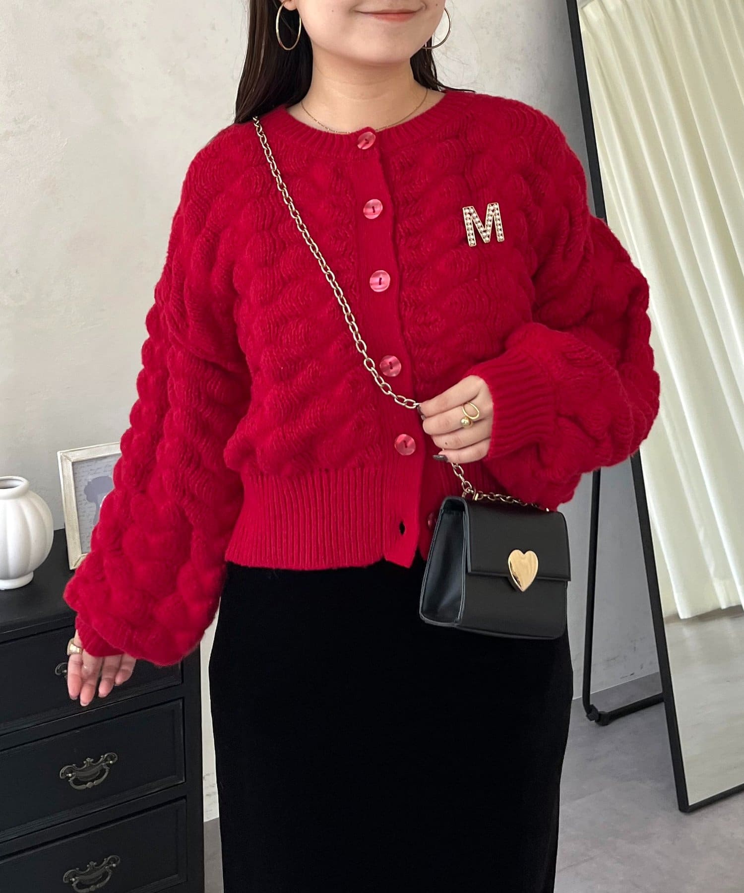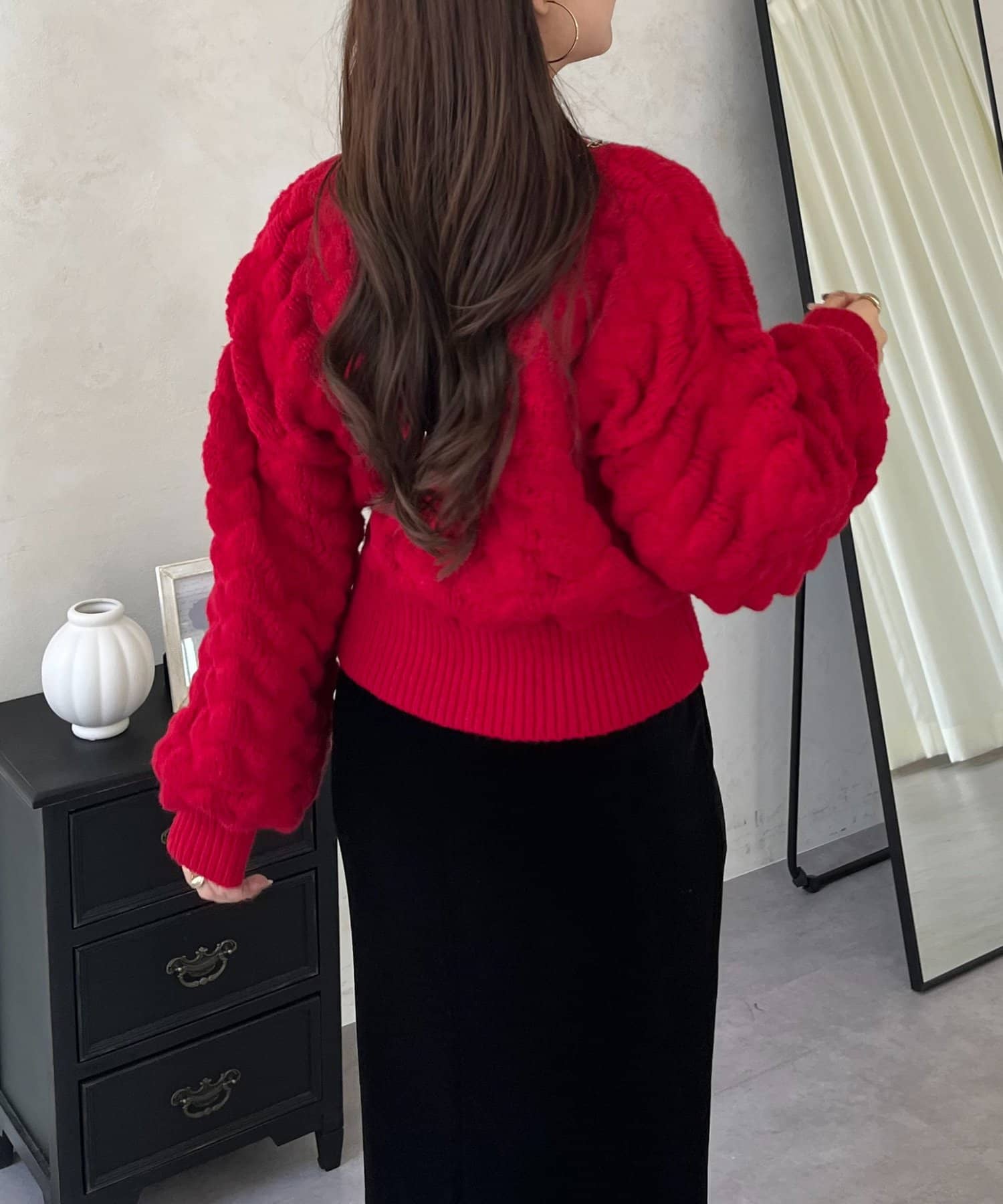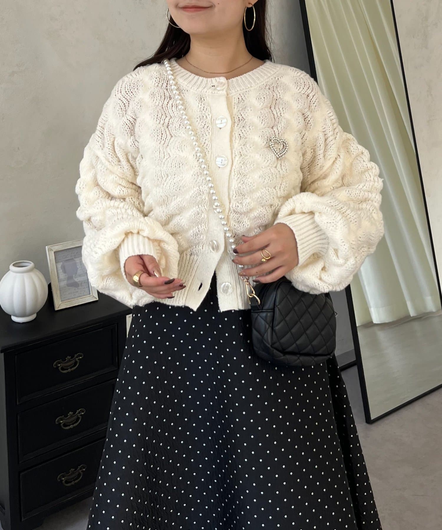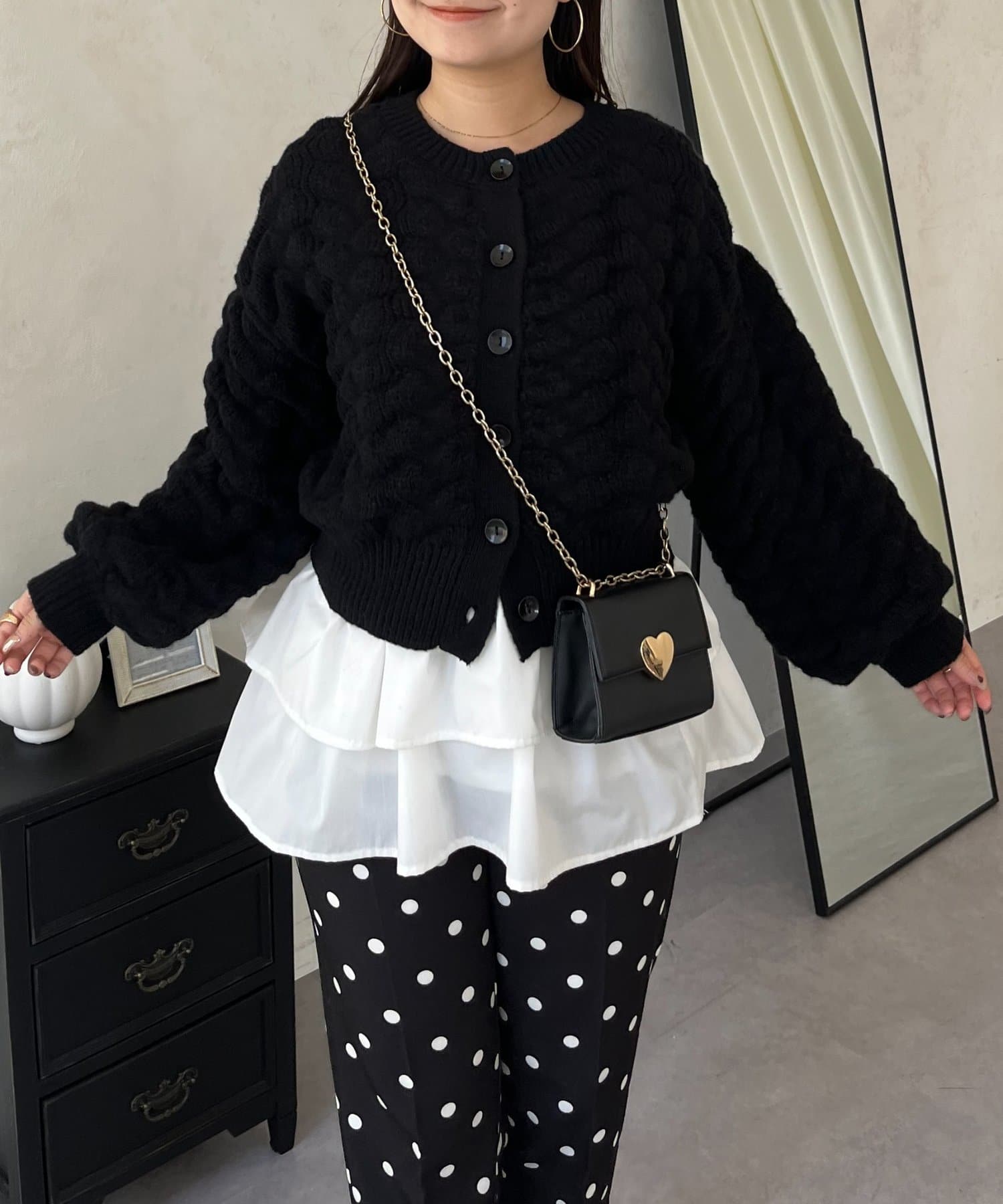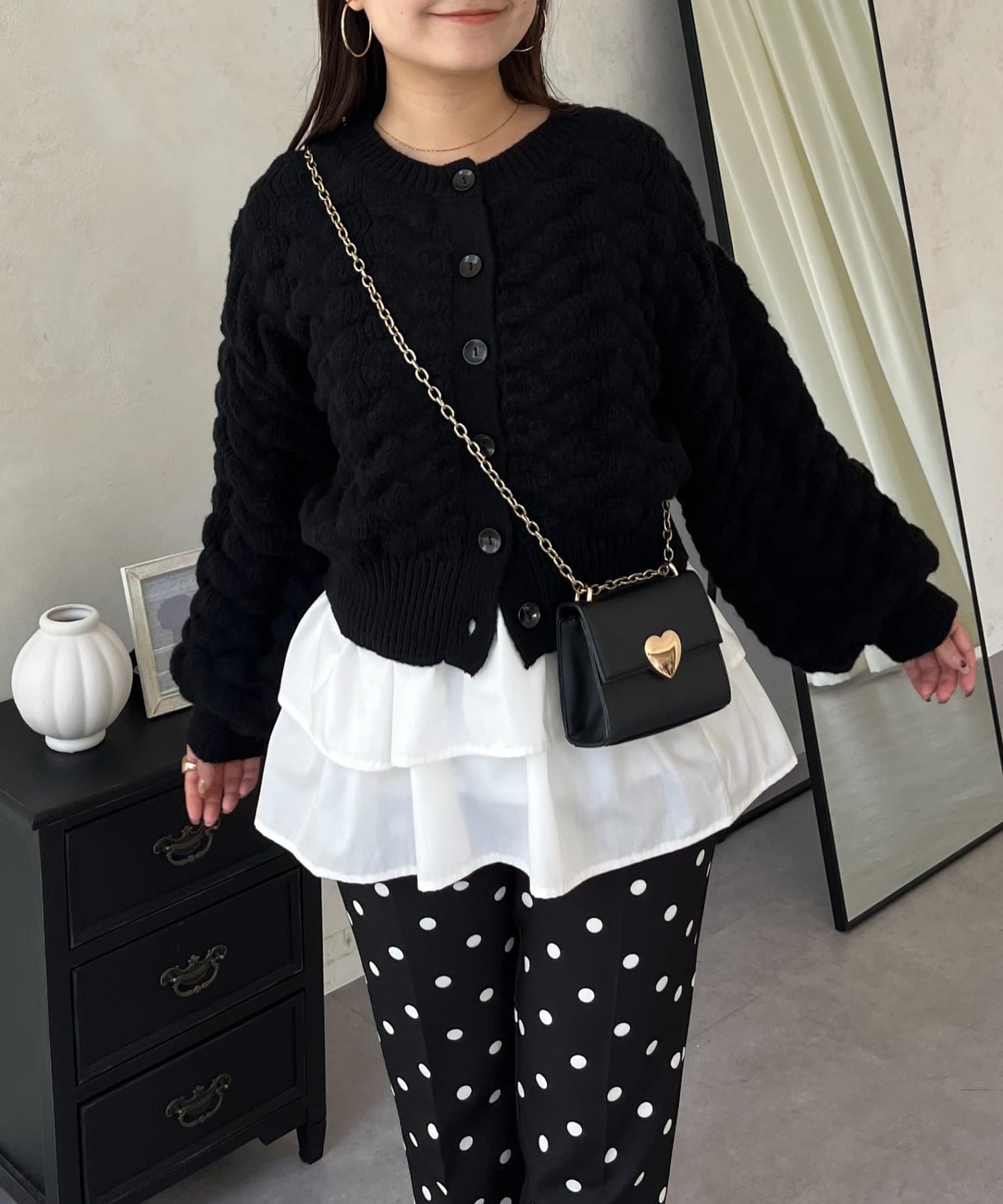 ぽこぽこが女性らしさを演出してくれるショートカーデ