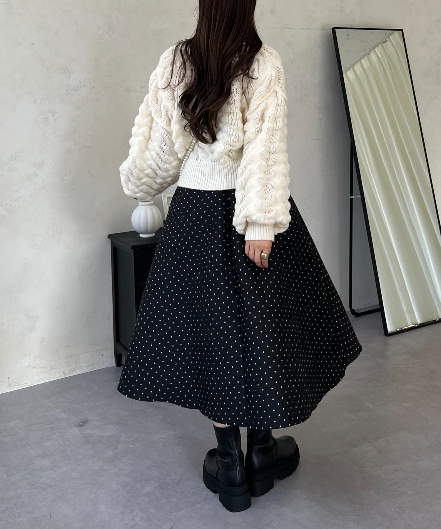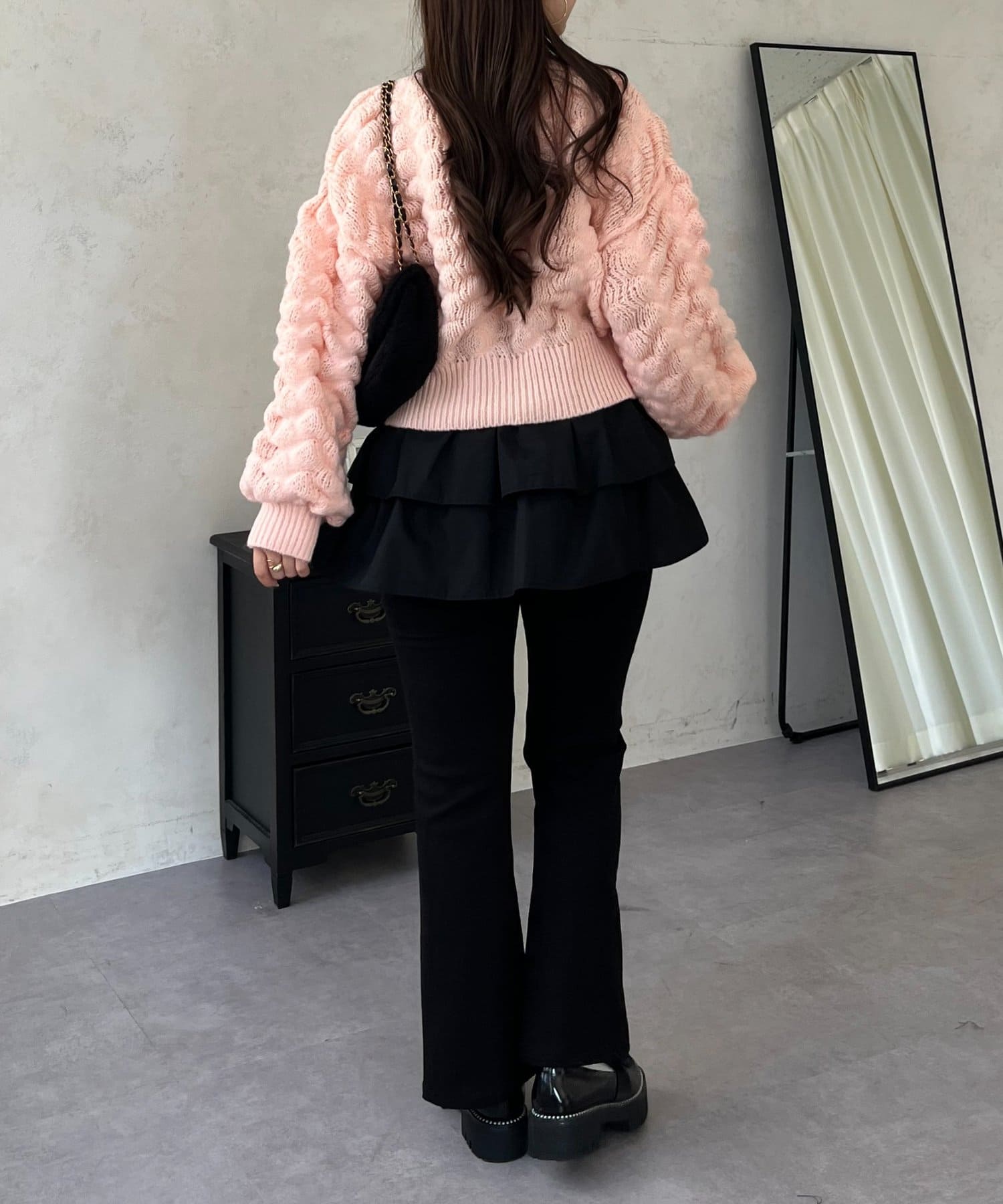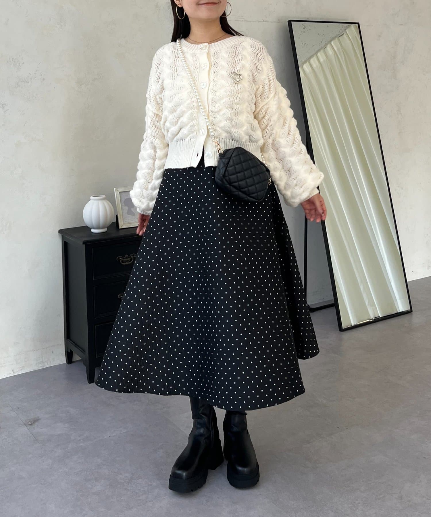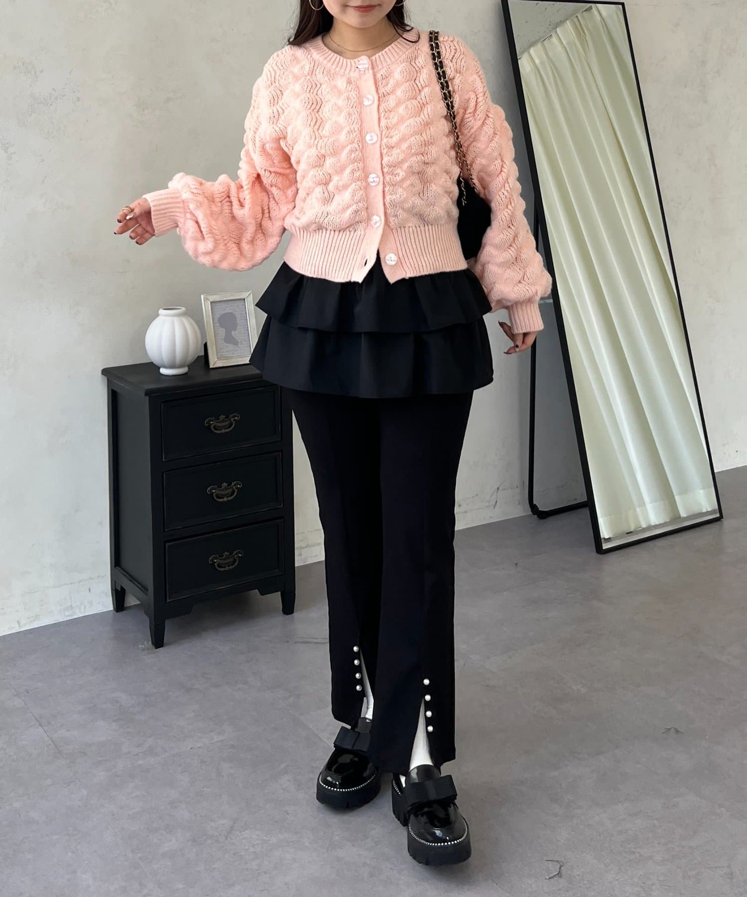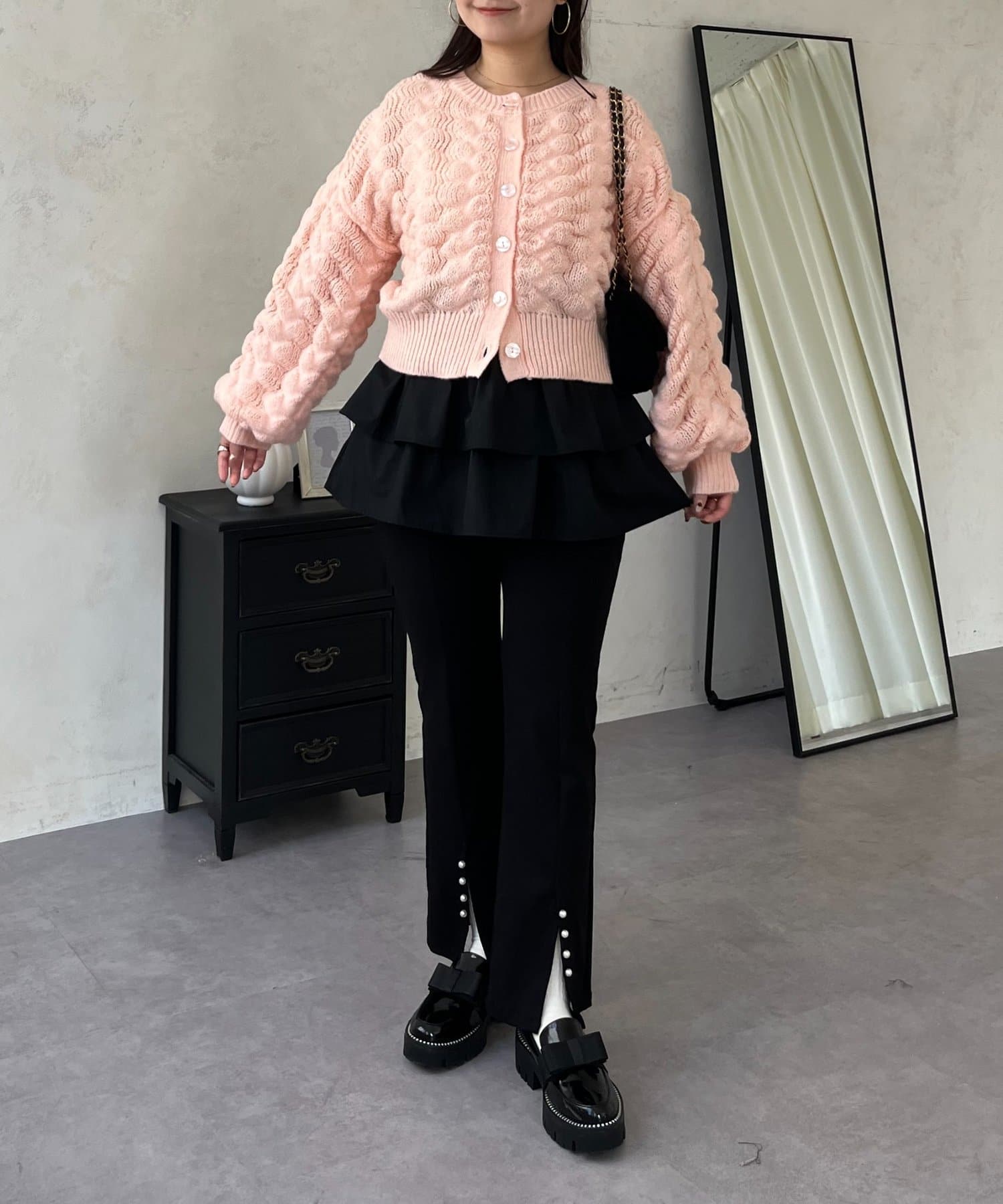 ぽこぽこが女性らしさを演出してくれるショートカーデ