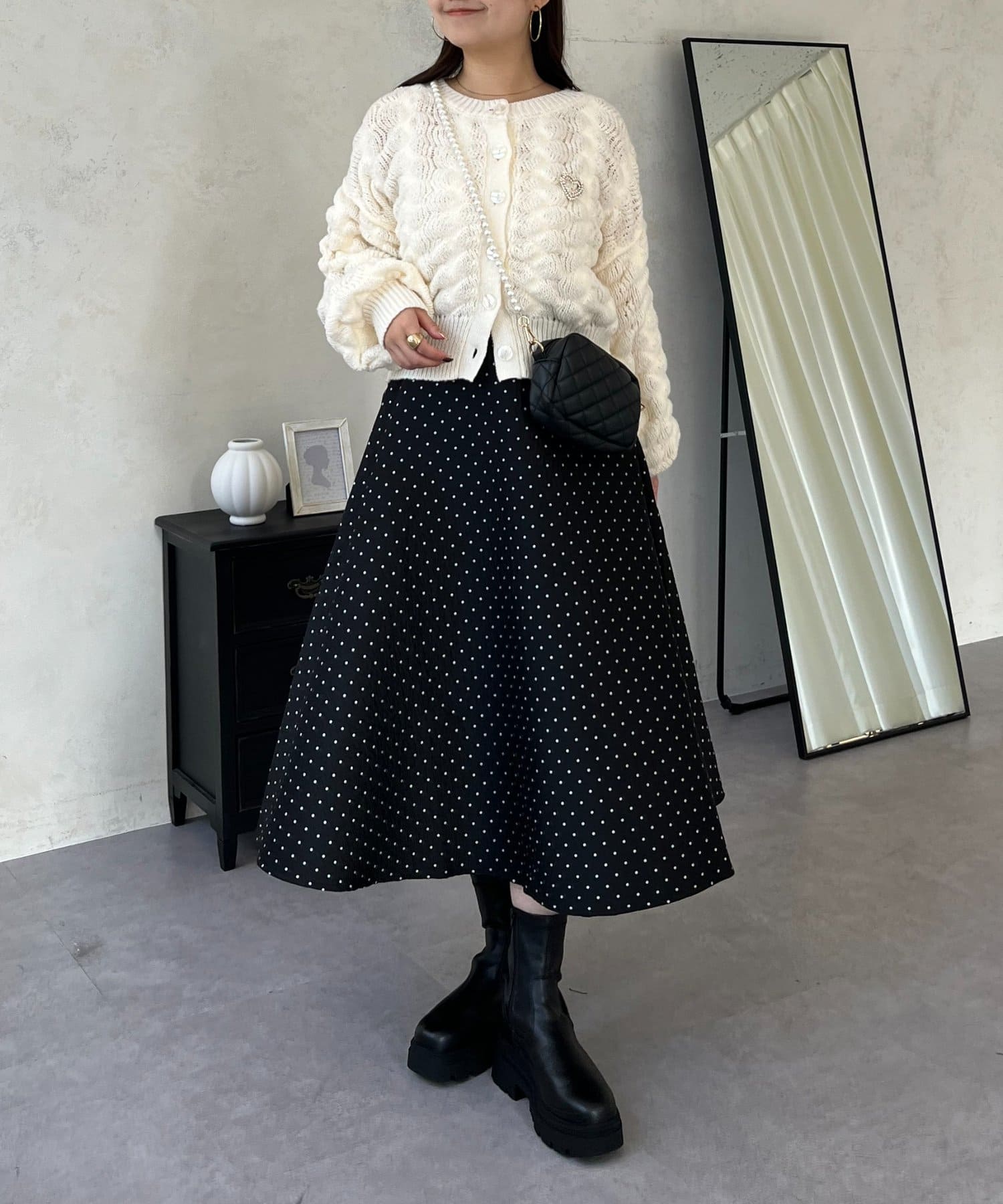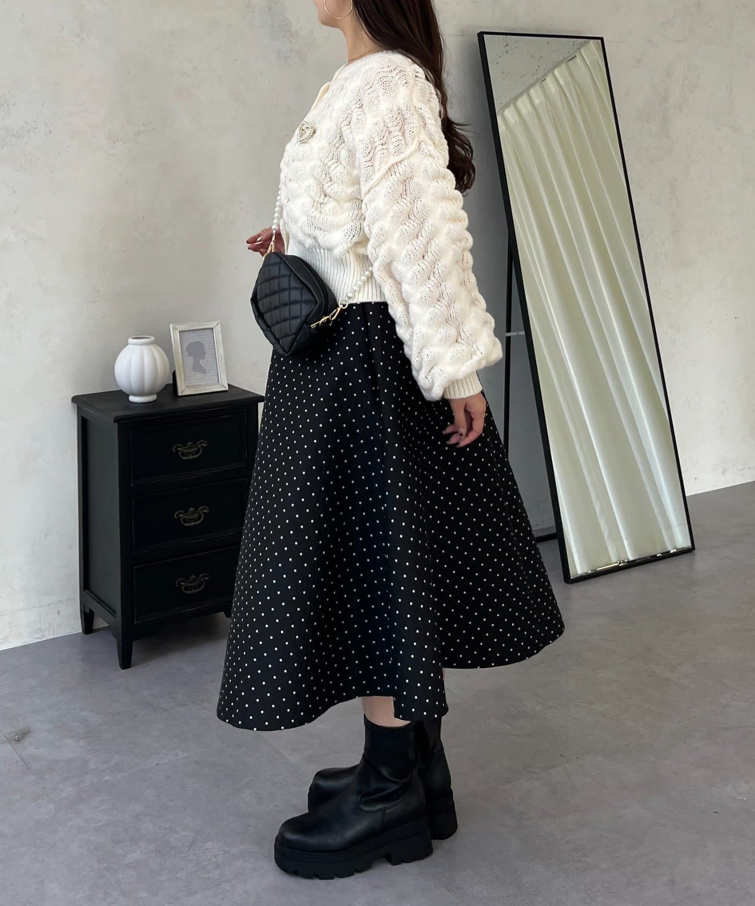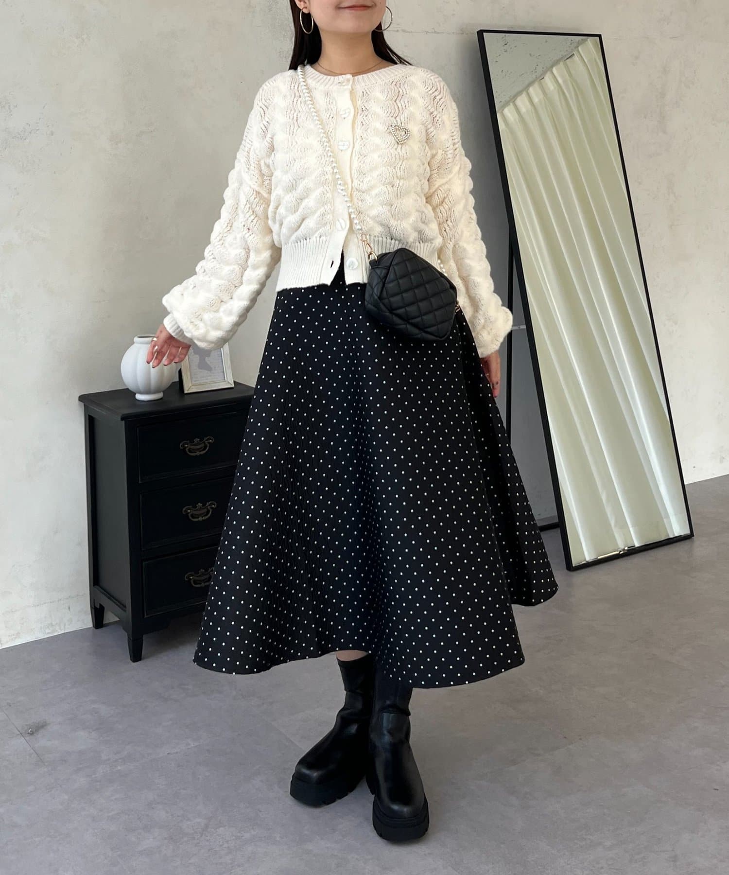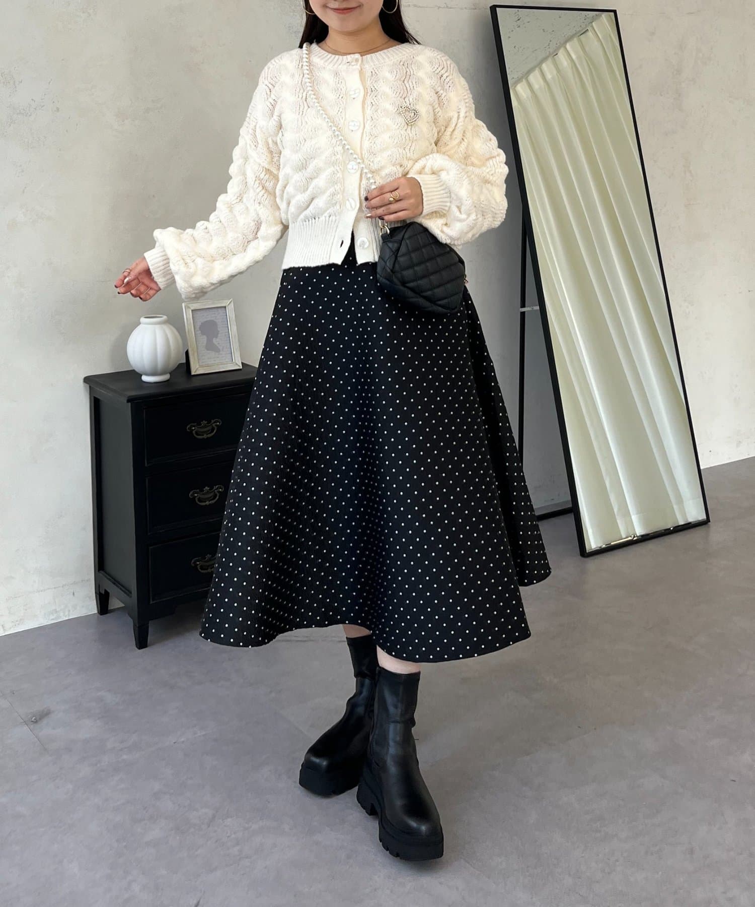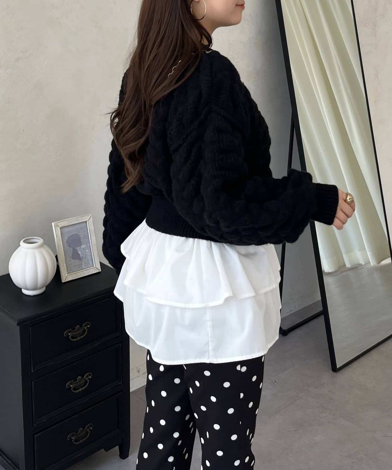 ぽこぽこが女性らしさを演出してくれるショートカーデ