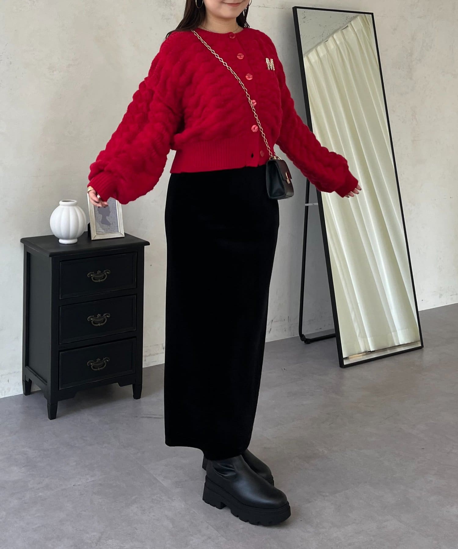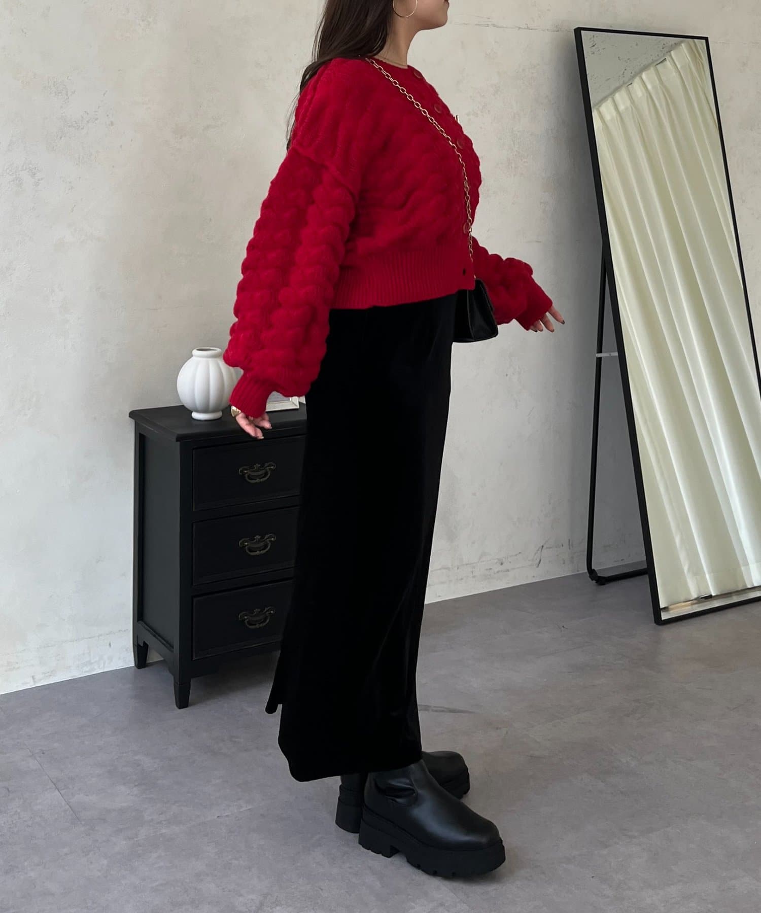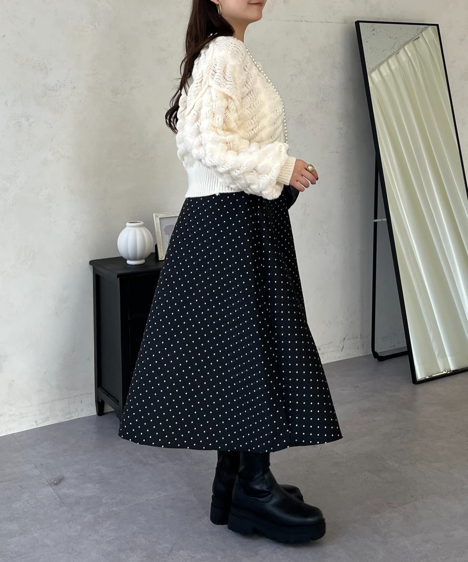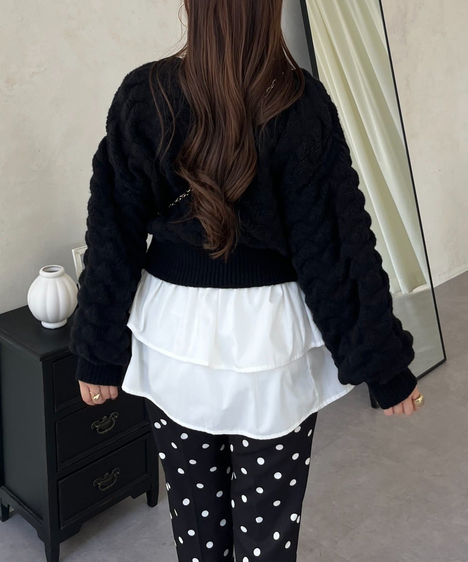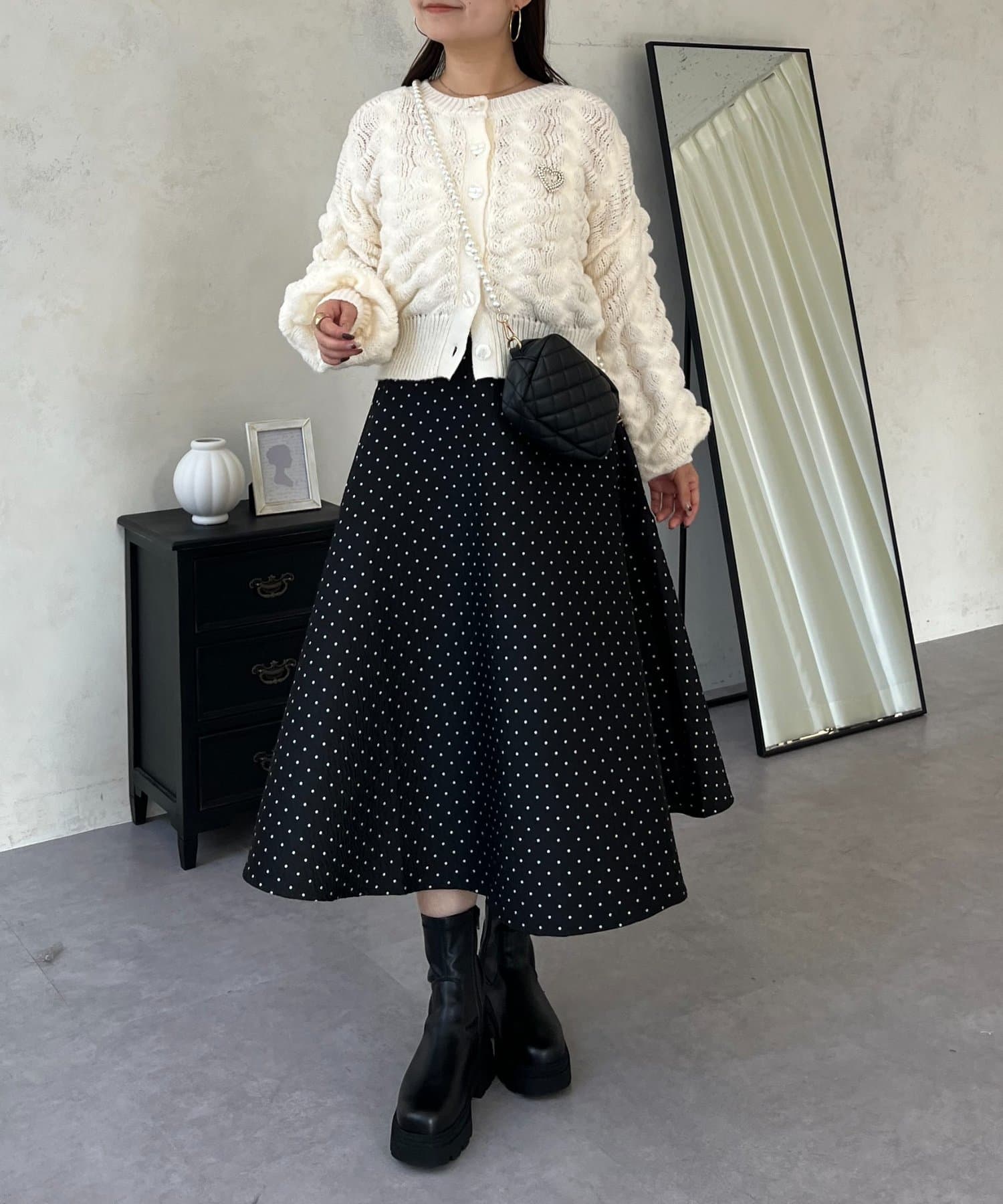 ぽこぽこが女性らしさを演出してくれるショートカーデ