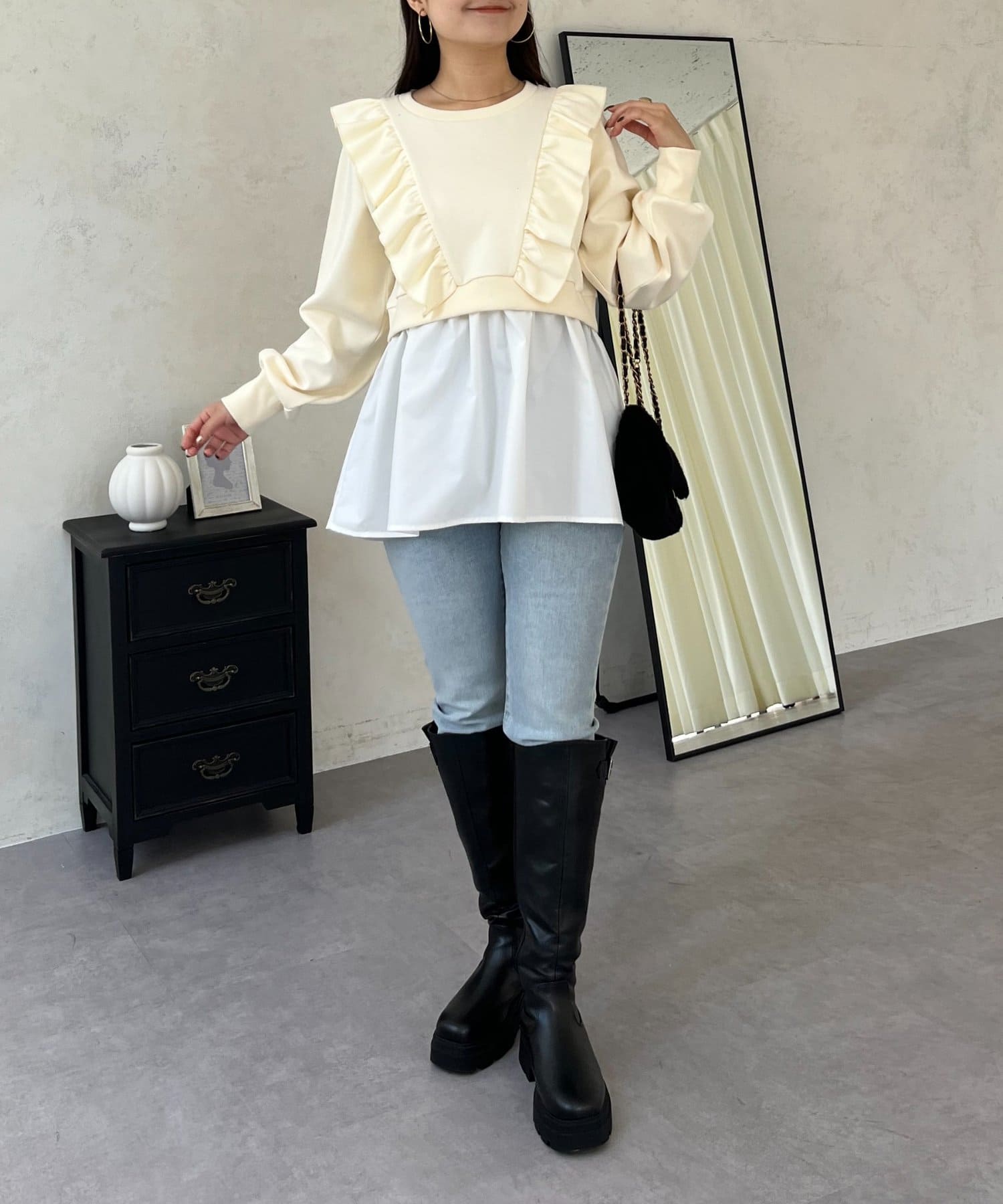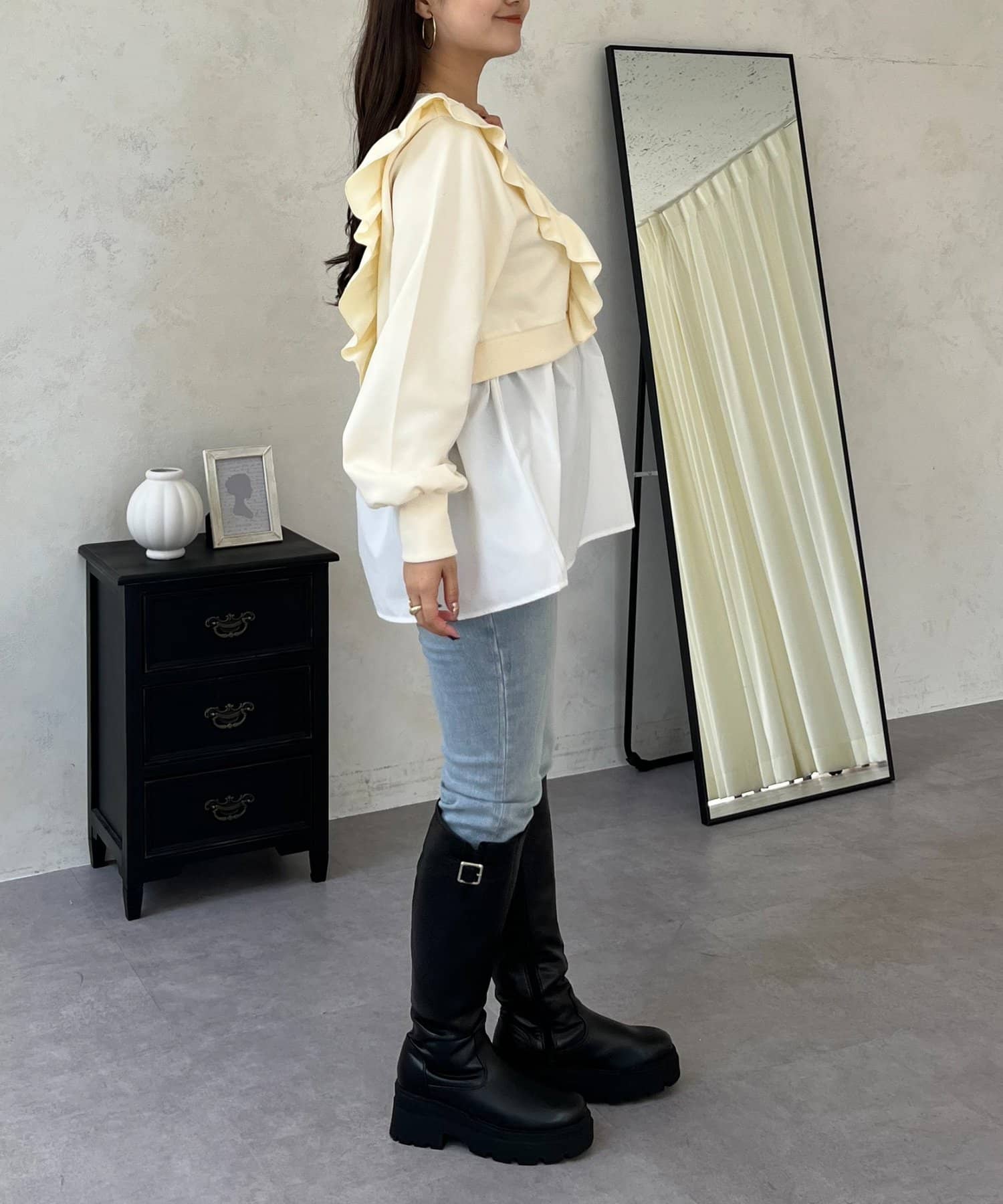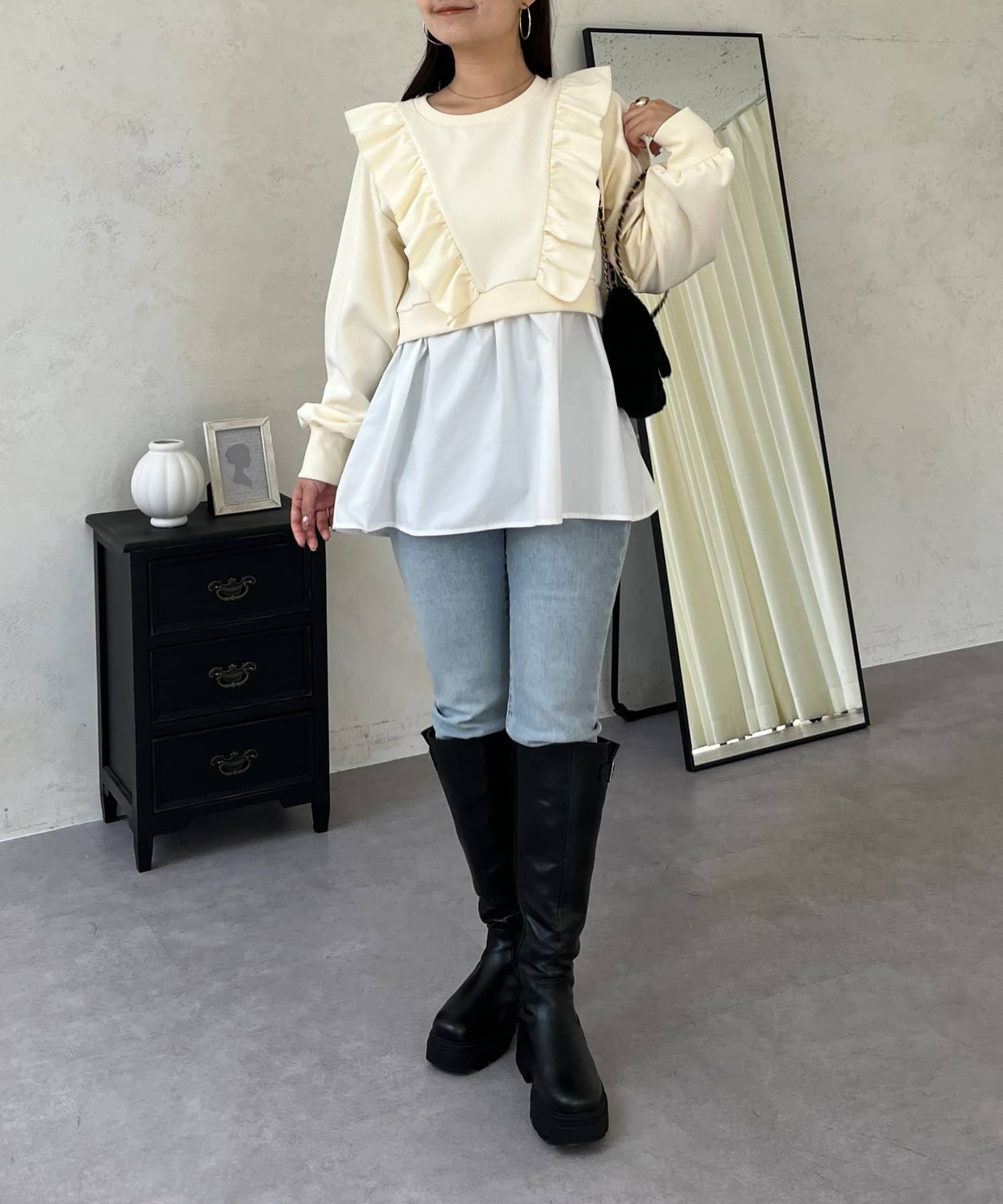 ●細めのボトムスと合わせることで着瘦せ効果◎
