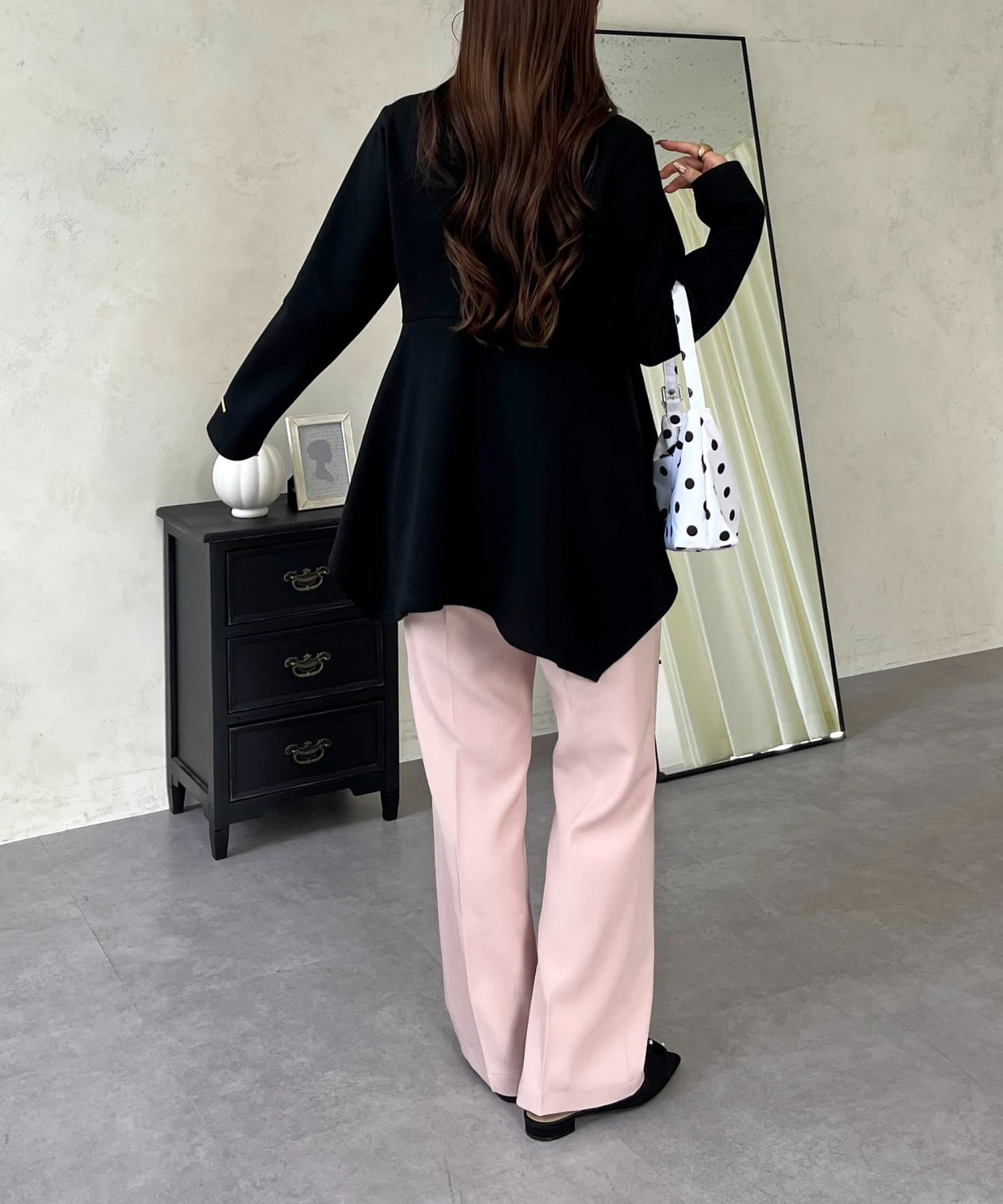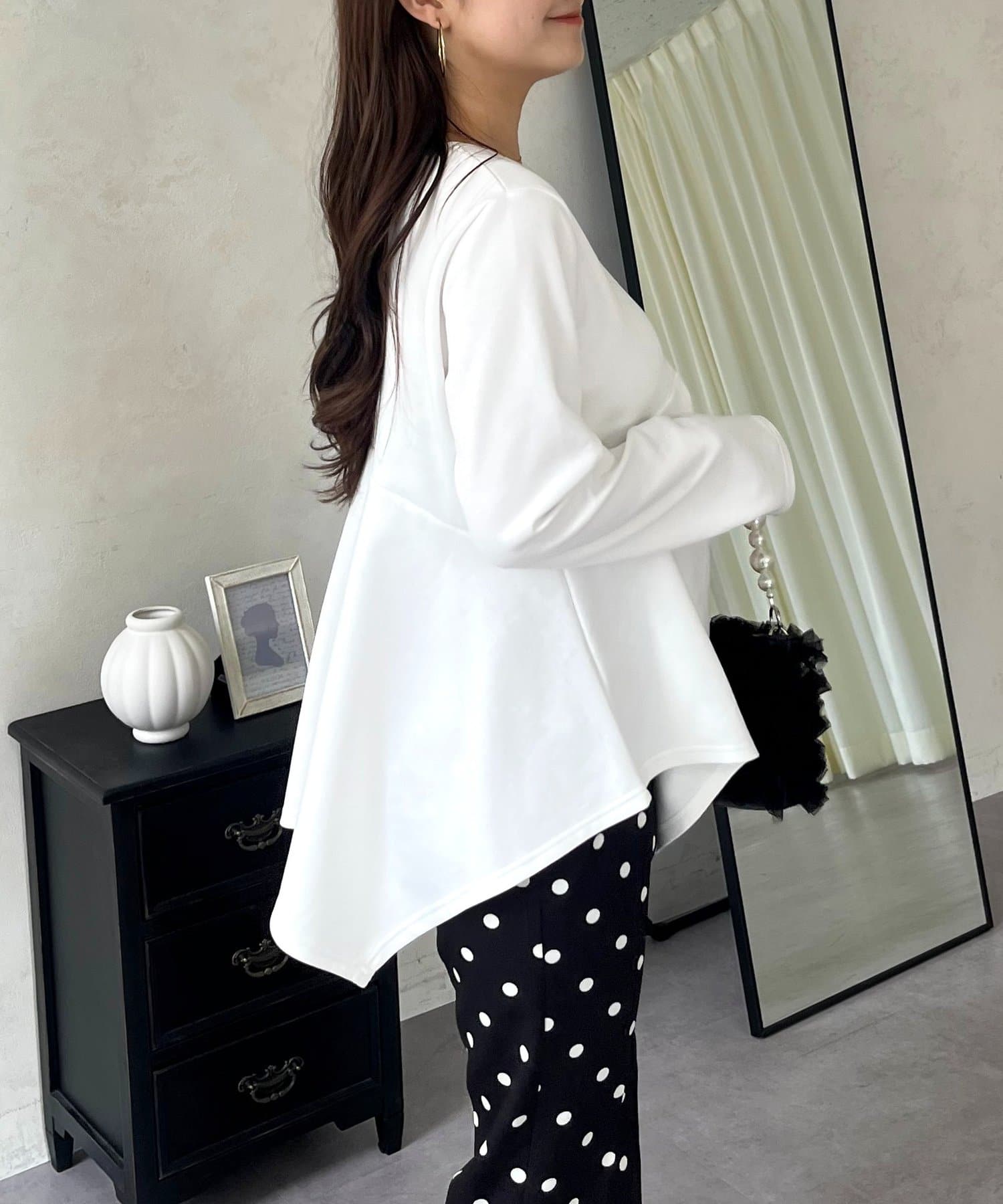 ●ヘムカーブの裾がふんわり女性らしい動きに