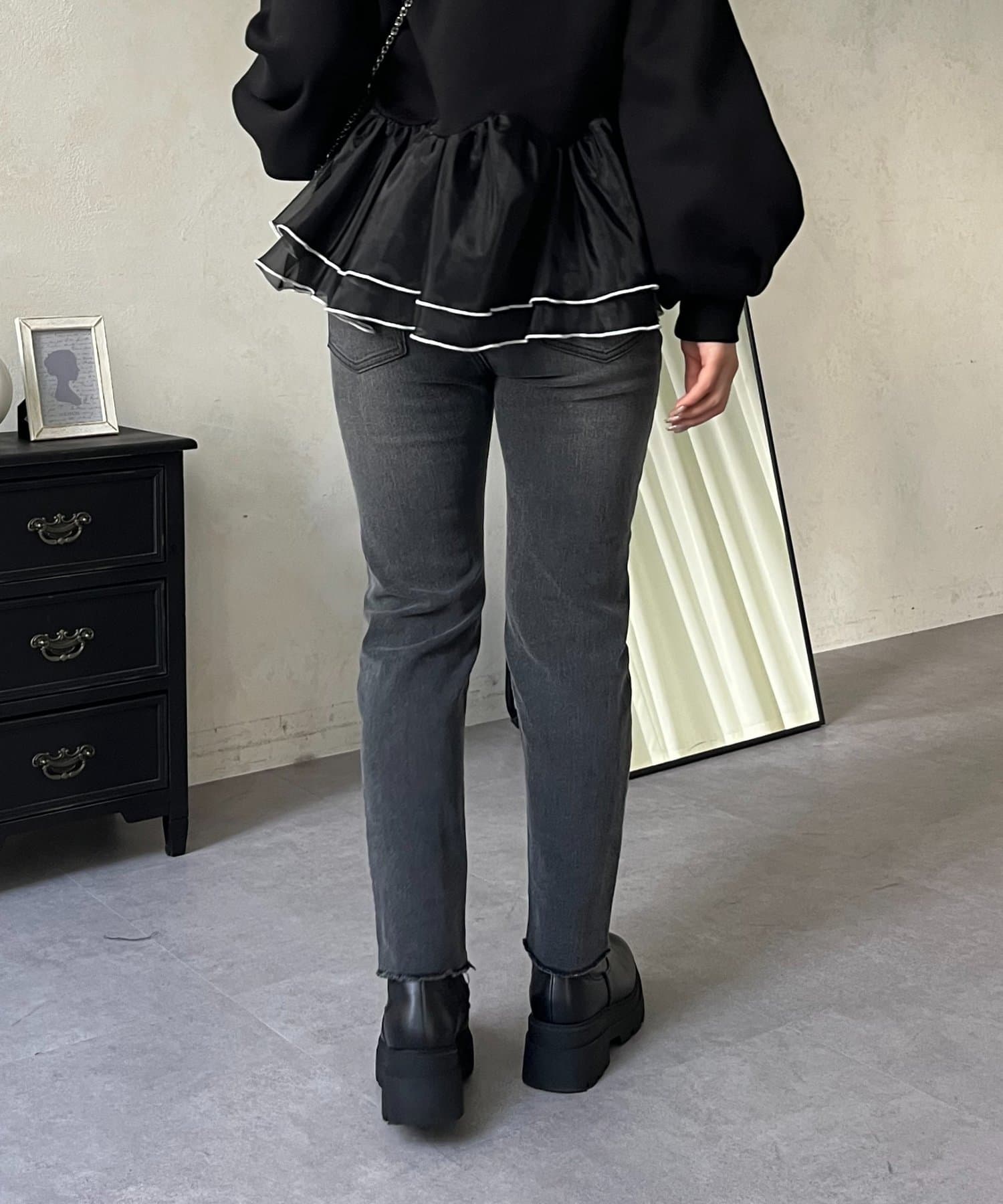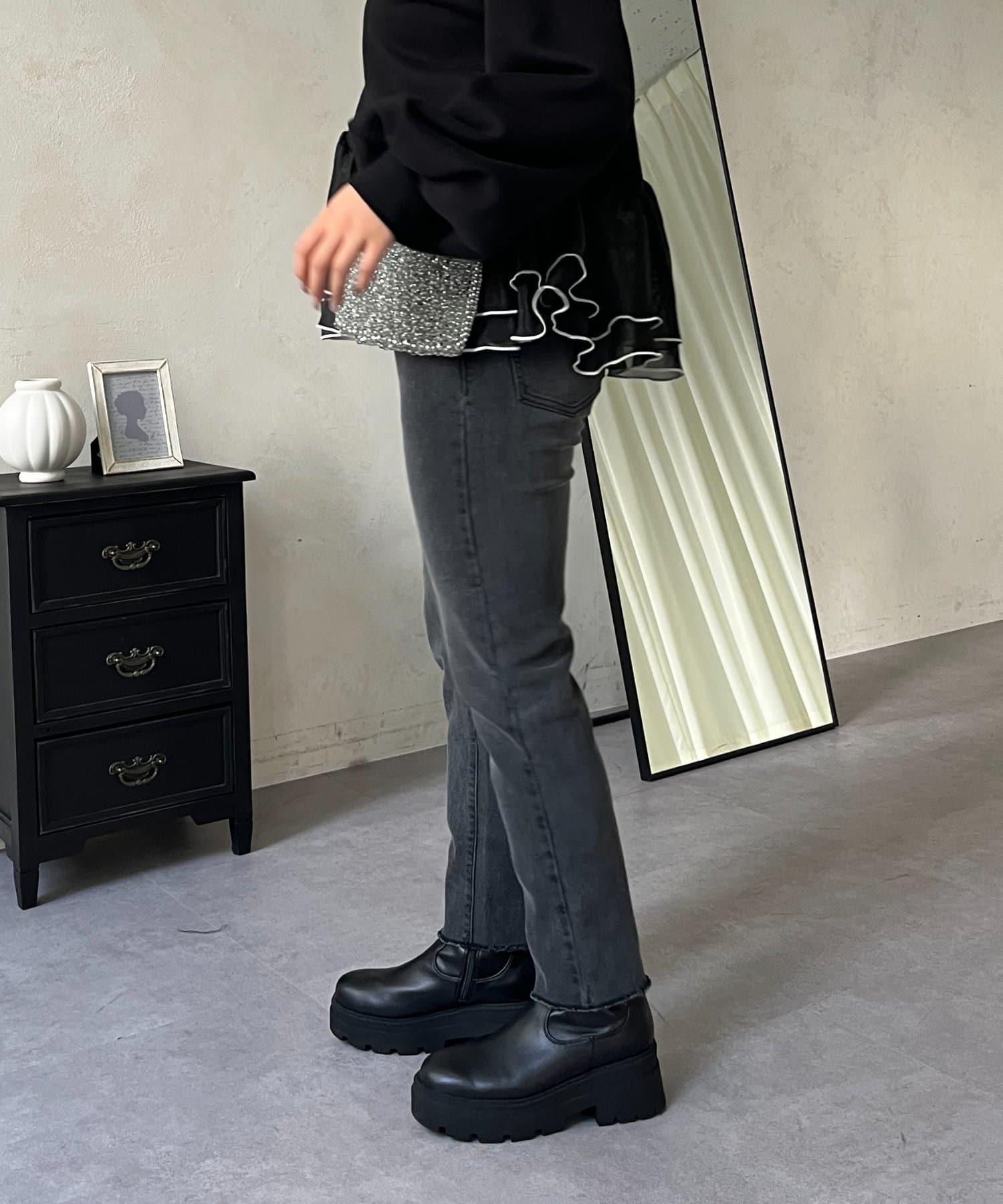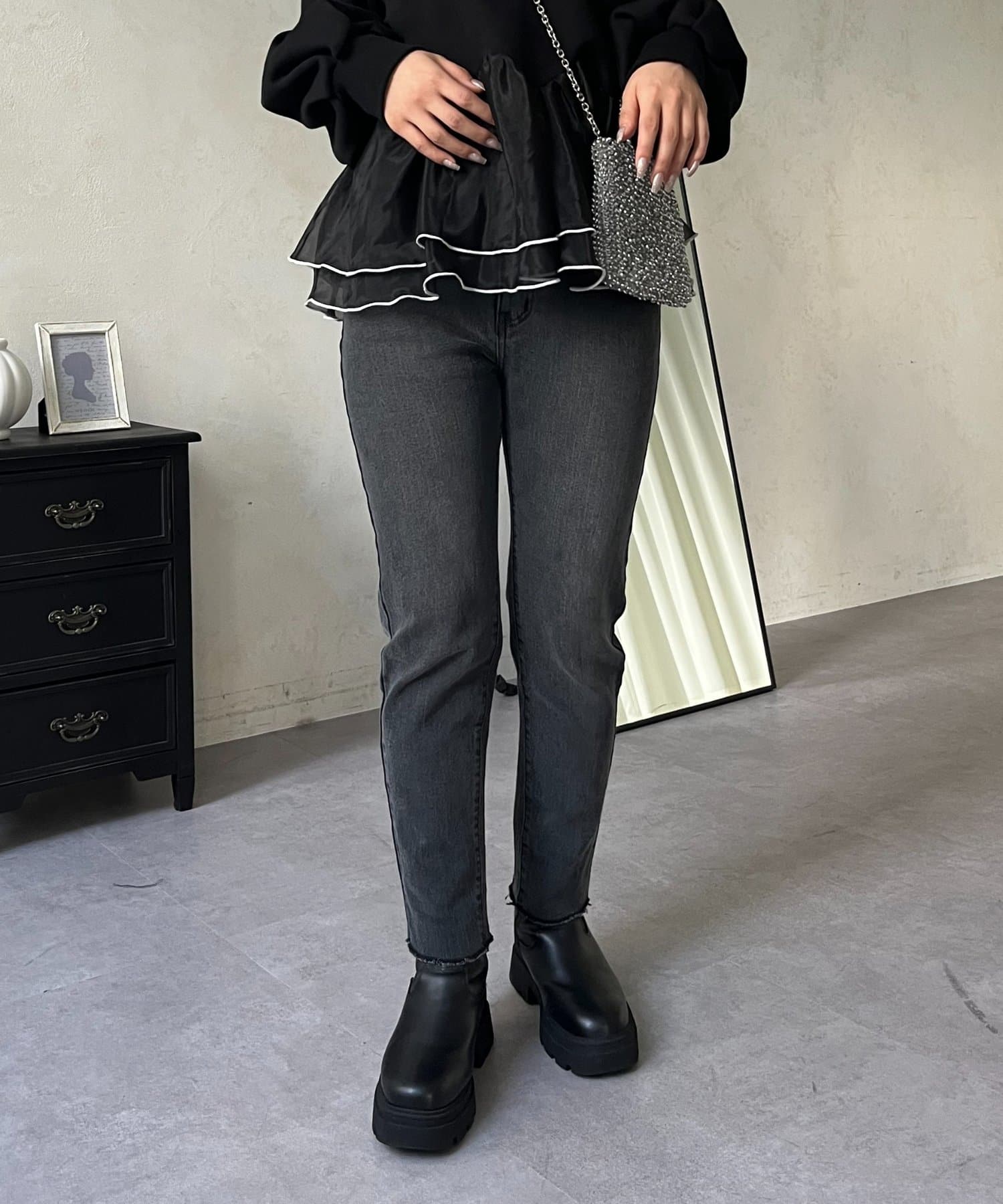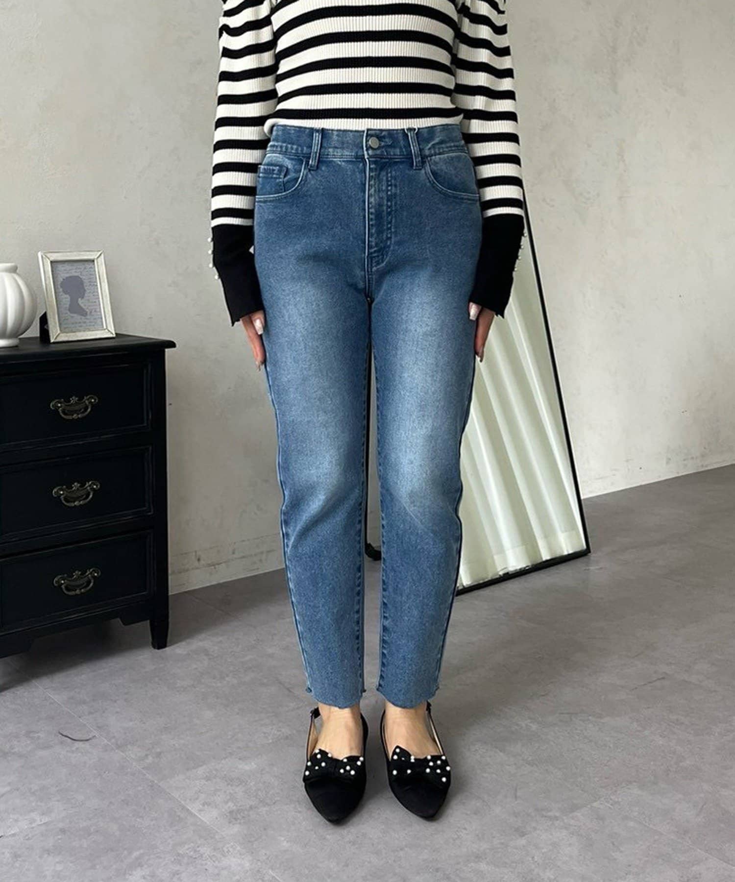 【MOMO】裏微起毛ストレッチテーパードデニム