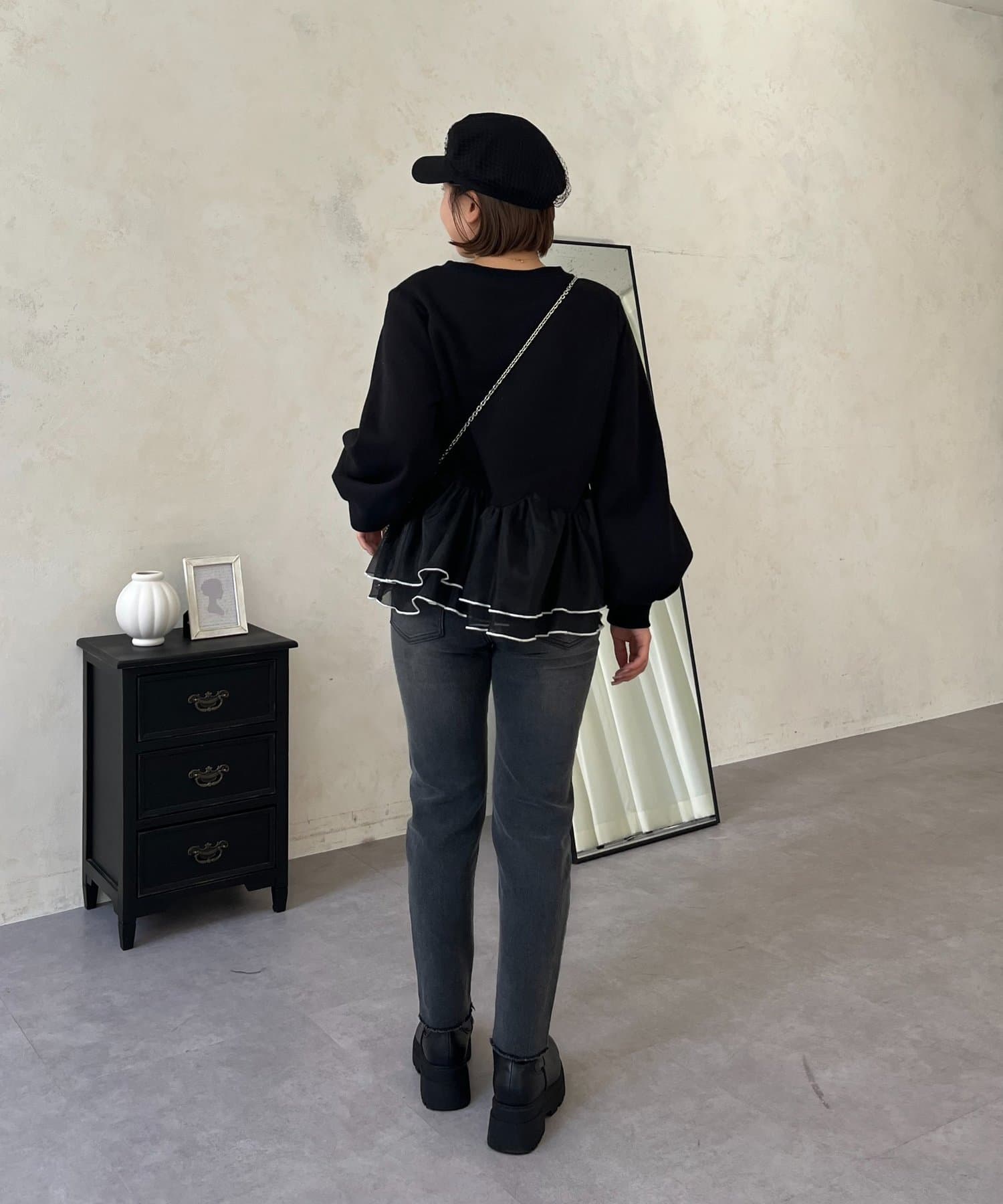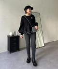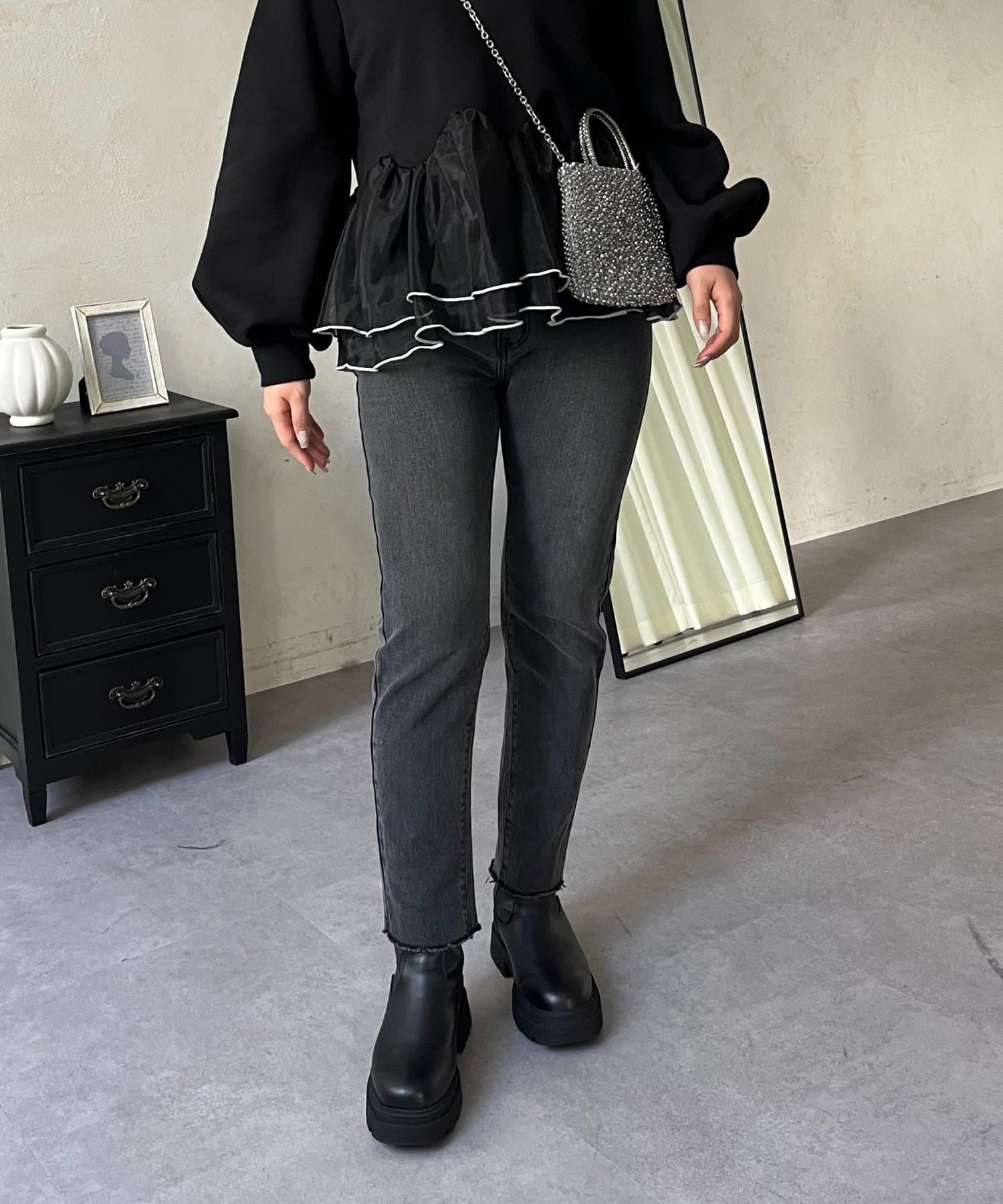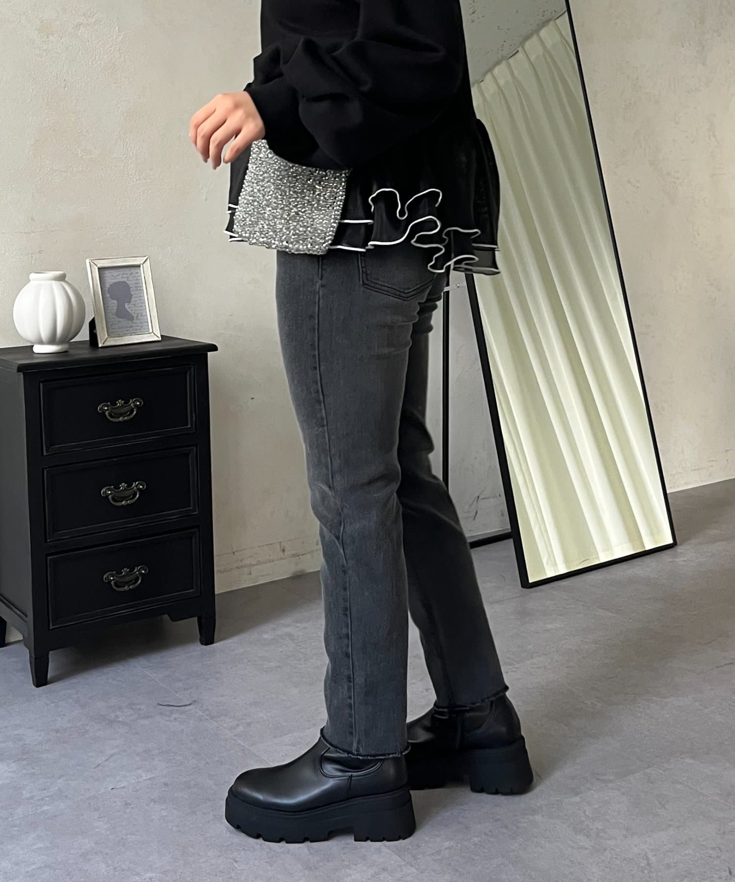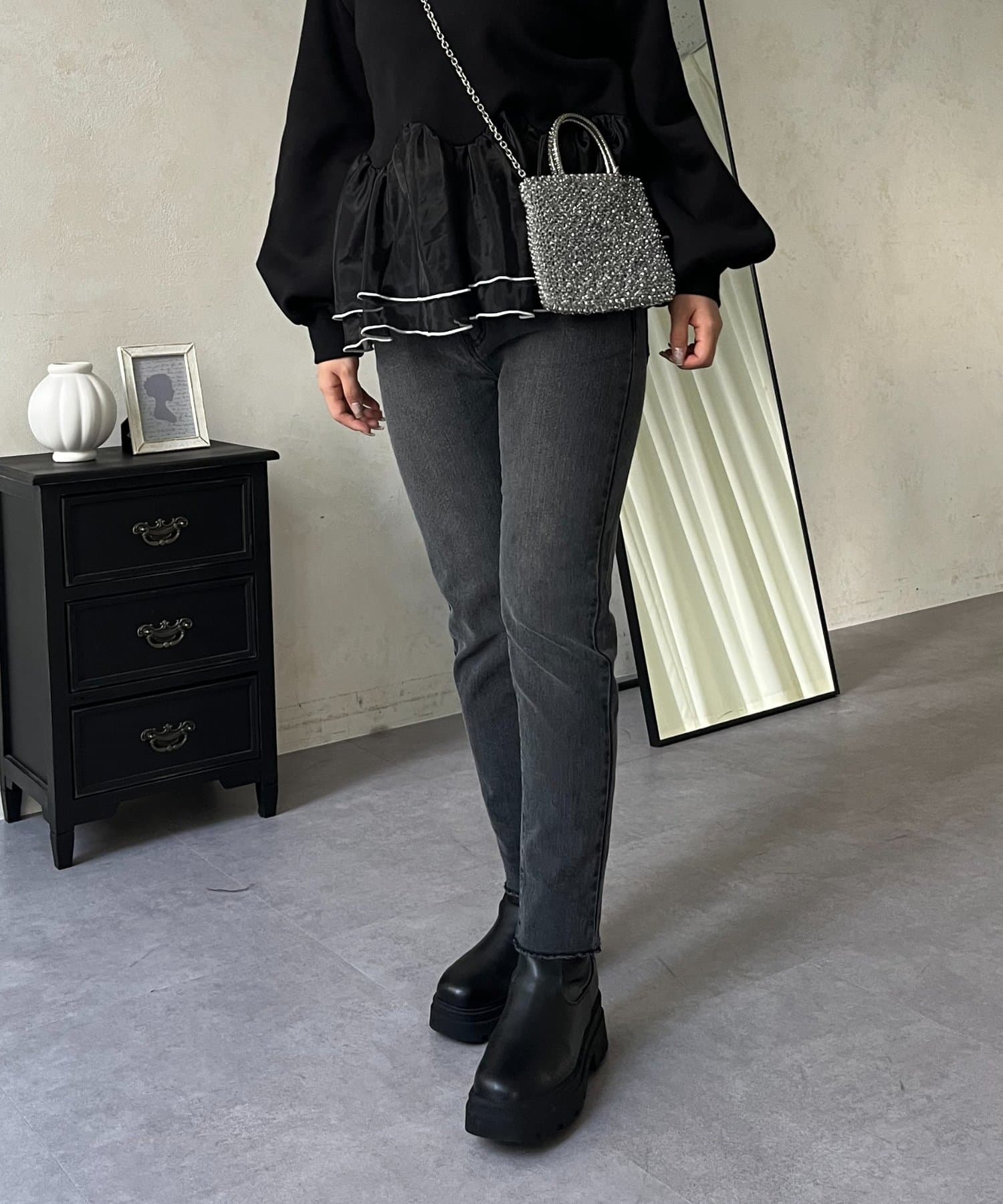 【MOMO】裏微起毛ストレッチテーパードデニム