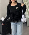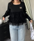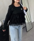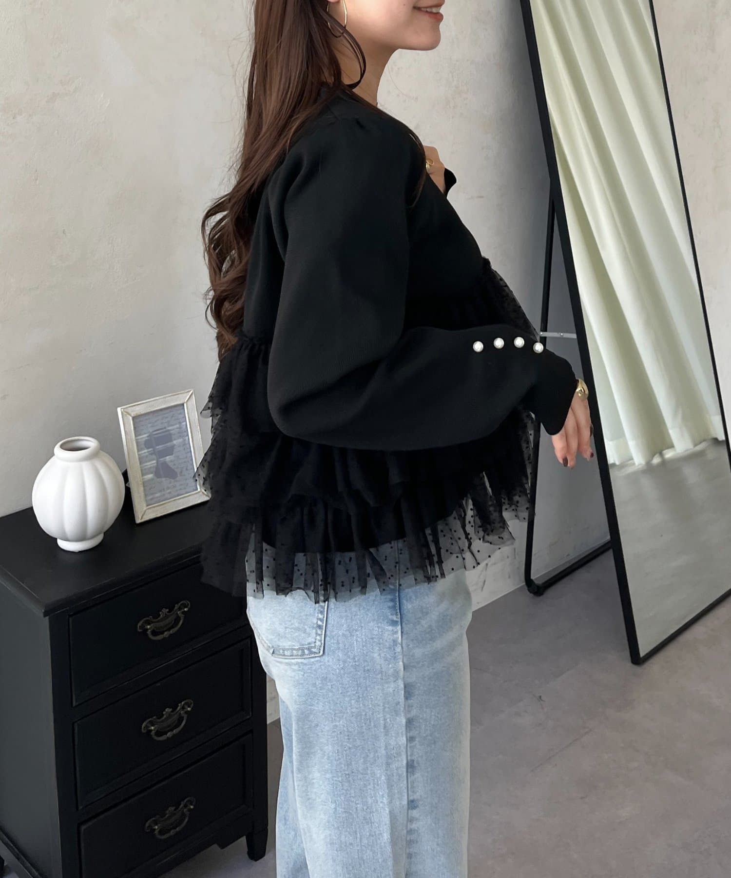 • prose verse(プロズヴェール) ボリュームドットチュールフリルスクエアネックニット