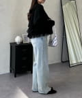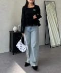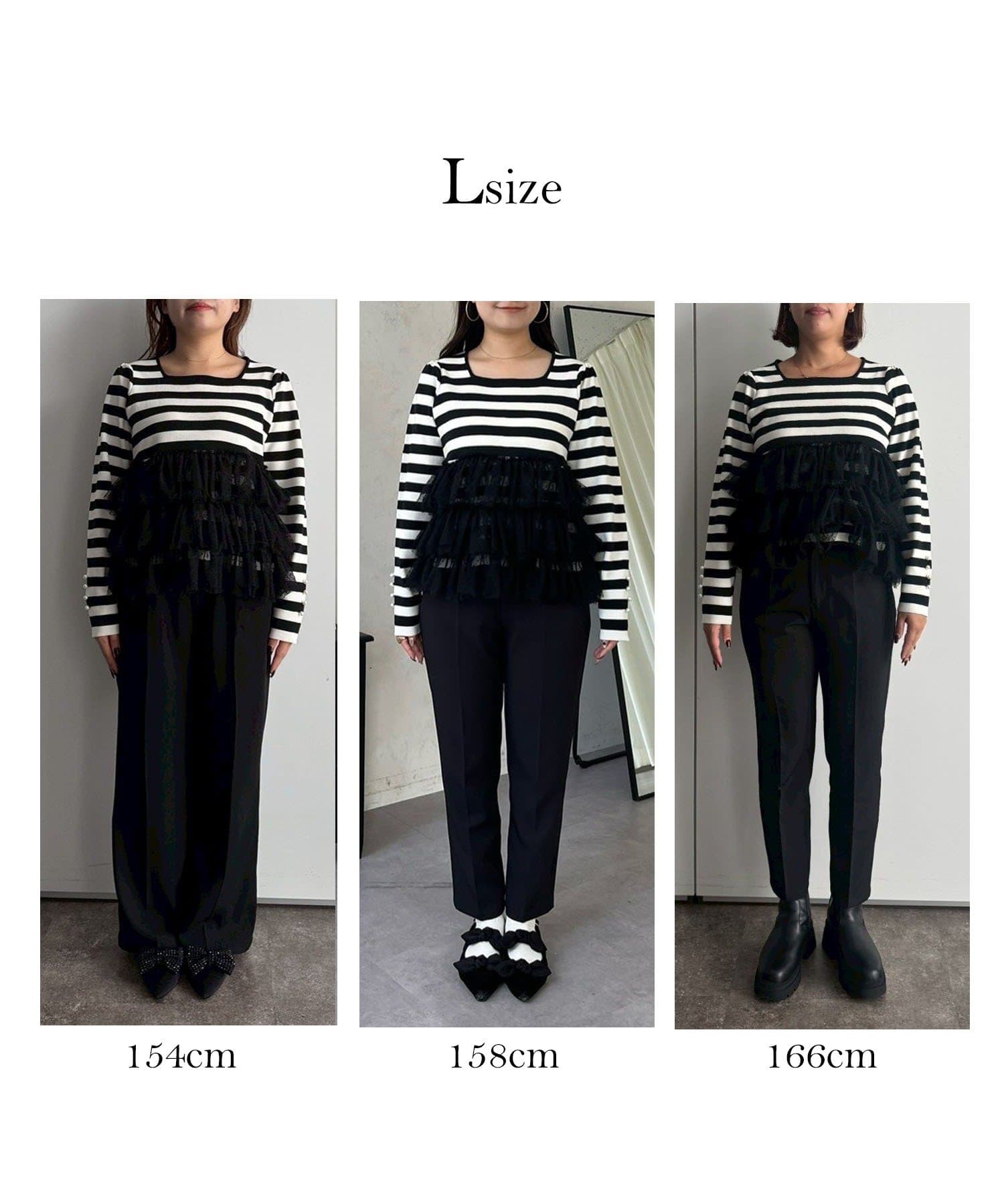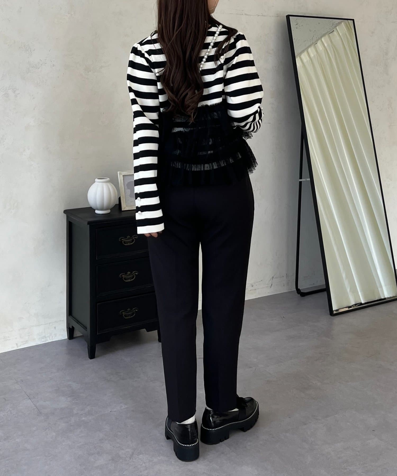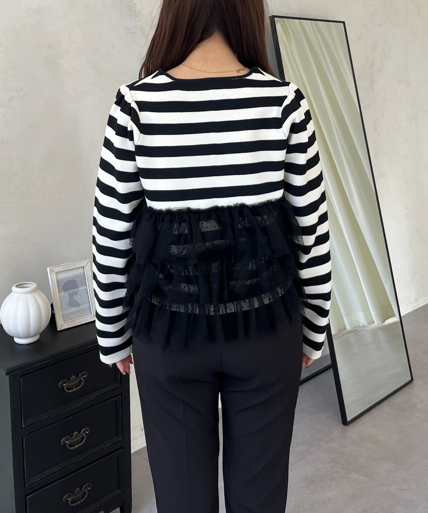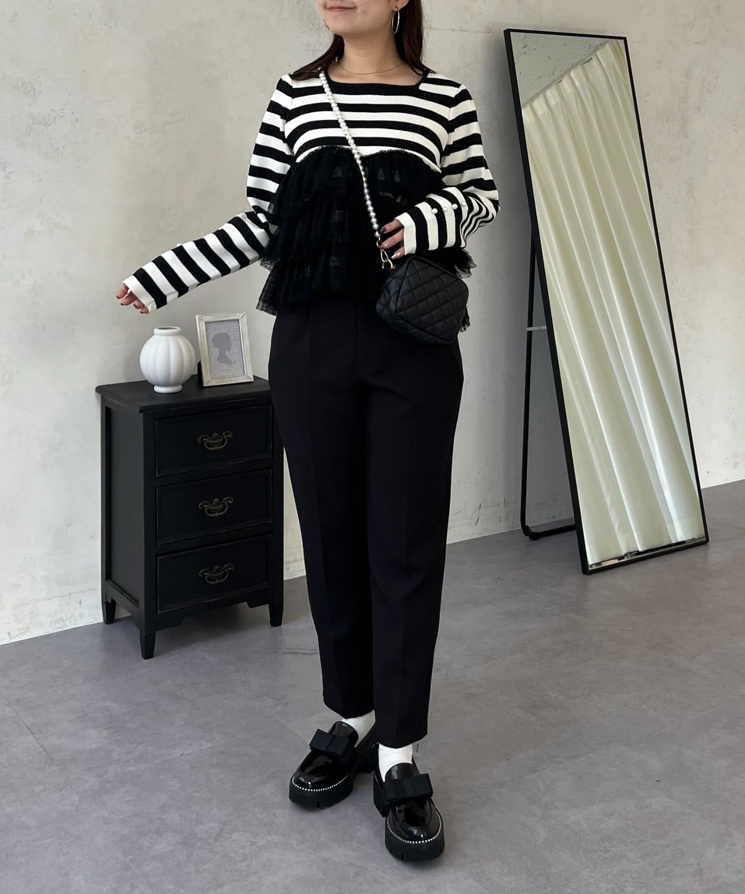 短丈ですが、チュールフリルがあるからそんなにお腹とか腰回り気にならないです!首元もスクエアネックなのでスッキリ着れて有難いデザインです!