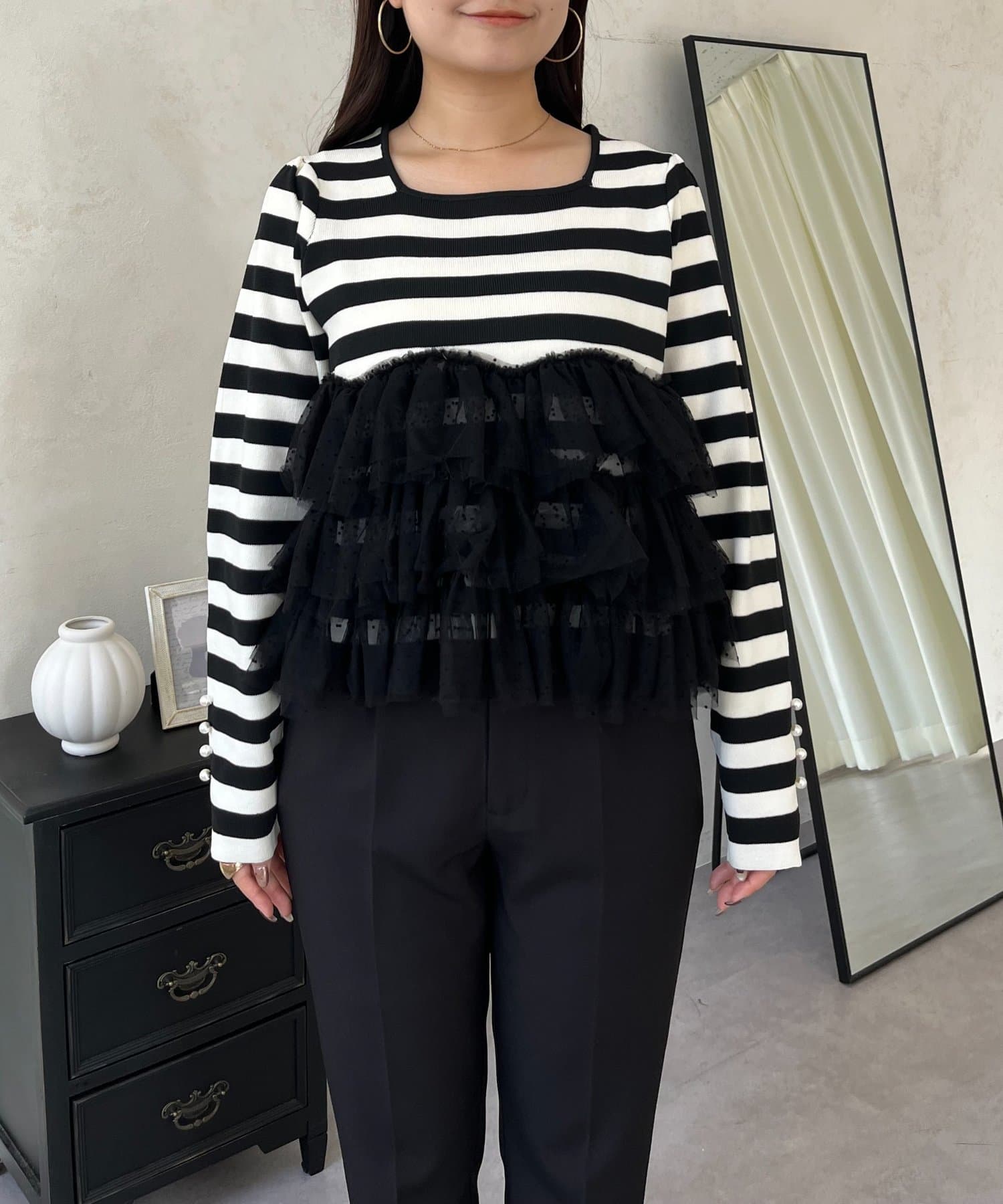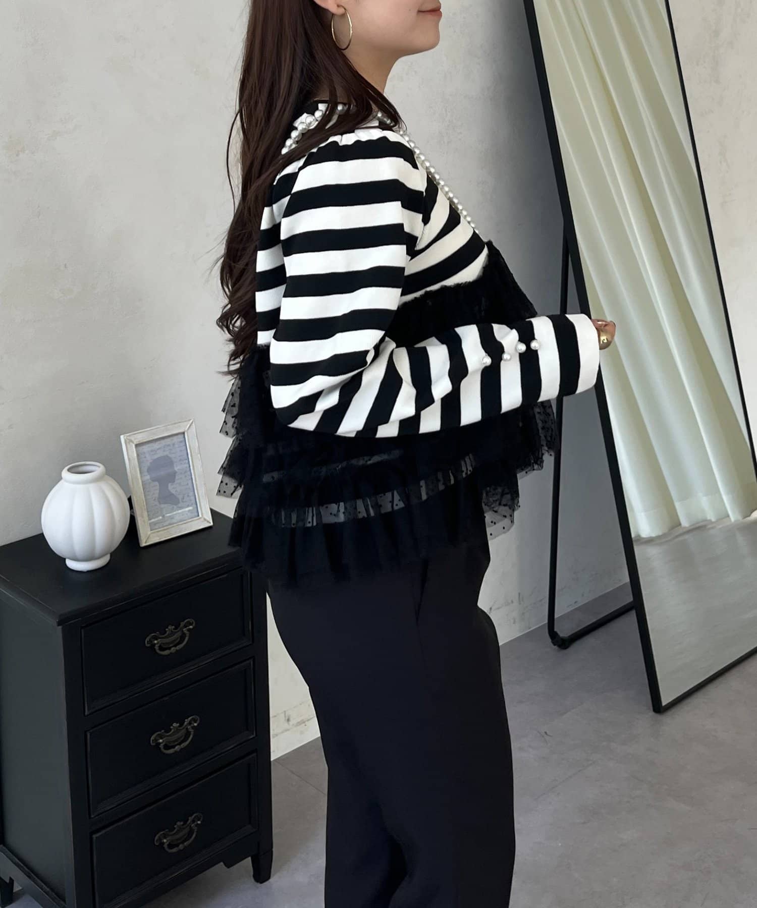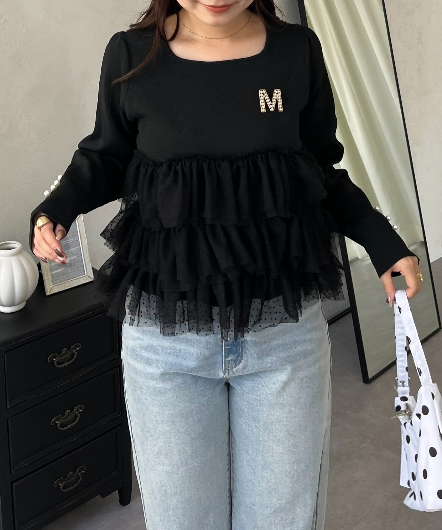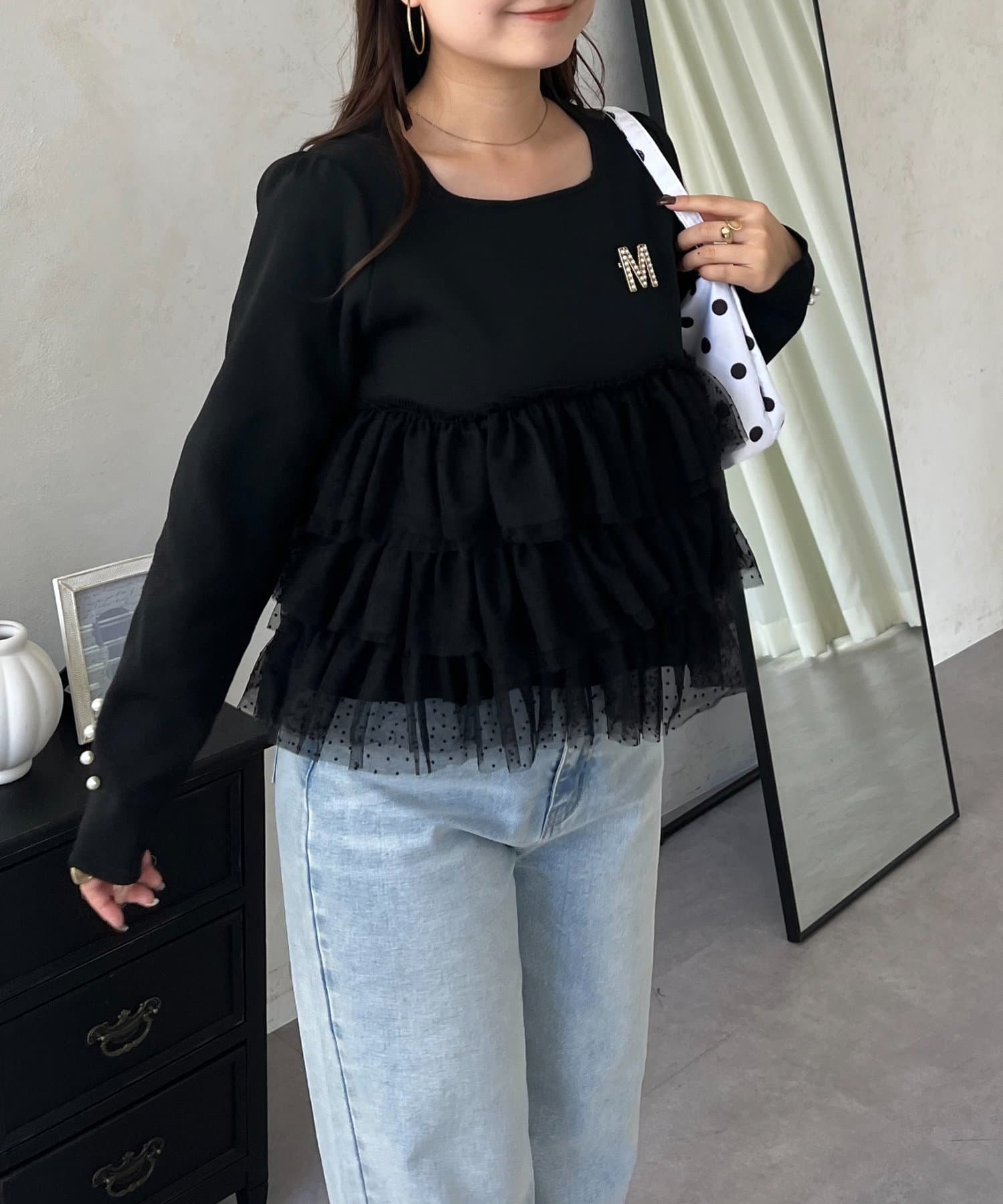 prose verse(プロズヴェール) ボリュームドットチュールフリルスクエアネックニット
