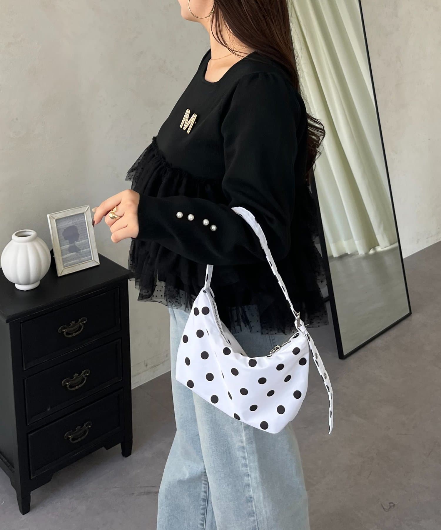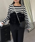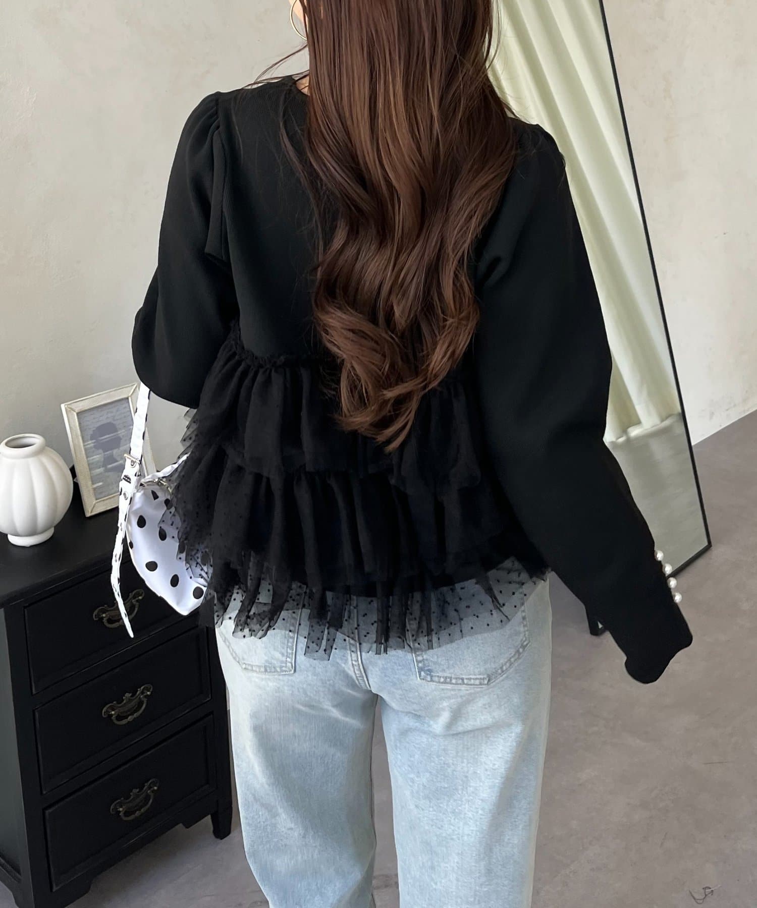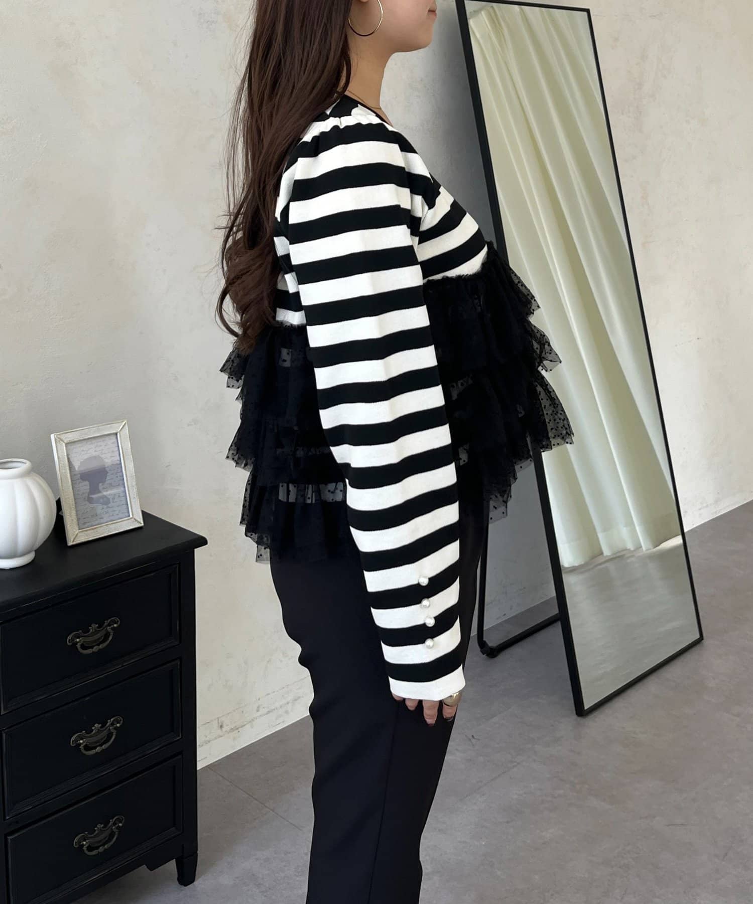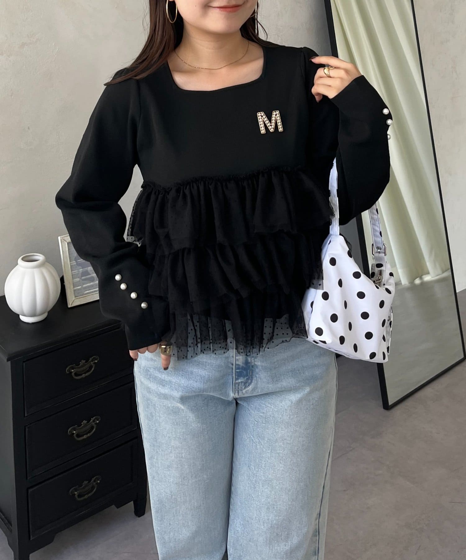 prose verse(プロズヴェール) ボリュームドットチュールフリルスクエアネックニット