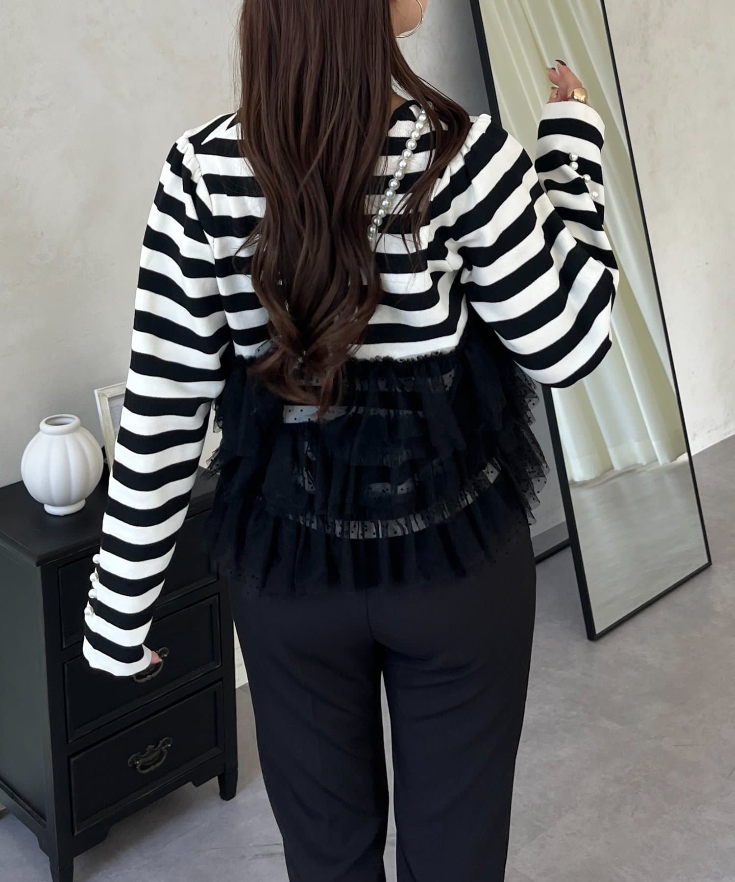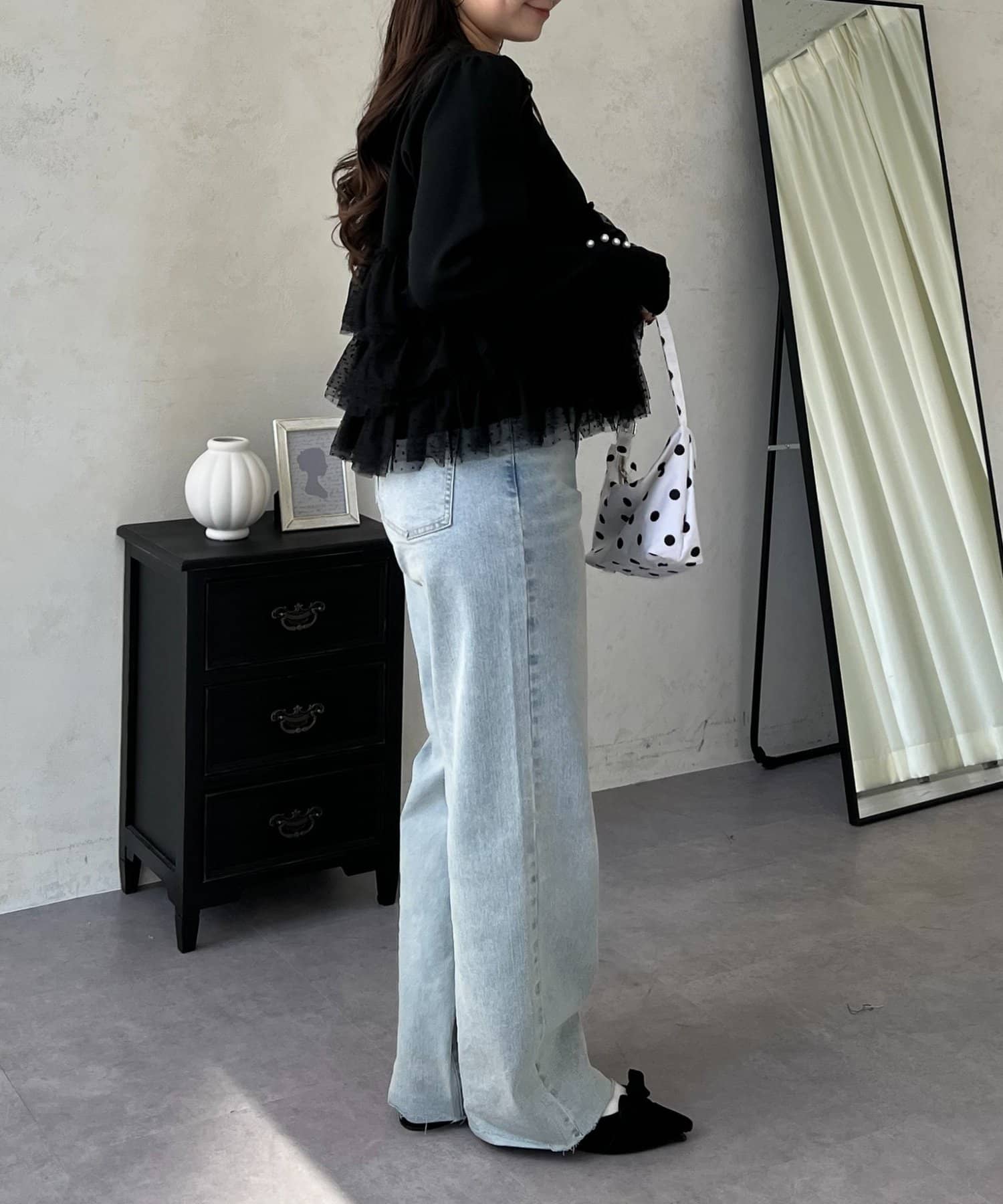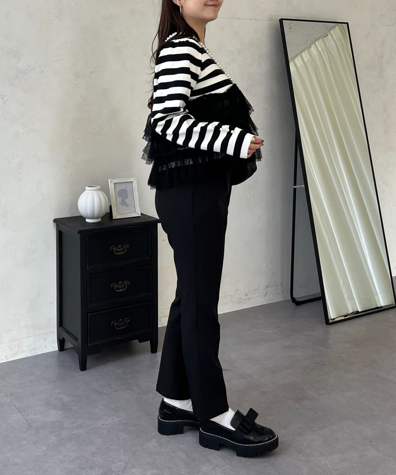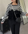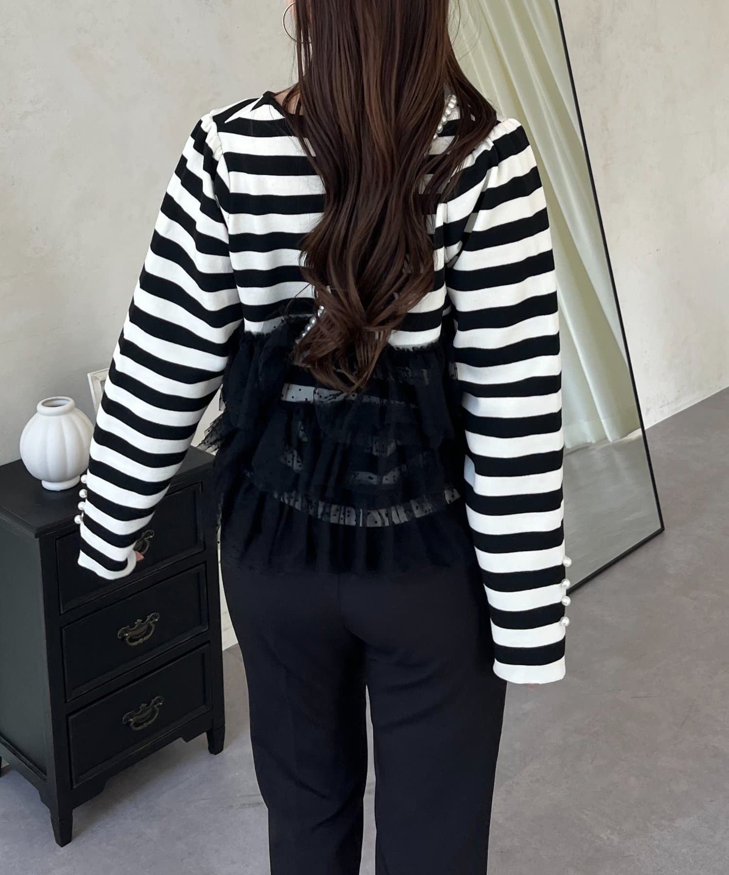 prose verse(プロズヴェール) ボリュームドットチュールフリルスクエアネックニット