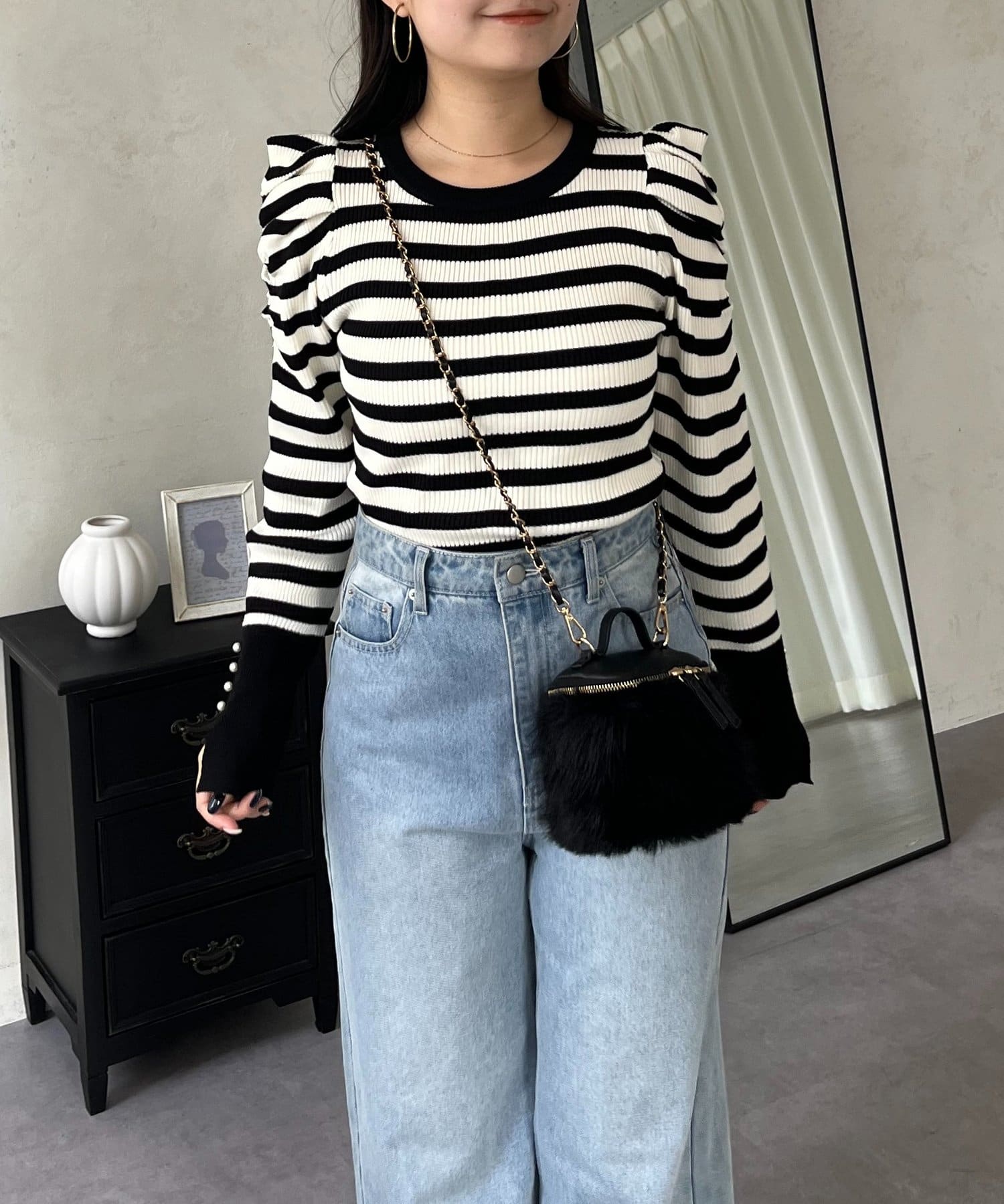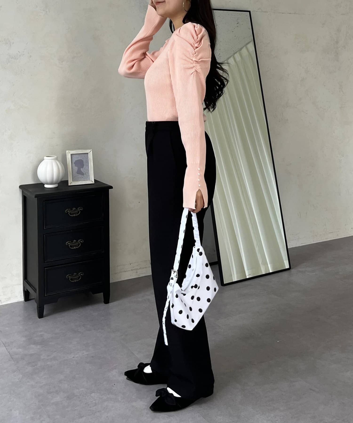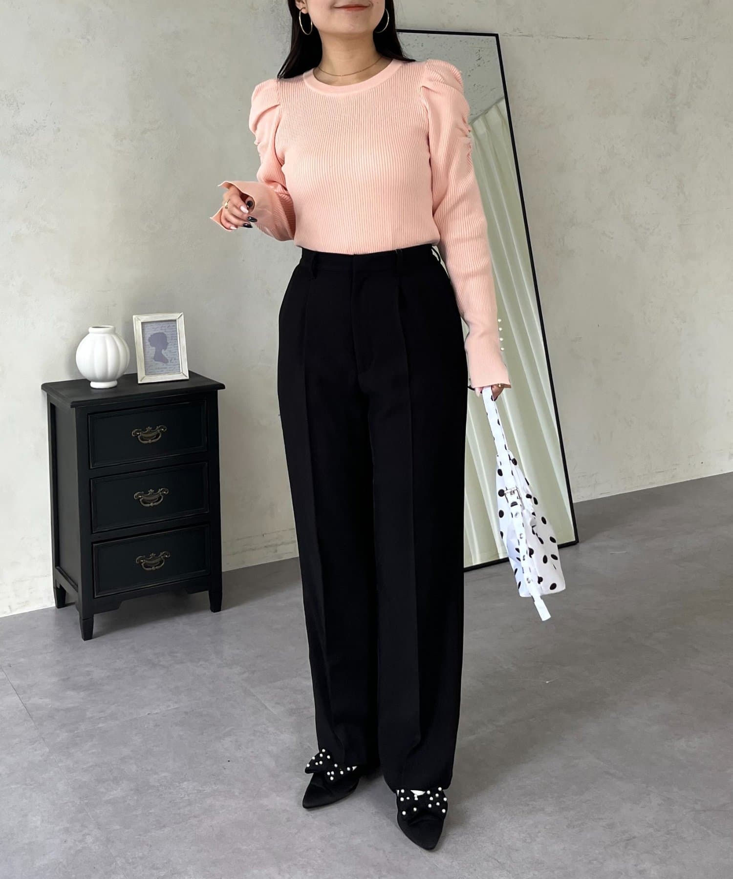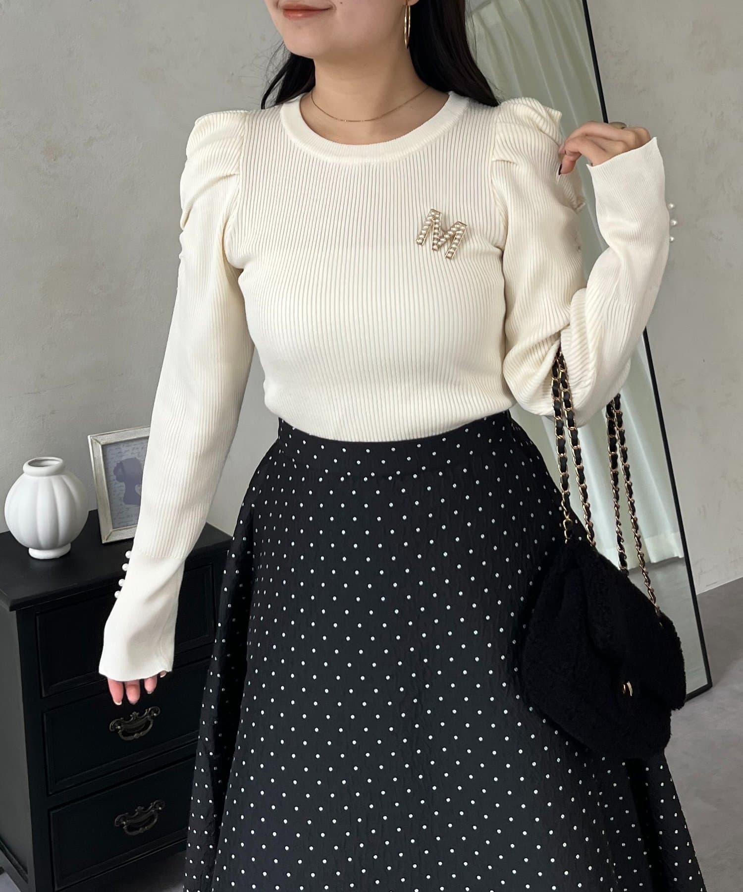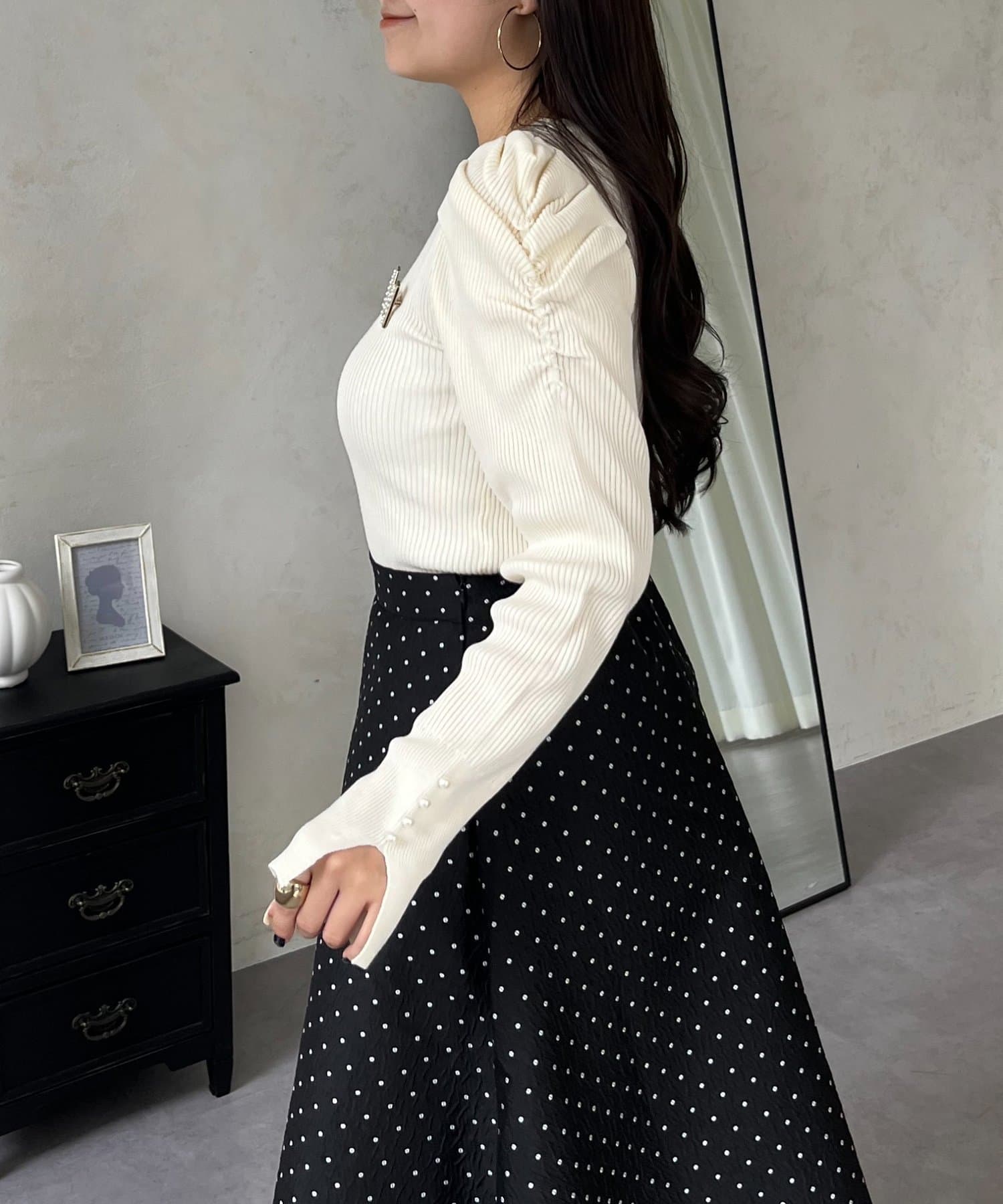 prose verse(プロズヴェール) 袖パールパフスリーブリブニット