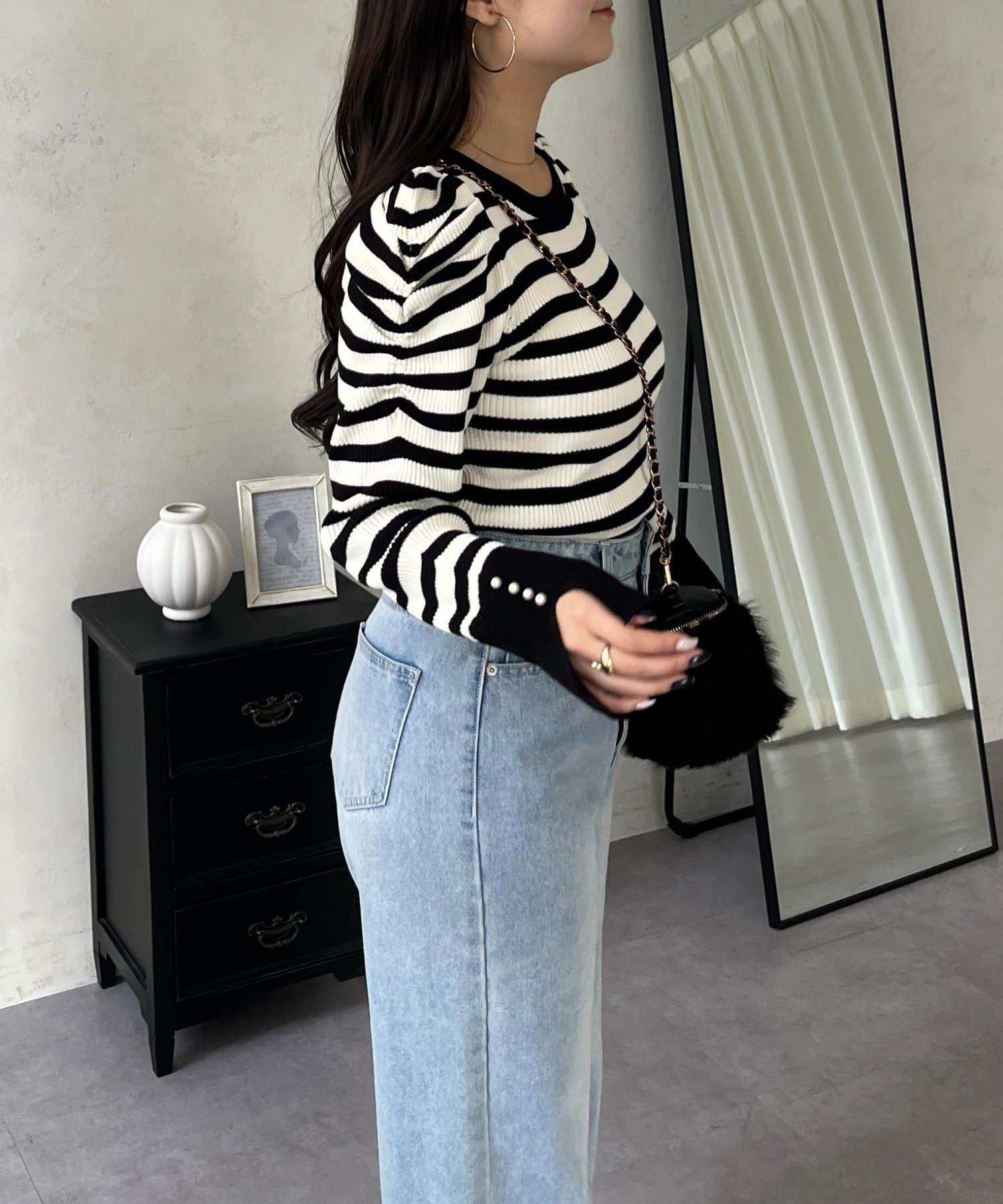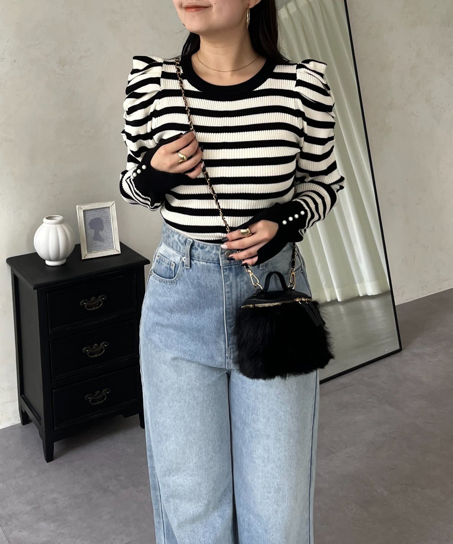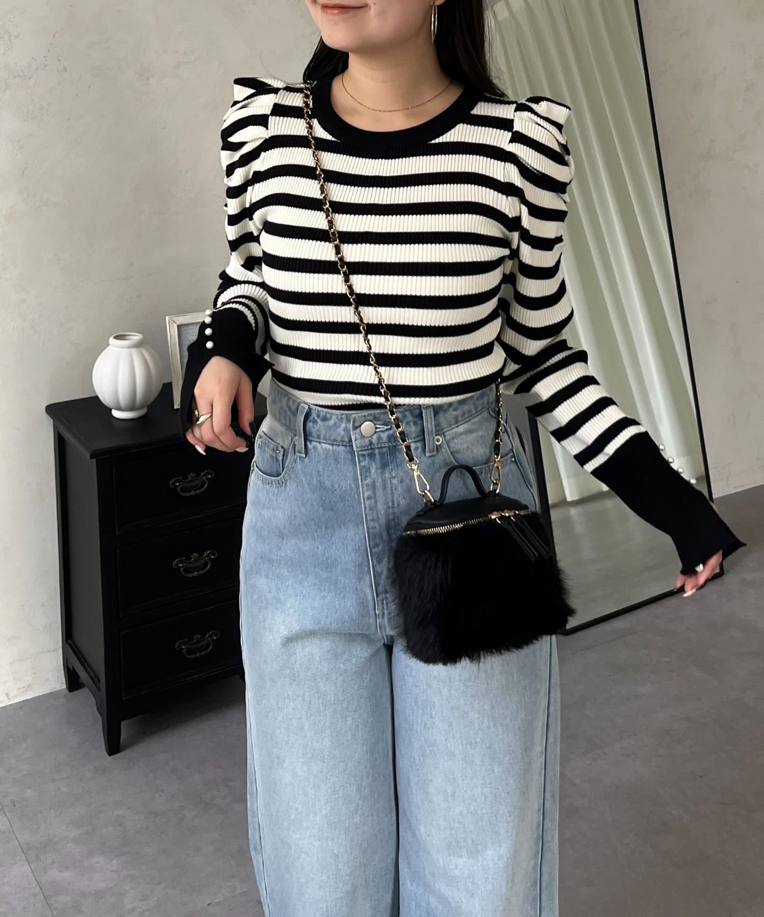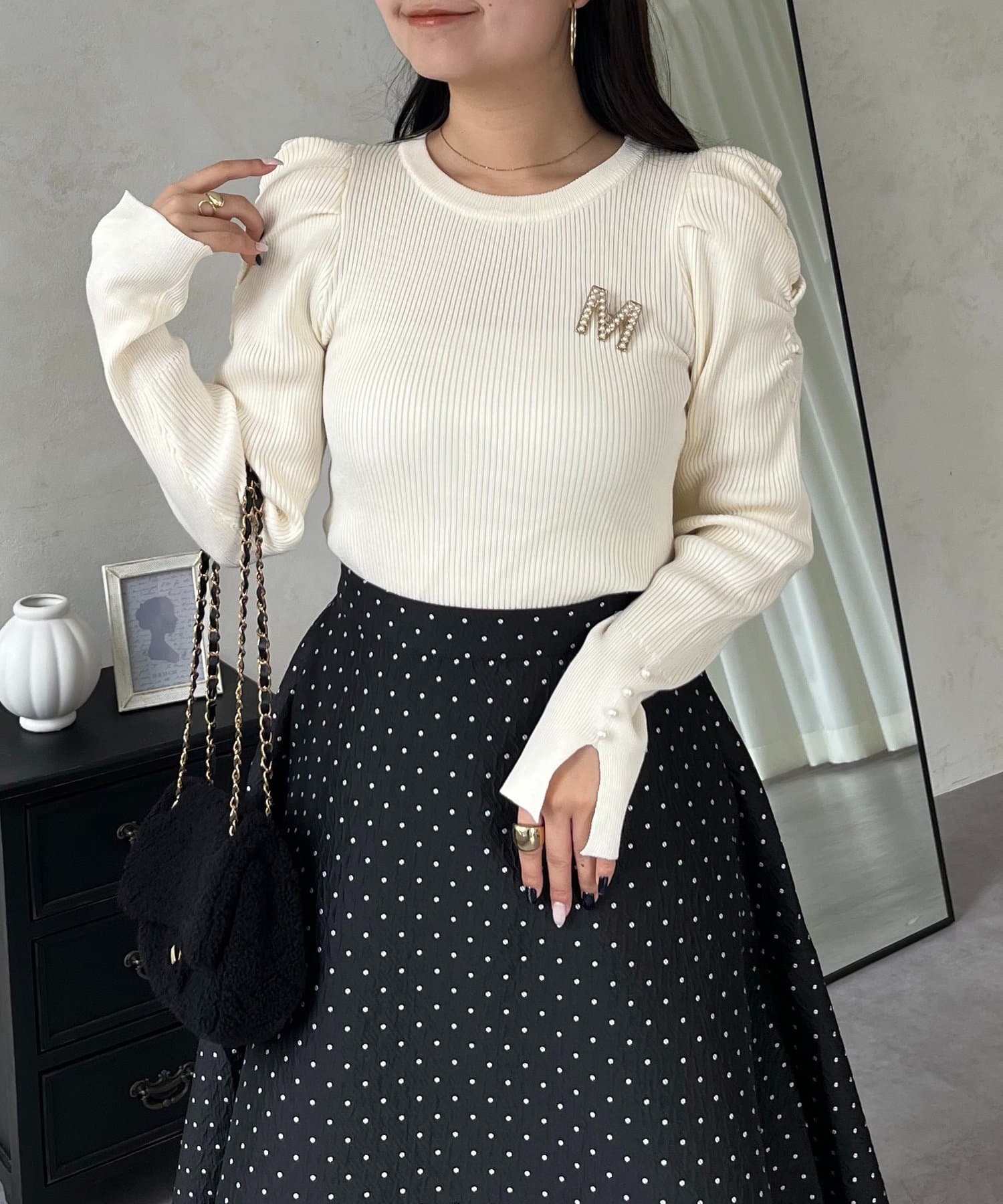 • prose verse(プロズヴェール) 袖パールパフスリーブリブニット
