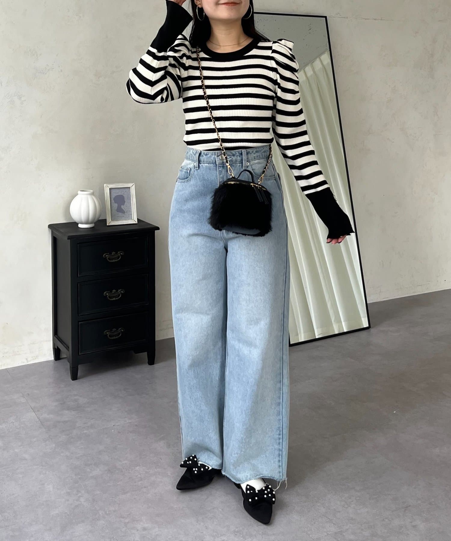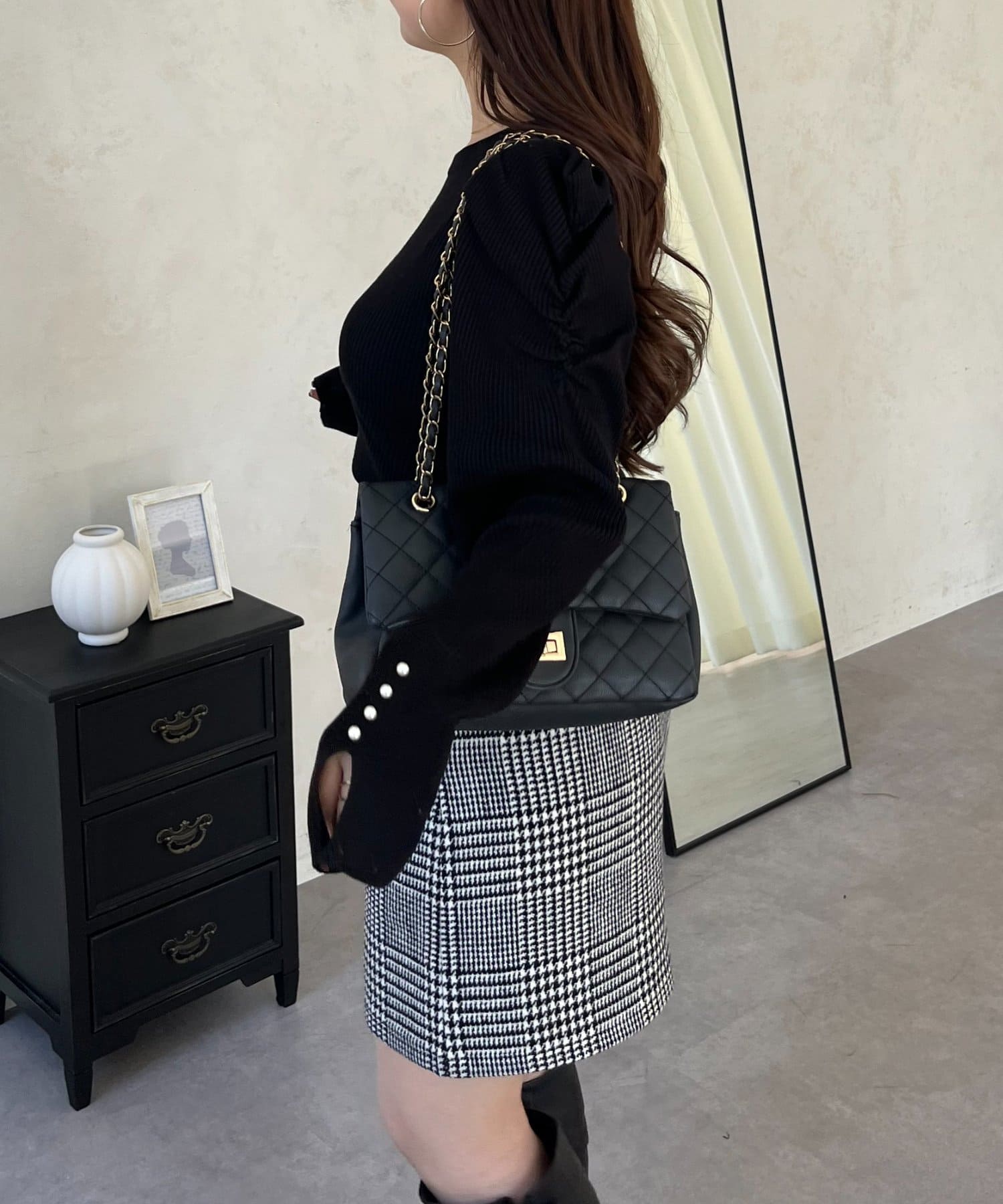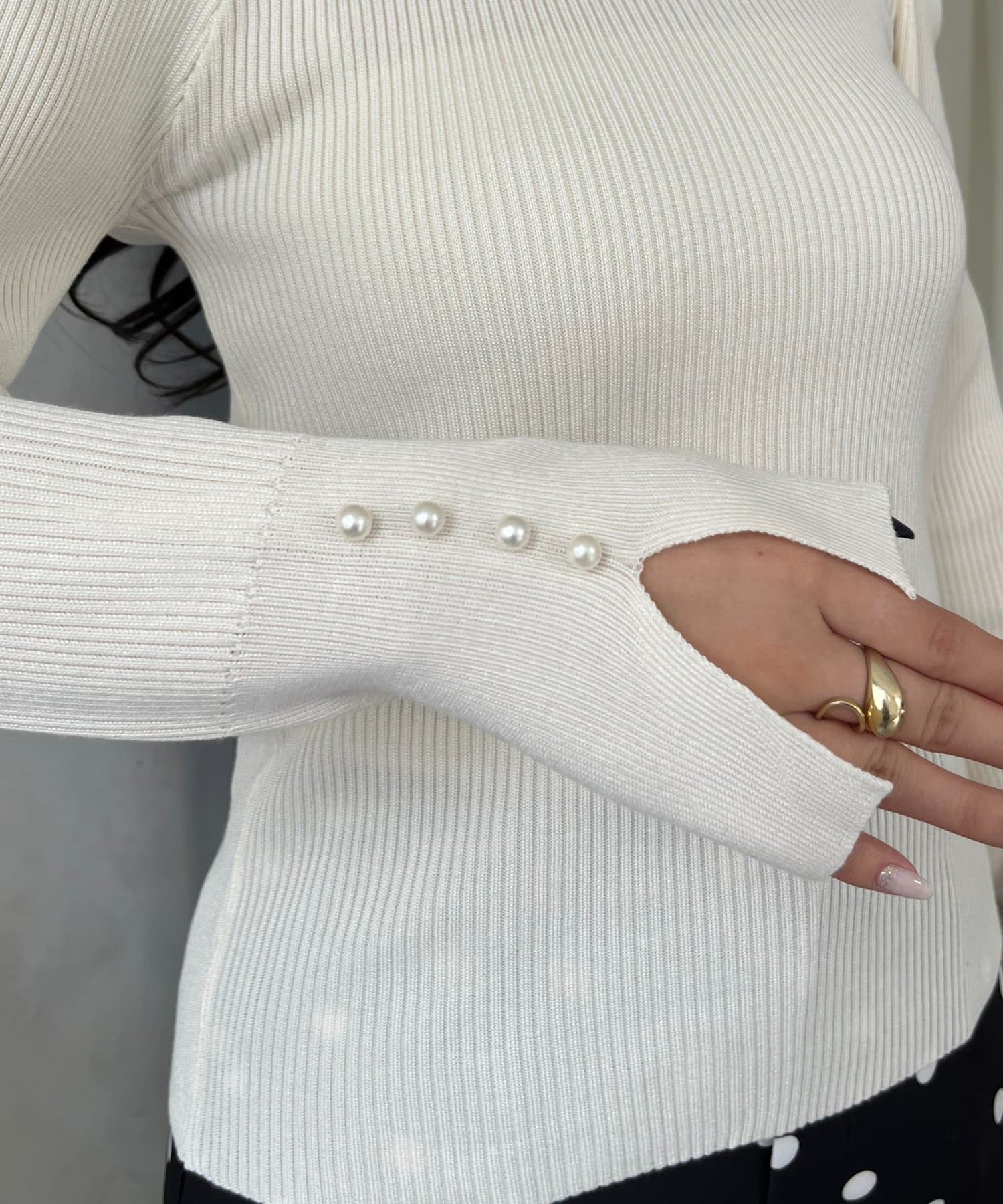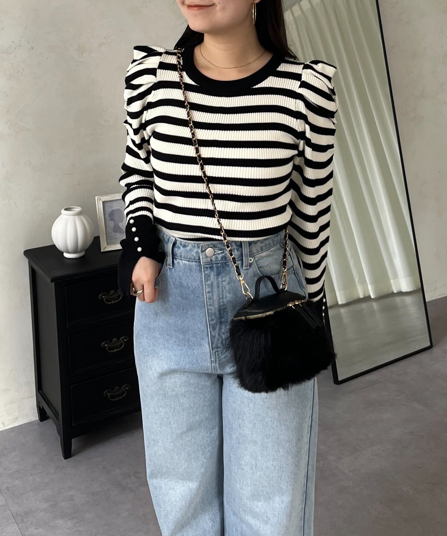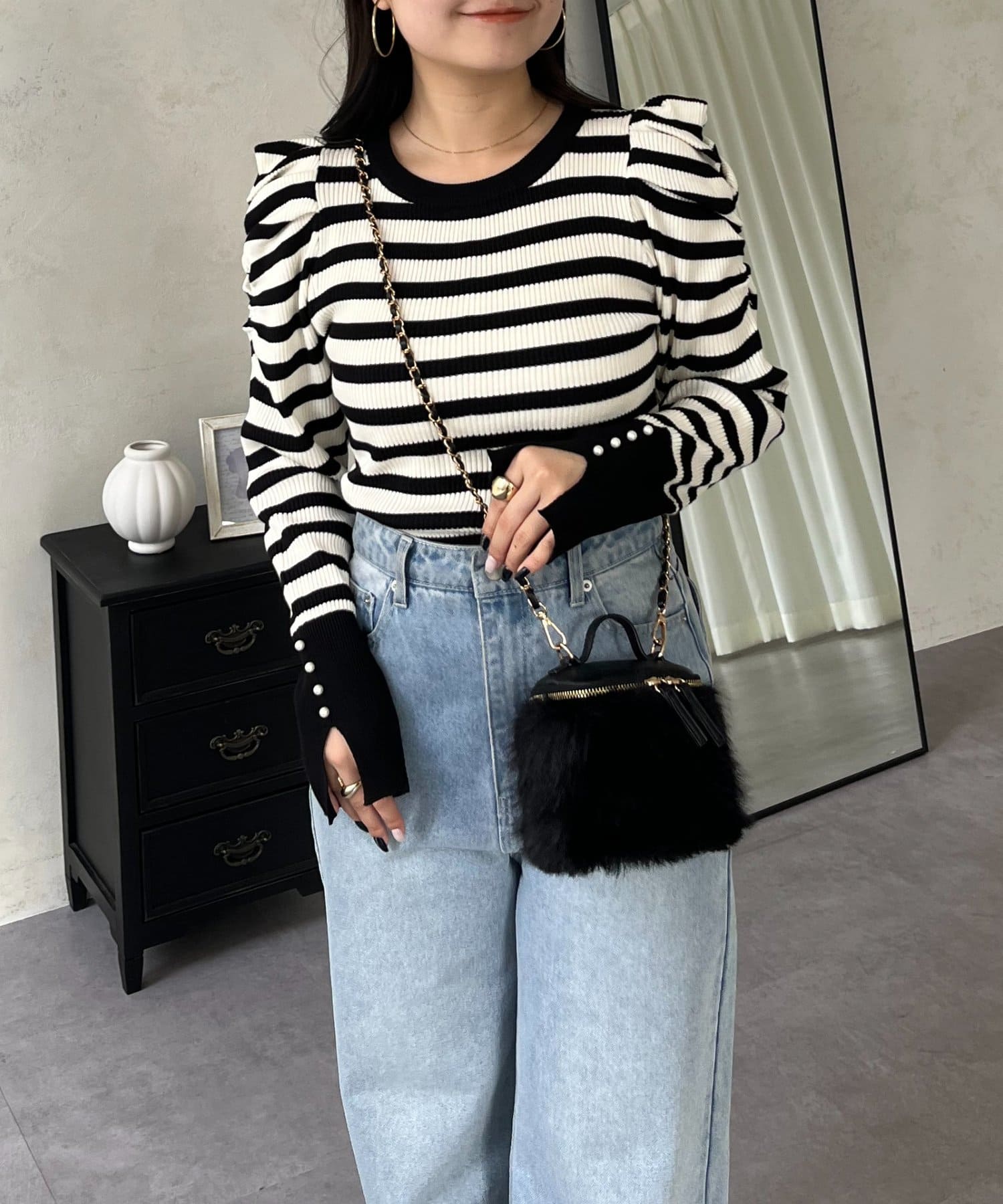 • prose verse(プロズヴェール) 袖パールパフスリーブリブニット