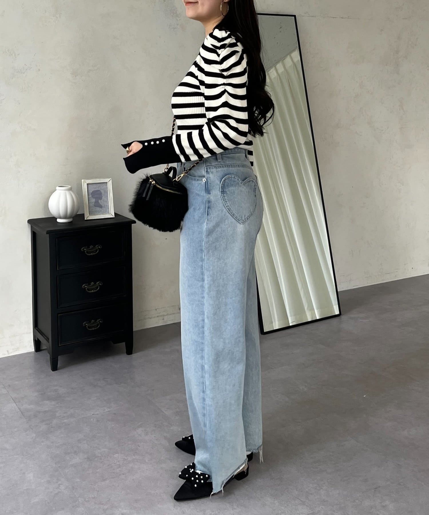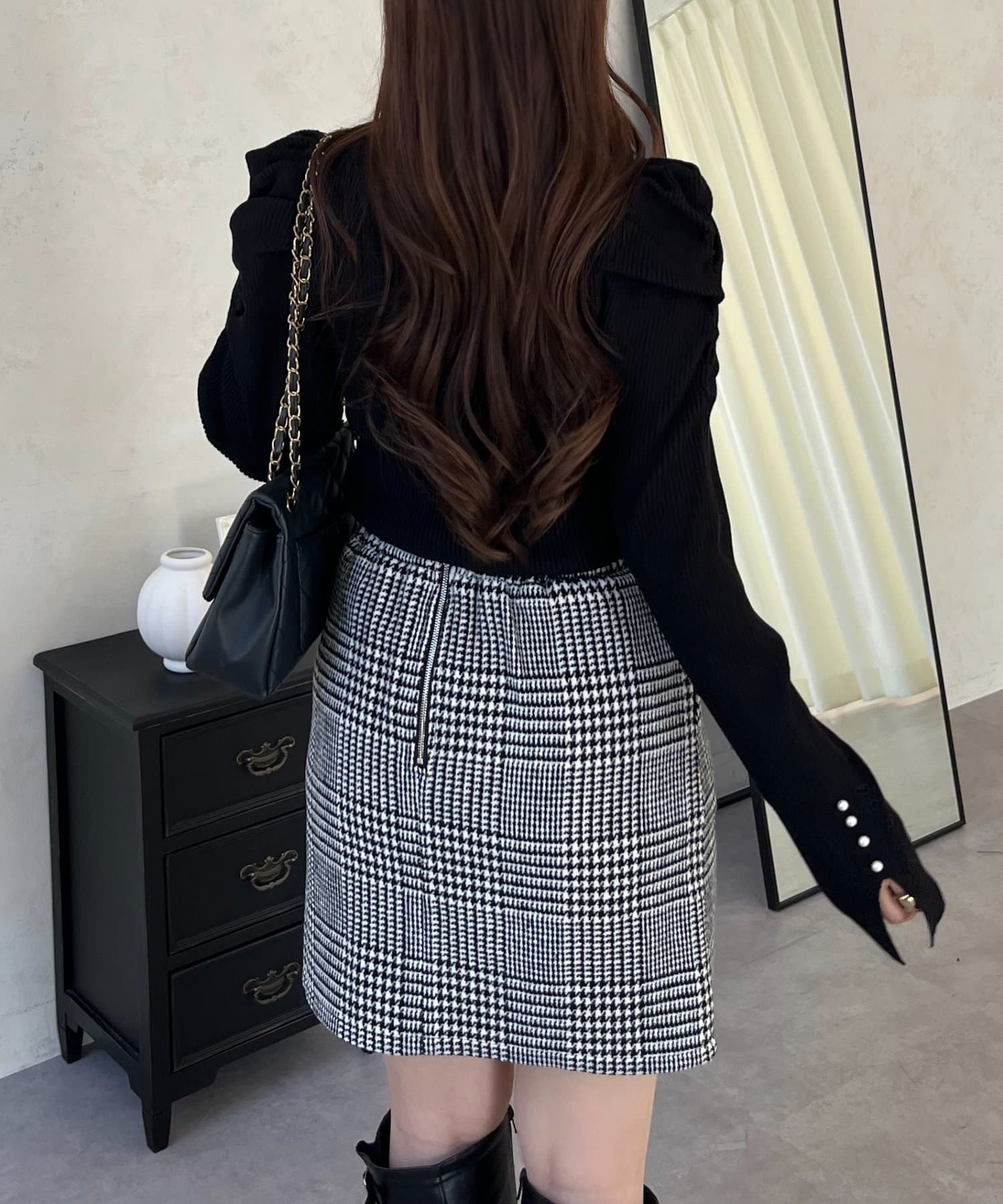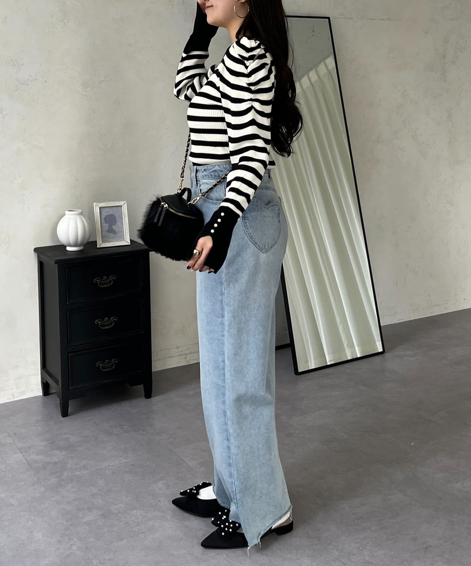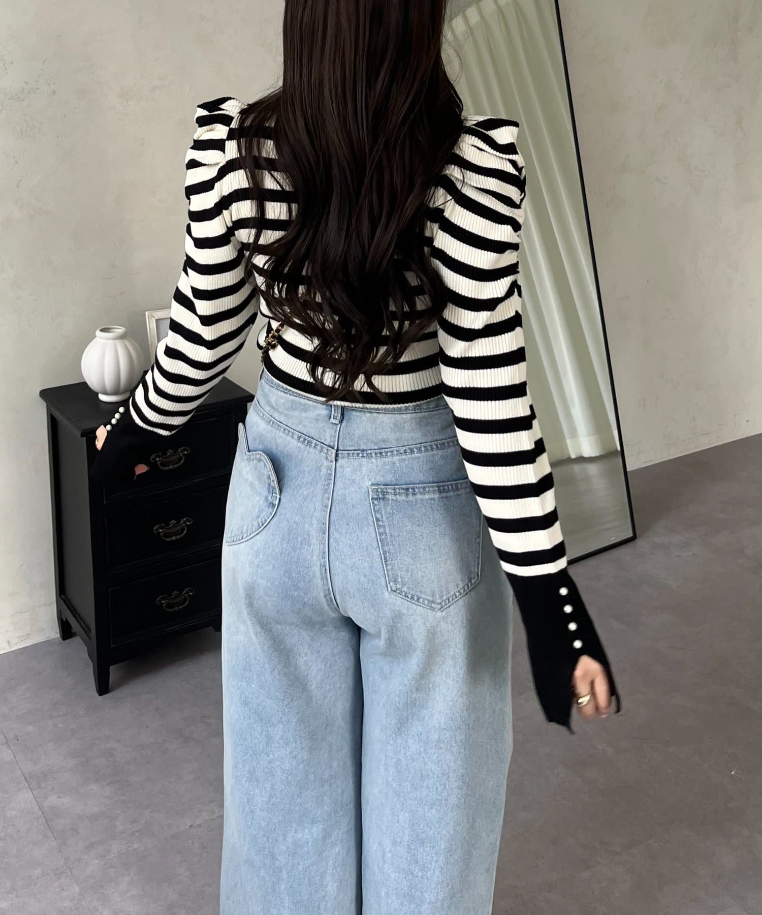 • prose verse(プロズヴェール) 袖パールパフスリーブリブニット