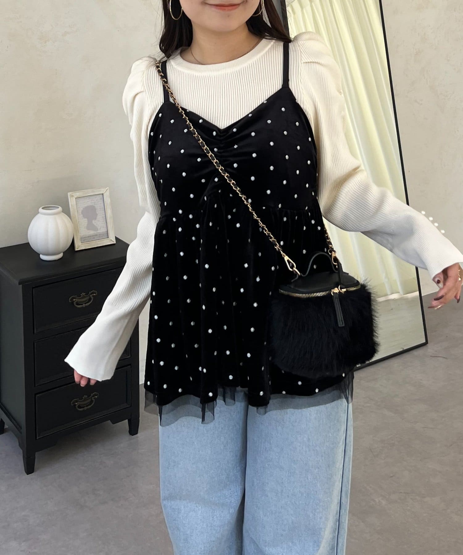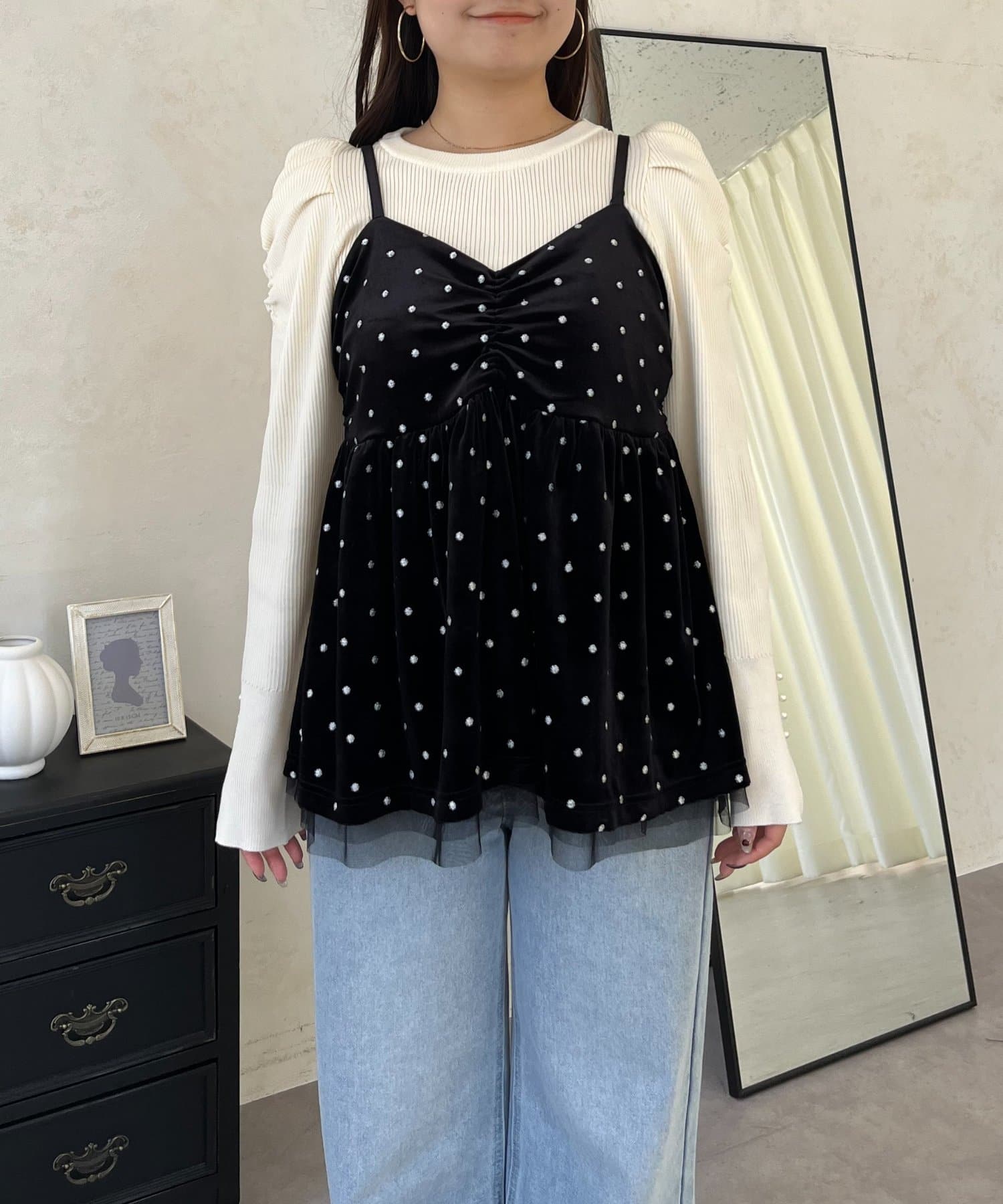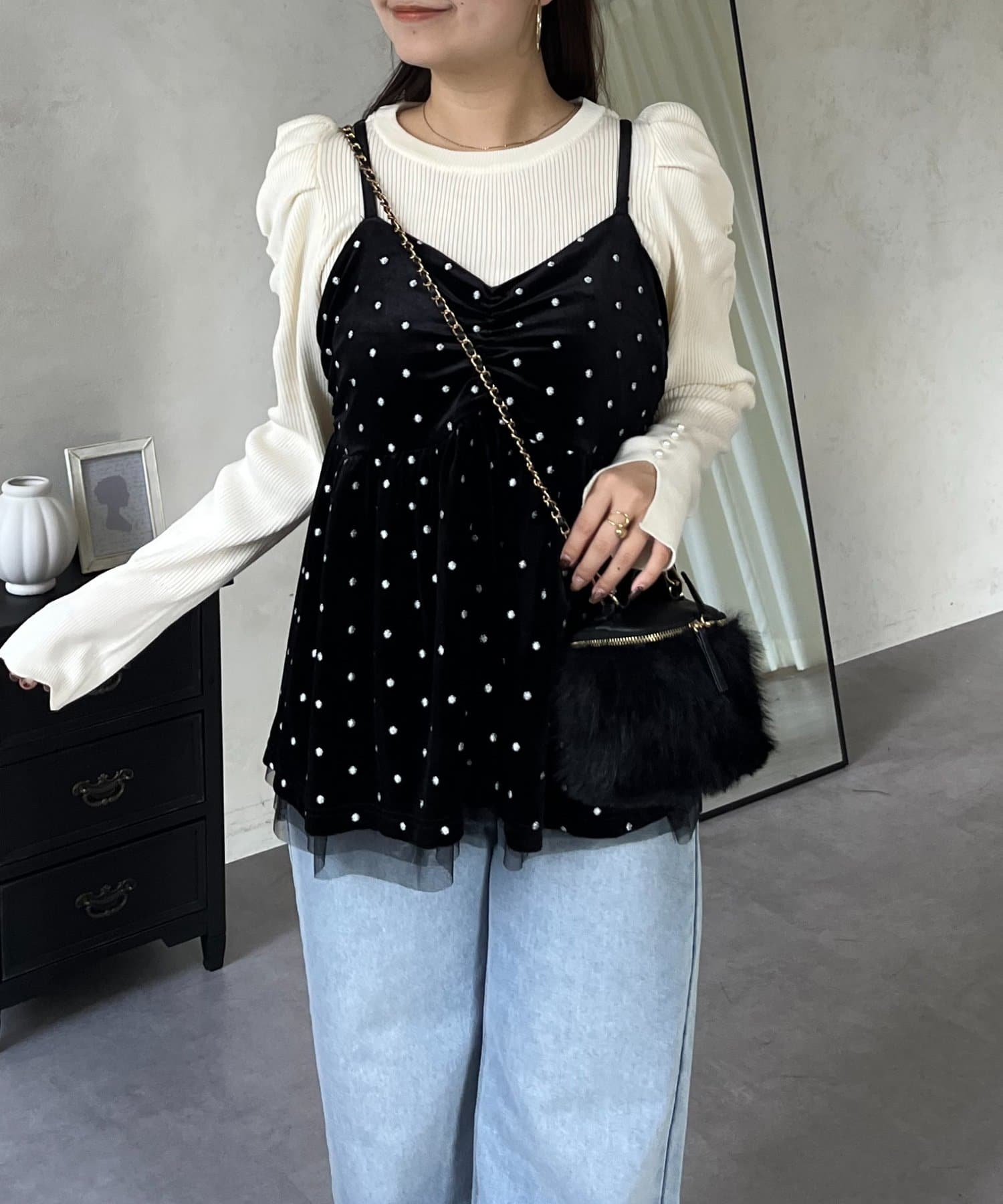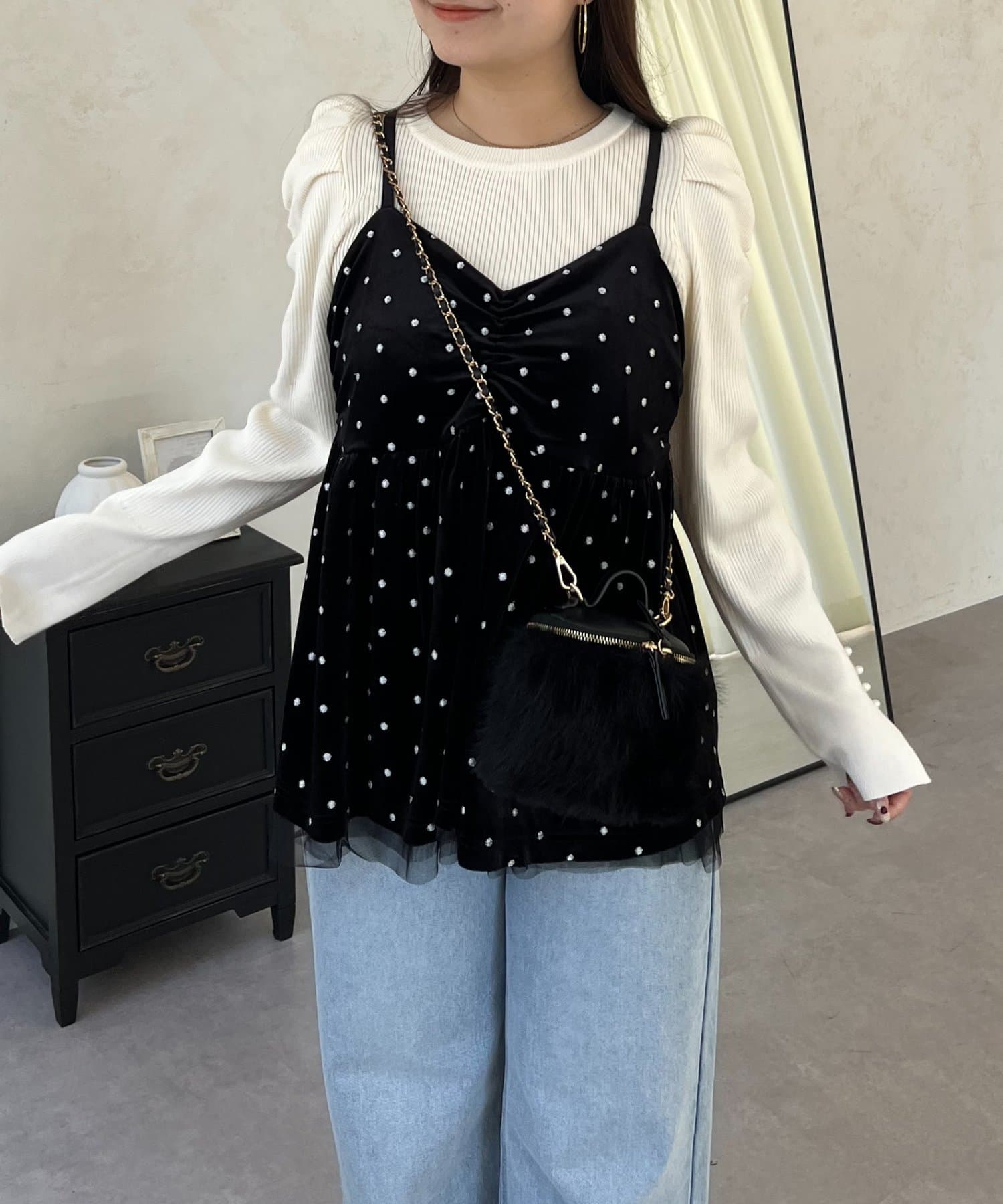 TOP > prose verse > レディース > トップス > タンクトップ > ドット刺繍チュールレイヤードベロアビスチェ