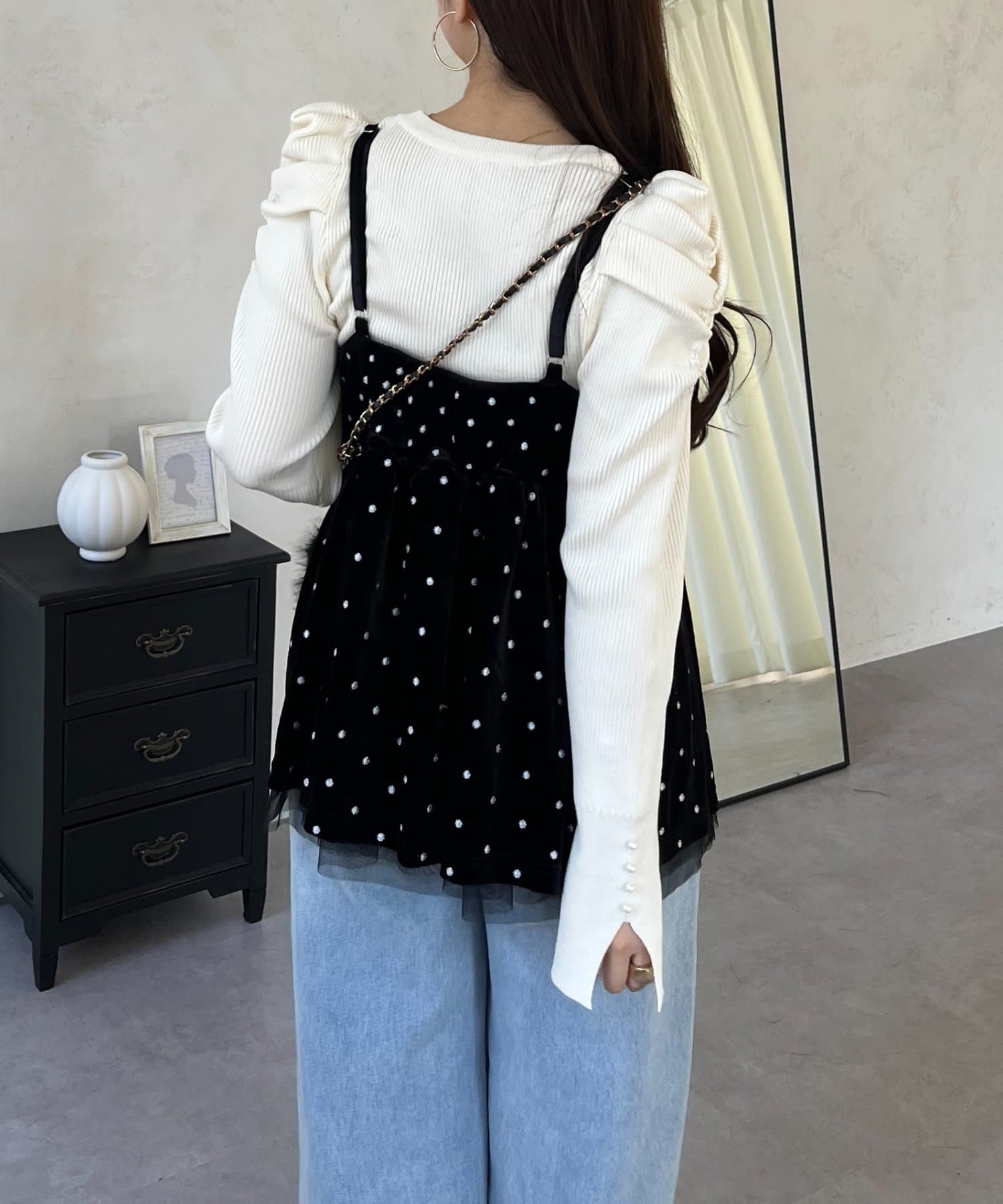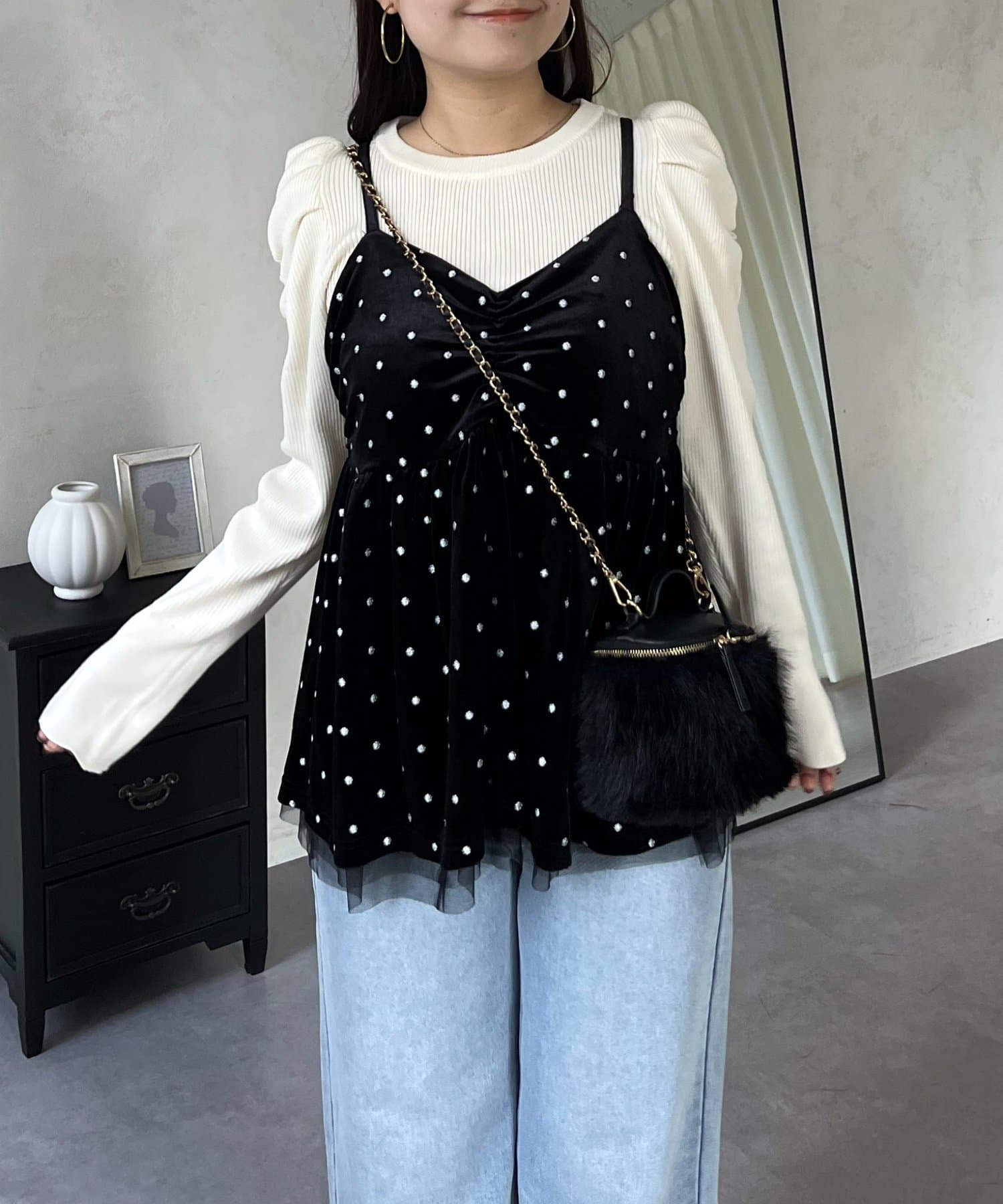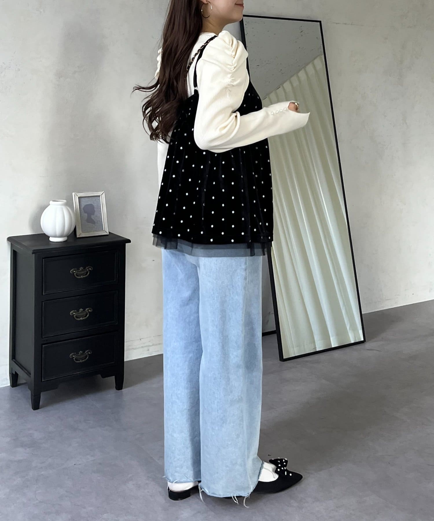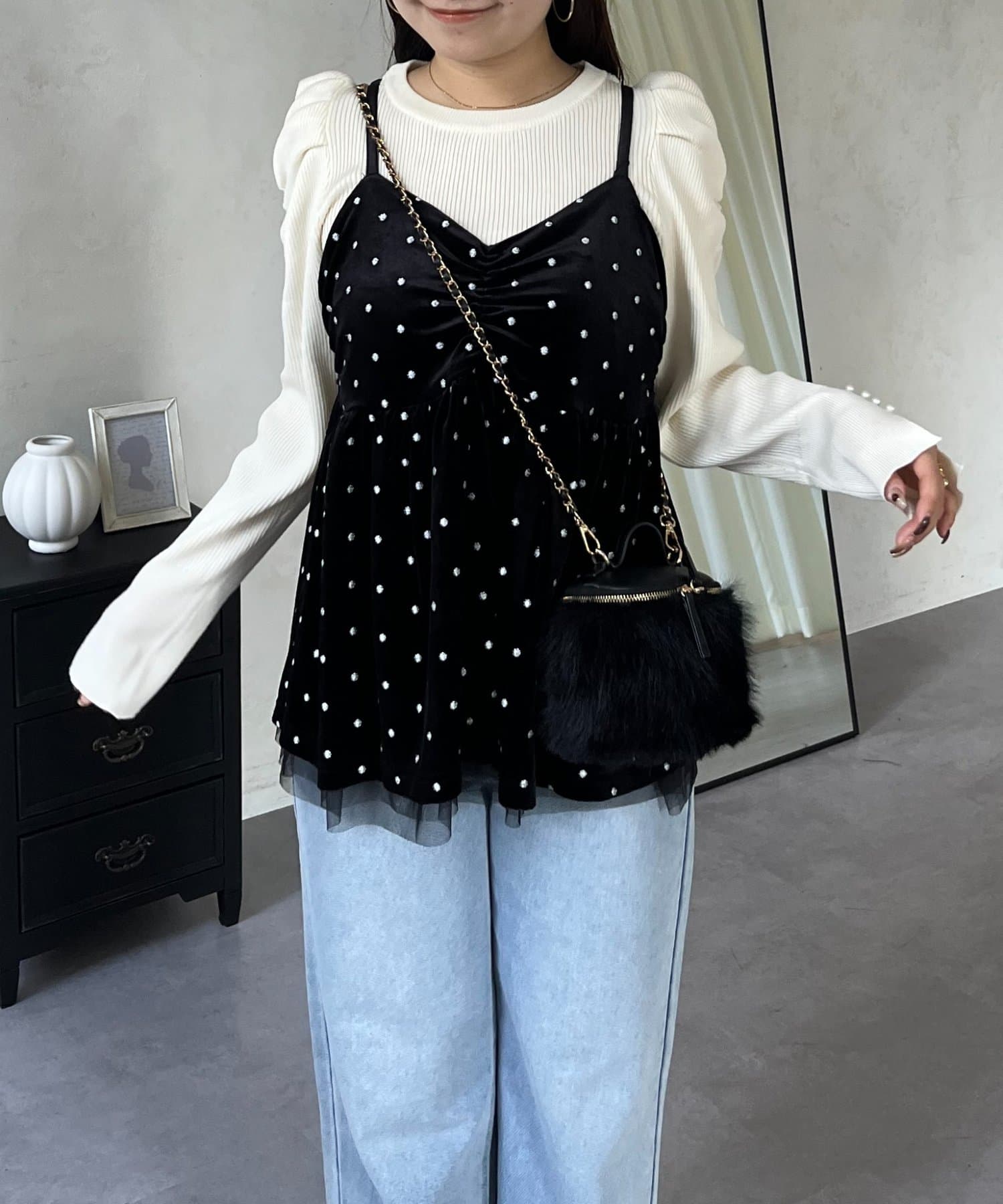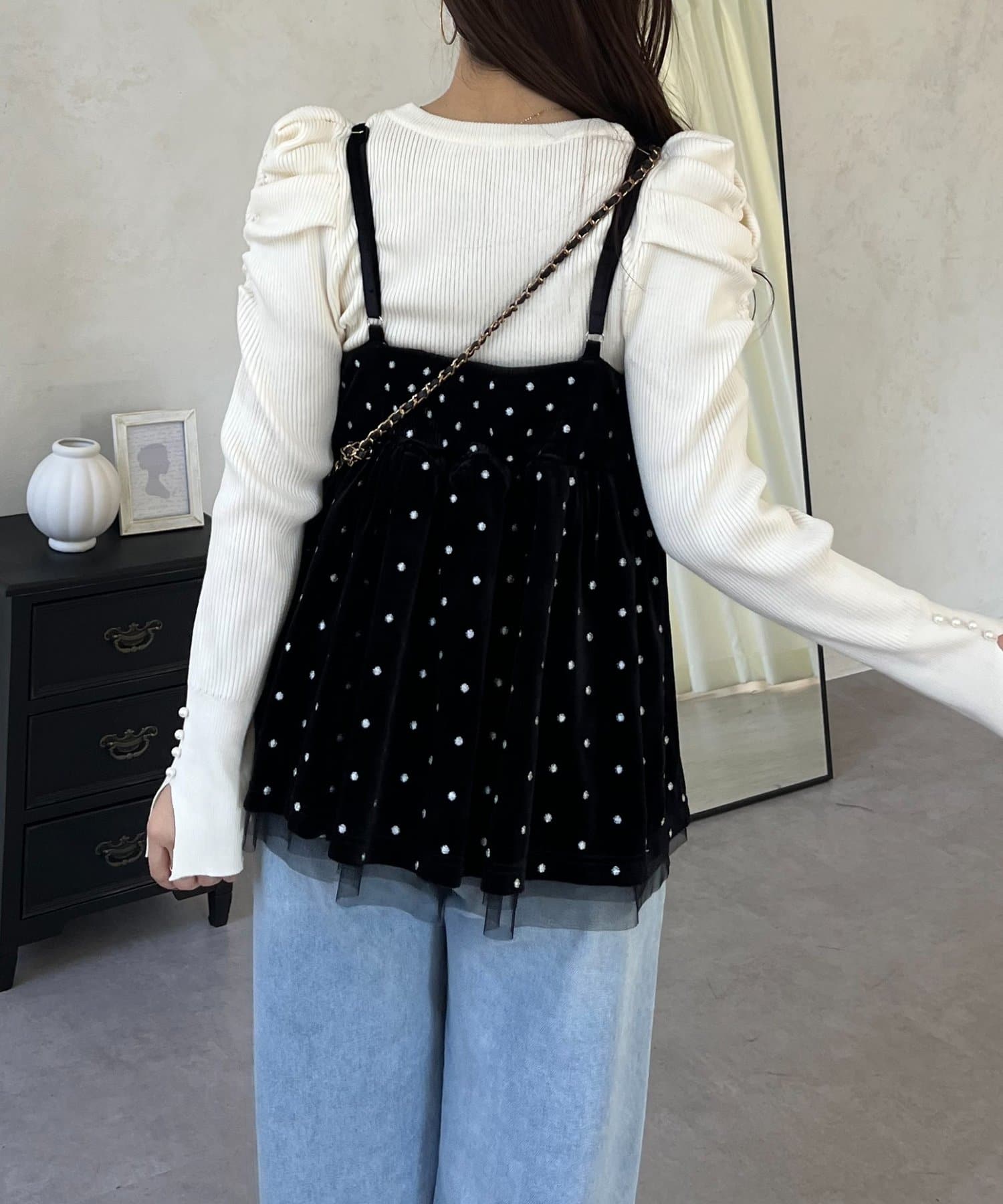 TOP > prose verse > レディース > トップス > タンクトップ > ドット刺繍チュールレイヤードベロアビスチェ