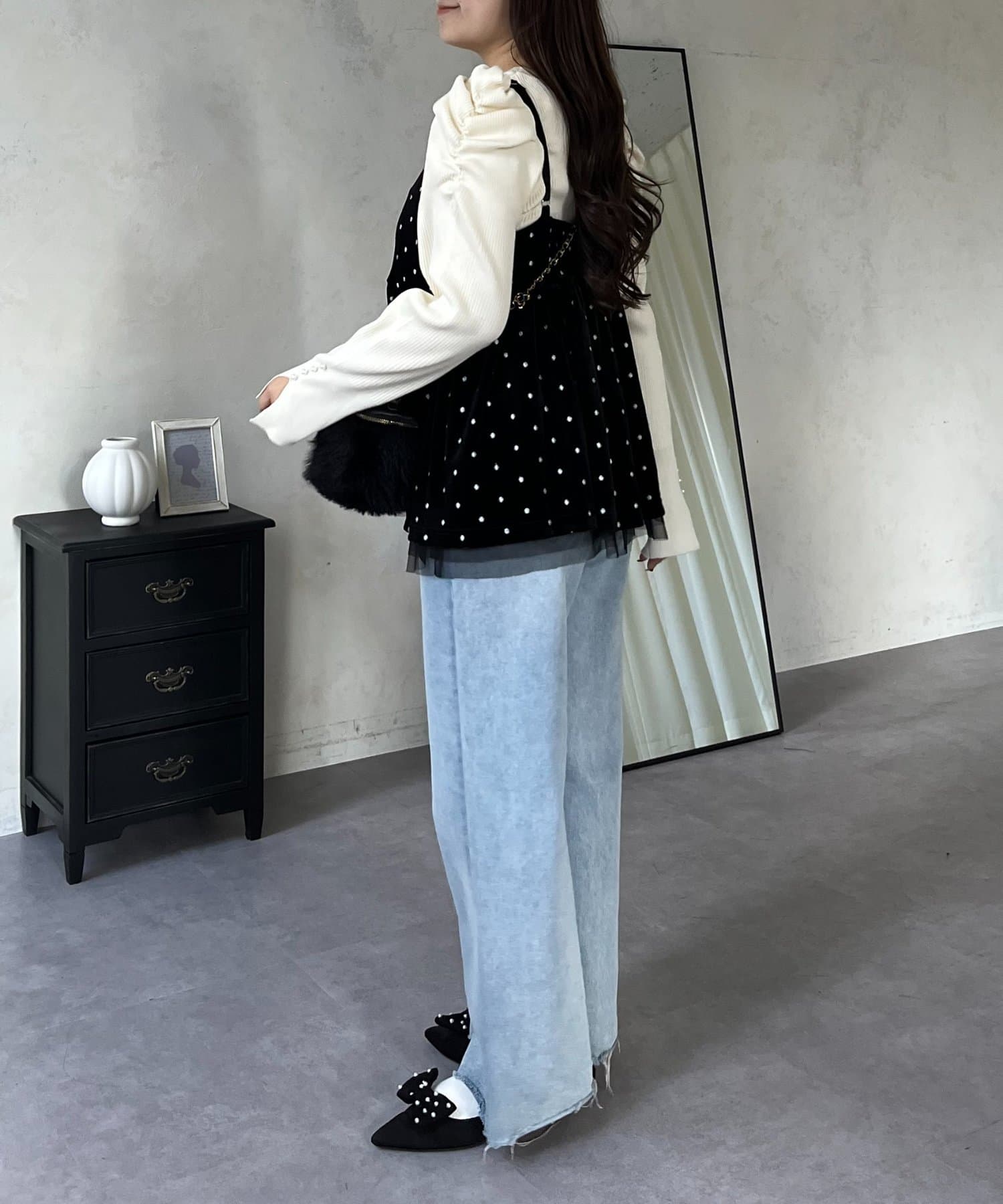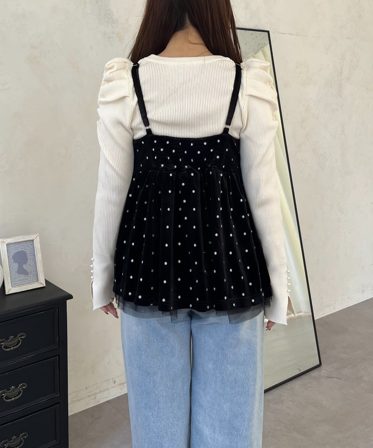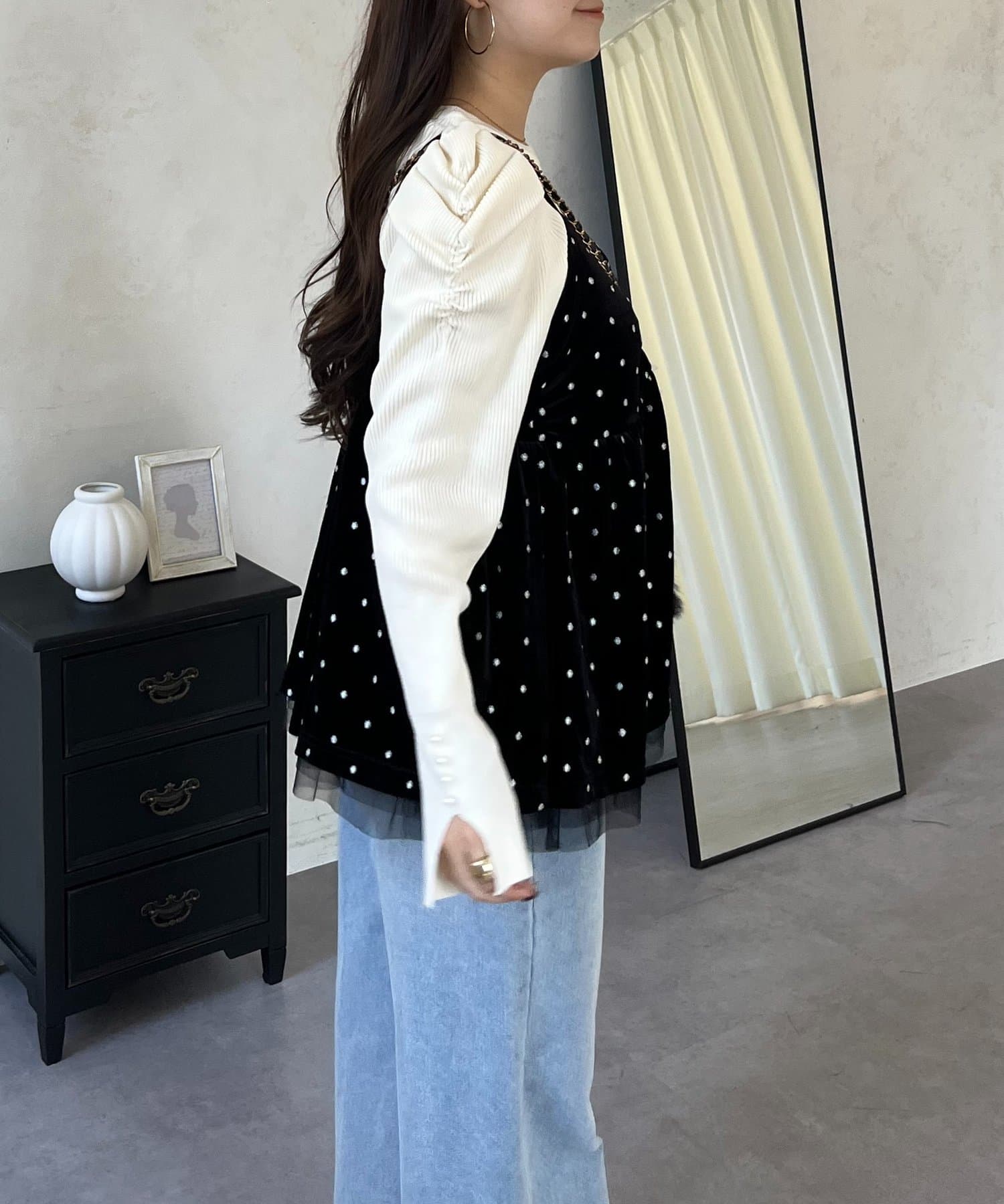 prose verse(プロズヴェール) ドット刺繍チュールレイヤードベロアビスチェ