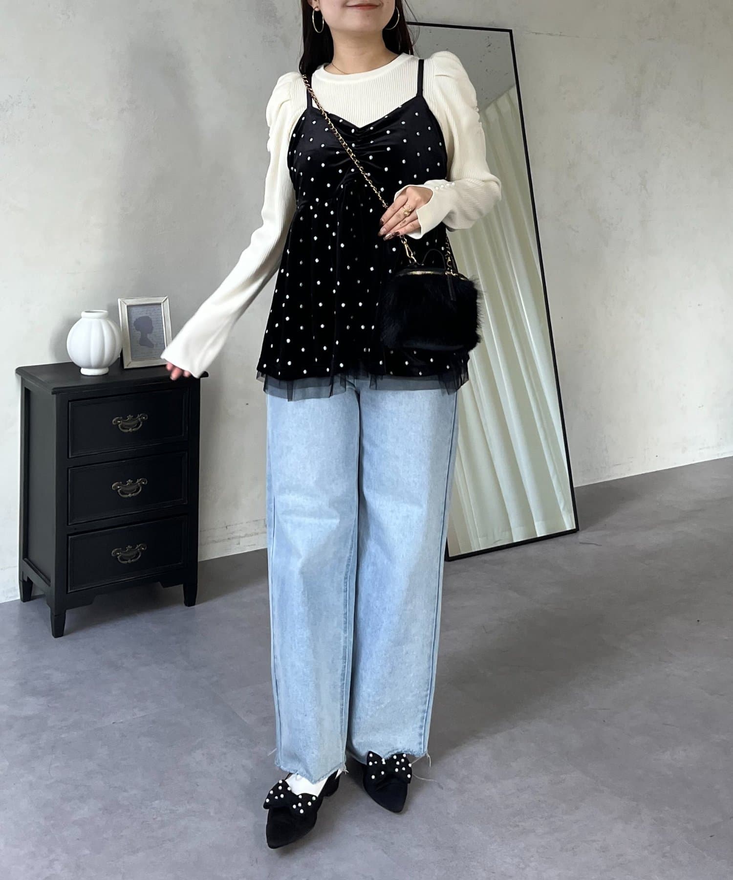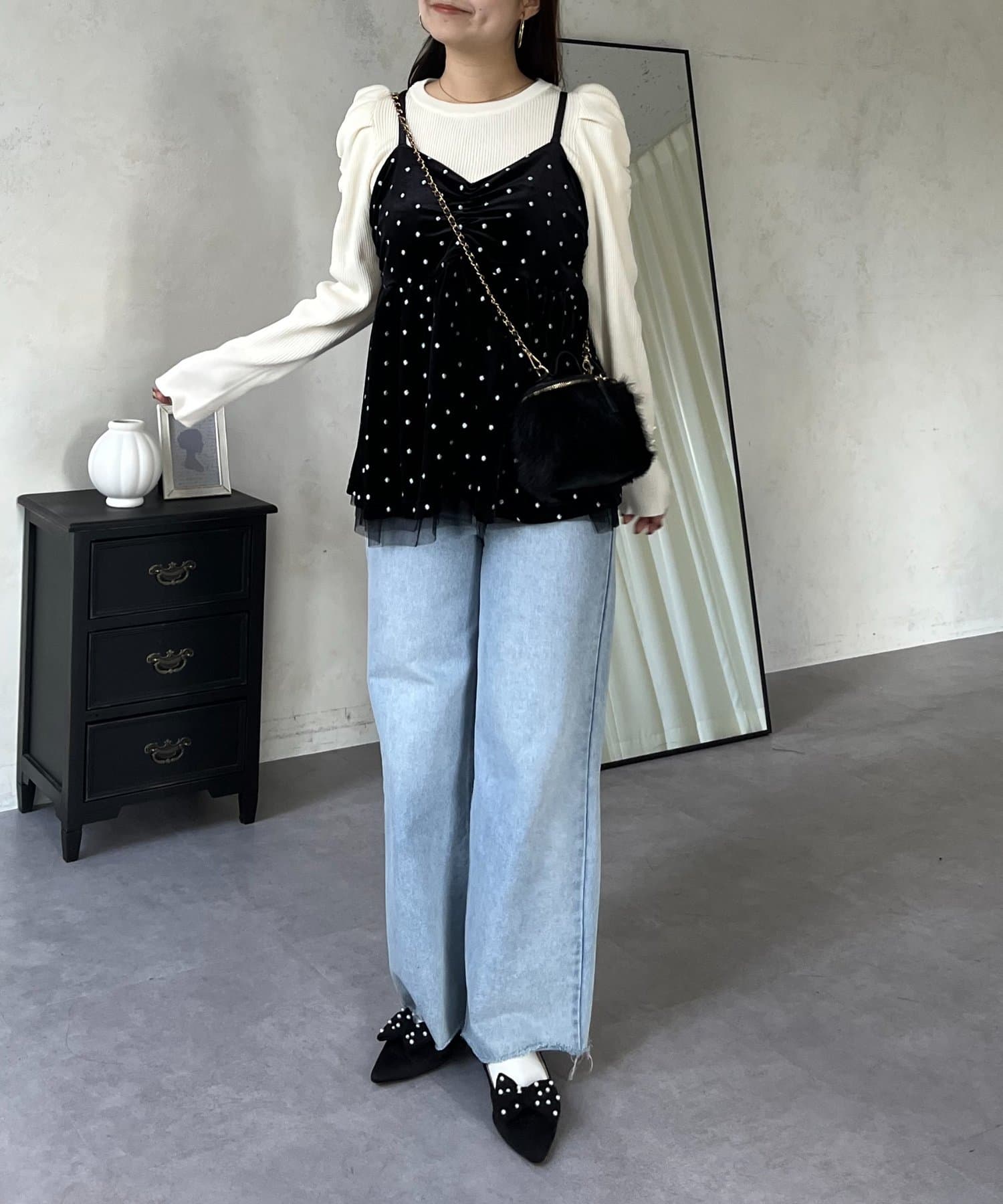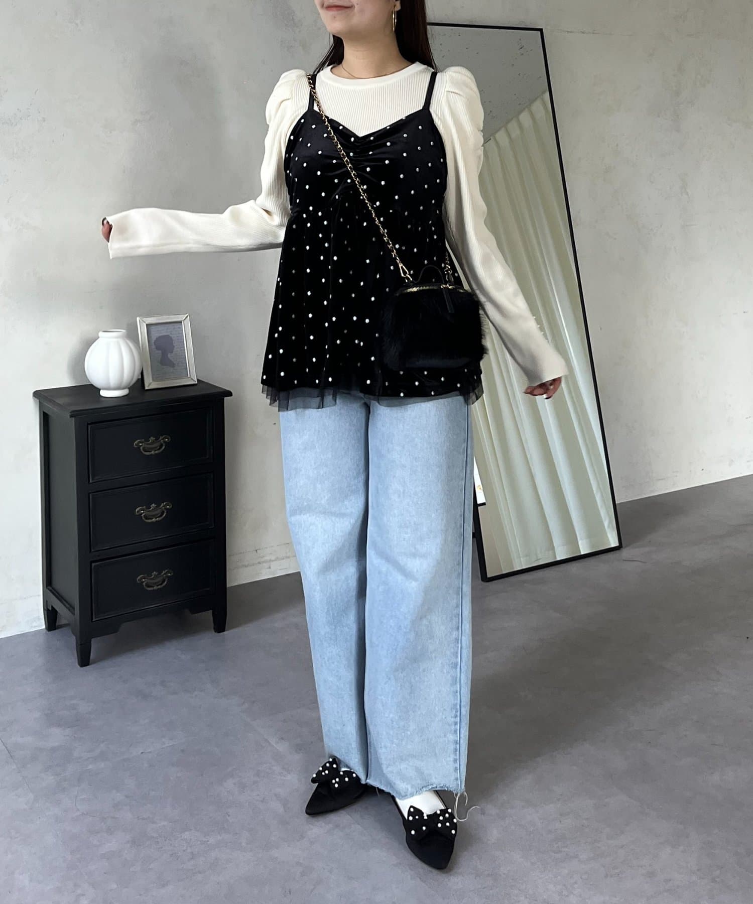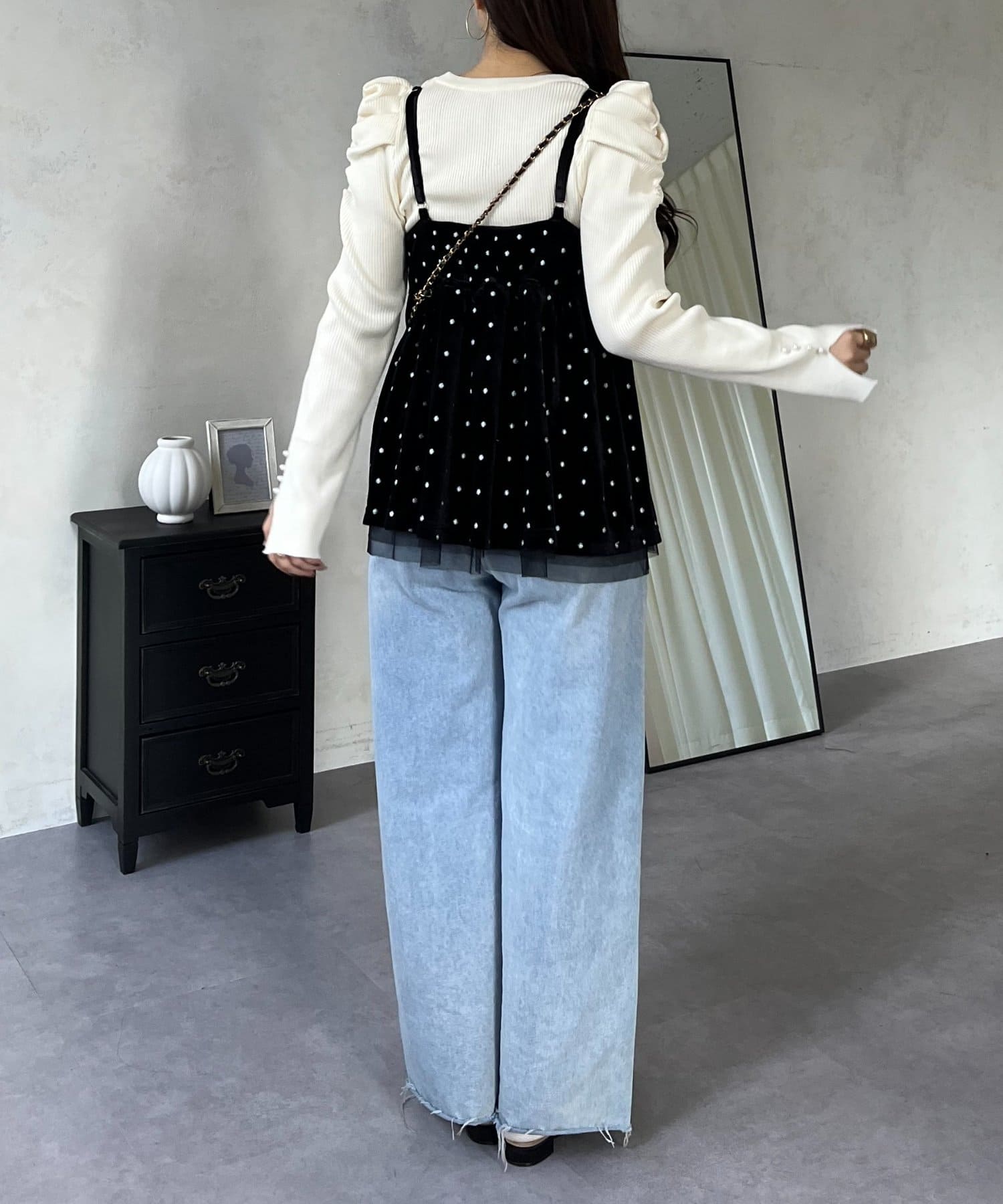 prose verse(プロズヴェール) ドット刺繍チュールレイヤードベロアビスチェ