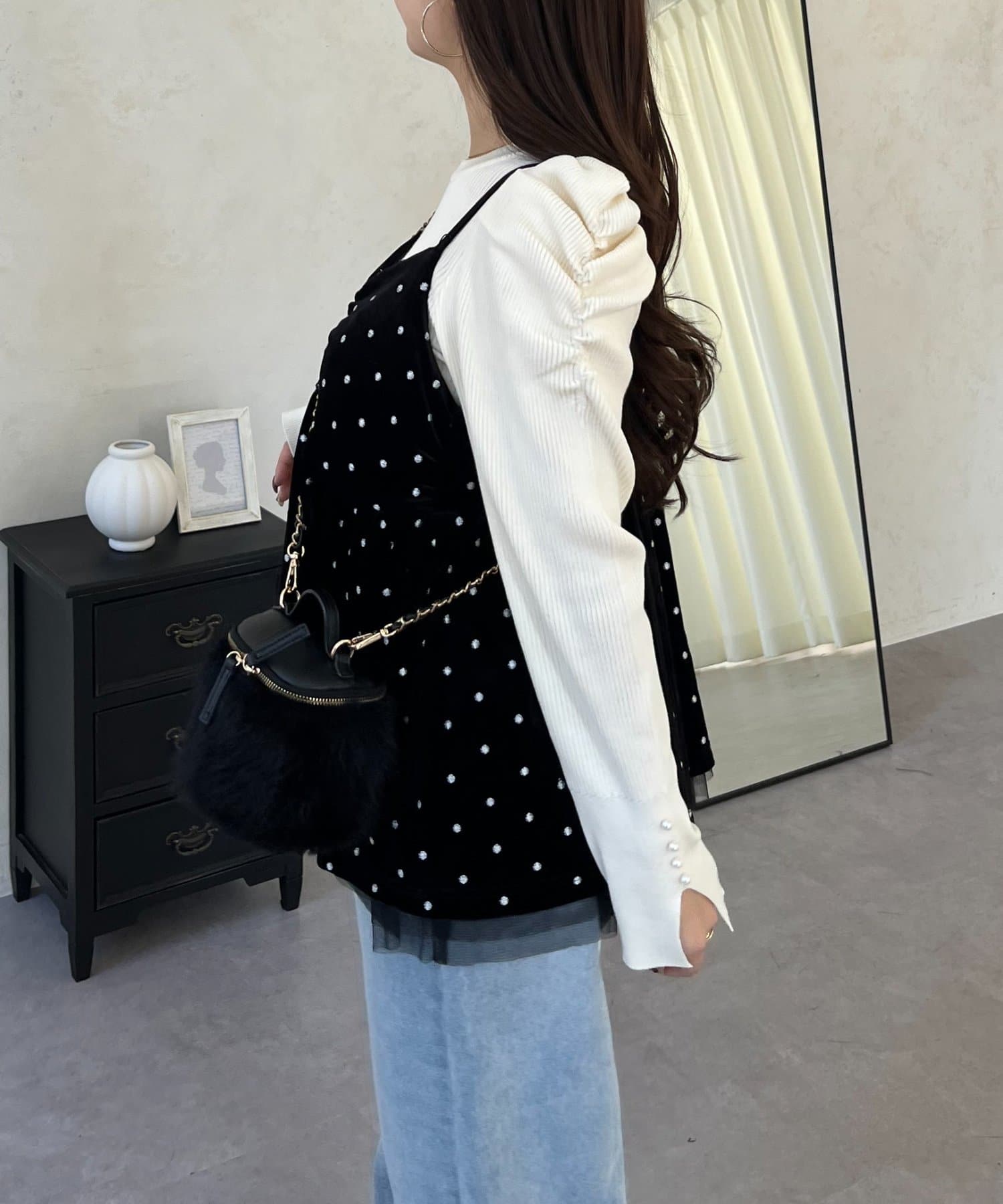 • prose verse(プロズヴェール) ドット刺繍チュールレイヤードベロアビスチェ