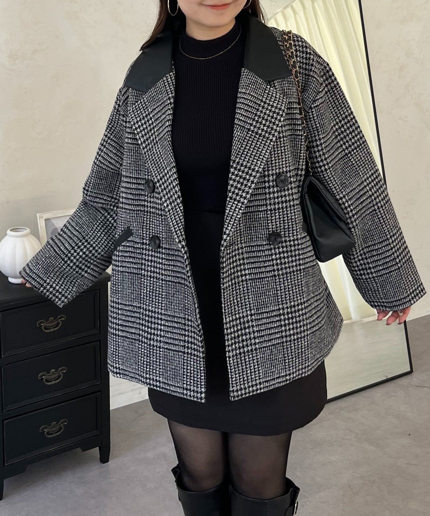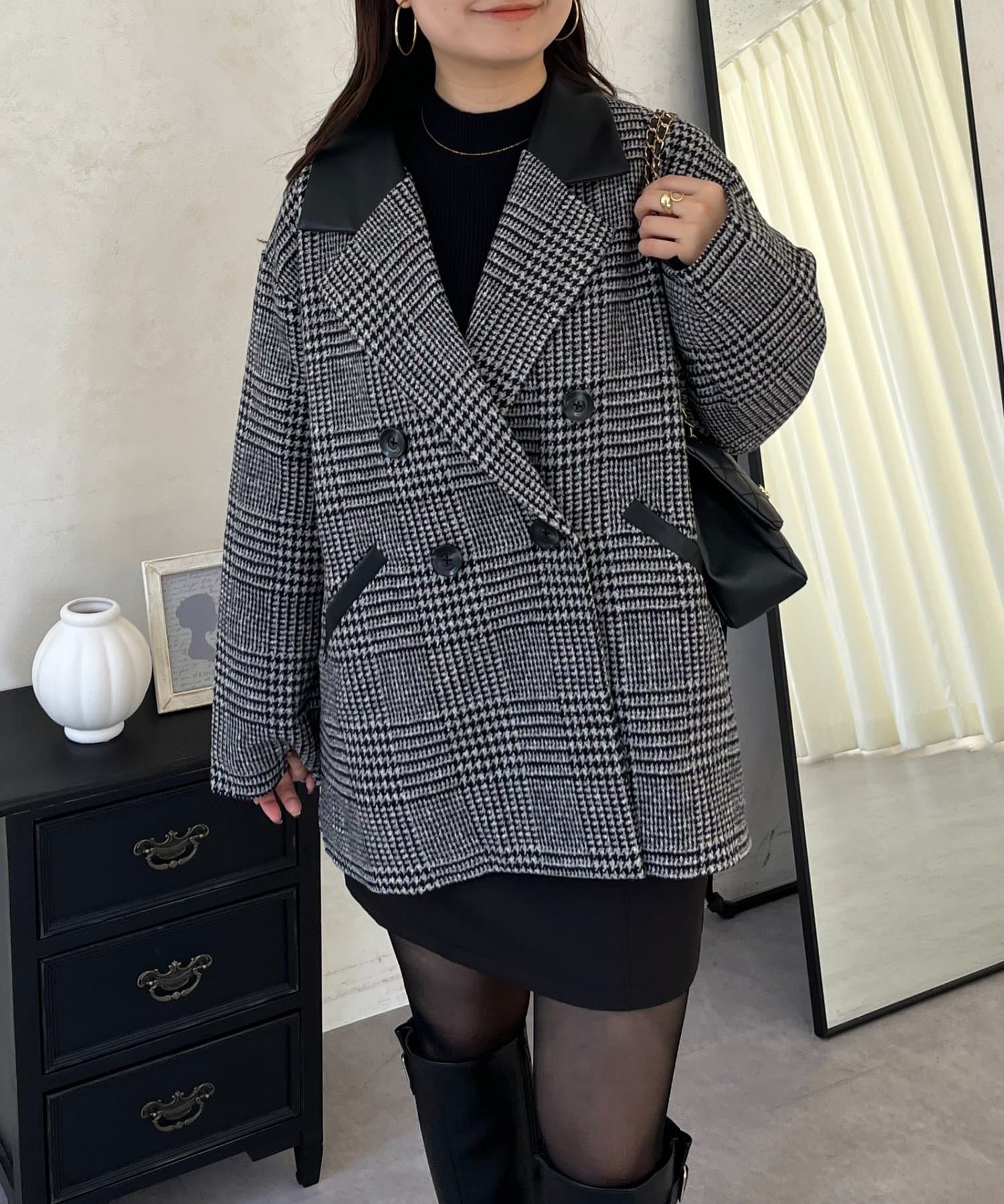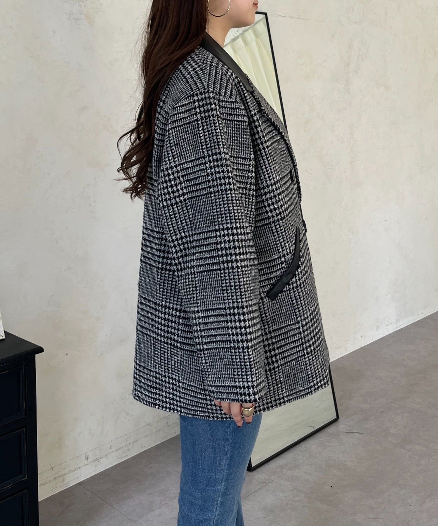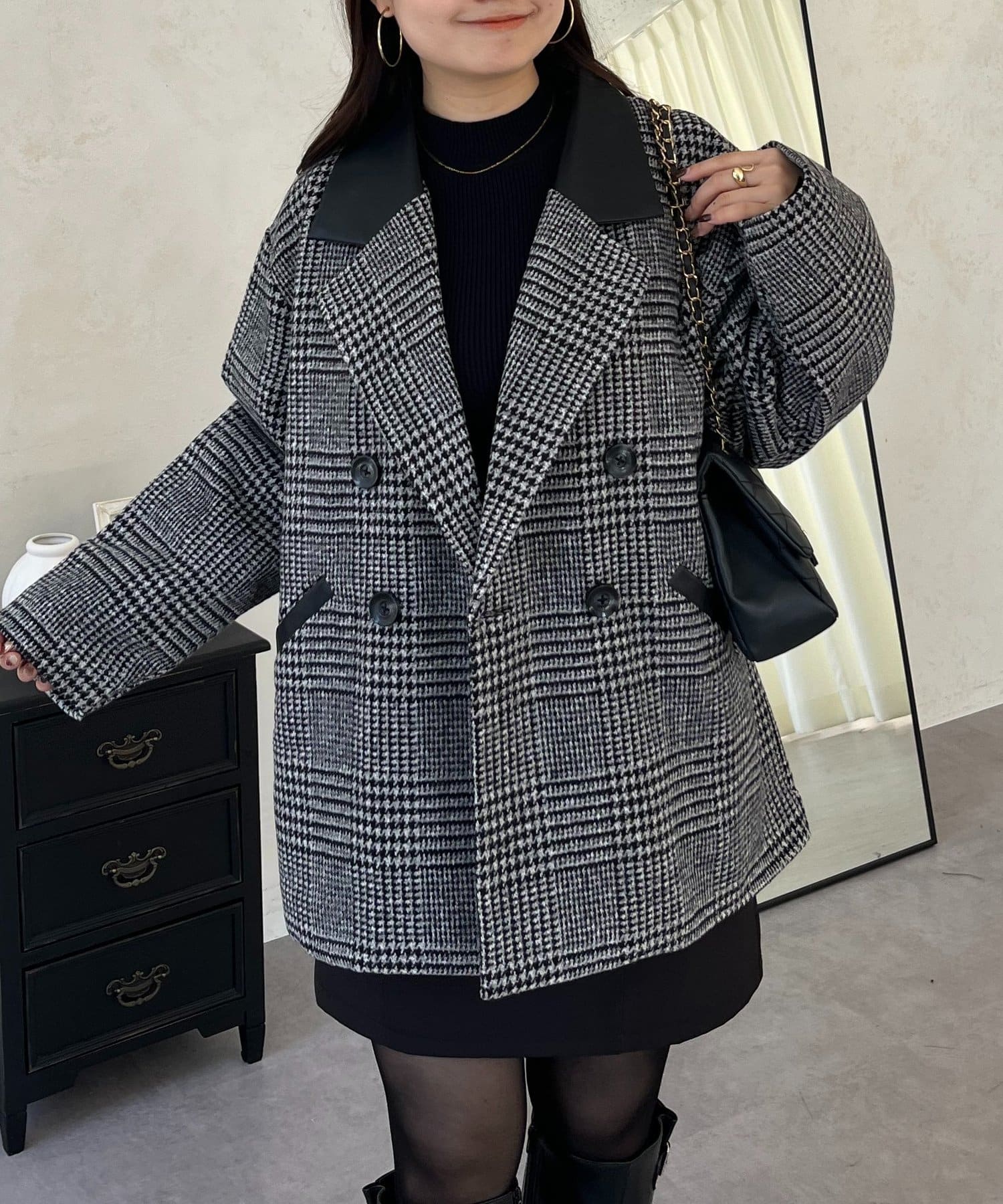 ●トレンドのチェックをあしらったコート
