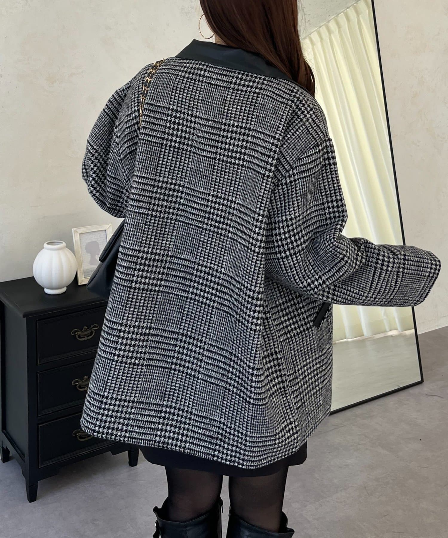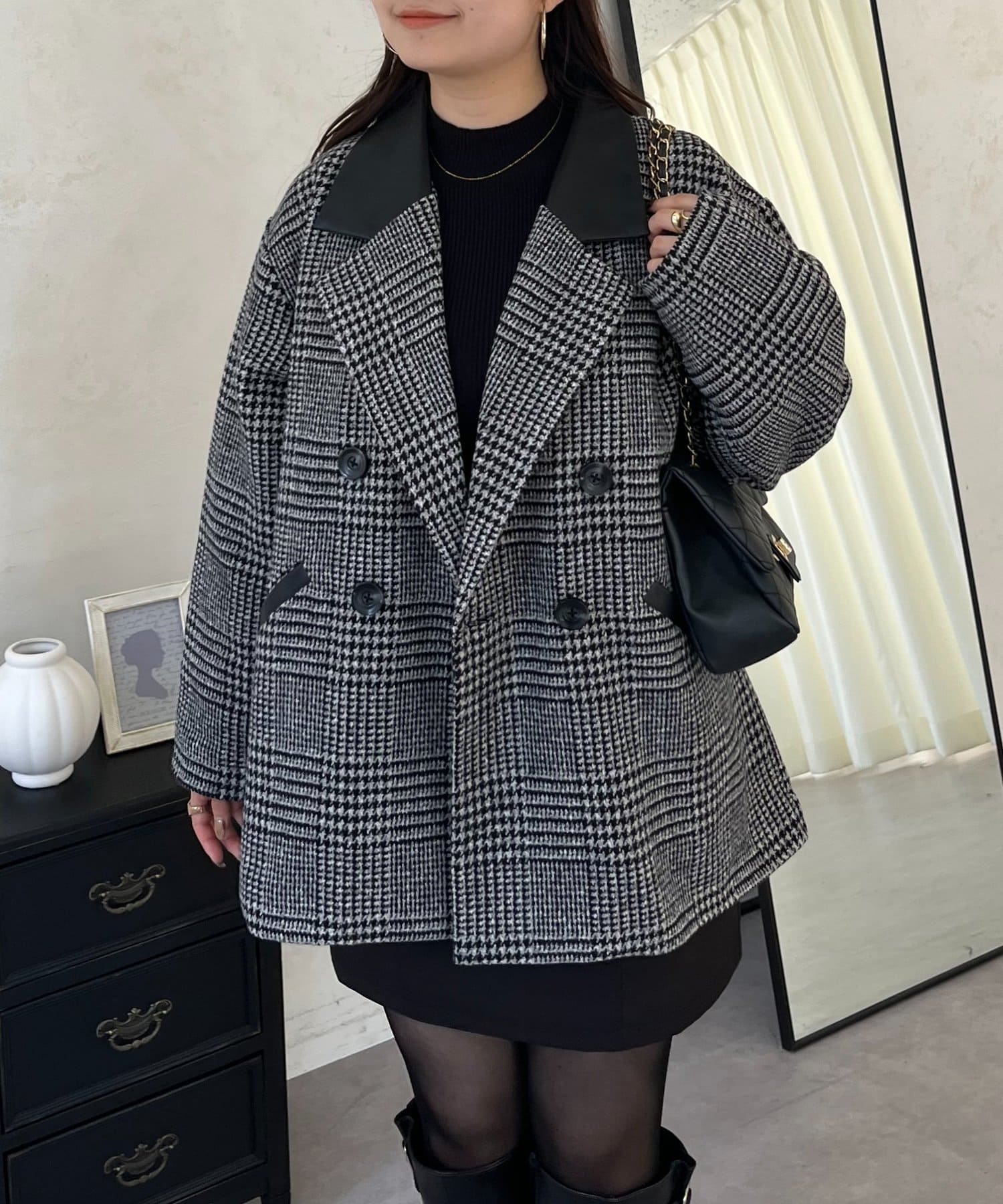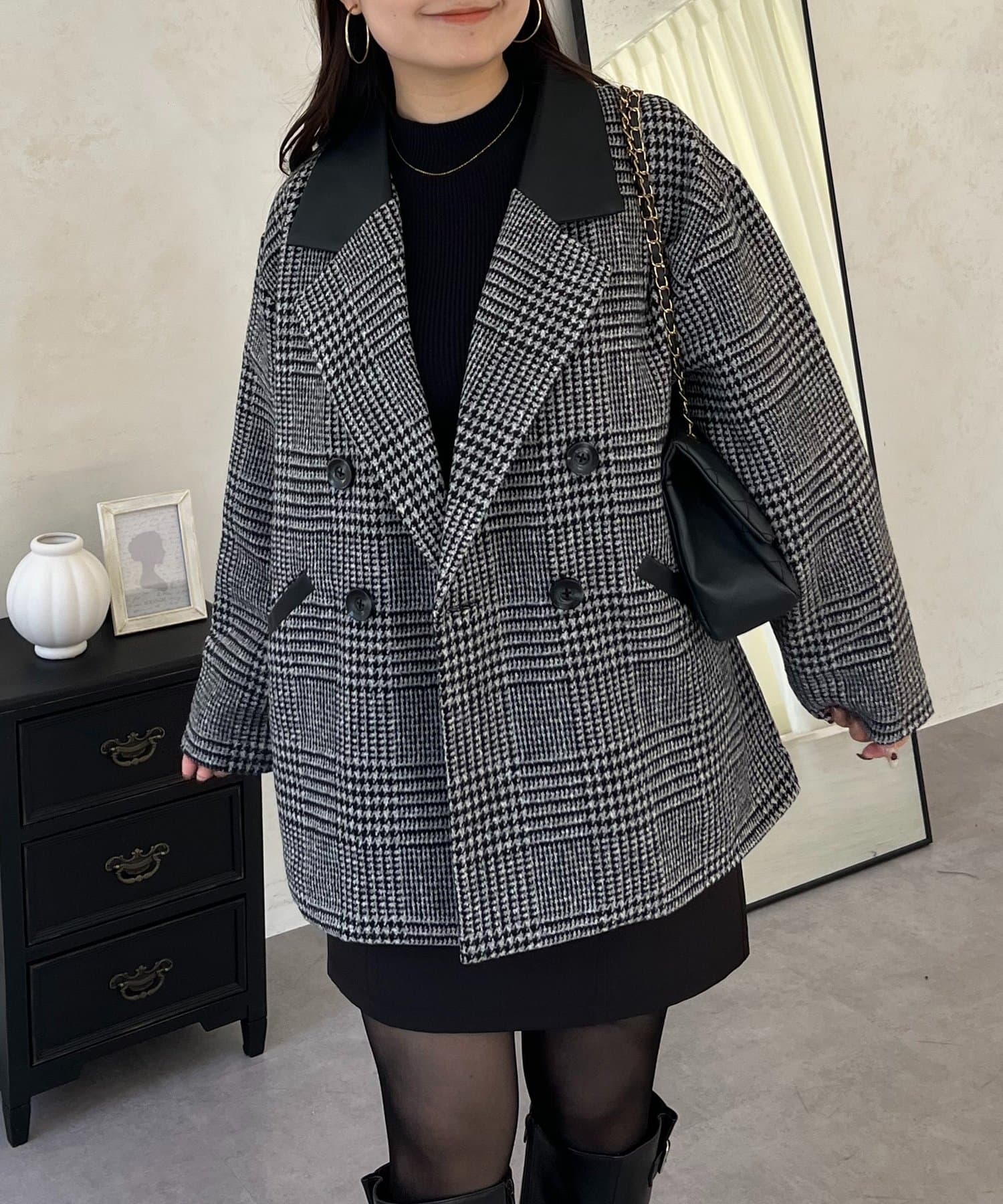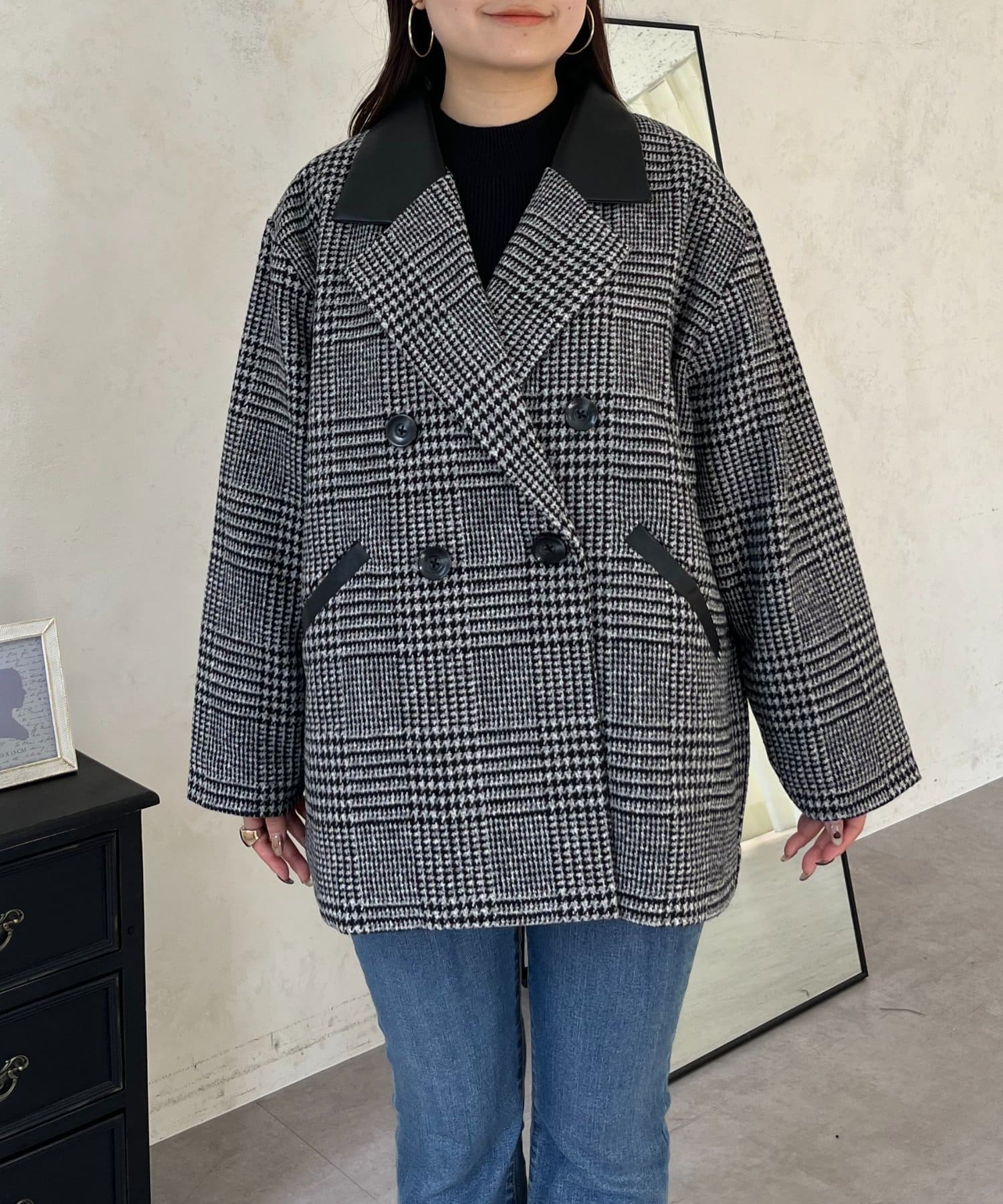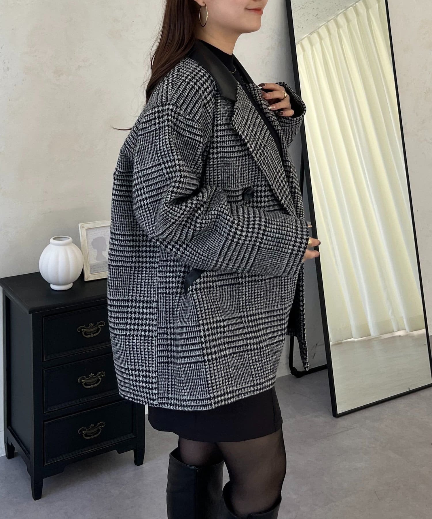 ●トレンドのチェックをあしらったコート