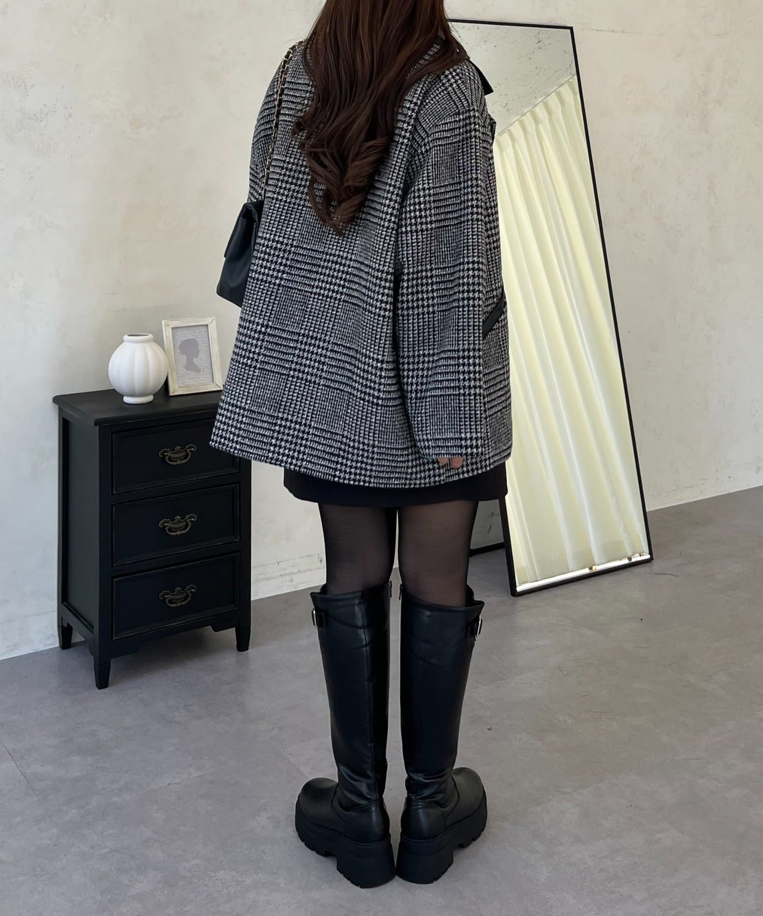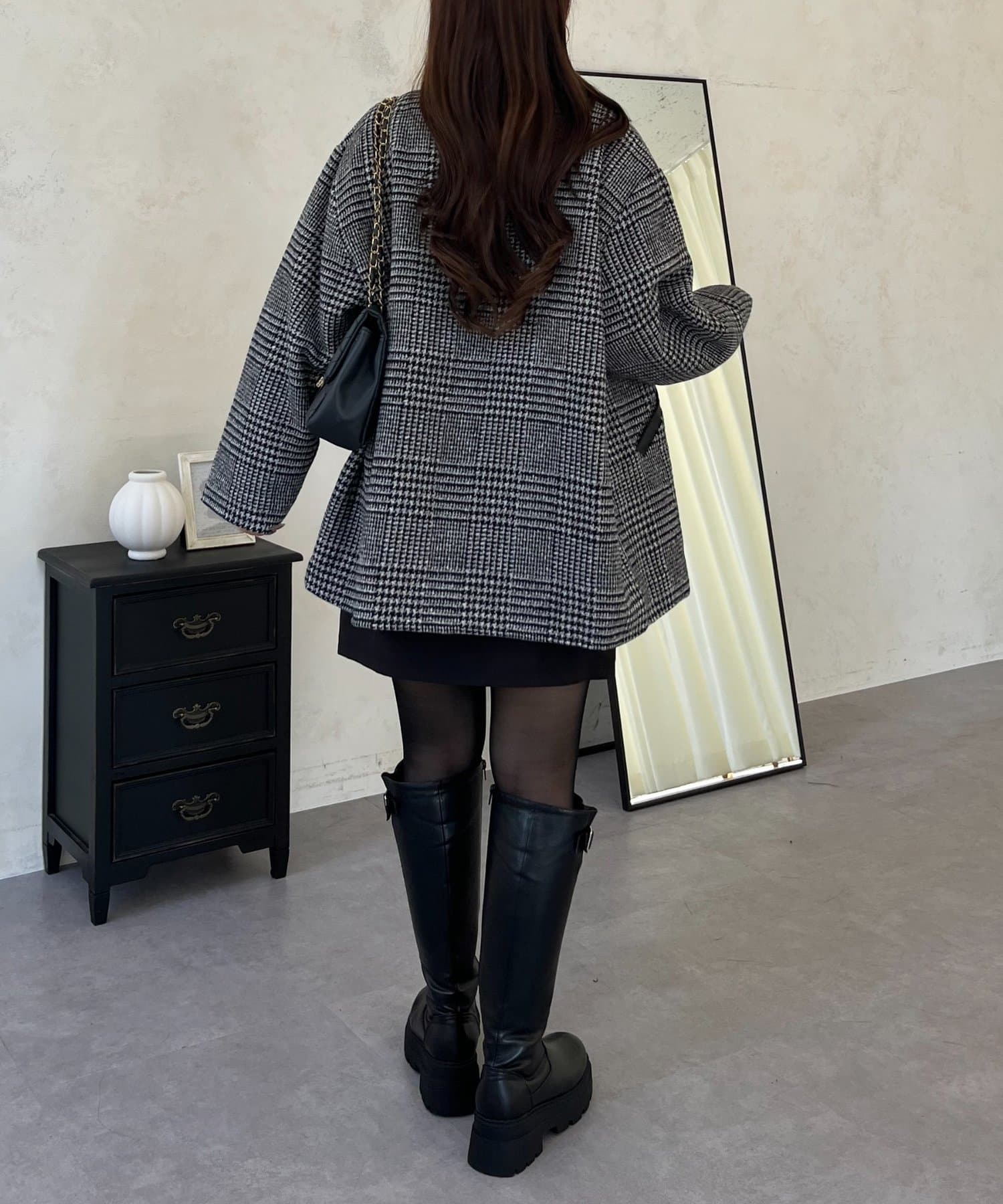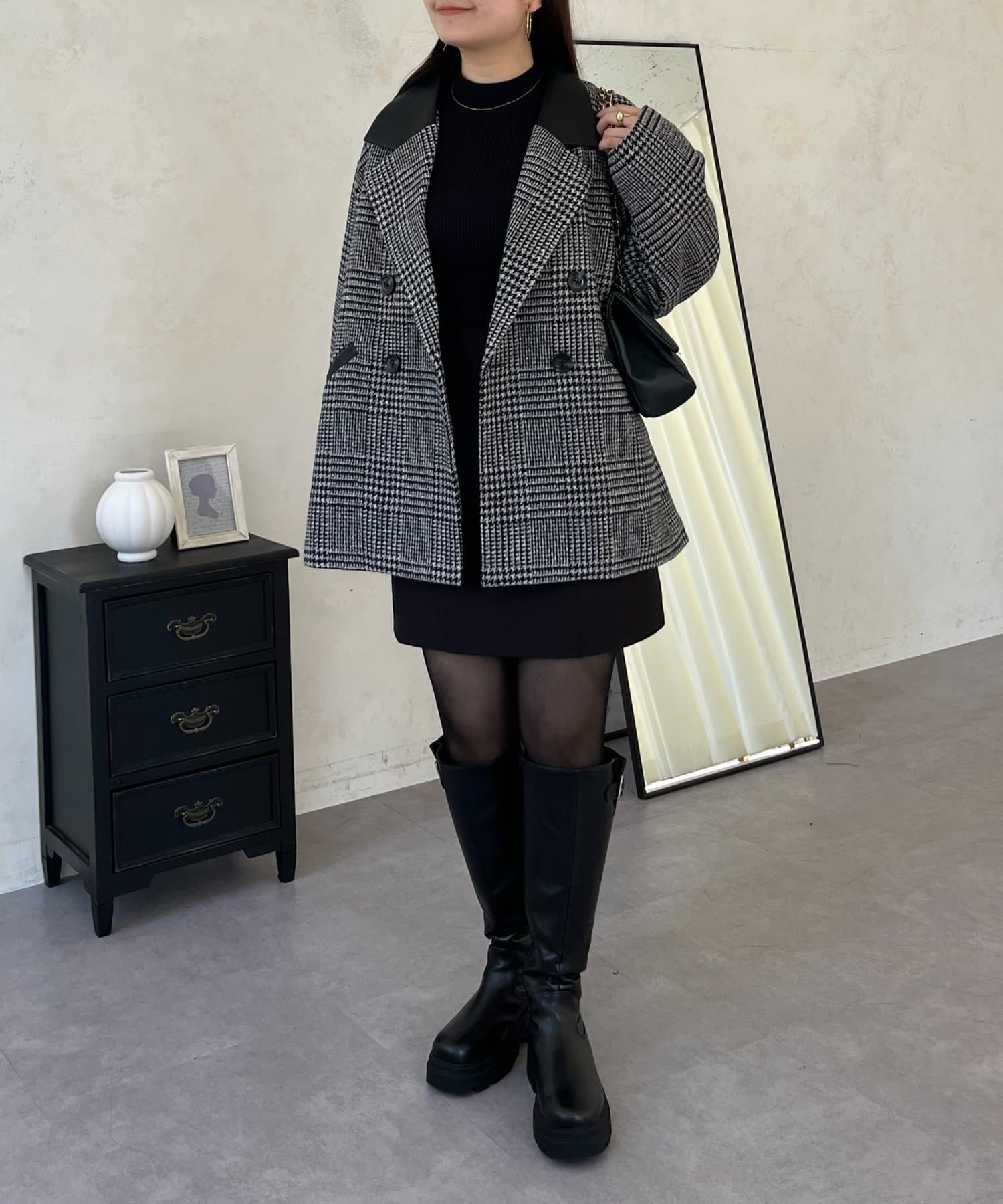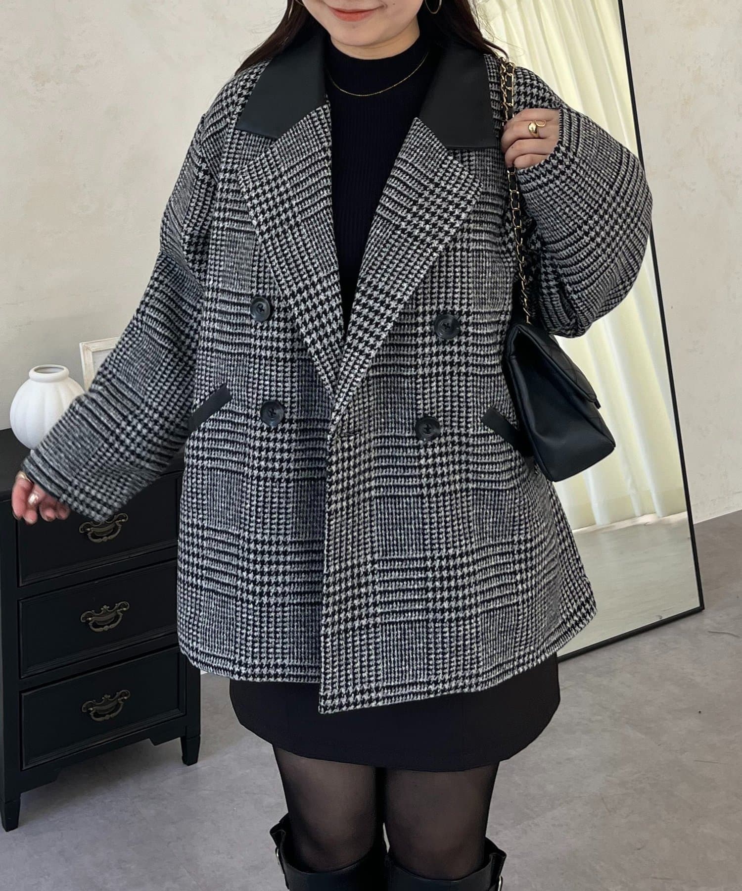 ●トレンドのチェックをあしらったコート