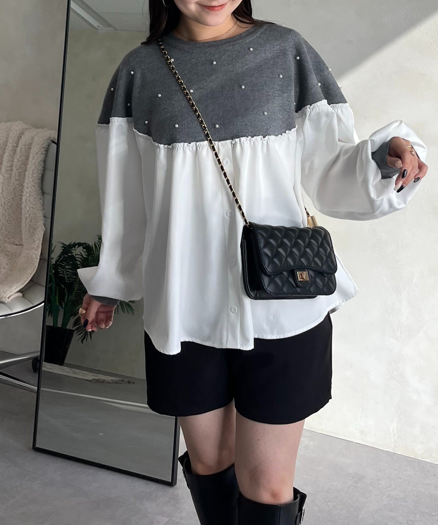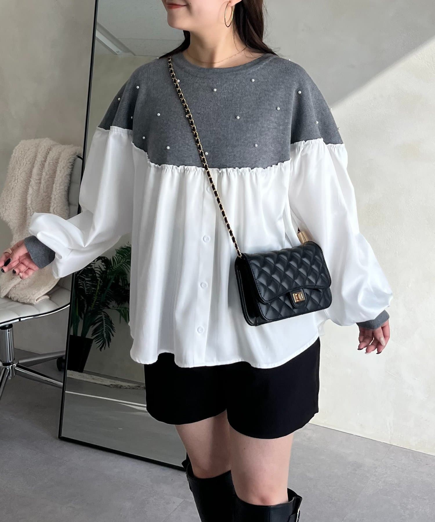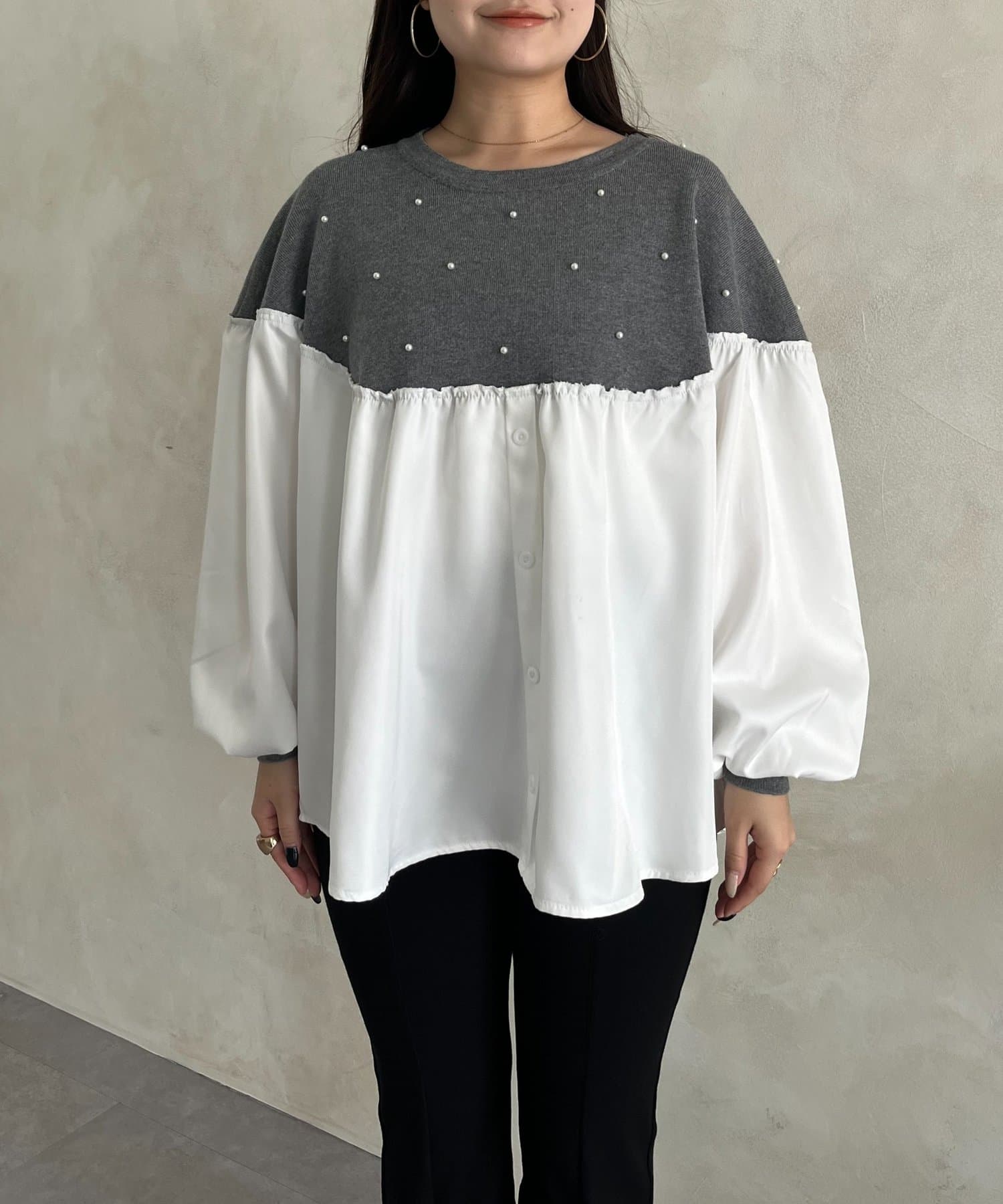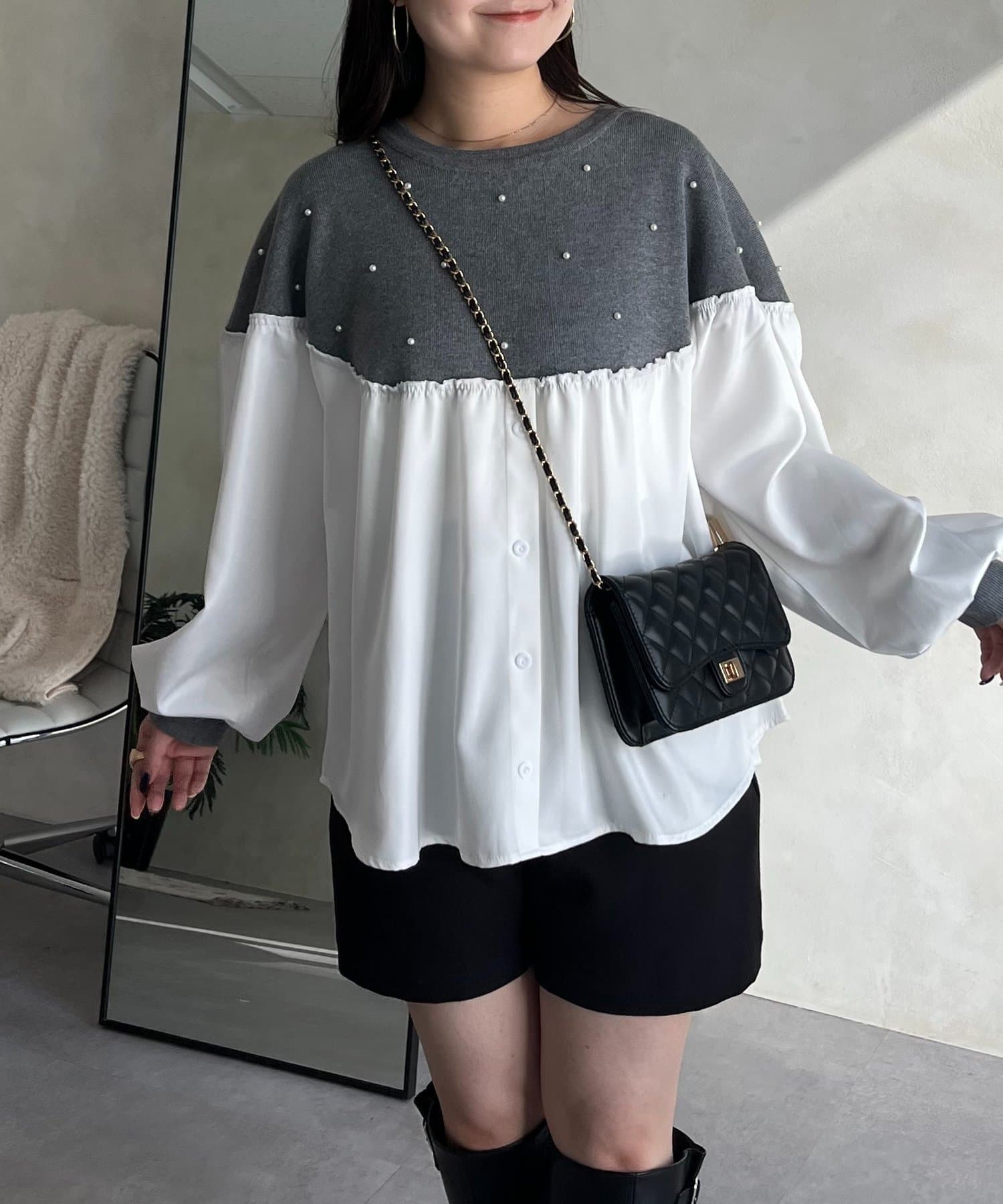 • prose verse(プロズヴェール) デコルテパールシャツドッキングニット