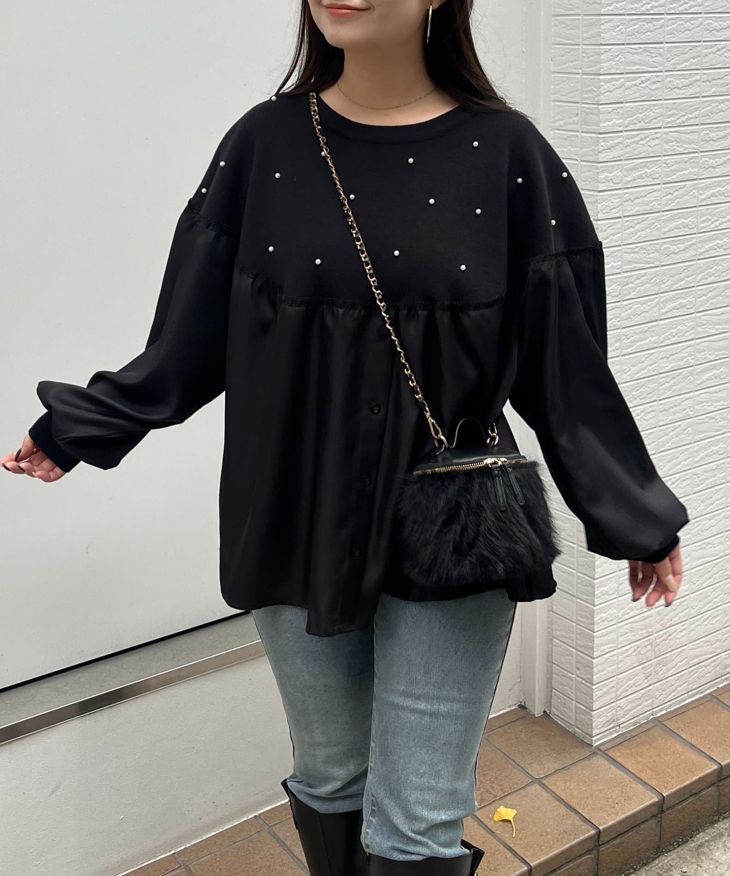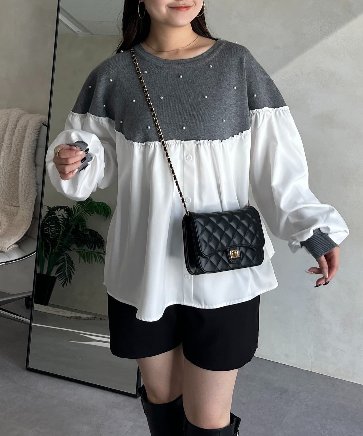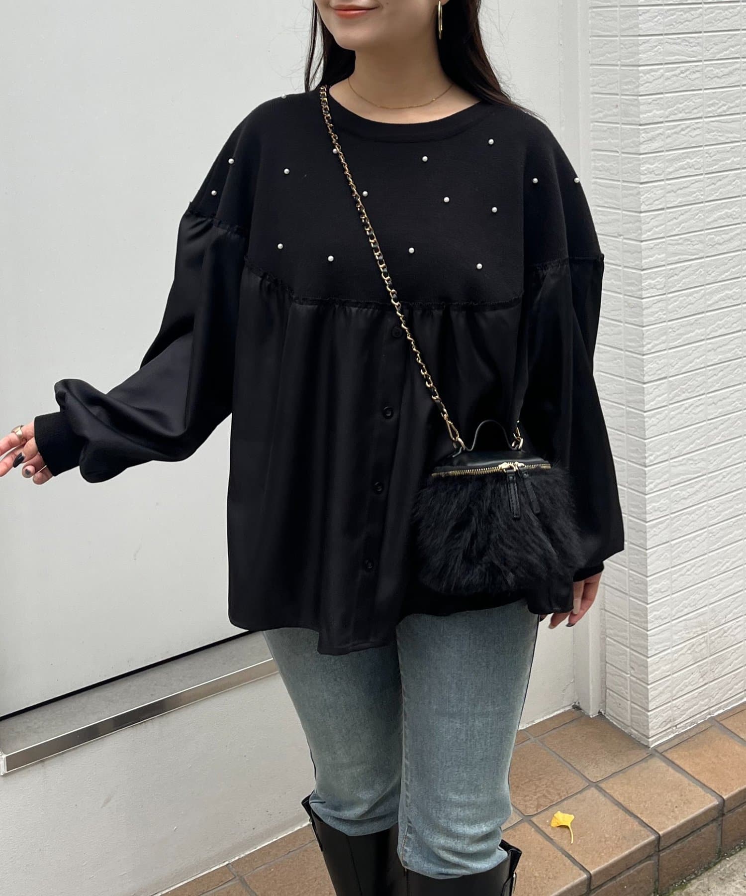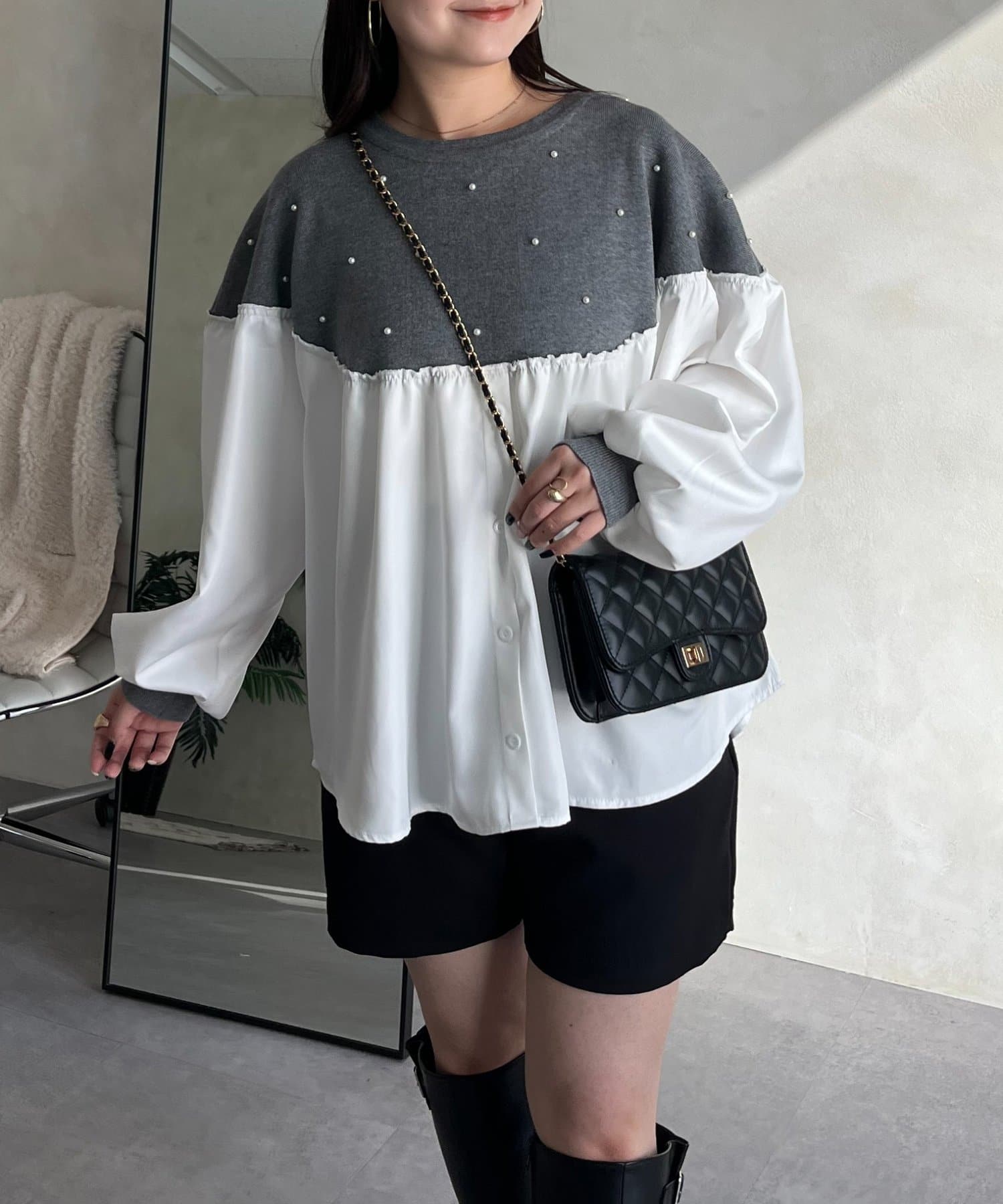 • prose verse(プロズヴェール) デコルテパールシャツドッキングニット