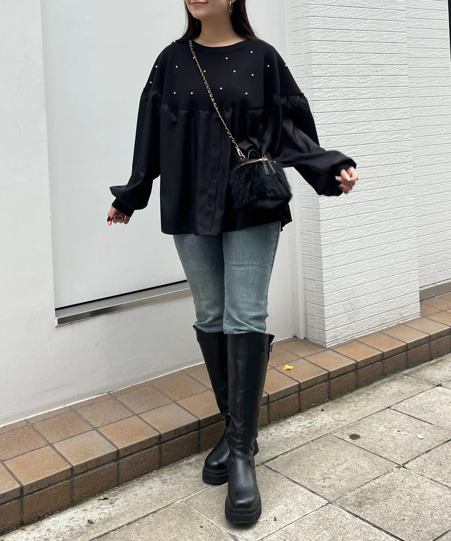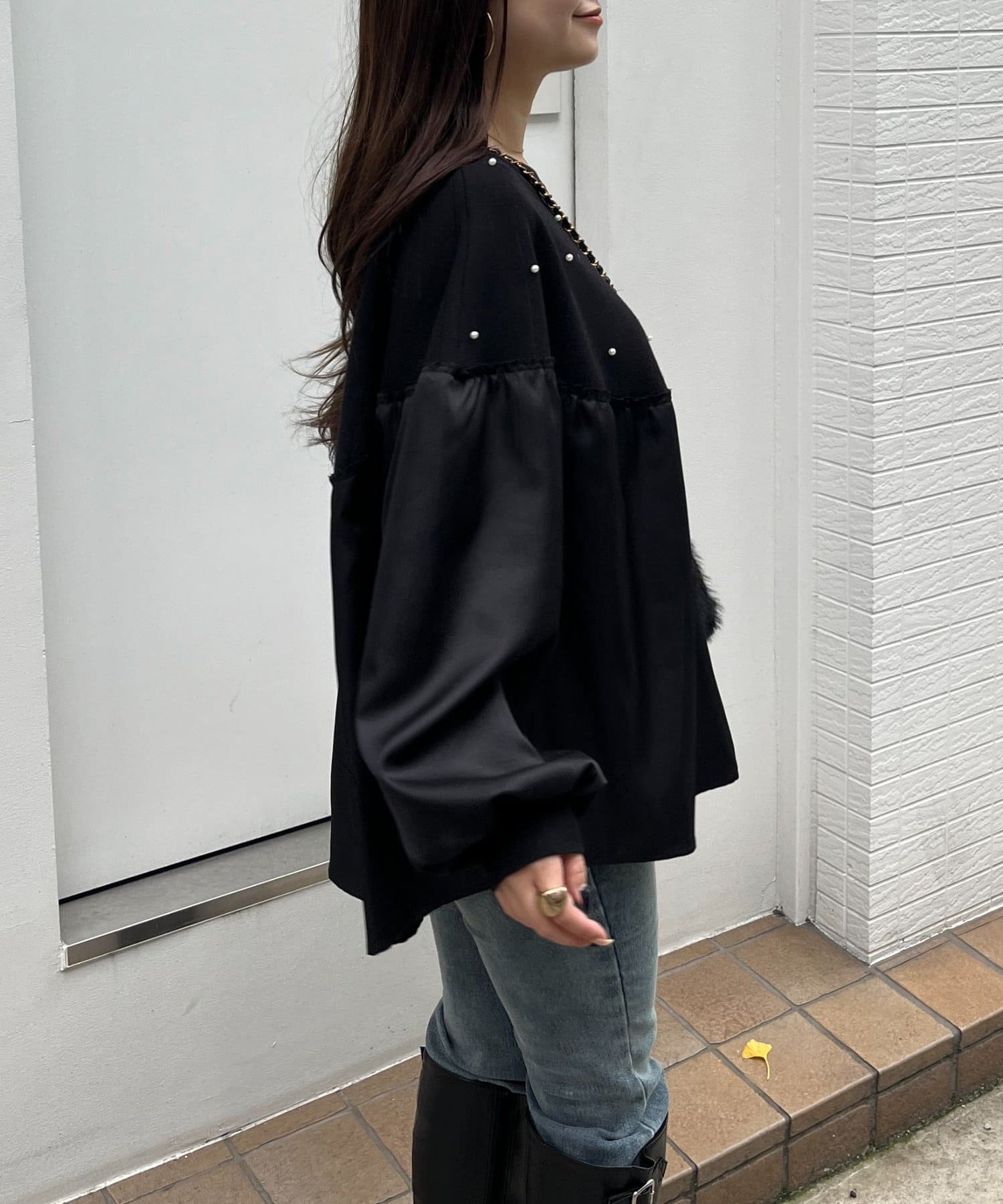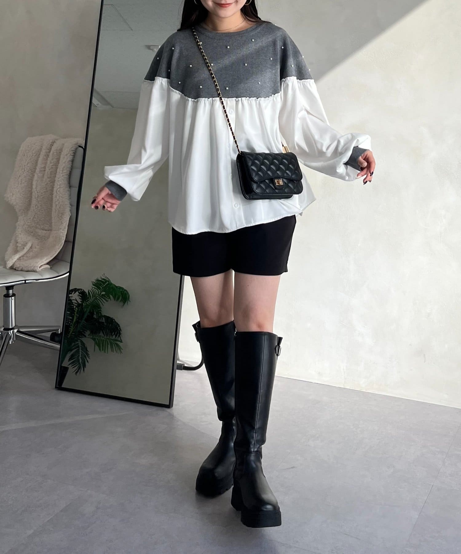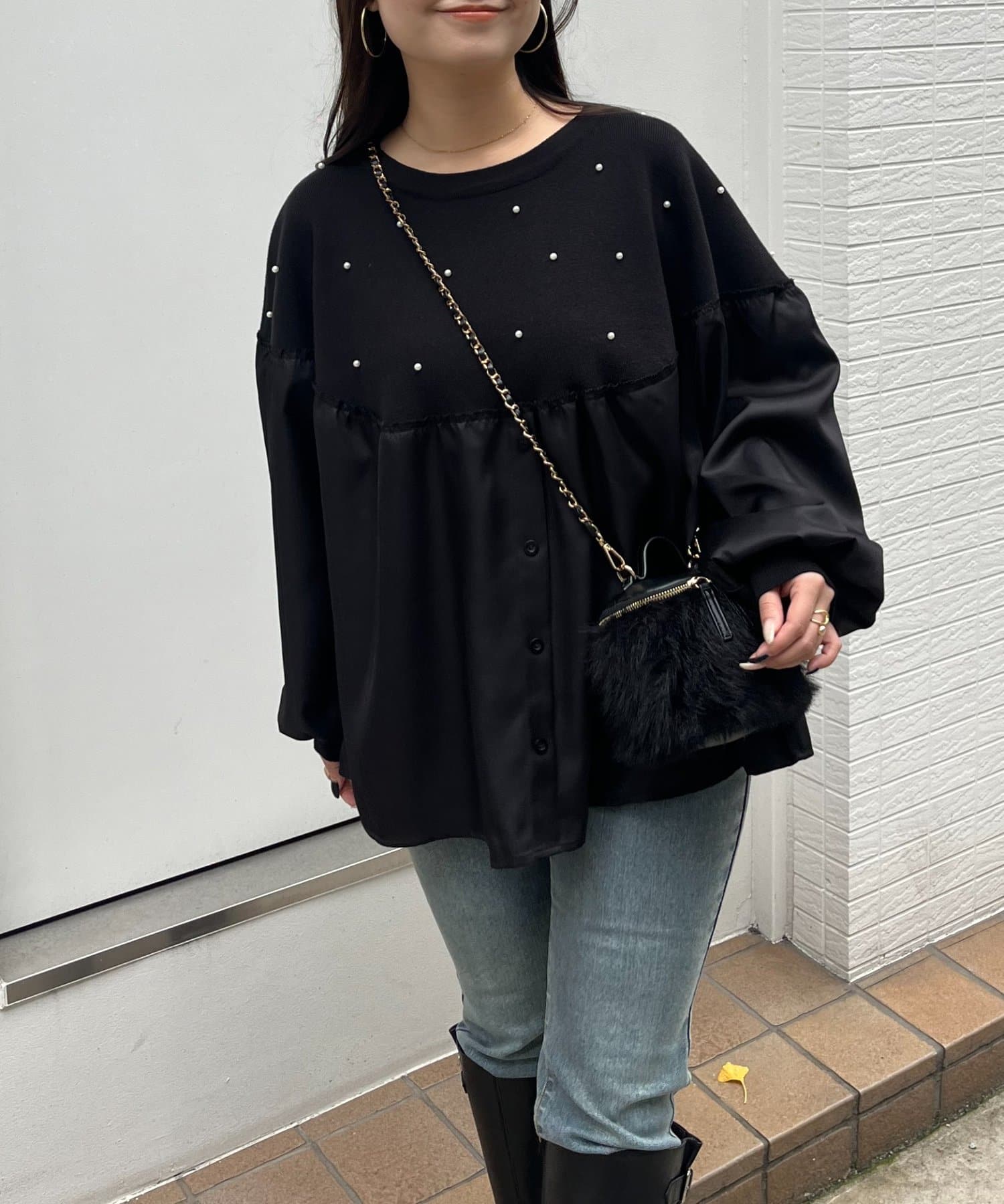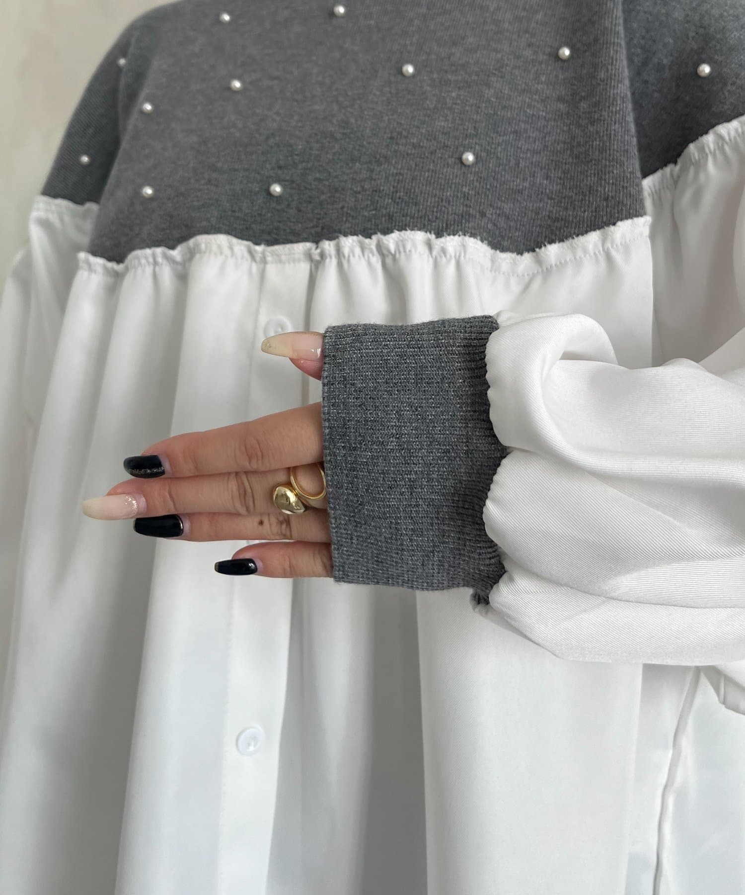 • prose verse(プロズヴェール) デコルテパールシャツドッキングニット