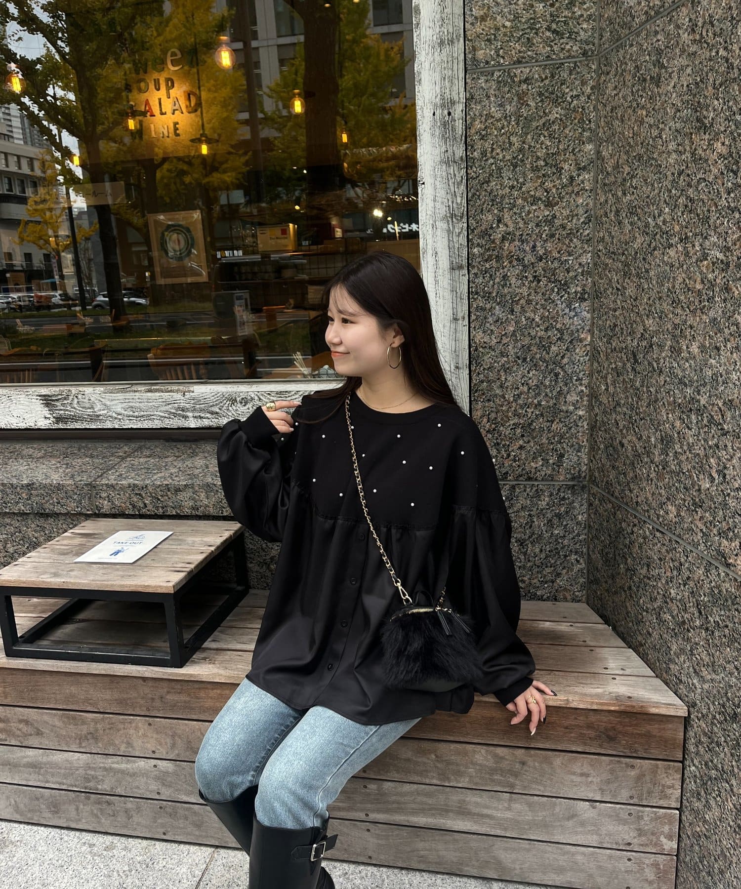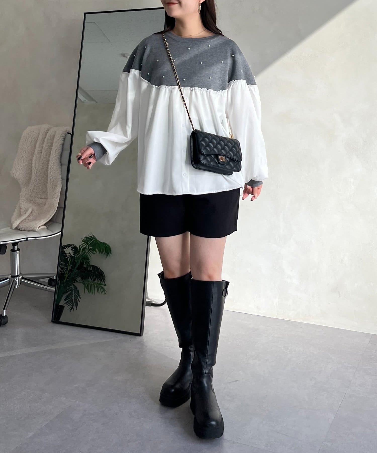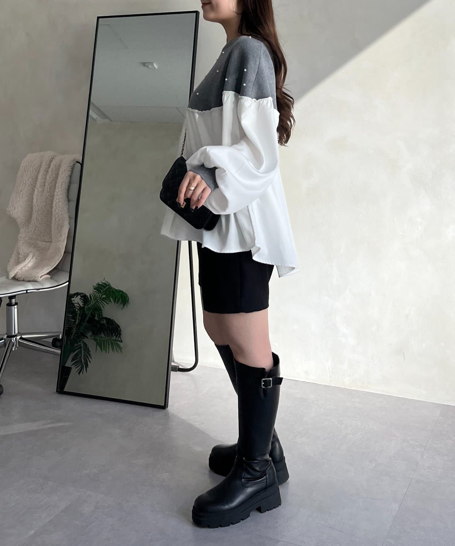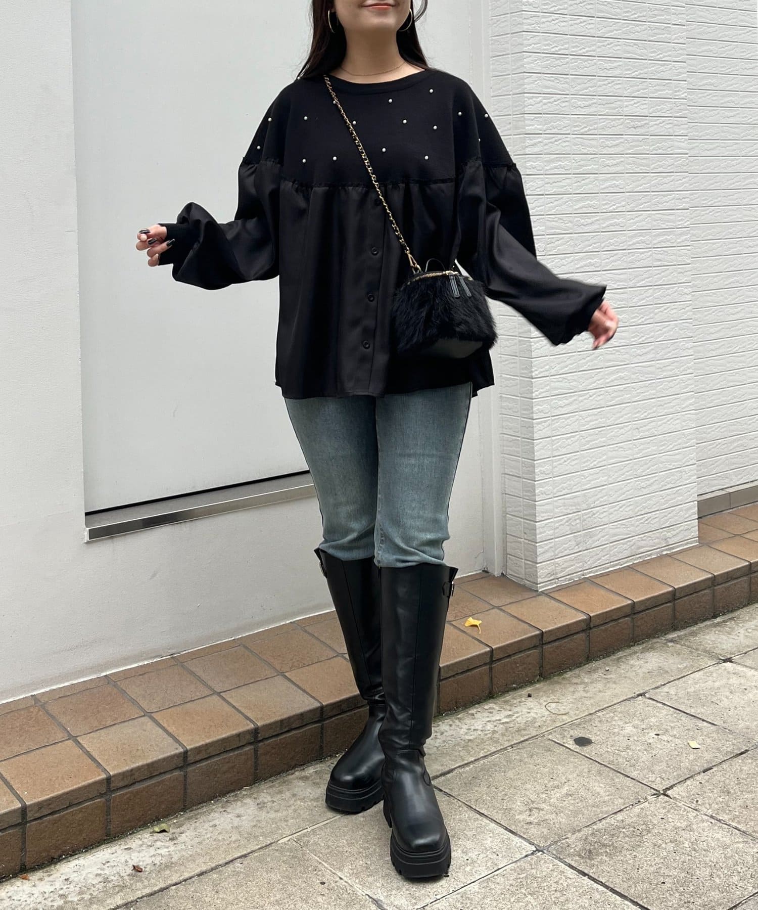 • prose verse(プロズヴェール) デコルテパールシャツドッキングニット